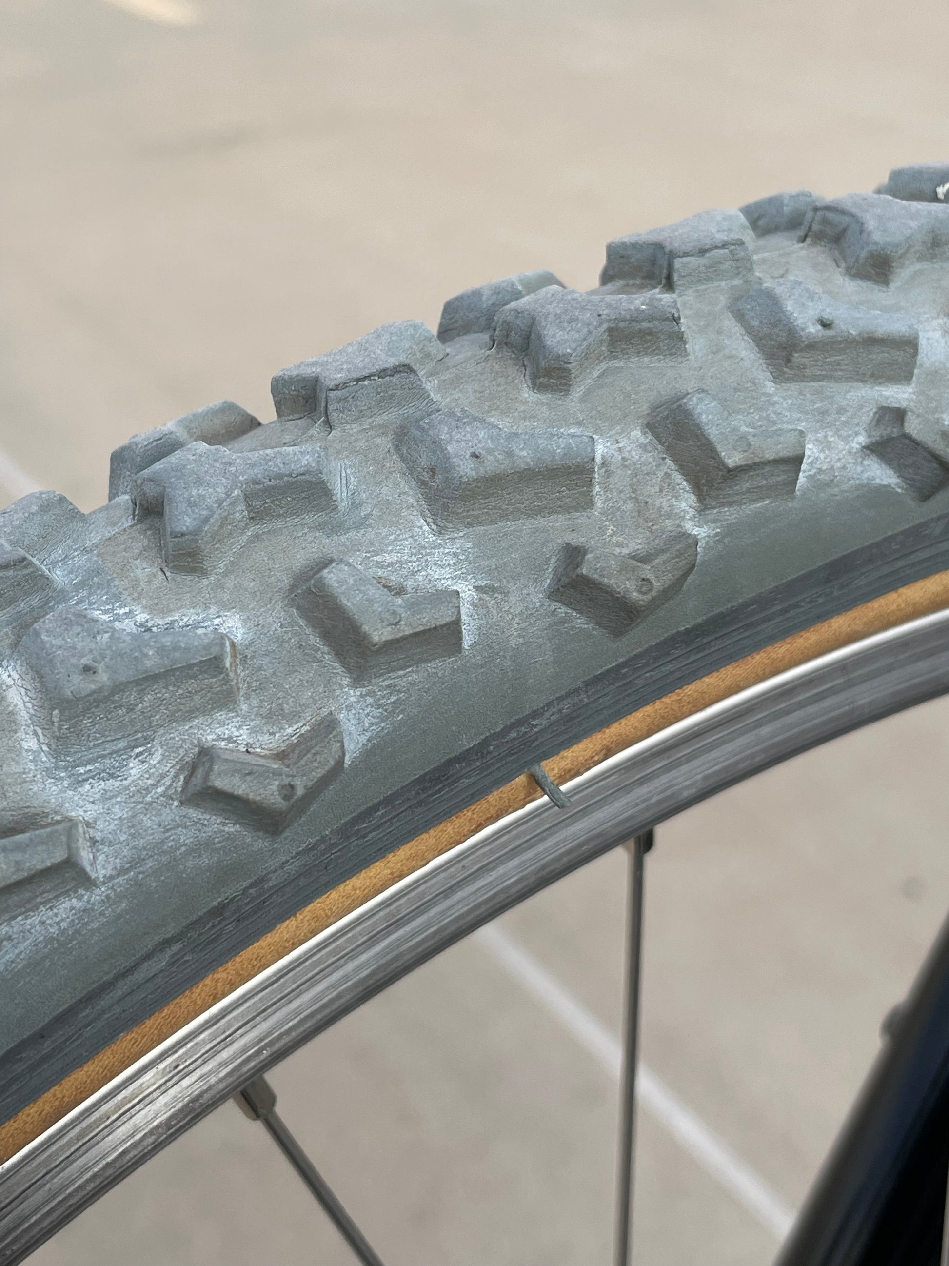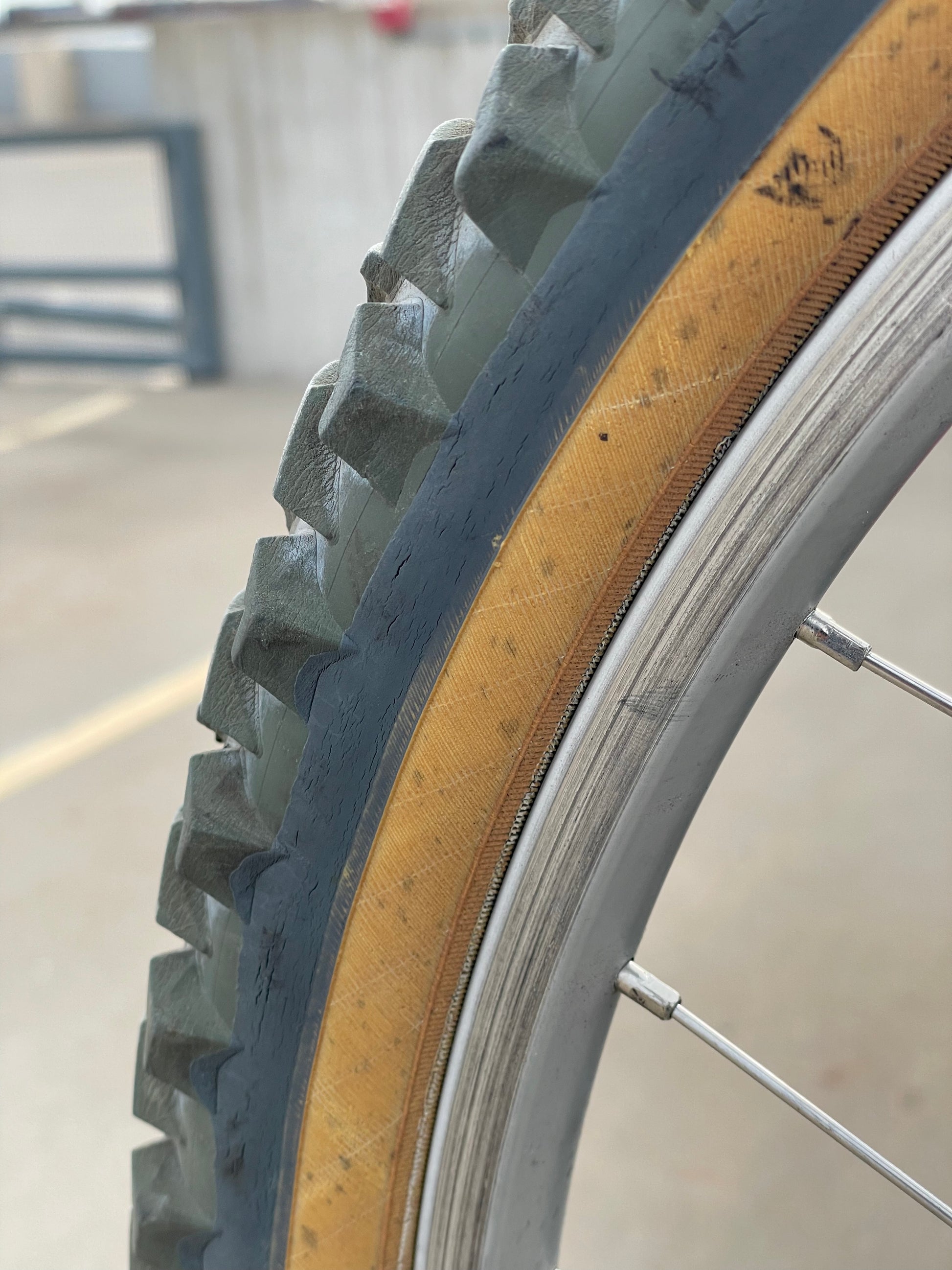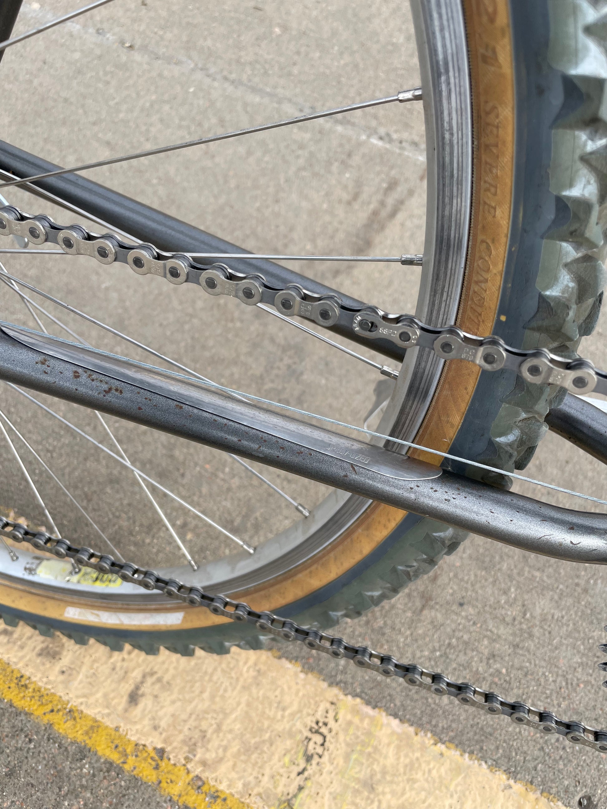 The frame is in good condition but shows sign of use. It has some paint chips and has some patina but no dents, bends, or cracks. The fork and headset are brand new. The tires are older Ritcheys and are starting to dry up. It's a rider! It's in absolutely no way a wall hanger!!