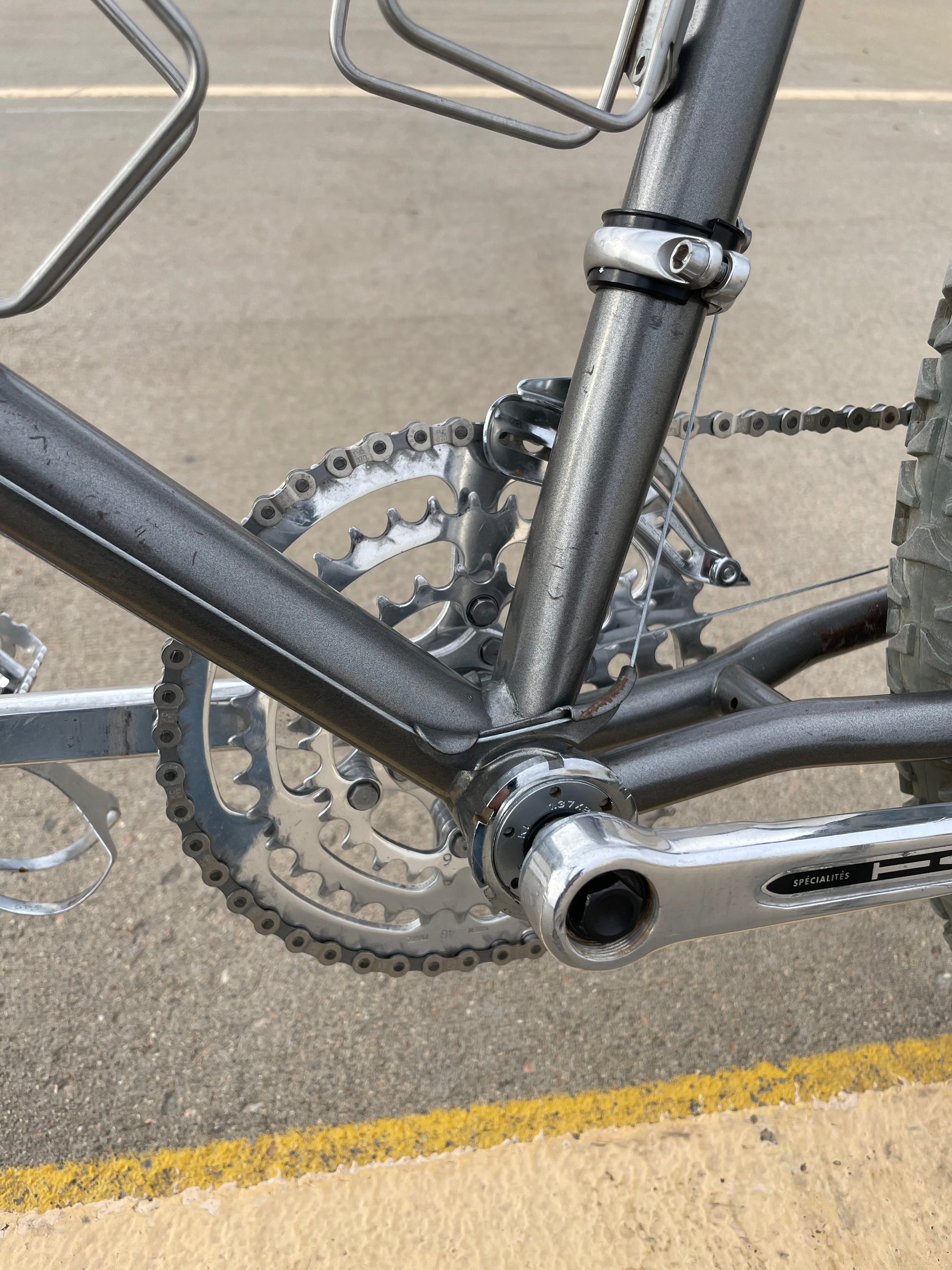 Unfortunately, when I bought this one, it had a shot suspension fork and the owner lost the original biplane fork after moving multiple times. That gave me the green light to have some fun with the build and add some updates. My favorite parts are the prototype Curve brakes and TA Specialites crankset.