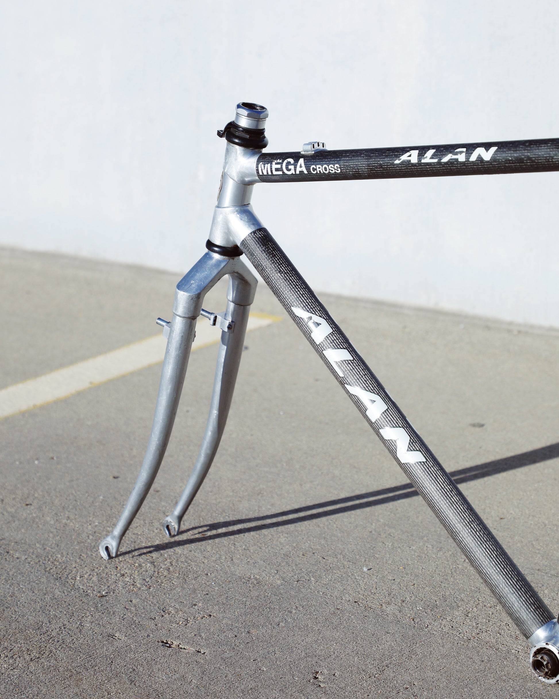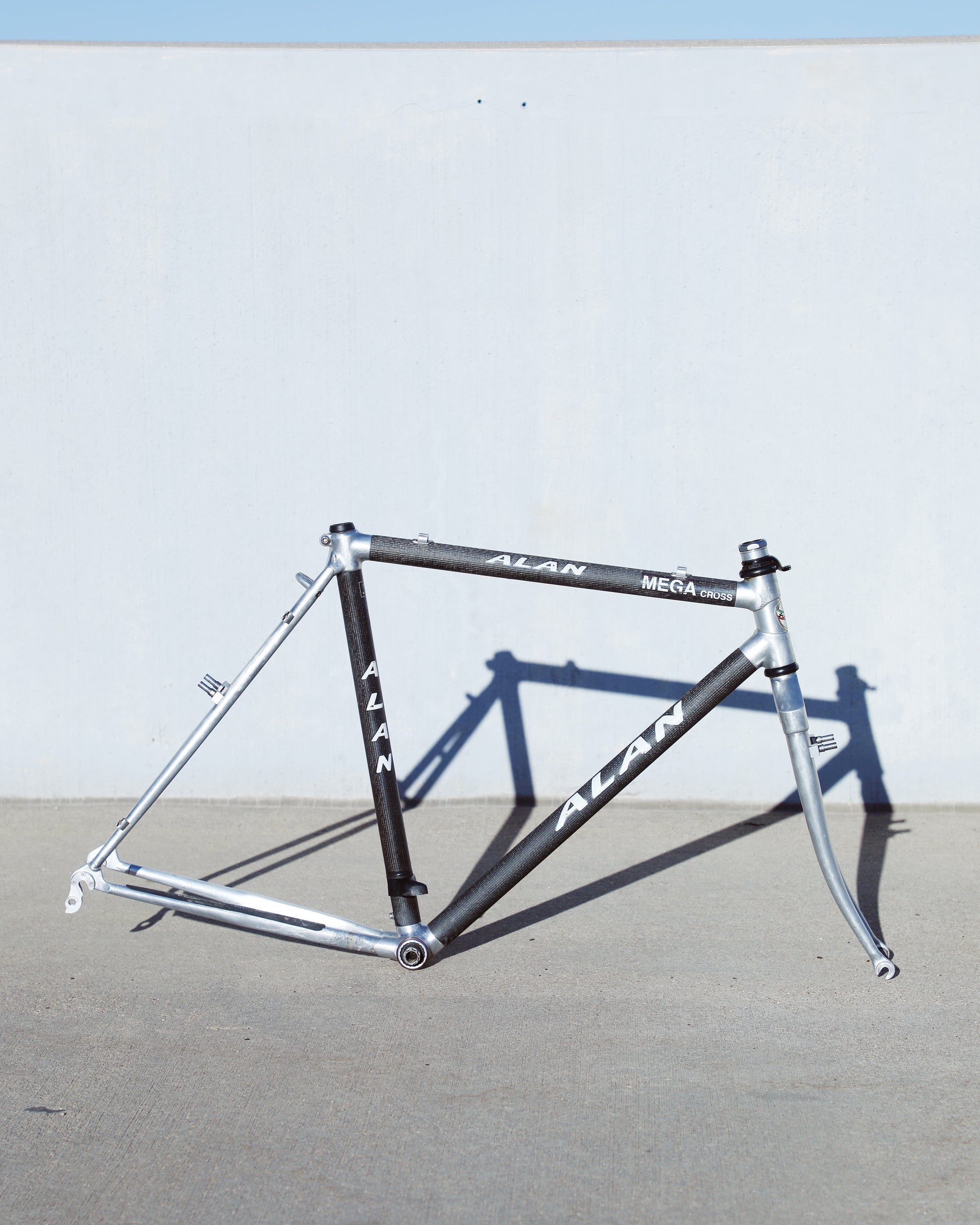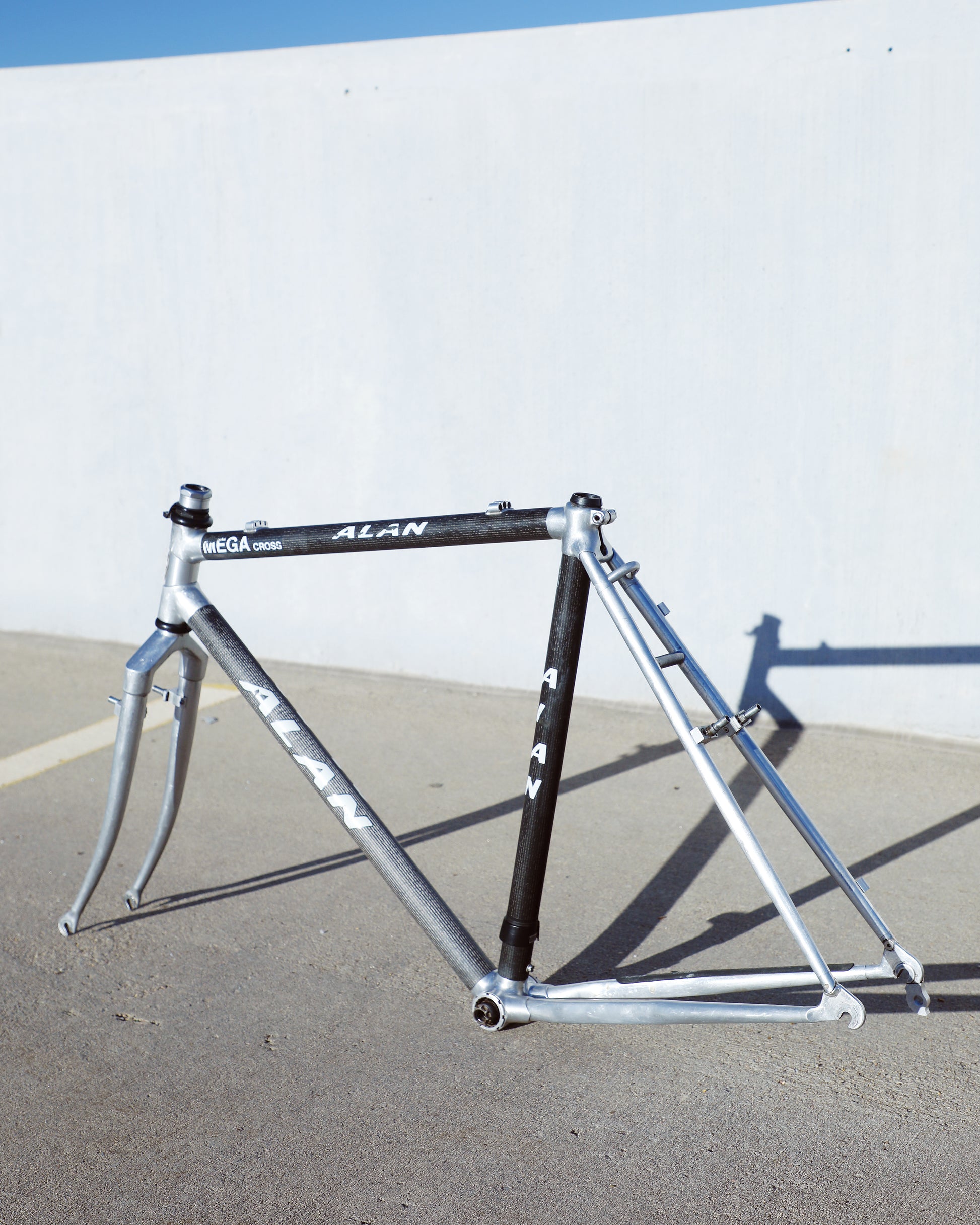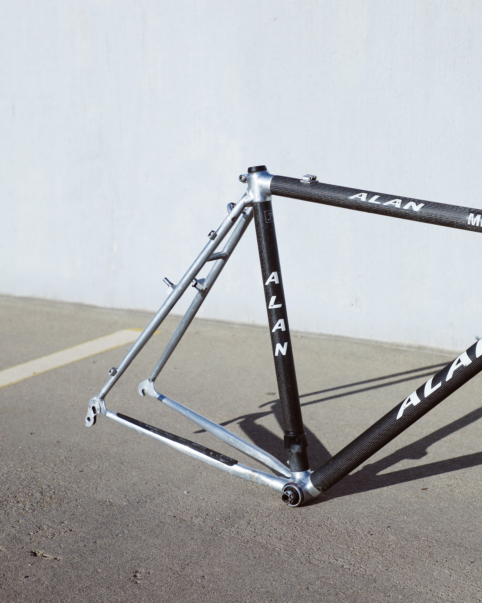 This Alan frame is in good condition but shows sign of use. Great tire clearance and canti brake mounts. The frame has carbon tubes with aluminum lugs and aluminum rear triangle. The carbon looks great - no cracks or chips. There are some marks on the aluminum due to chain slap/drop. 1 very small dent on non drive side chain stay. Check out all the photos to see it in detail and to get a better understanding as to the condition this rare frame is in.