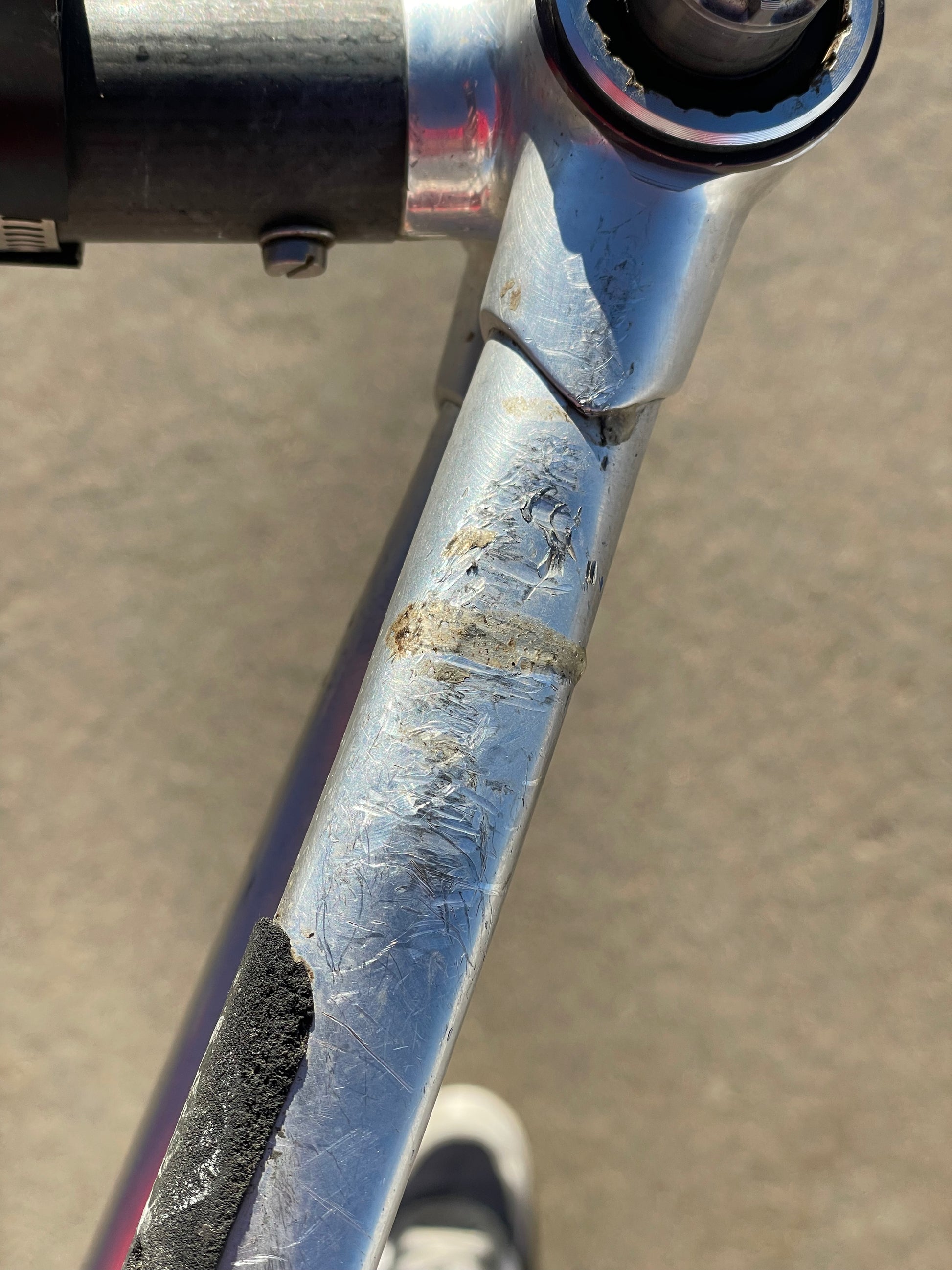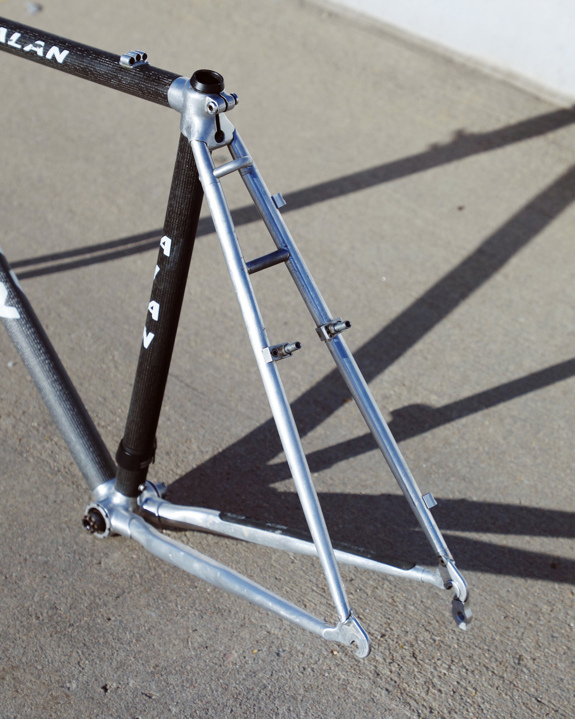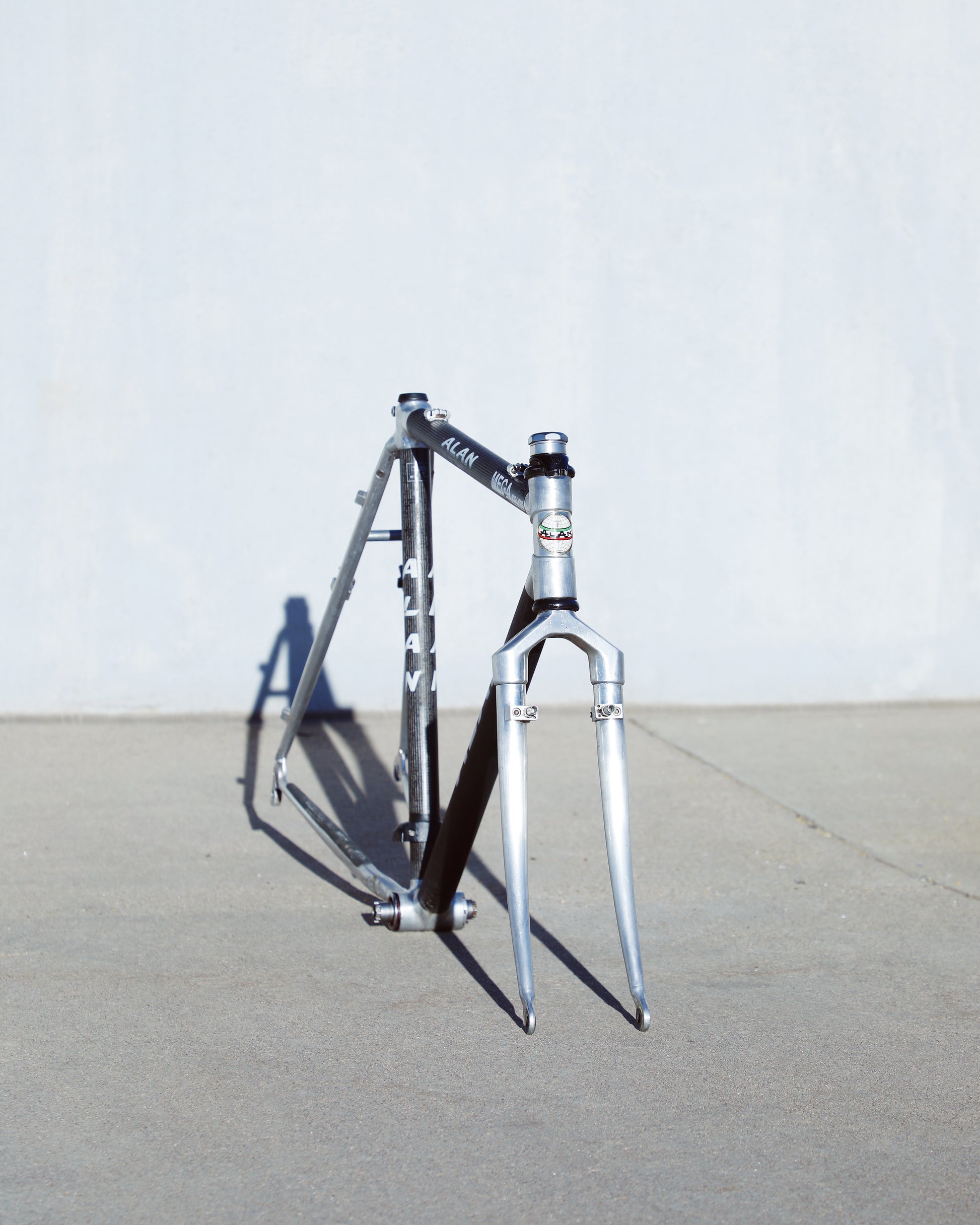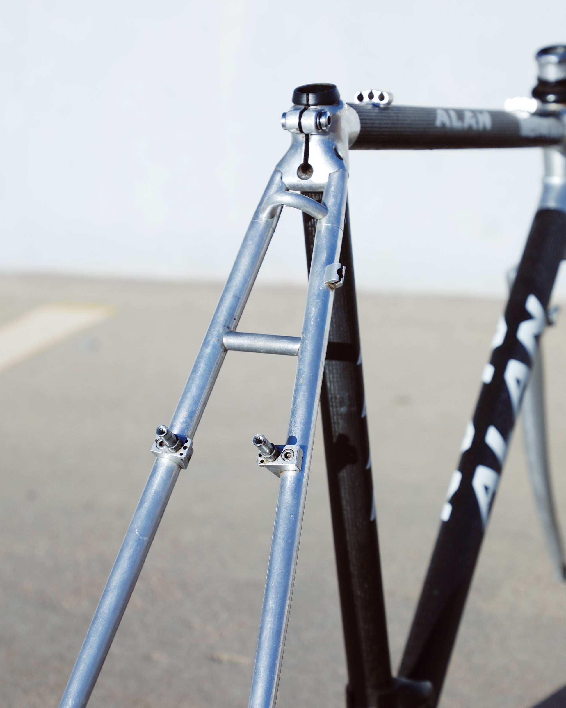 This Alan frame is in good condition but shows sign of use. Great tire clearance and canti brake mounts. The frame has carbon tubes with aluminum lugs and aluminum rear triangle. The carbon looks great - no cracks or chips. There are some marks on the aluminum due to chain slap/drop. 1 very small dent on non drive side chain stay. Check out all the photos to see it in detail and to get a better understanding as to the condition this rare frame is in.