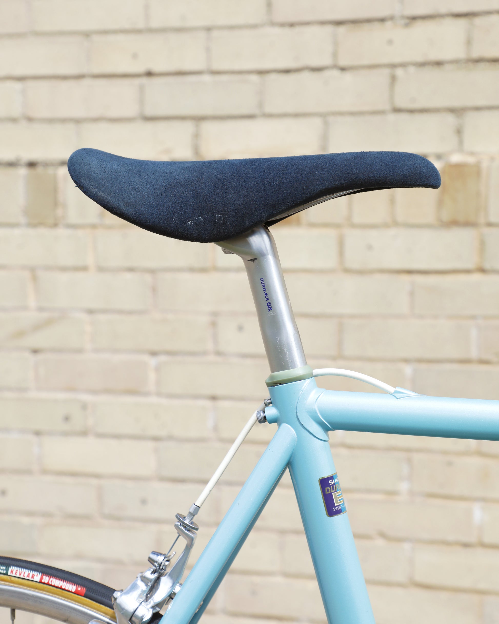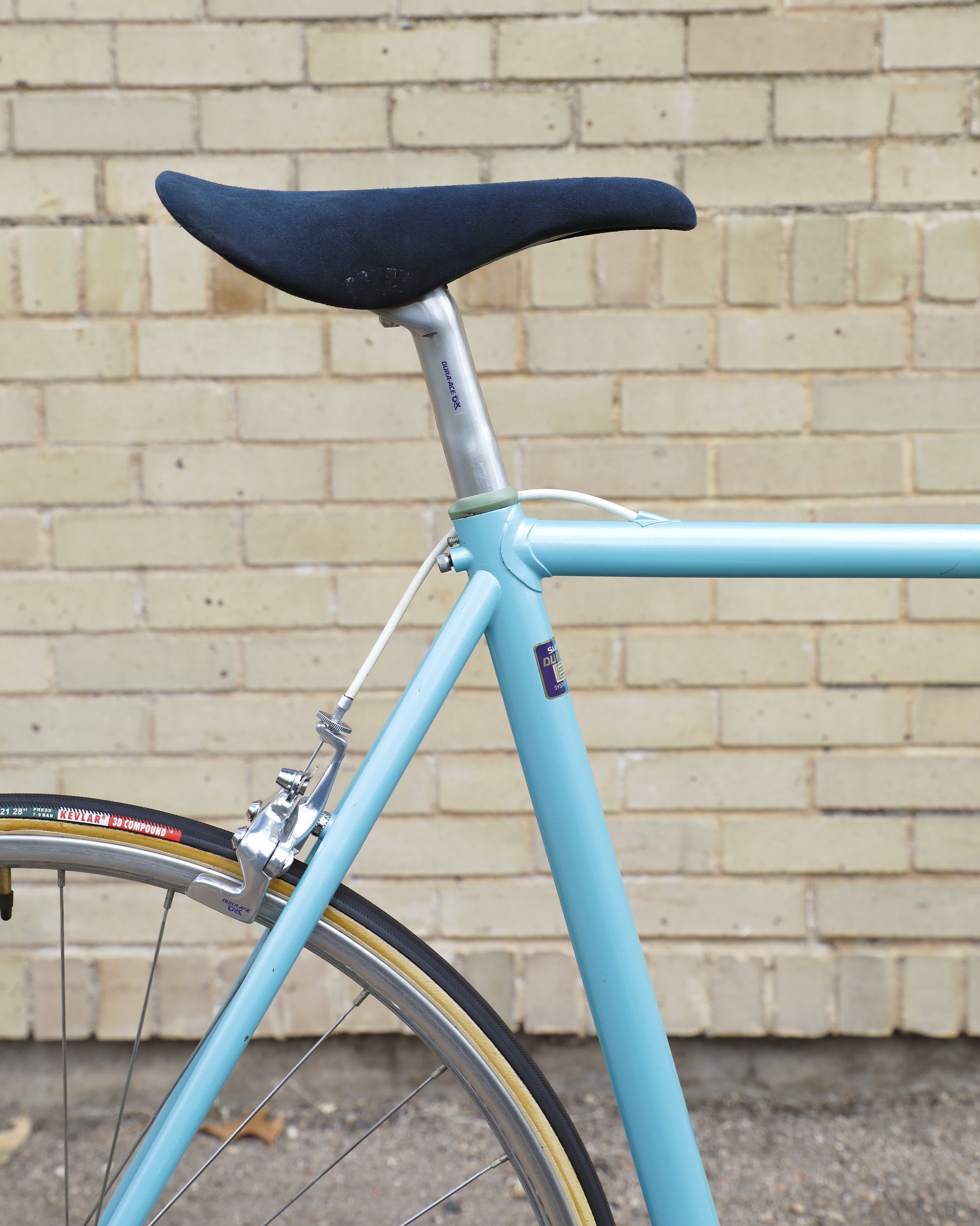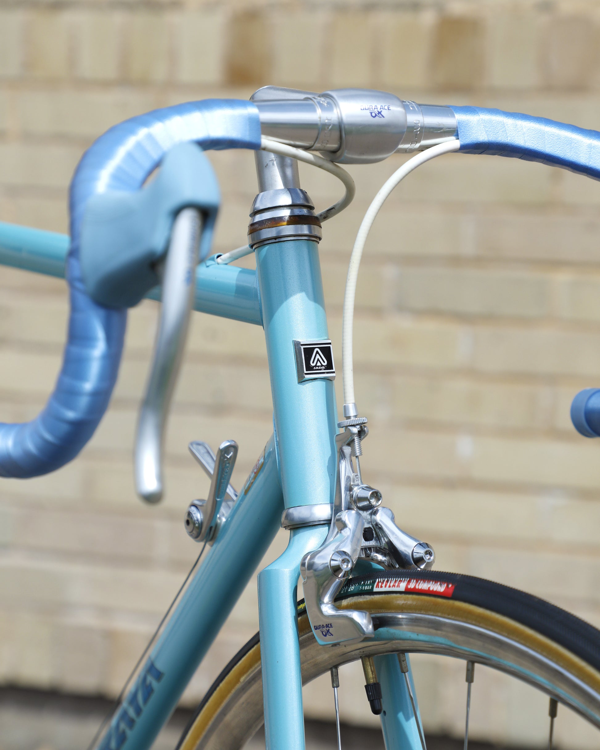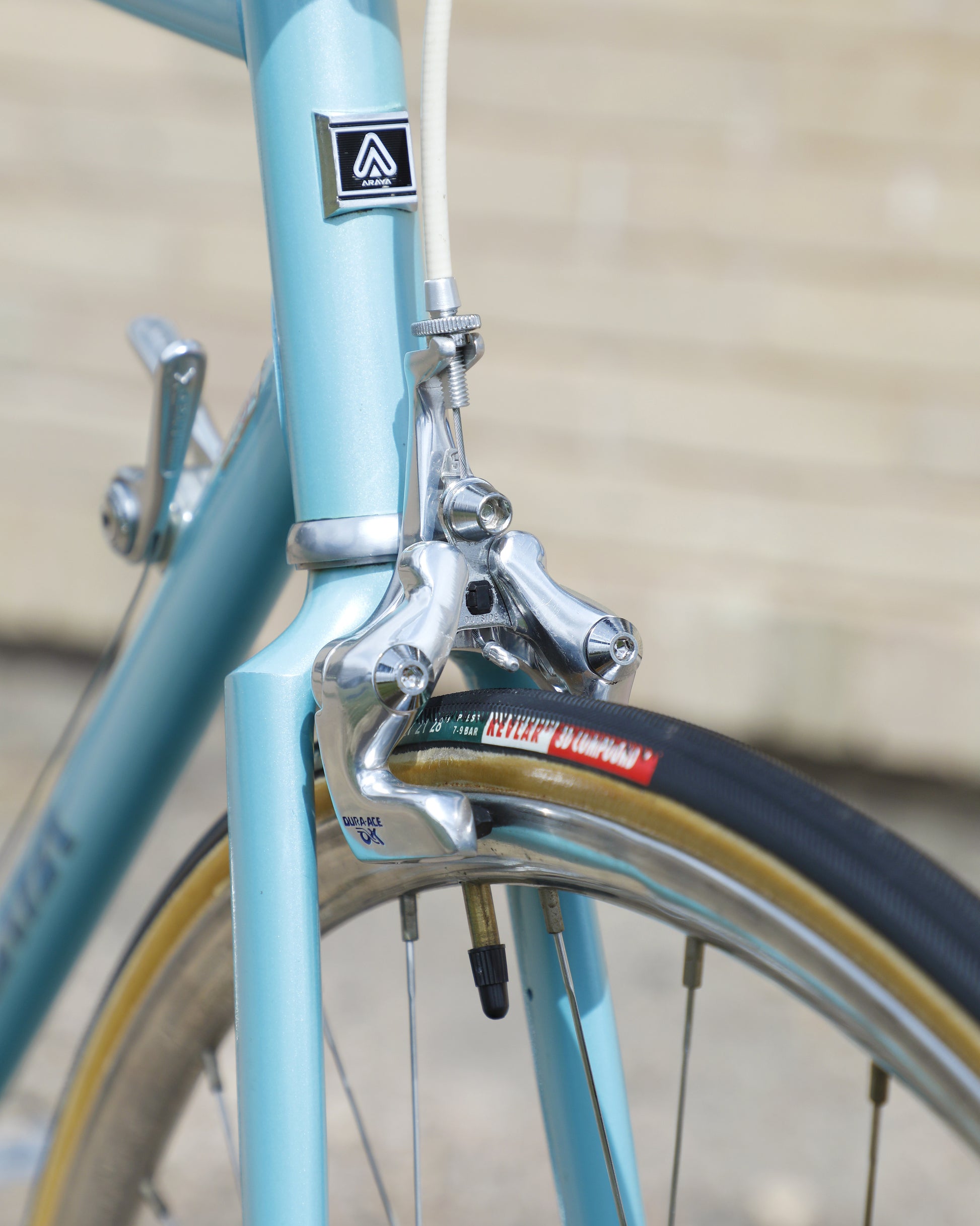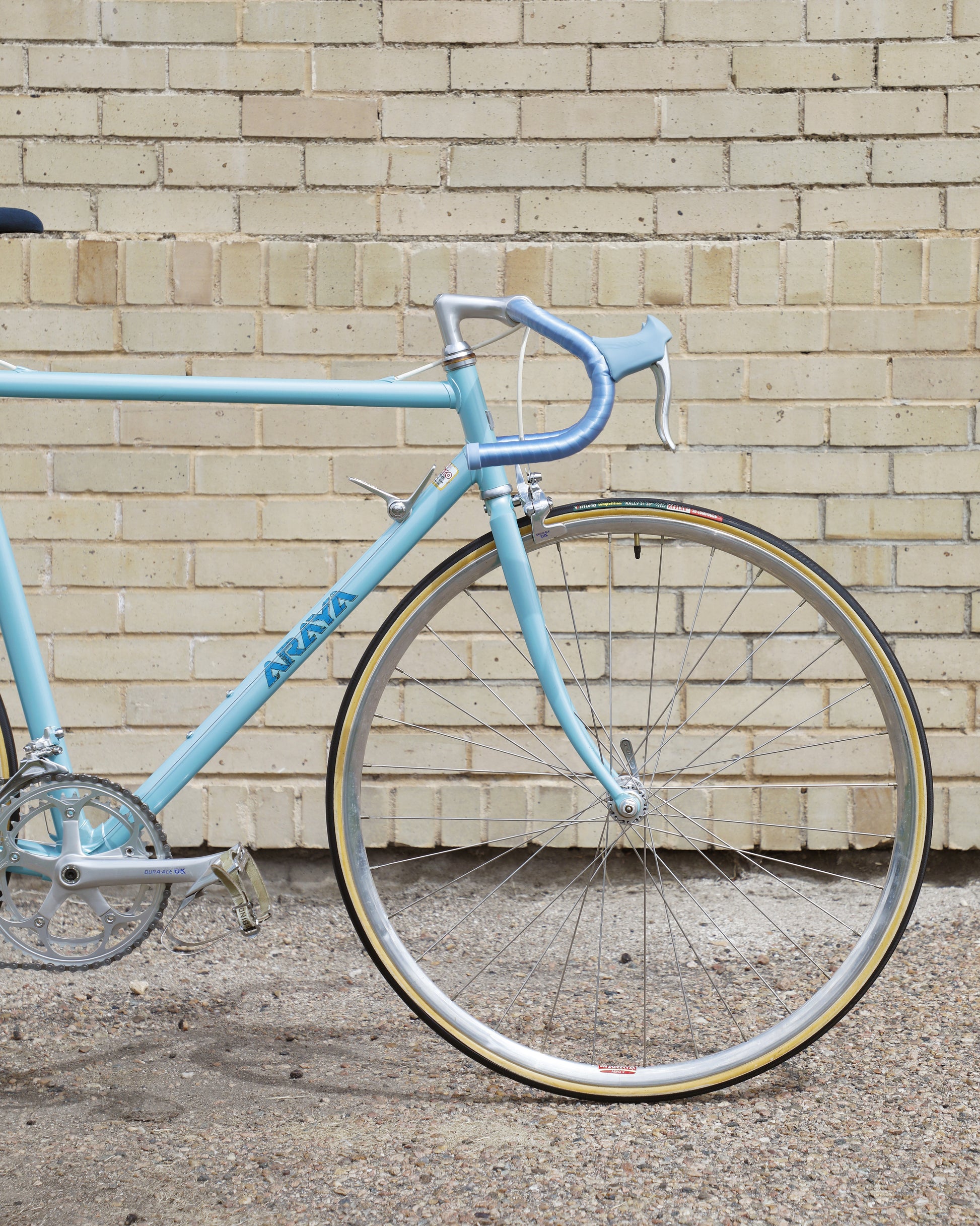 The Araya 821 is a stunning example of Japanese craftsmanship in the 1980's. All of the Tange Aero shaped tubes catch the light beautifully. The light blue paint that it's finished in compliments the Dura-Ace 7300 AX groupset perfectly. This bike has a certain classiness but also exudes confidence and speed. It looks like it's going 100mph sitting still.