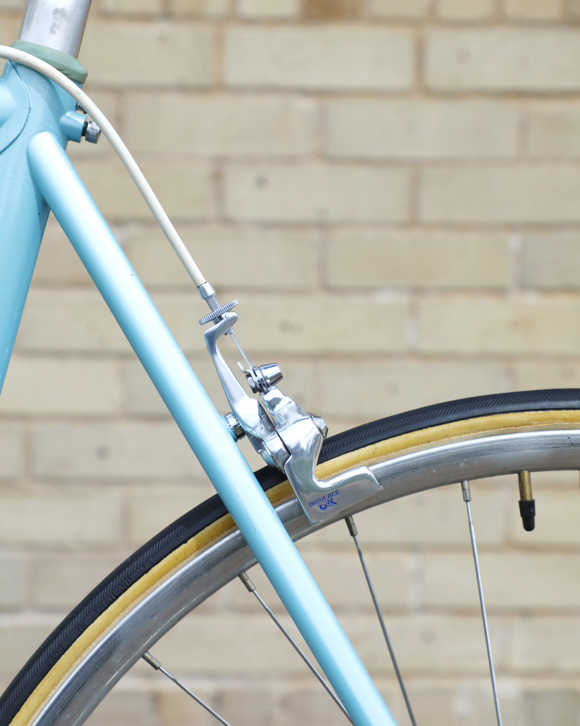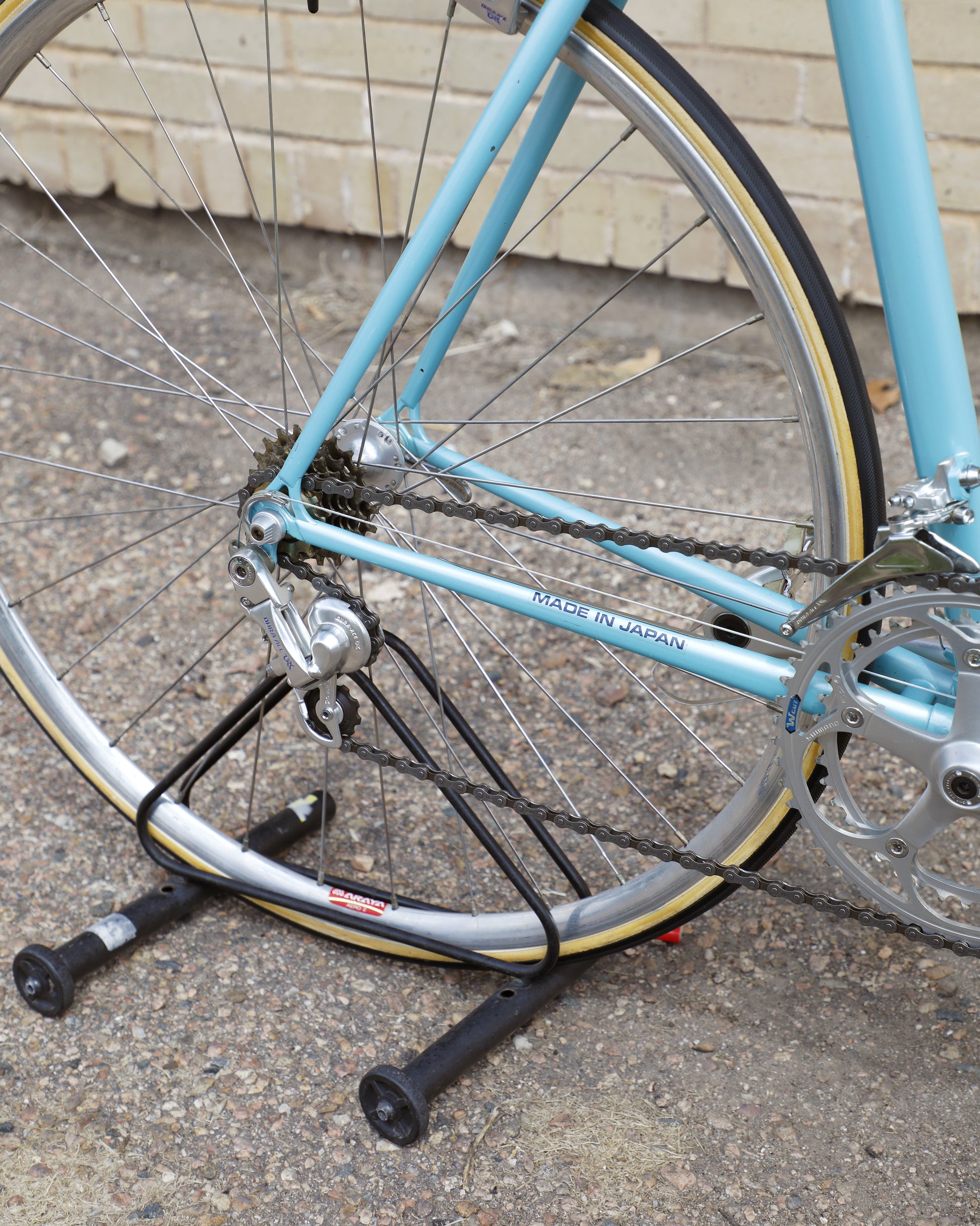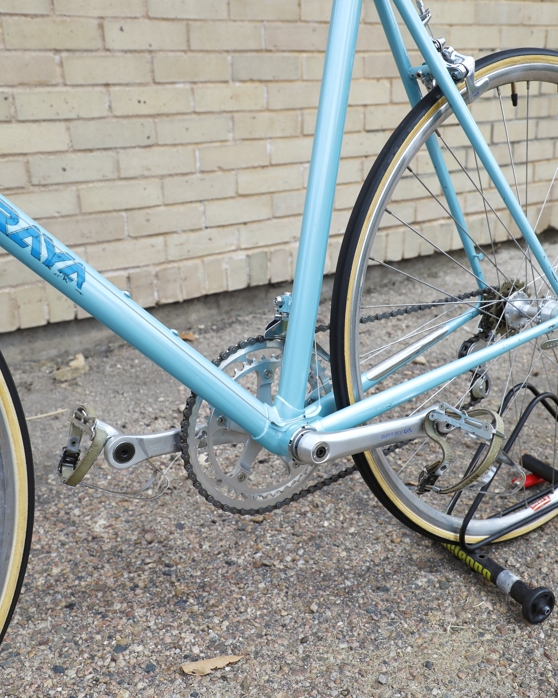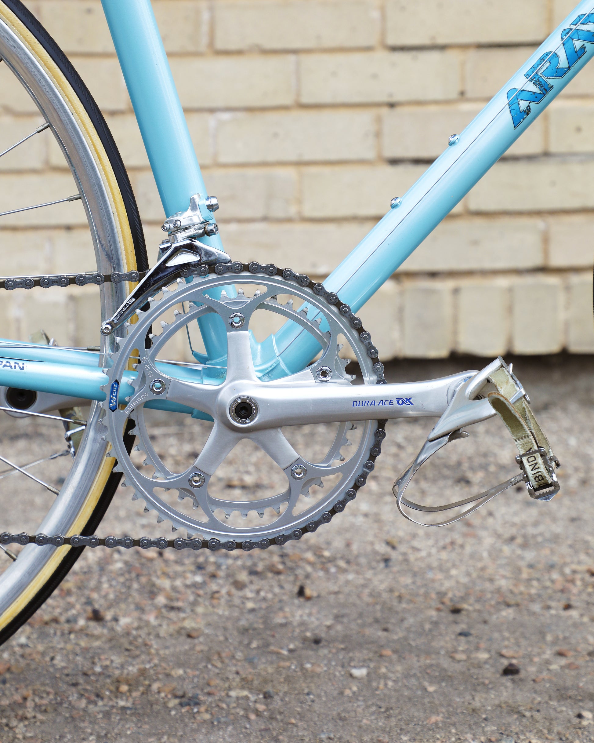 The Araya 821 is a stunning example of Japanese craftsmanship in the 1980's. All of the Tange Aero shaped tubes catch the light beautifully. The light blue paint that it's finished in compliments the Dura-Ace 7300 AX groupset perfectly. This bike has a certain classiness but also exudes confidence and speed. It looks like it's going 100mph sitting still.