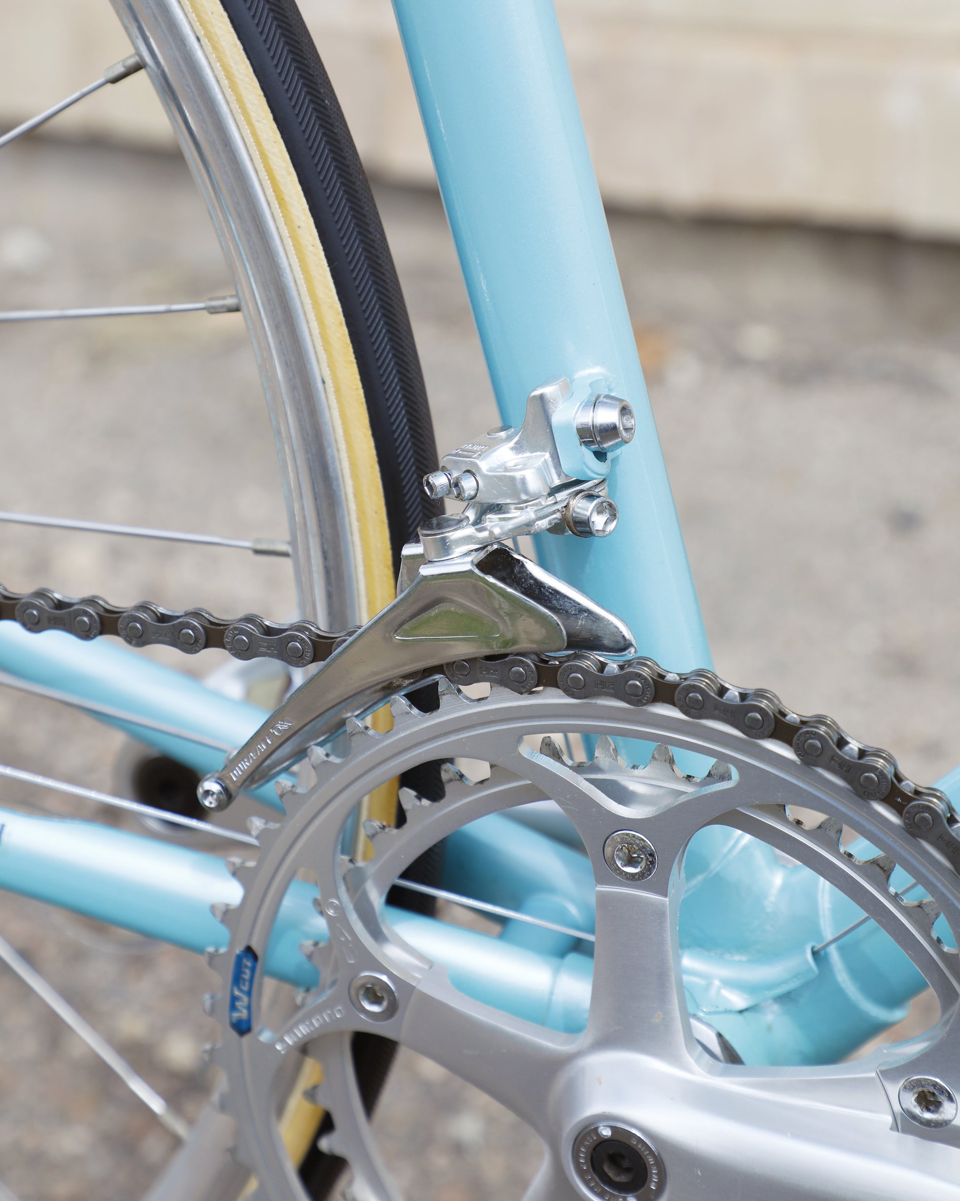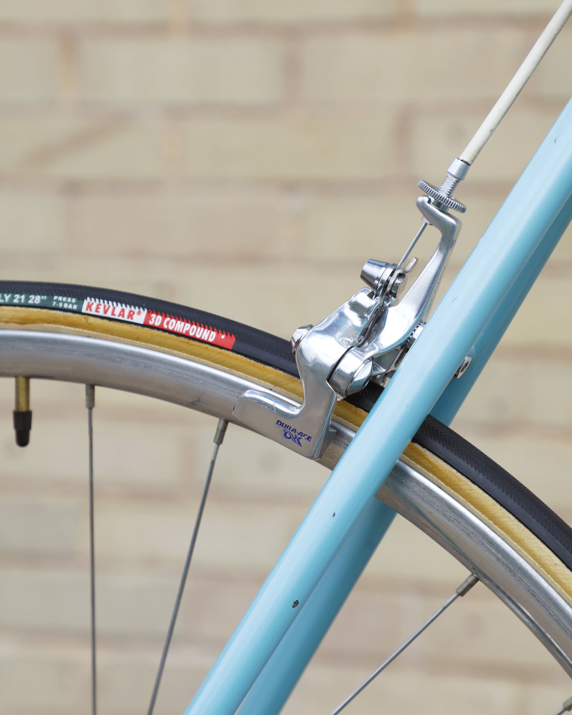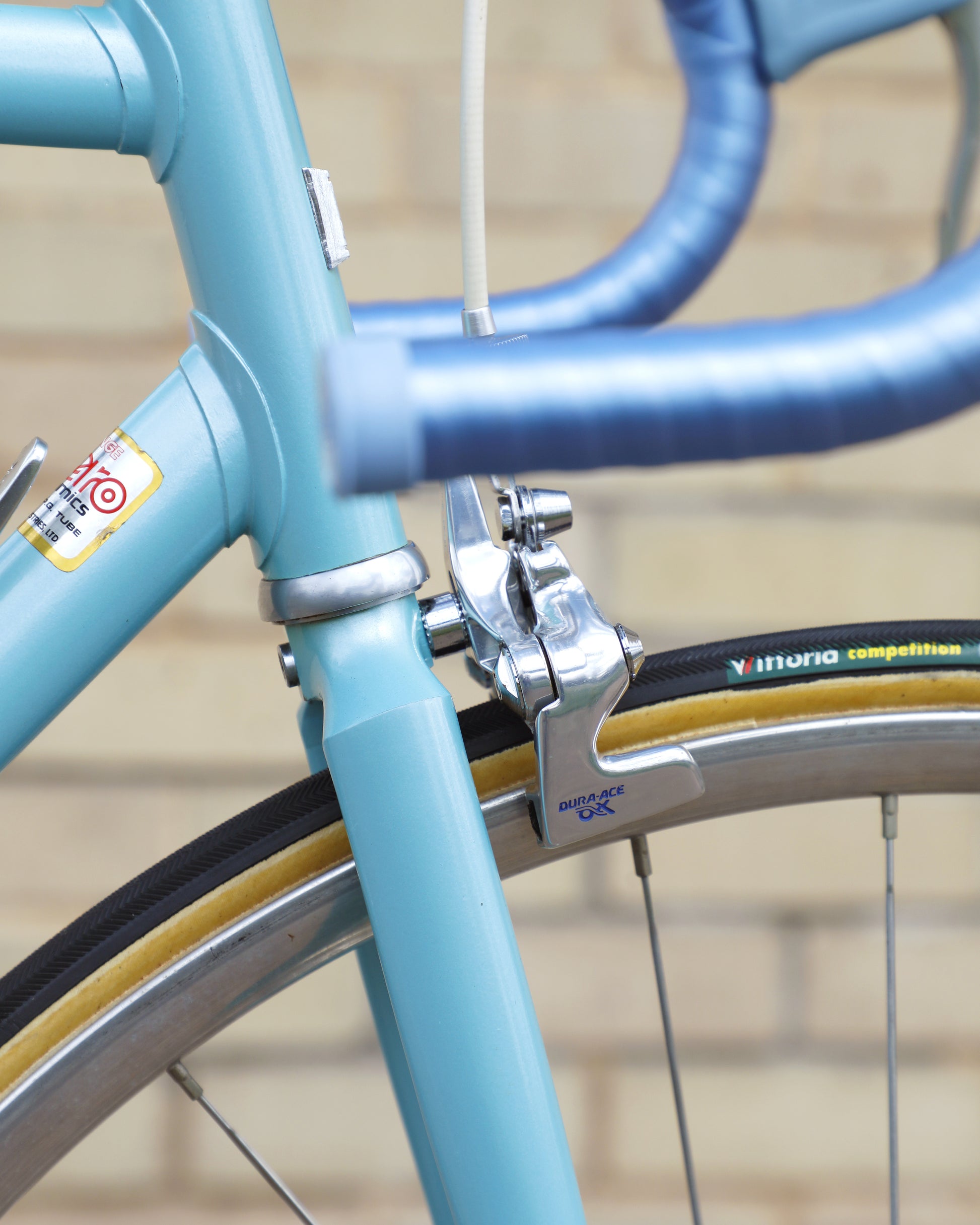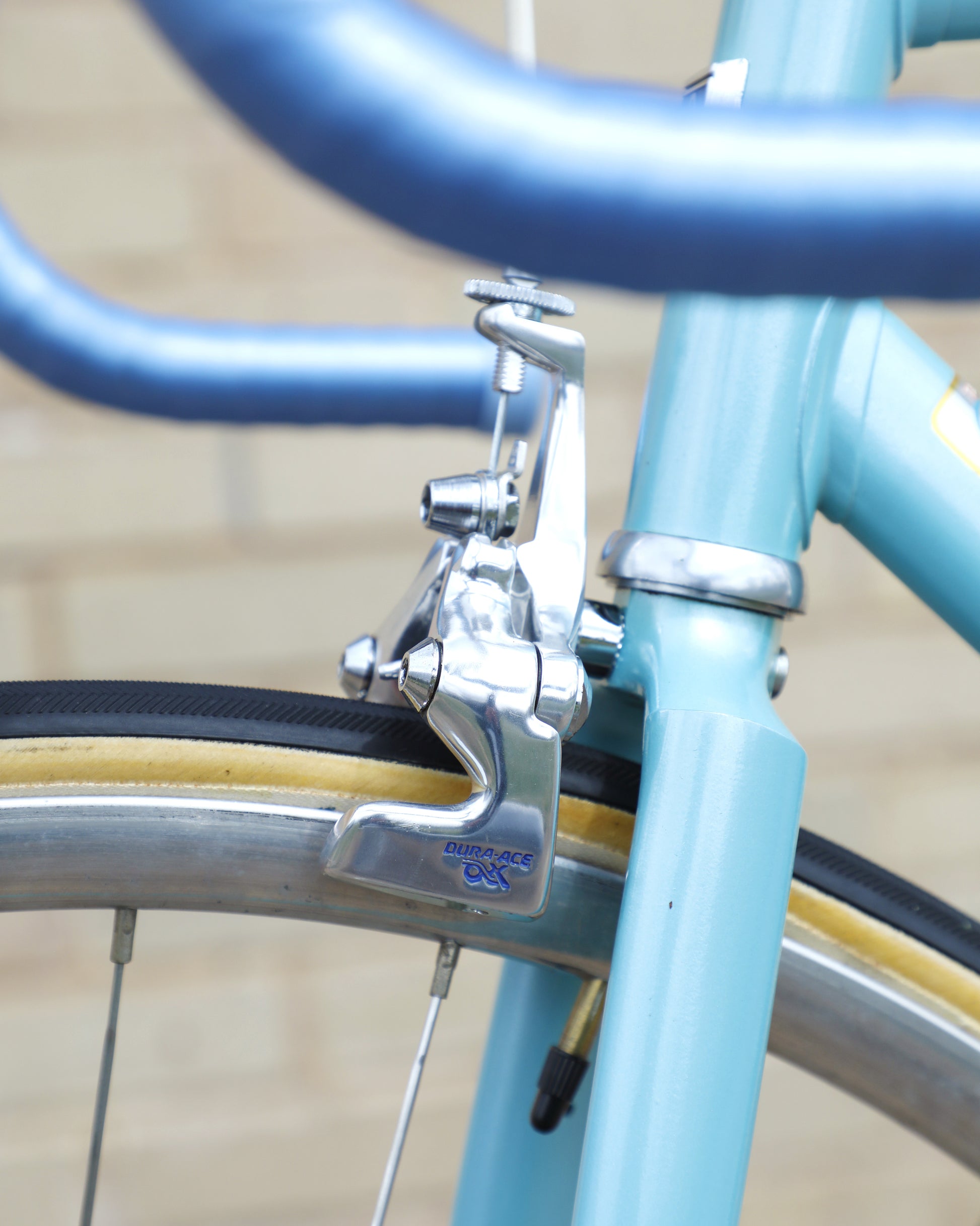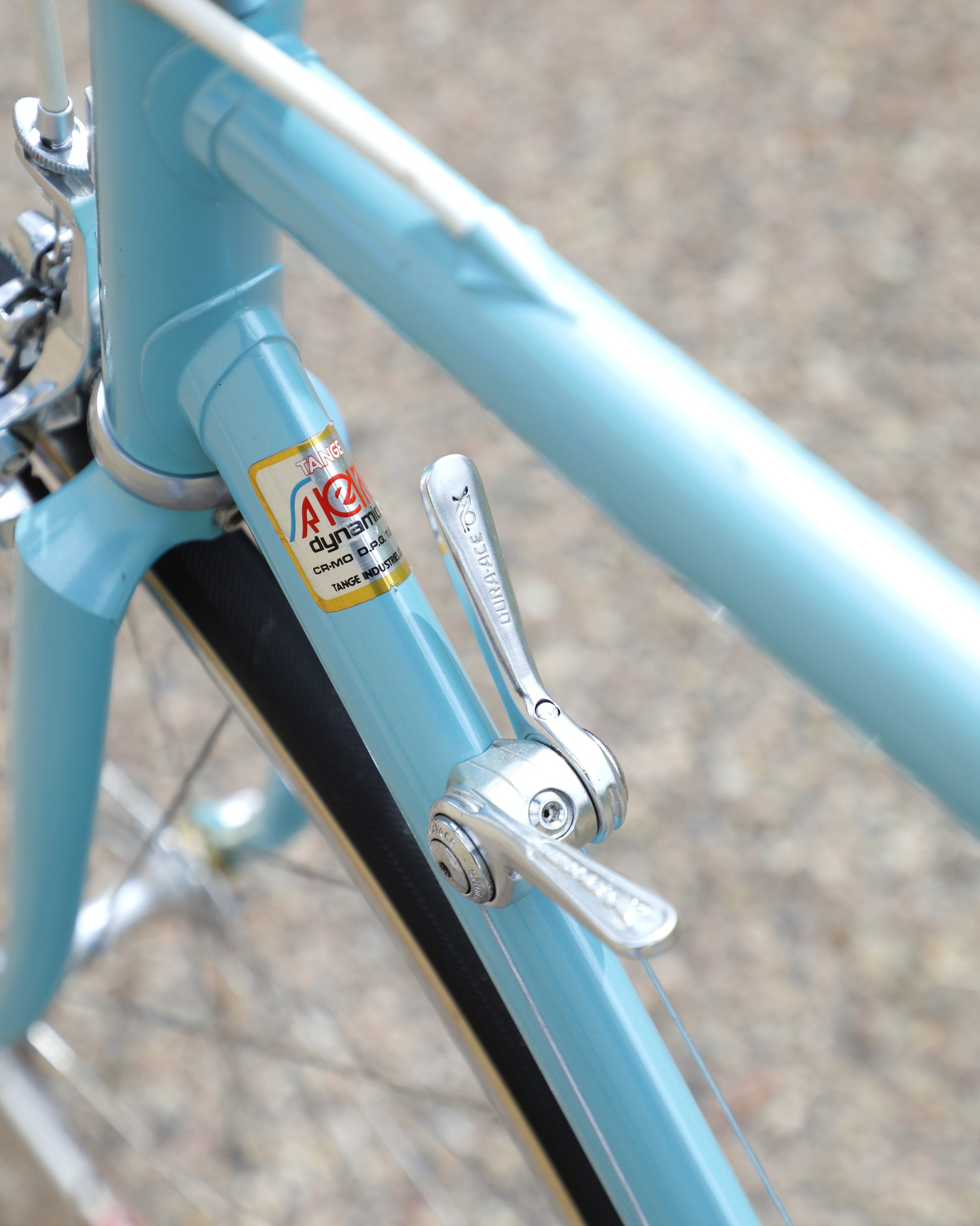 The Araya 821 is a stunning example of Japanese craftsmanship in the 1980's. All of the Tange Aero shaped tubes catch the light beautifully. The light blue paint that it's finished in compliments the Dura-Ace 7300 AX groupset perfectly. This bike has a certain classiness but also exudes confidence and speed. It looks like it's going 100mph sitting still.