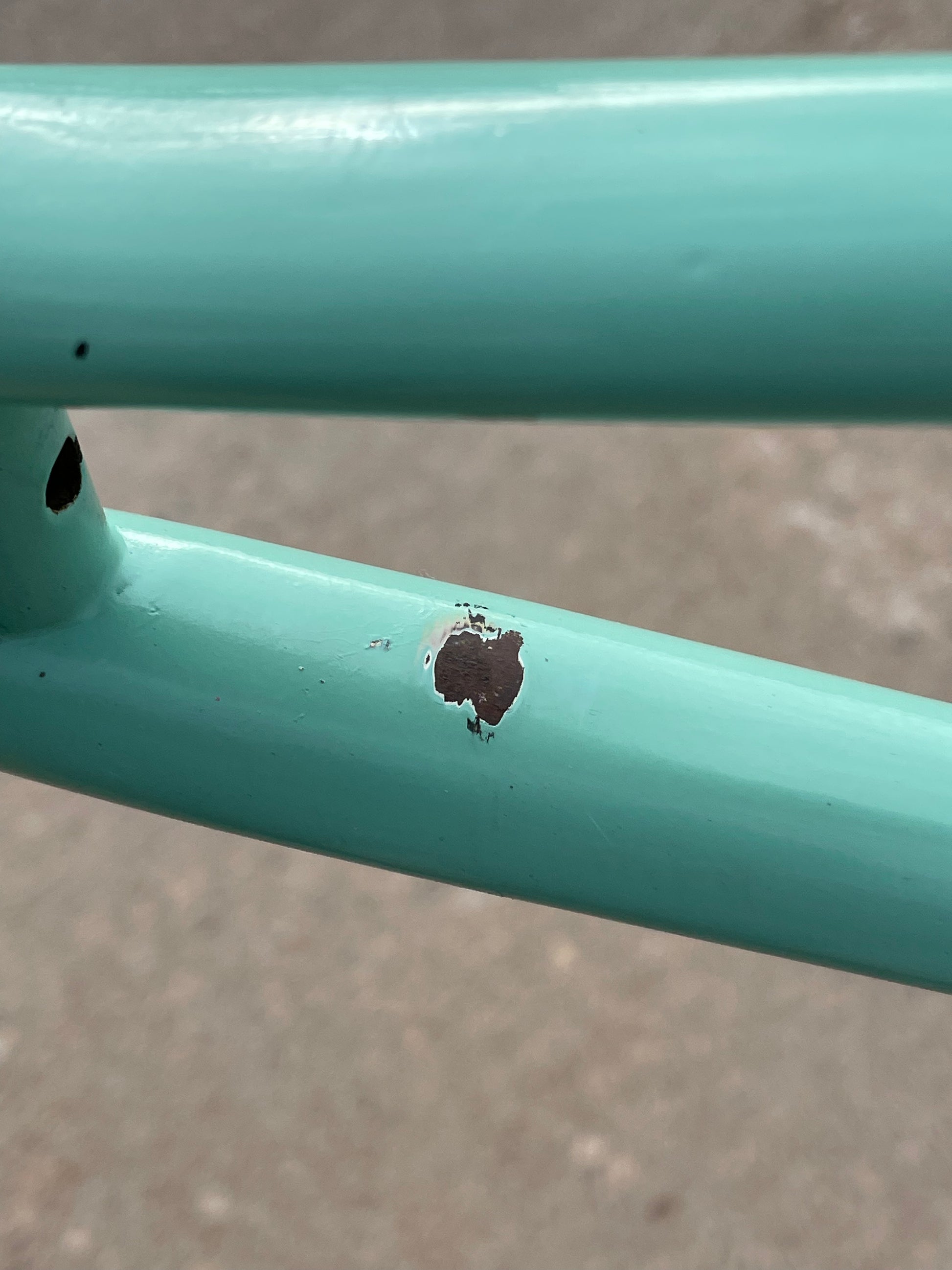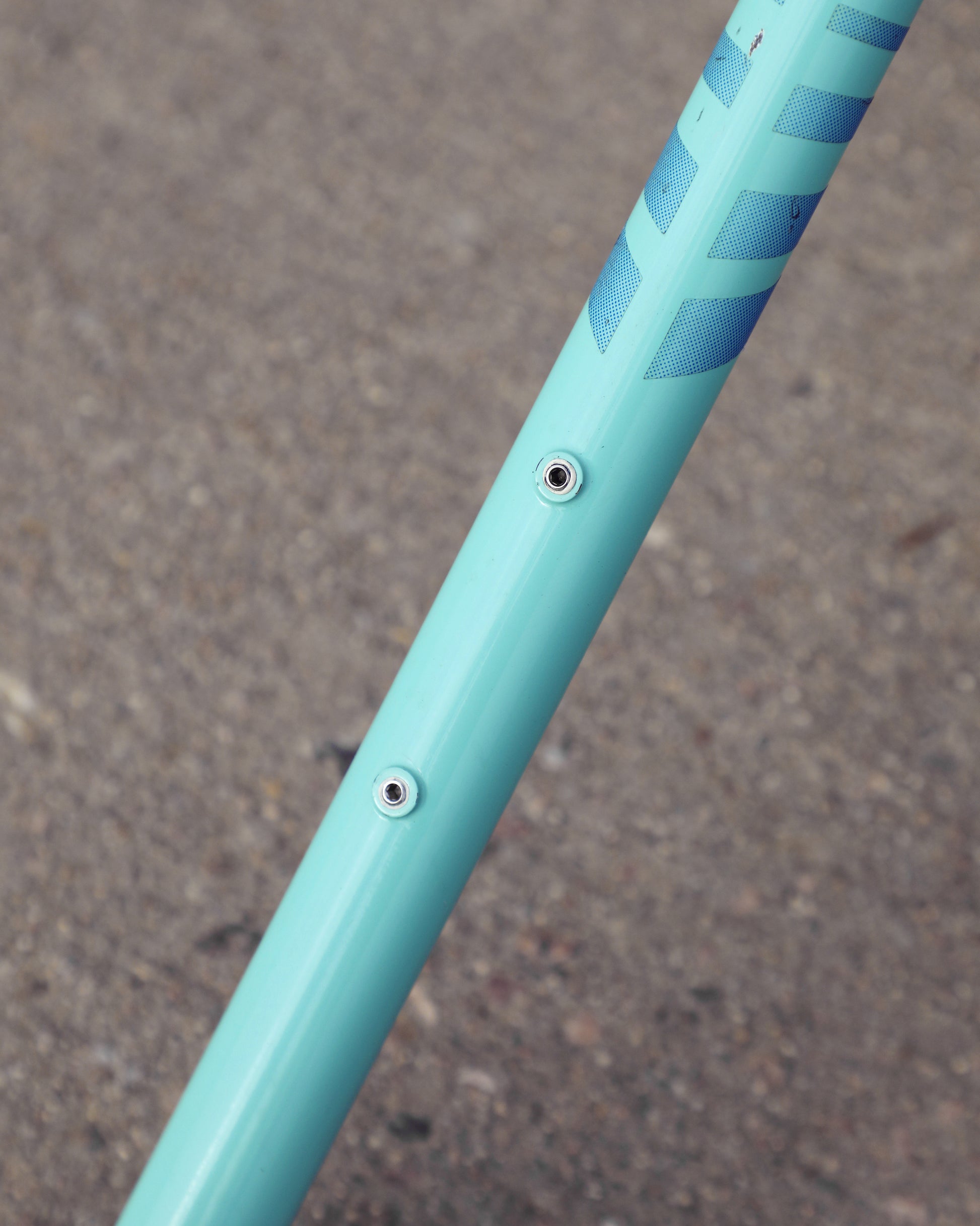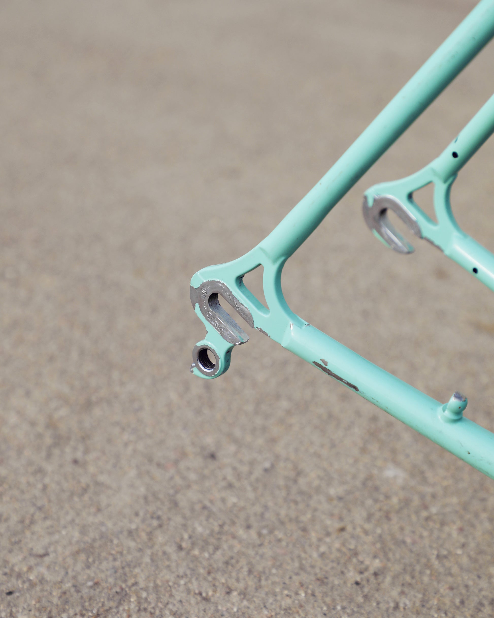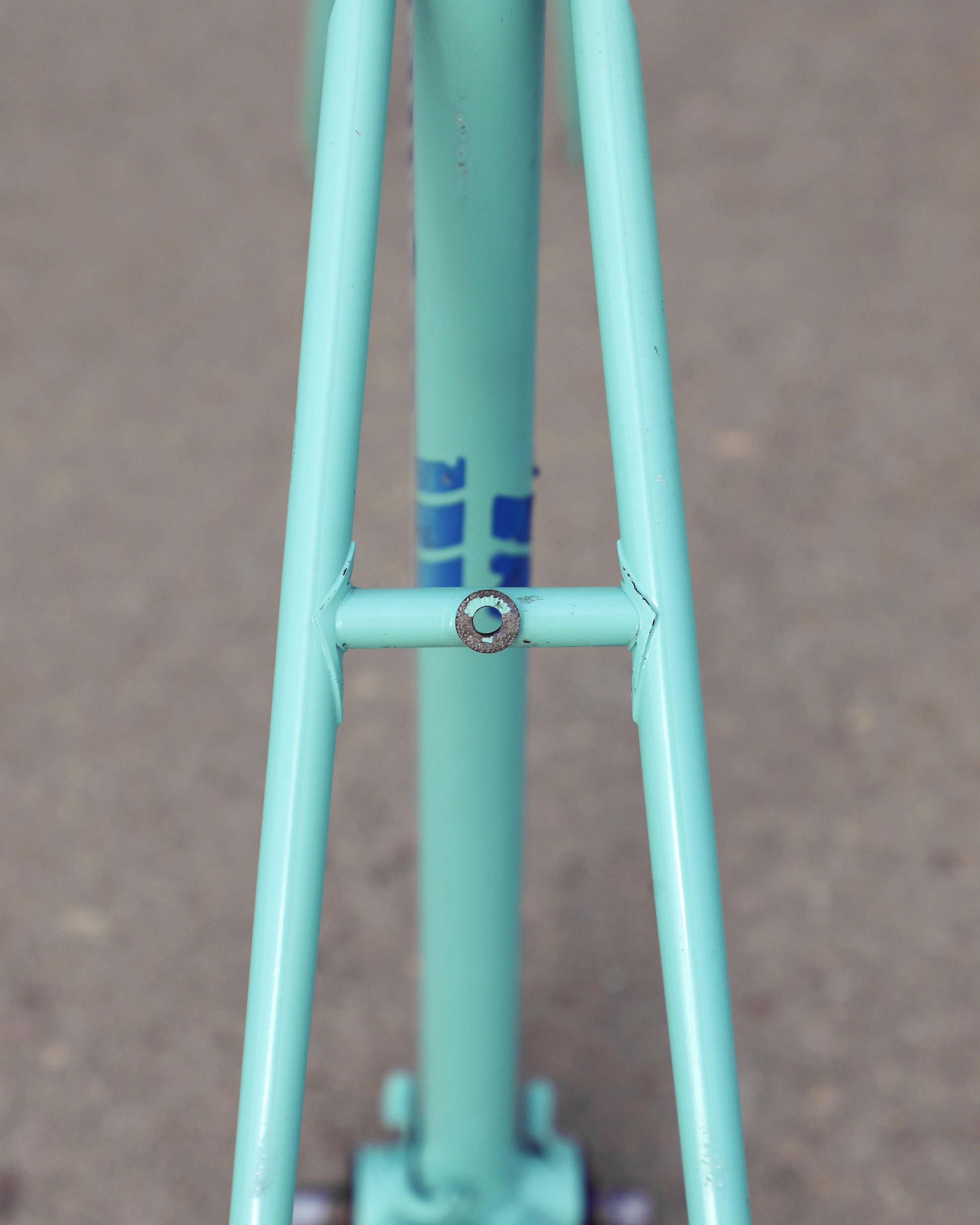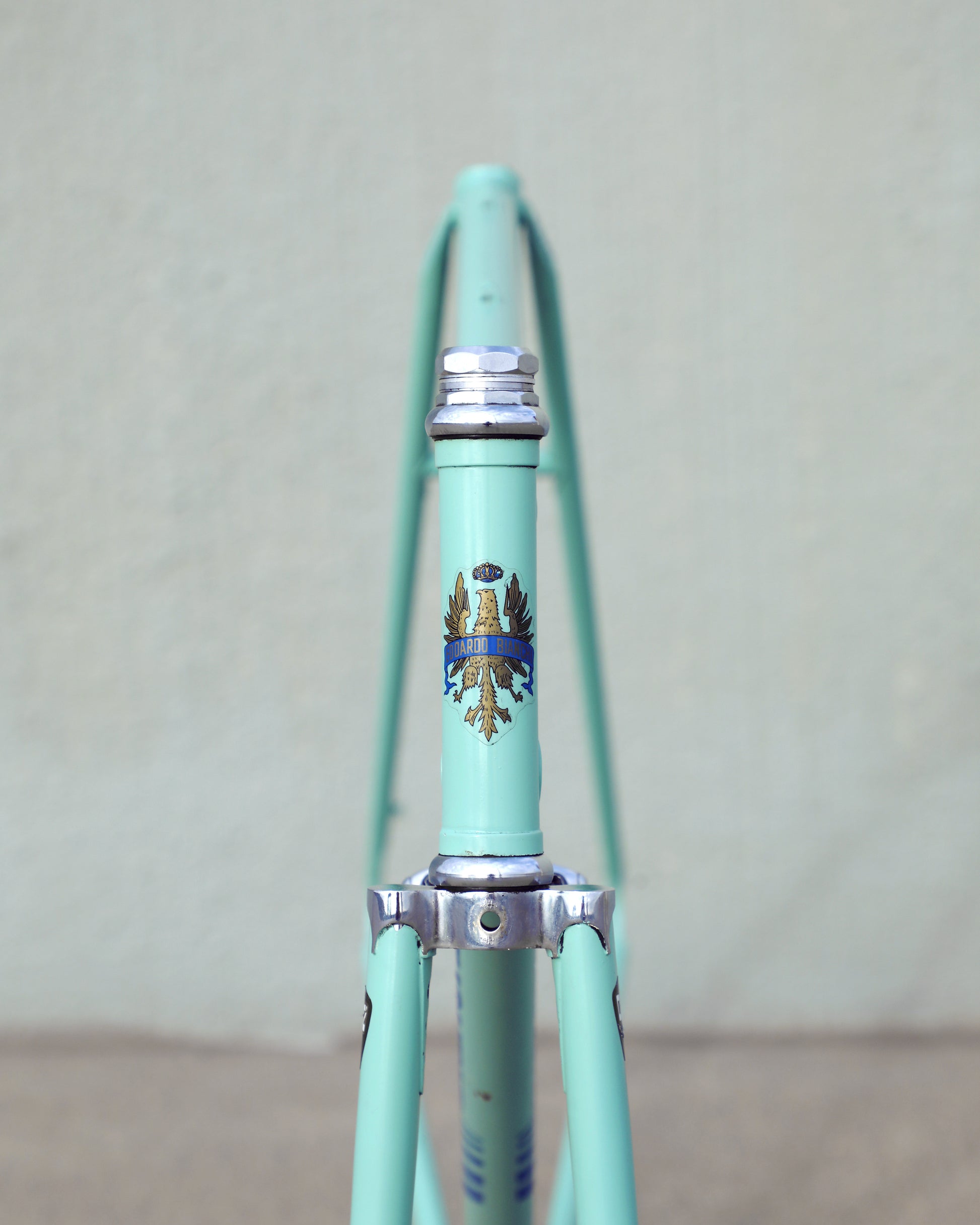 This vintage Bianchi Professional frameset is in good condition but shows sign of use. The Professional was second in line to the Specialissima and came in two different colors - Celeste and Amethyst - this one being finished in Celeste. The frame is made with 022 Ishiwata double butted tubes. Many high end steel bikes at the time were made with Ishiwata tubing, including the RB series from Bridgestone. This frame was also made in Japan so it's no wonder they decided to construct them out of Ishiwata tubes. It's a great looking frame and will surely turn heads on the road!