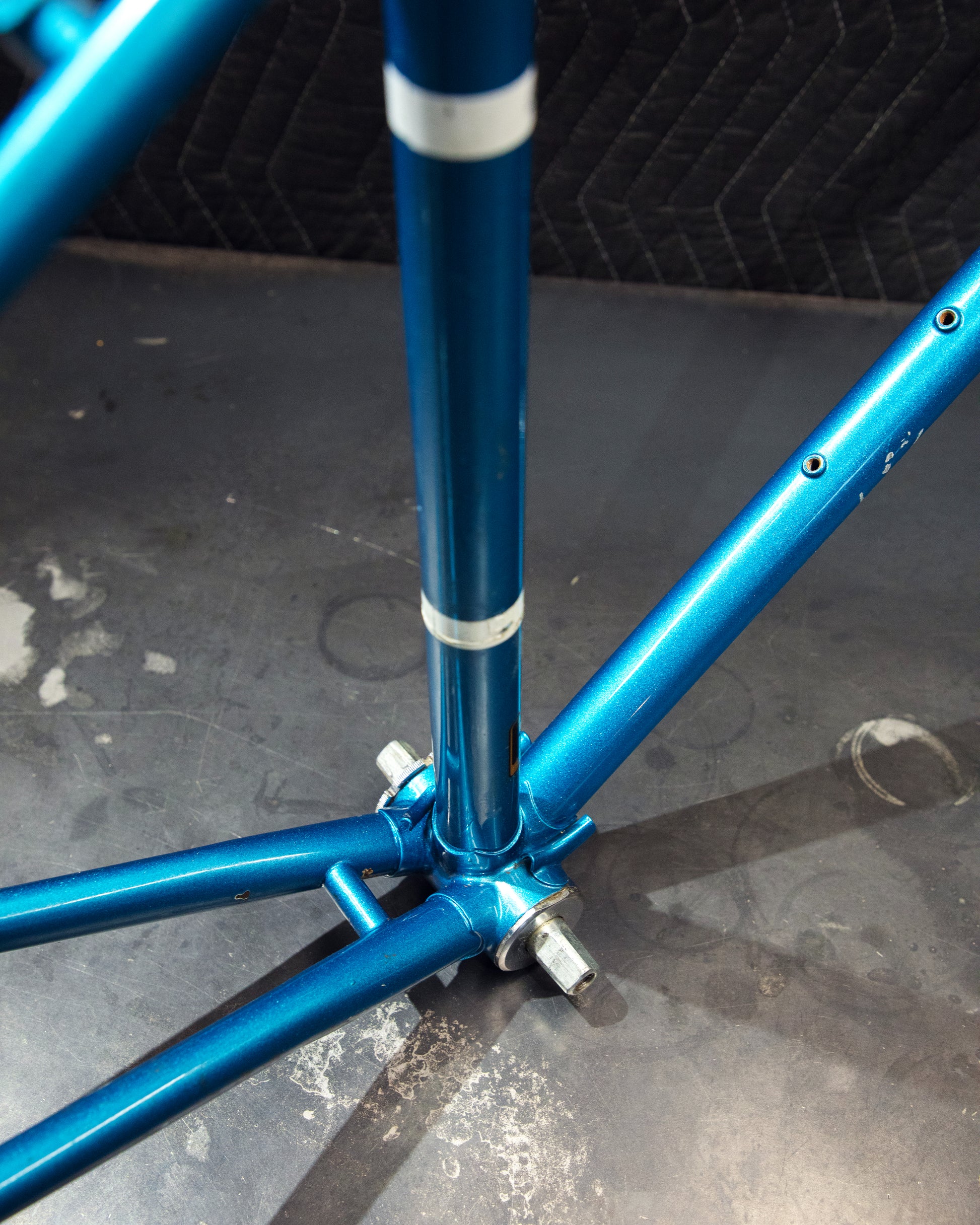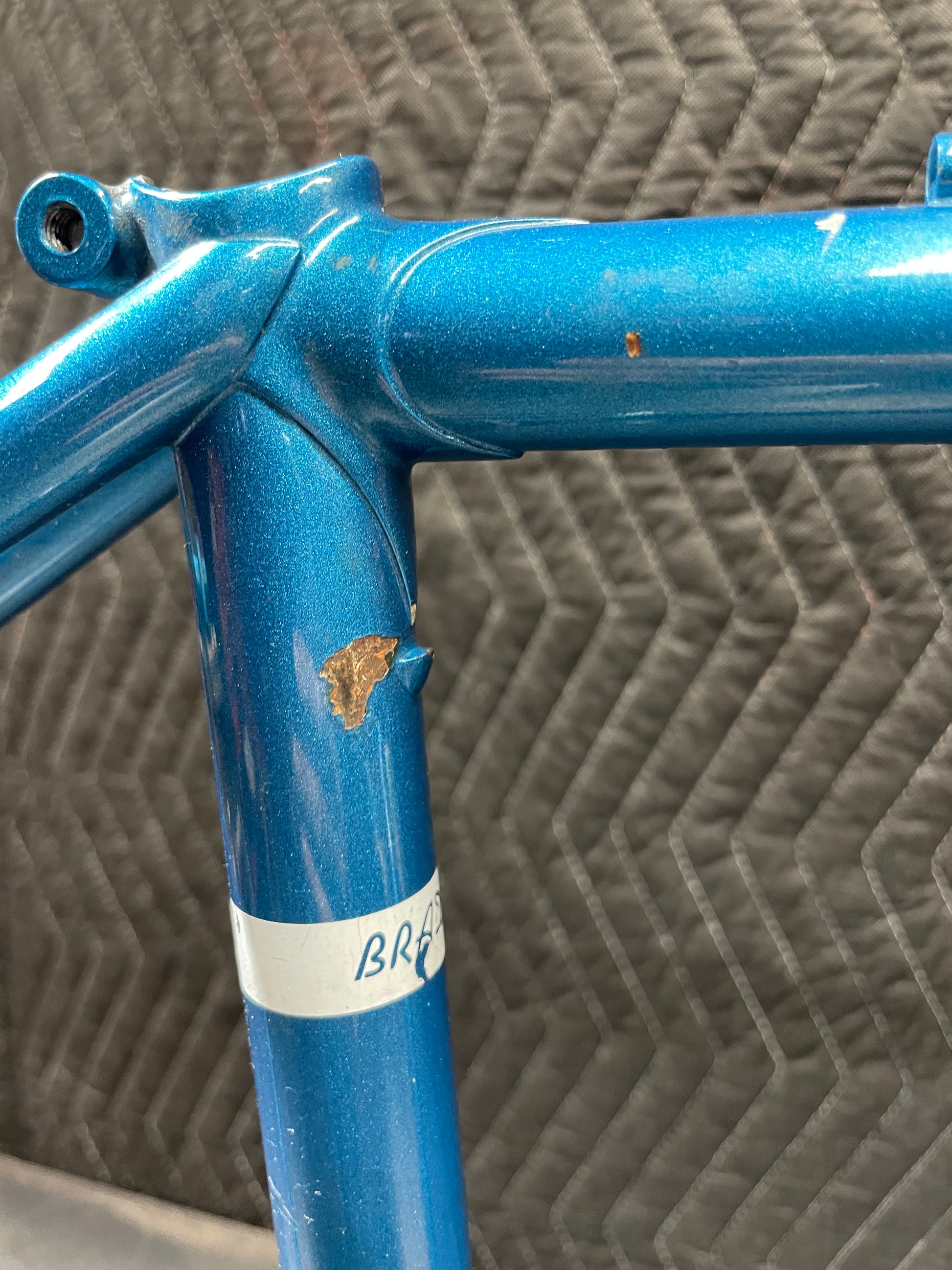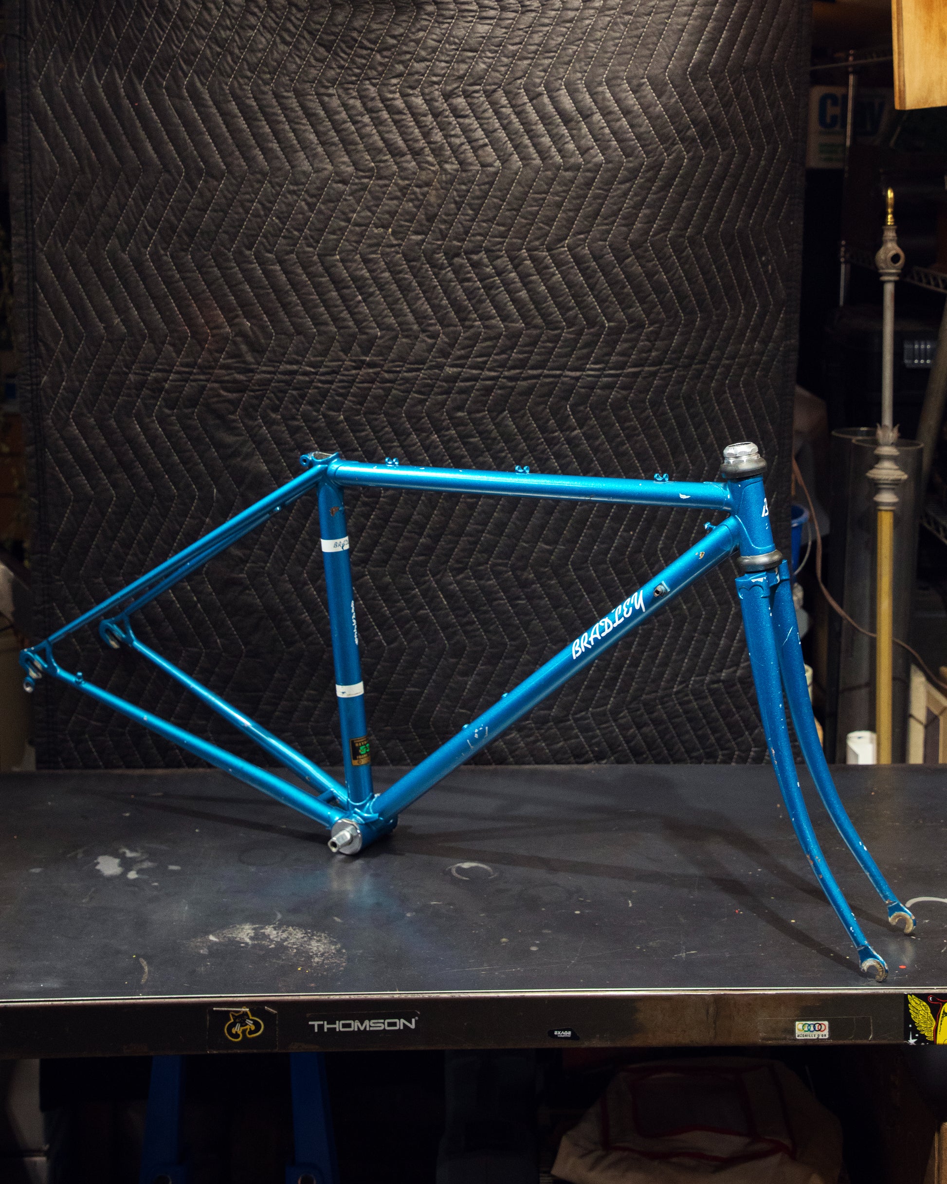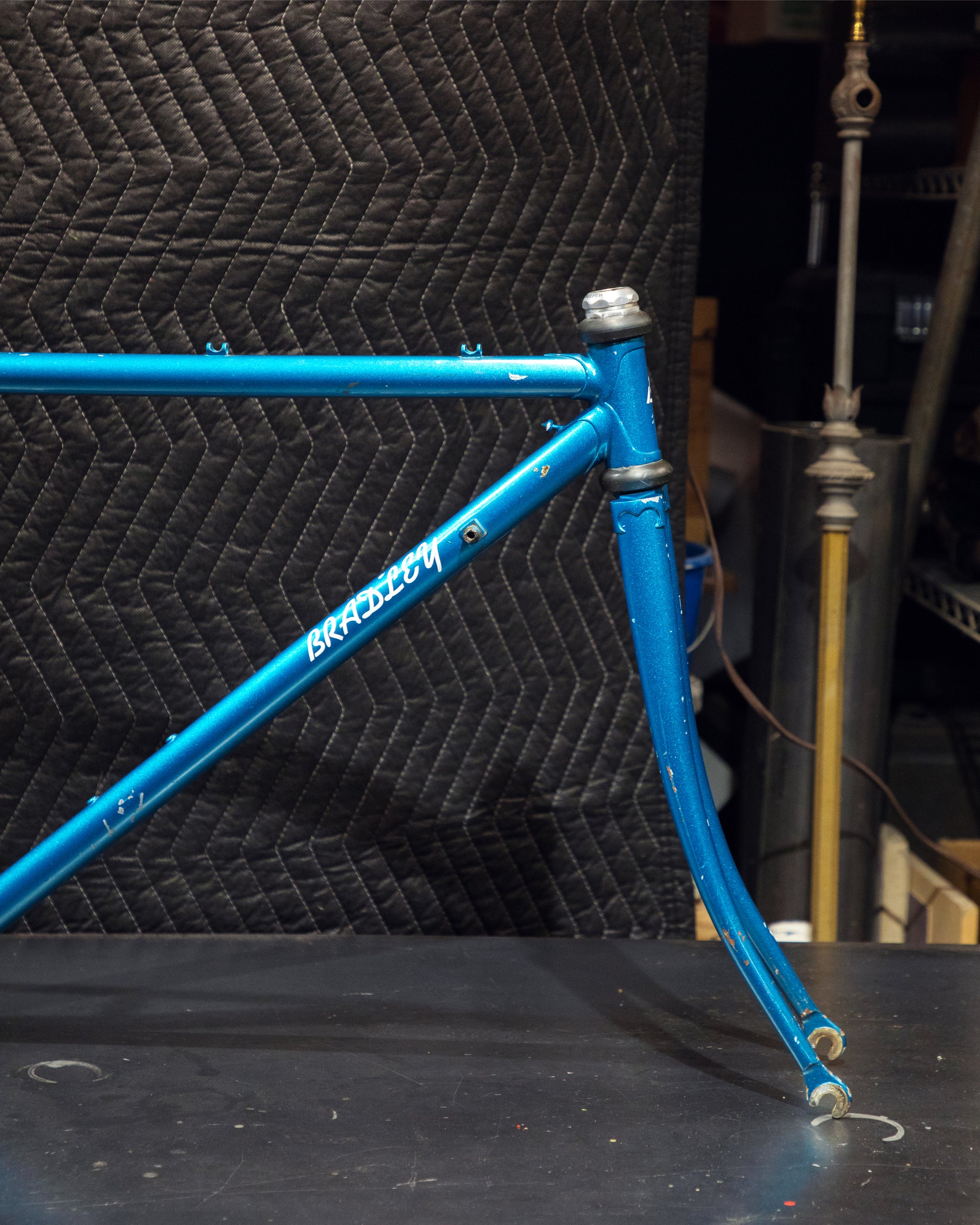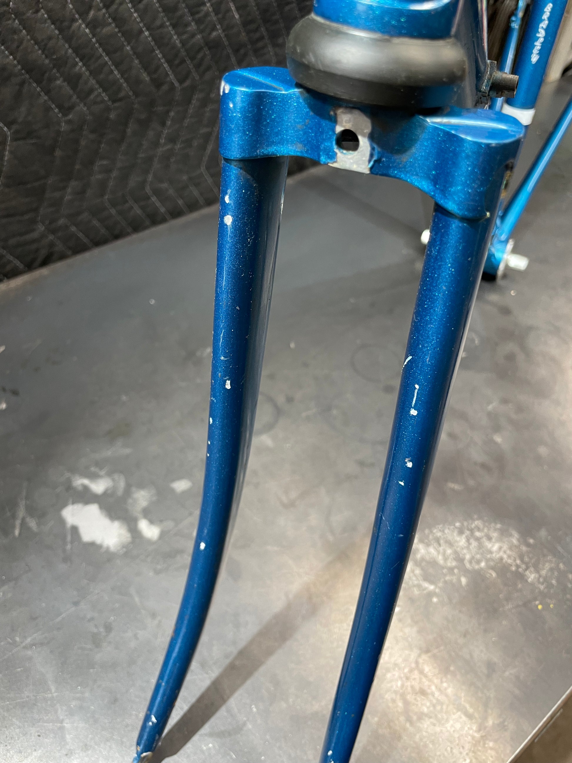 Not much could be found online about this Bradley frame. It's made with Reynolds 531 and had mostly Stronglight components. Gipiemme dropouts with overall great lines and overall craftsmanship. Comes with Stronglight headset and bottom bracket - both could use some fresh grease! No dents, bends, or cracks. Has a a decent amount of paint chips.