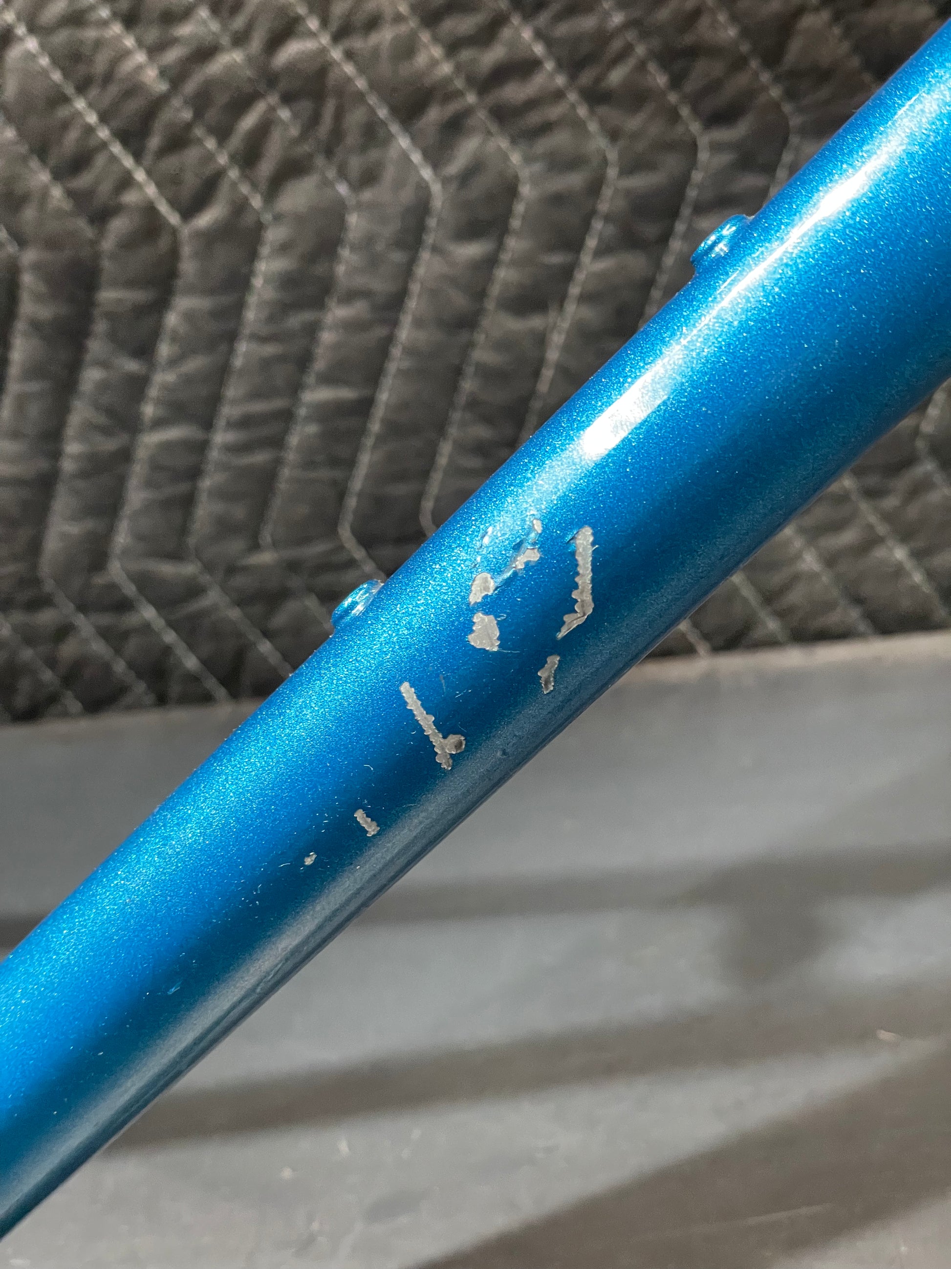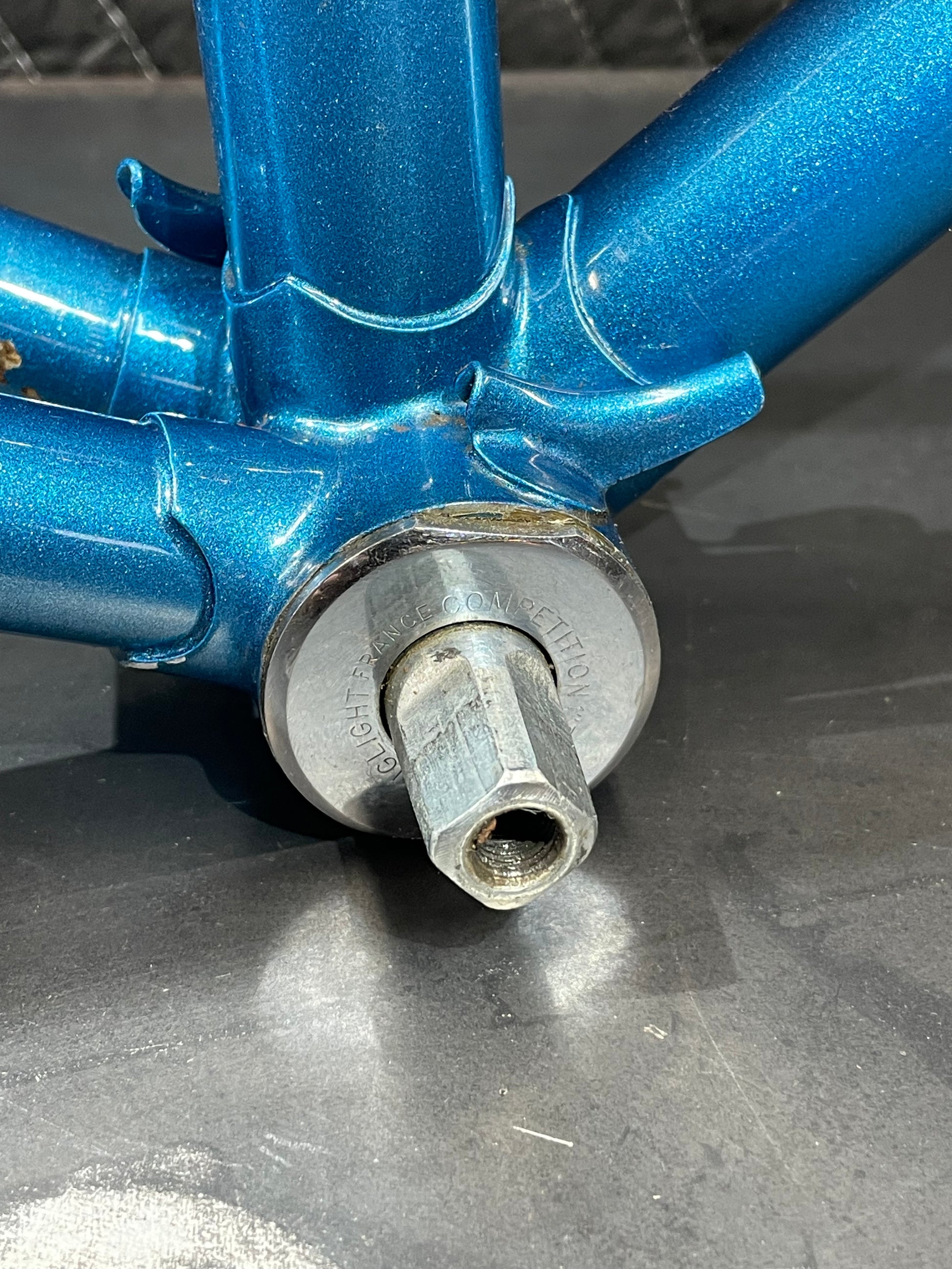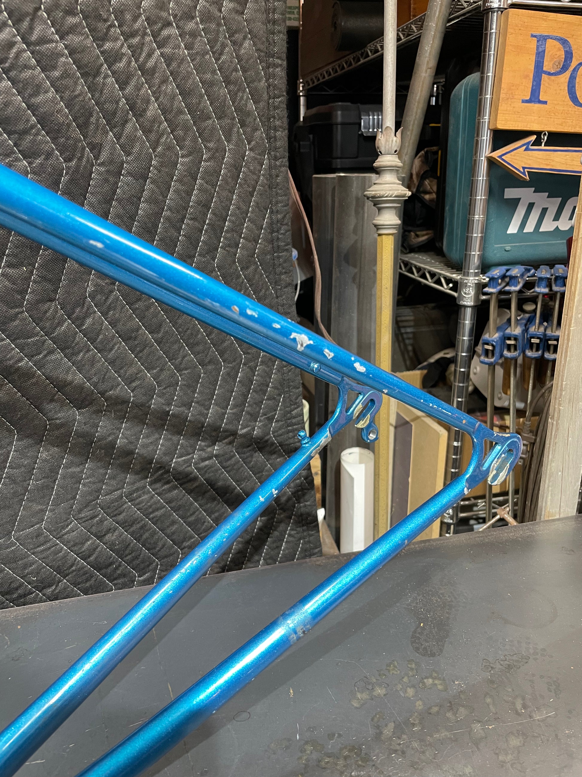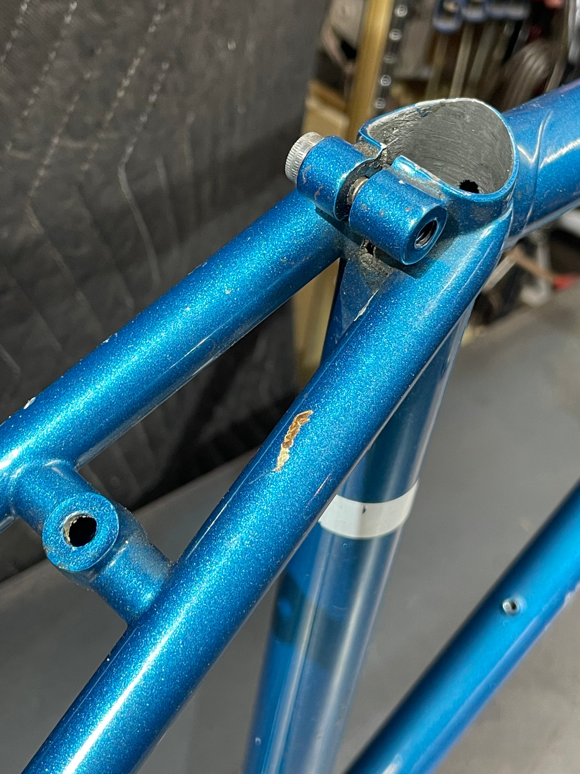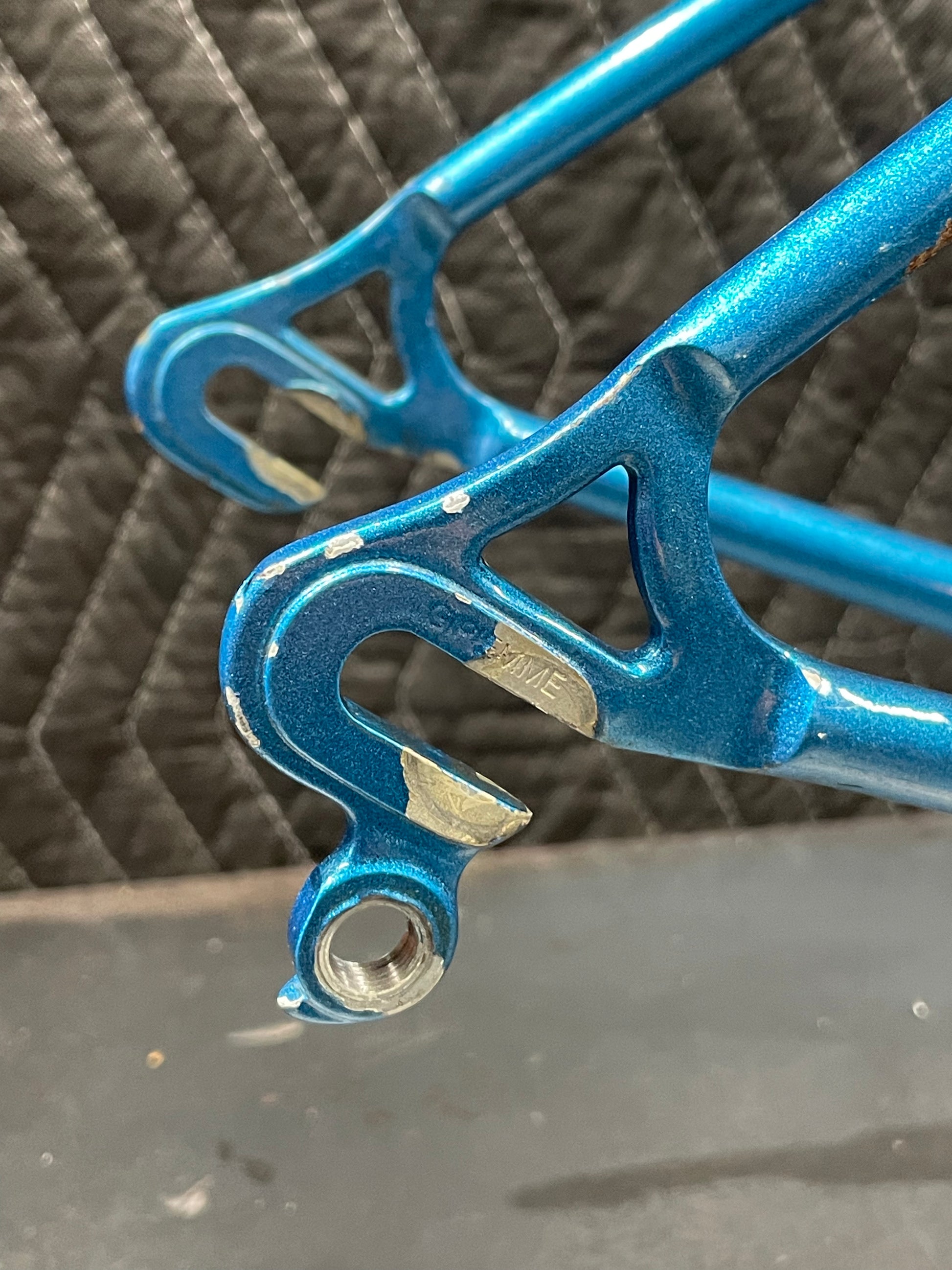 Not much could be found online about this Bradley frame. It's made with Reynolds 531 and had mostly Stronglight components. Gipiemme dropouts with overall great lines and overall craftsmanship. Comes with Stronglight headset and bottom bracket - both could use some fresh grease! No dents, bends, or cracks. Has a a decent amount of paint chips.