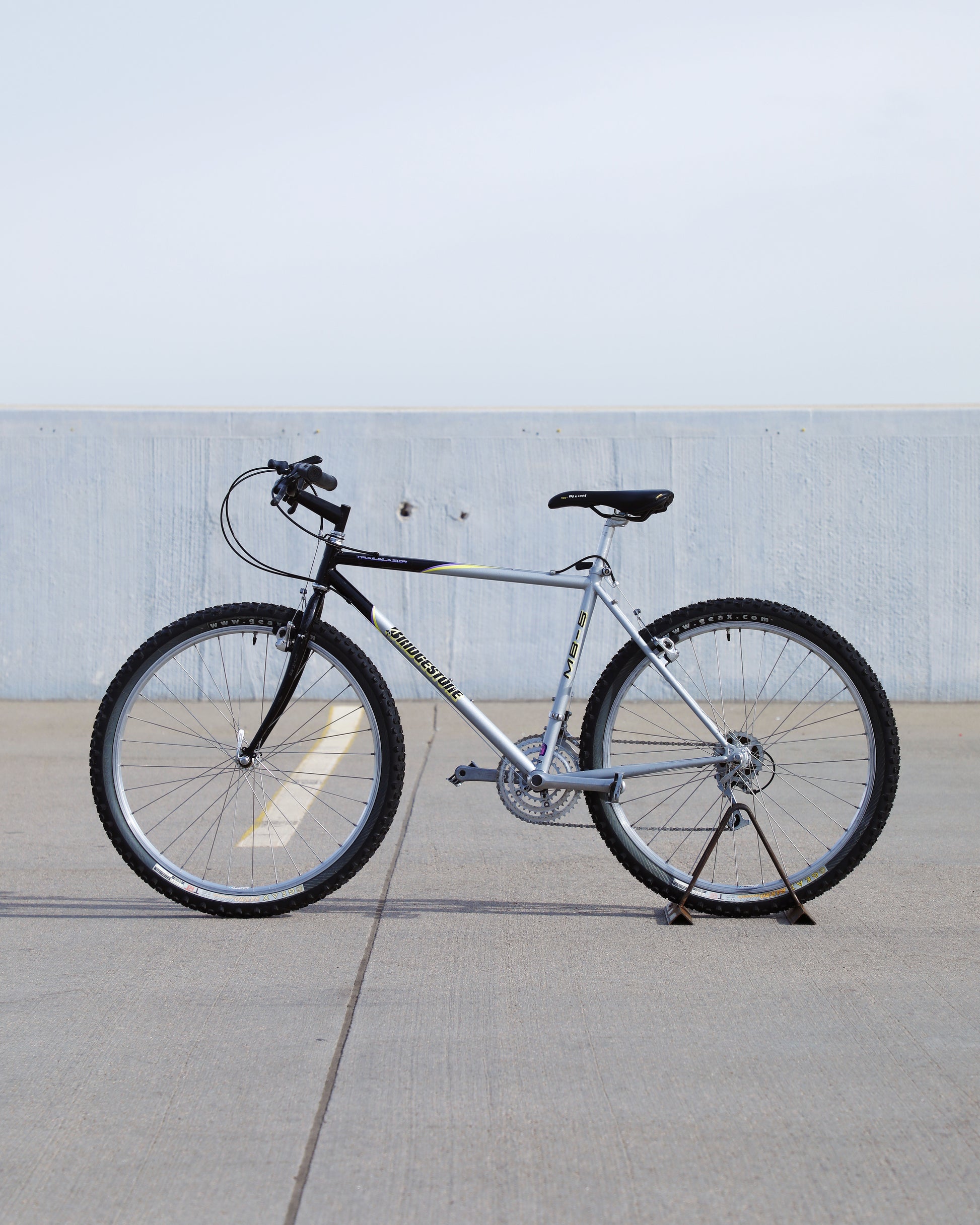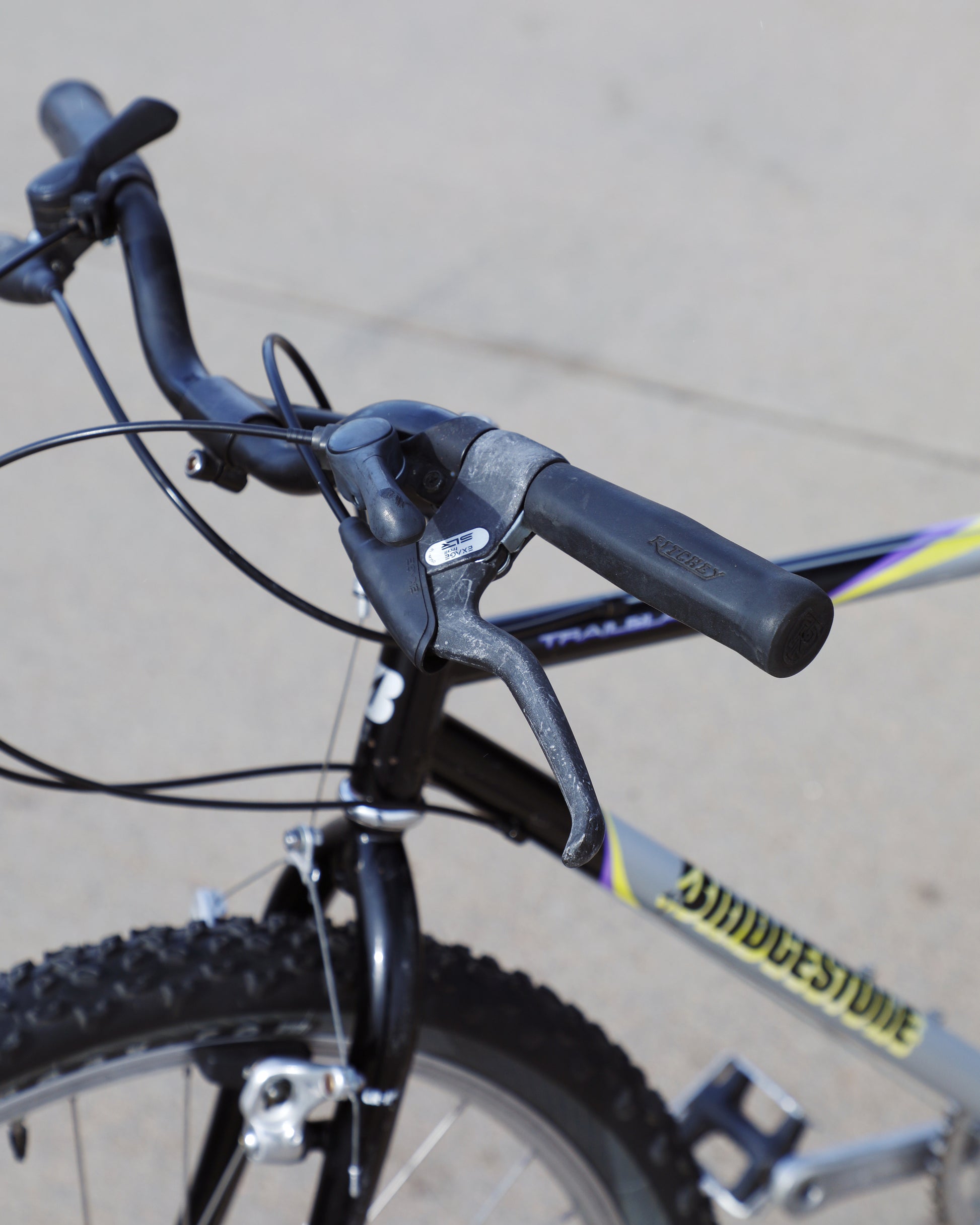 The frame is in good condition but shows sign of use. There are no dents, cracks, or bends in the frame. The paint has seen better days, especially on the fork. The "trailblazer," decal on the drive side is mostly gone. You can tell it was used as a commuter and can see where the U-lock has rubbed up against the frame. It's equipped with a full Exage group that feels responsive and durable. Newer 2.3 tires have been installed and this thing is ready to rip! This is a ~choose your own path~ kind of bike.
