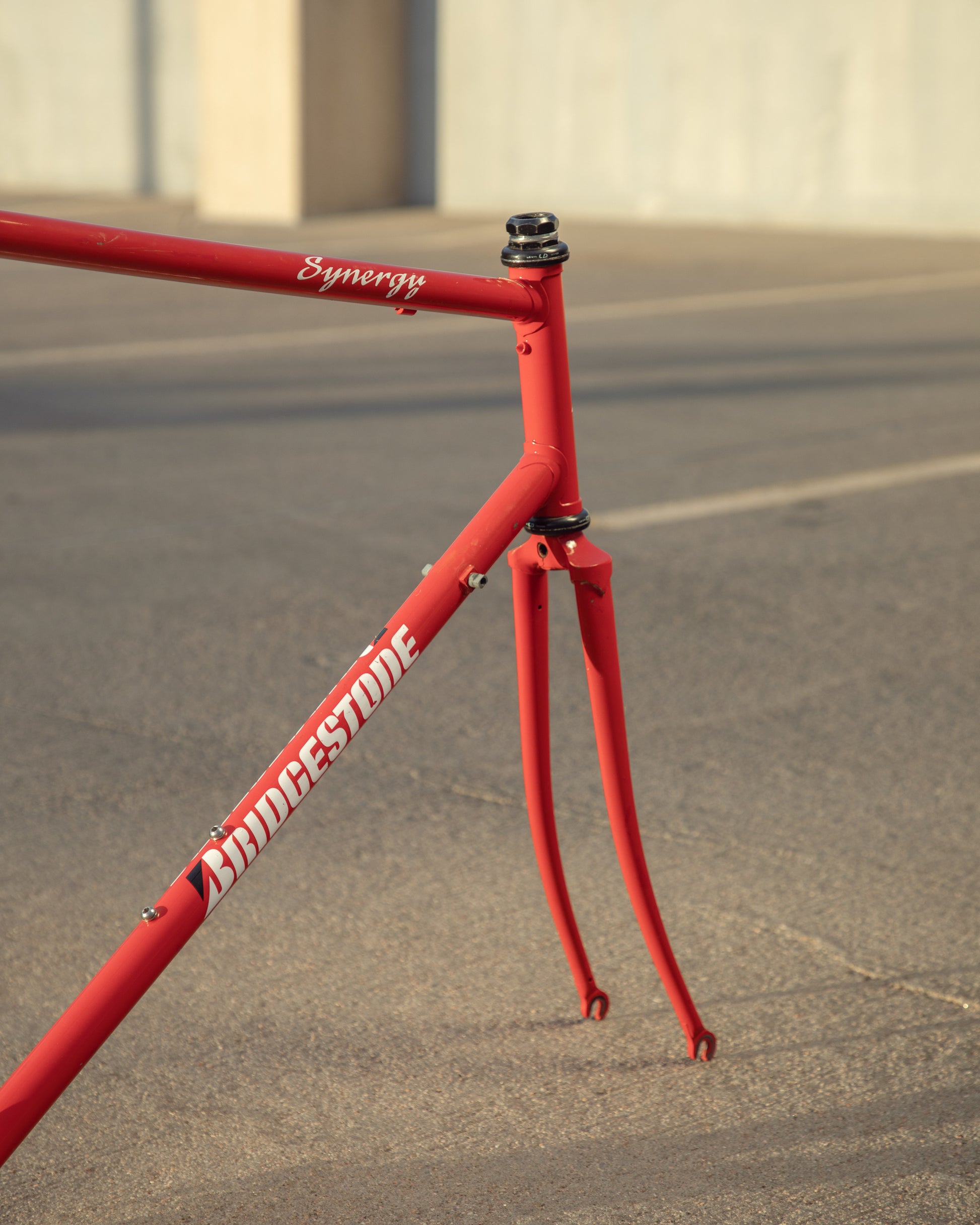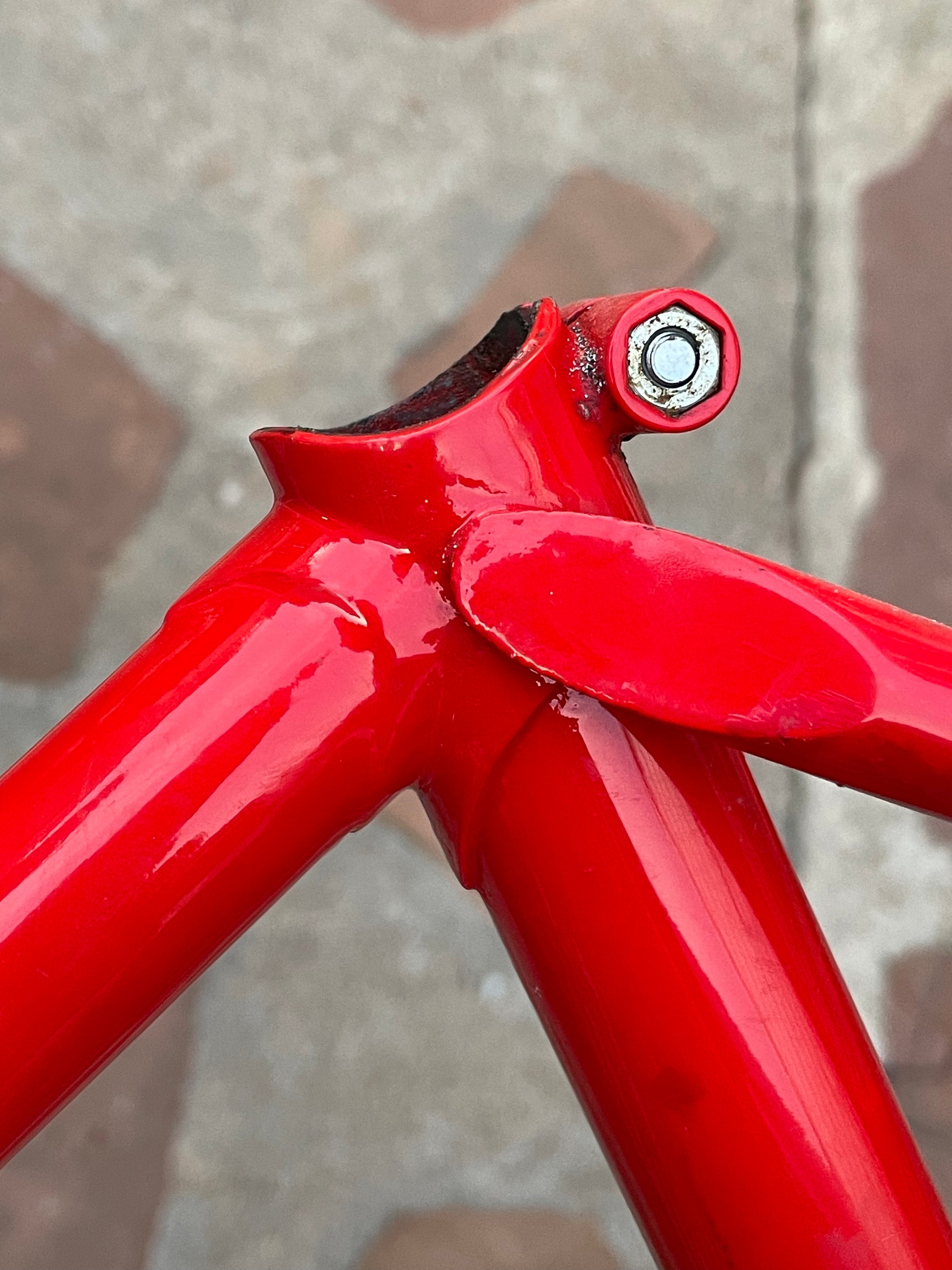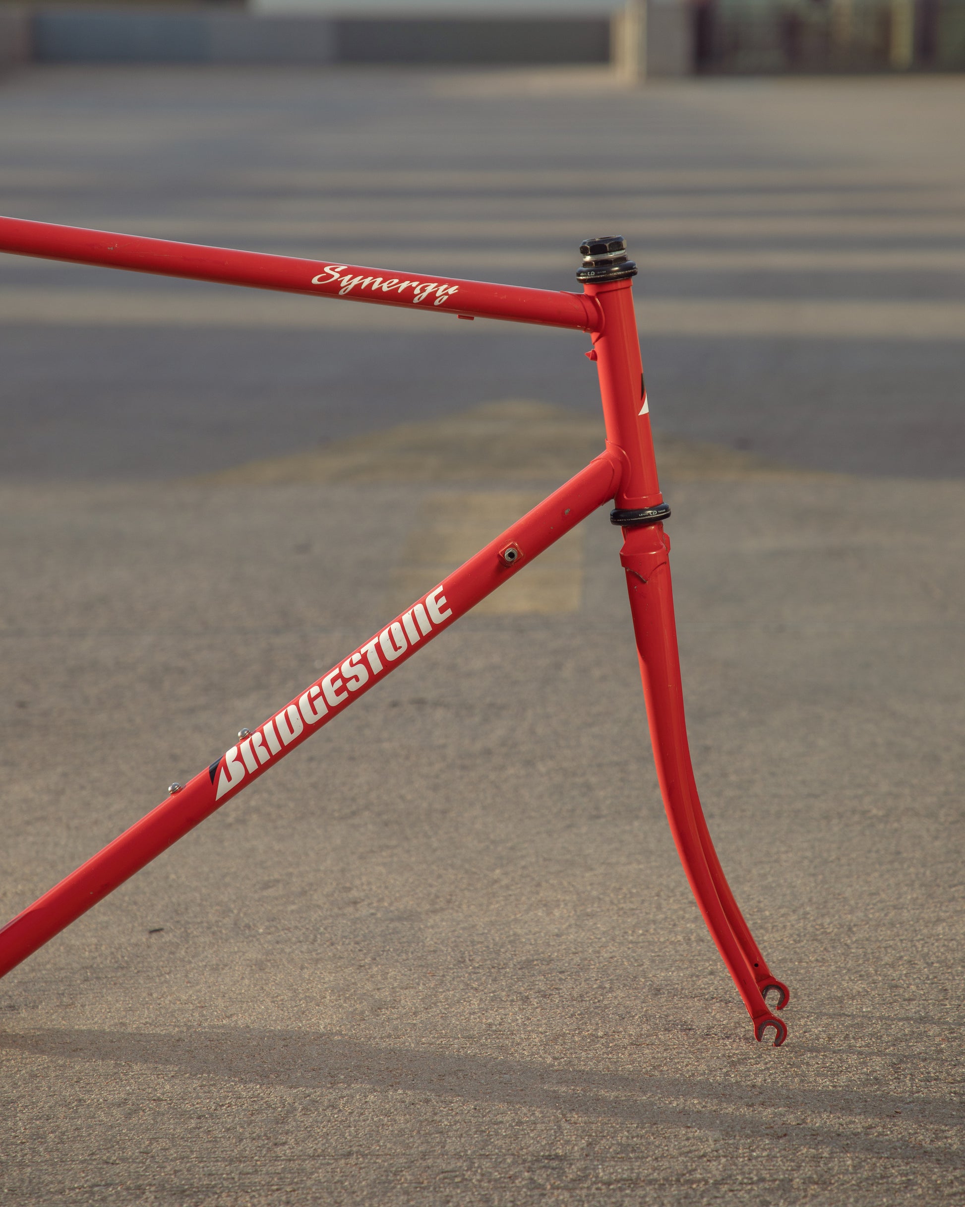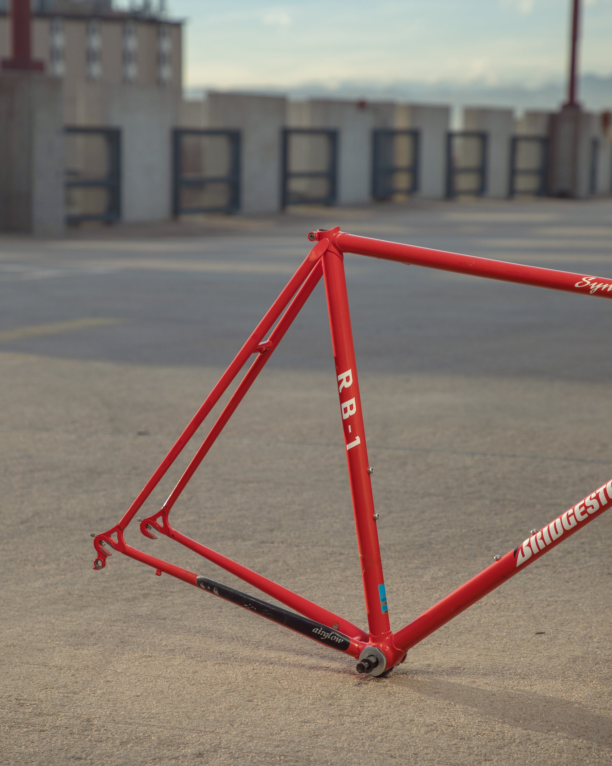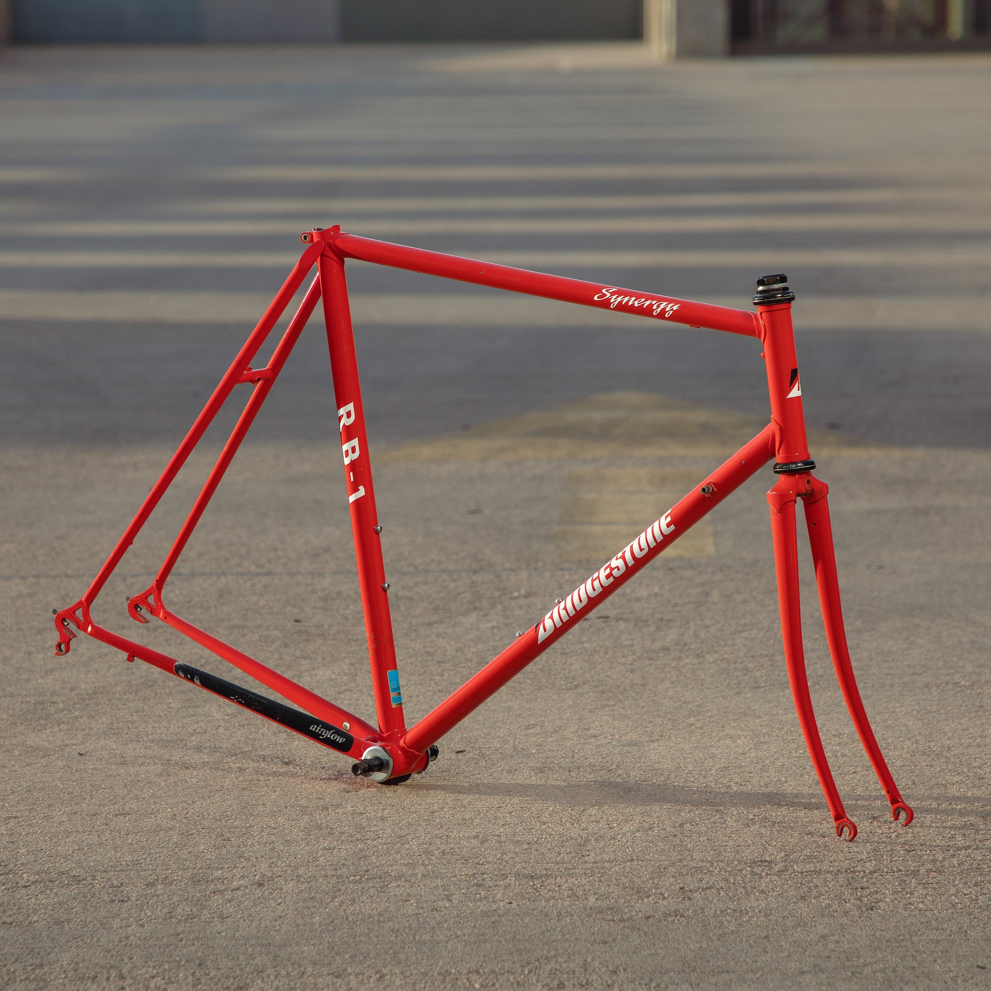 Bridgestone RB-1's have a cult following for a reason. They're known for their subtle yet responsive ride and beautiful craftsmanship. This particular frame is in good condition but shows sign of use. It looks like someone did some touch up spray work around the seat cluster, as it looks like the paint is built up around the lug. There are some other marks/touch ups on the frame but no dents, bends, or cracks. Headset and bottom bracket have not been serviced, but both feel great. Please take a look at all photos to get a better understanding as to the condition this frame is in.