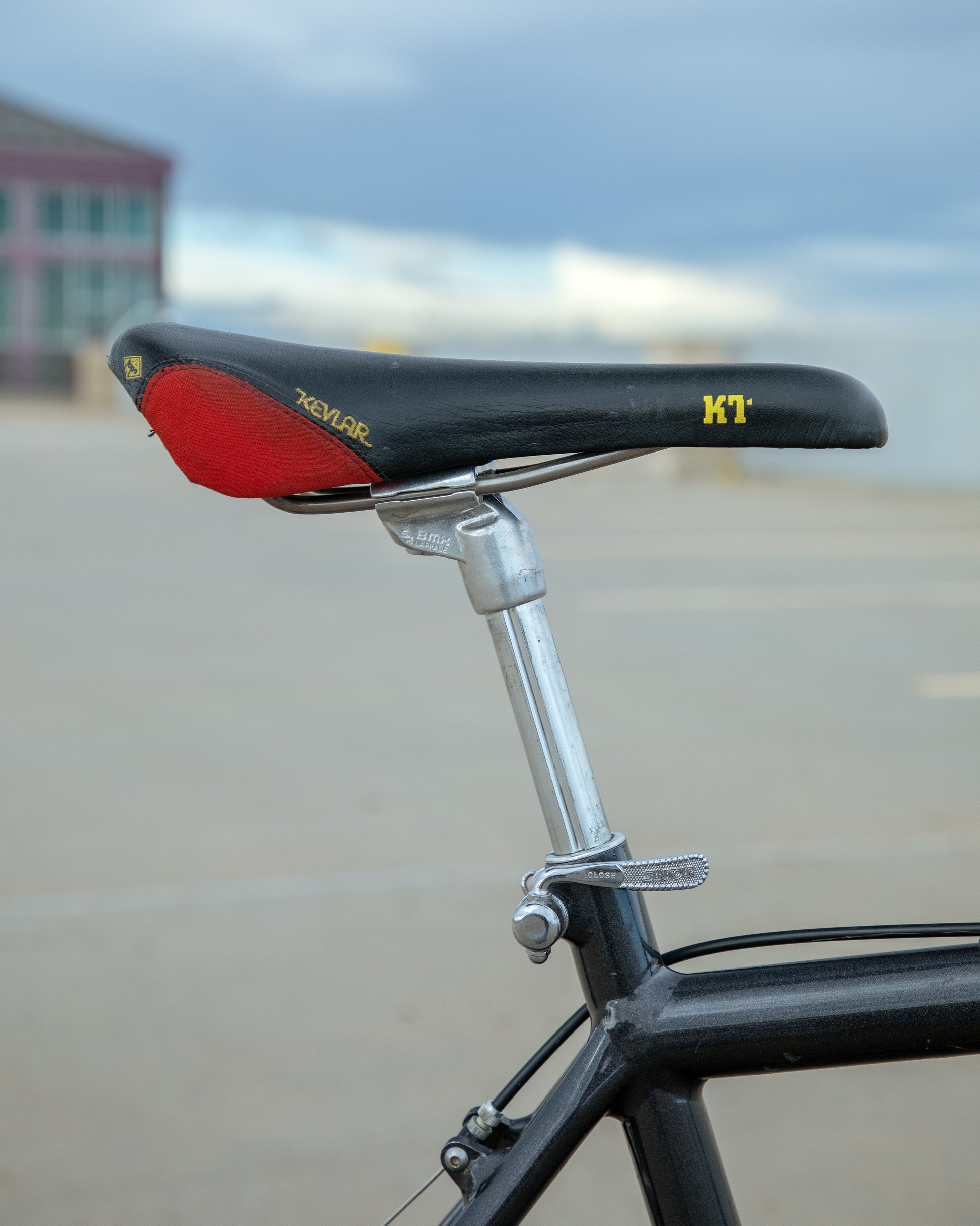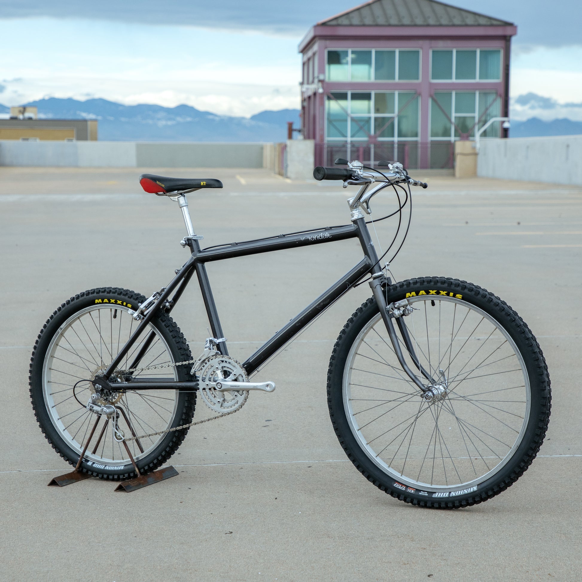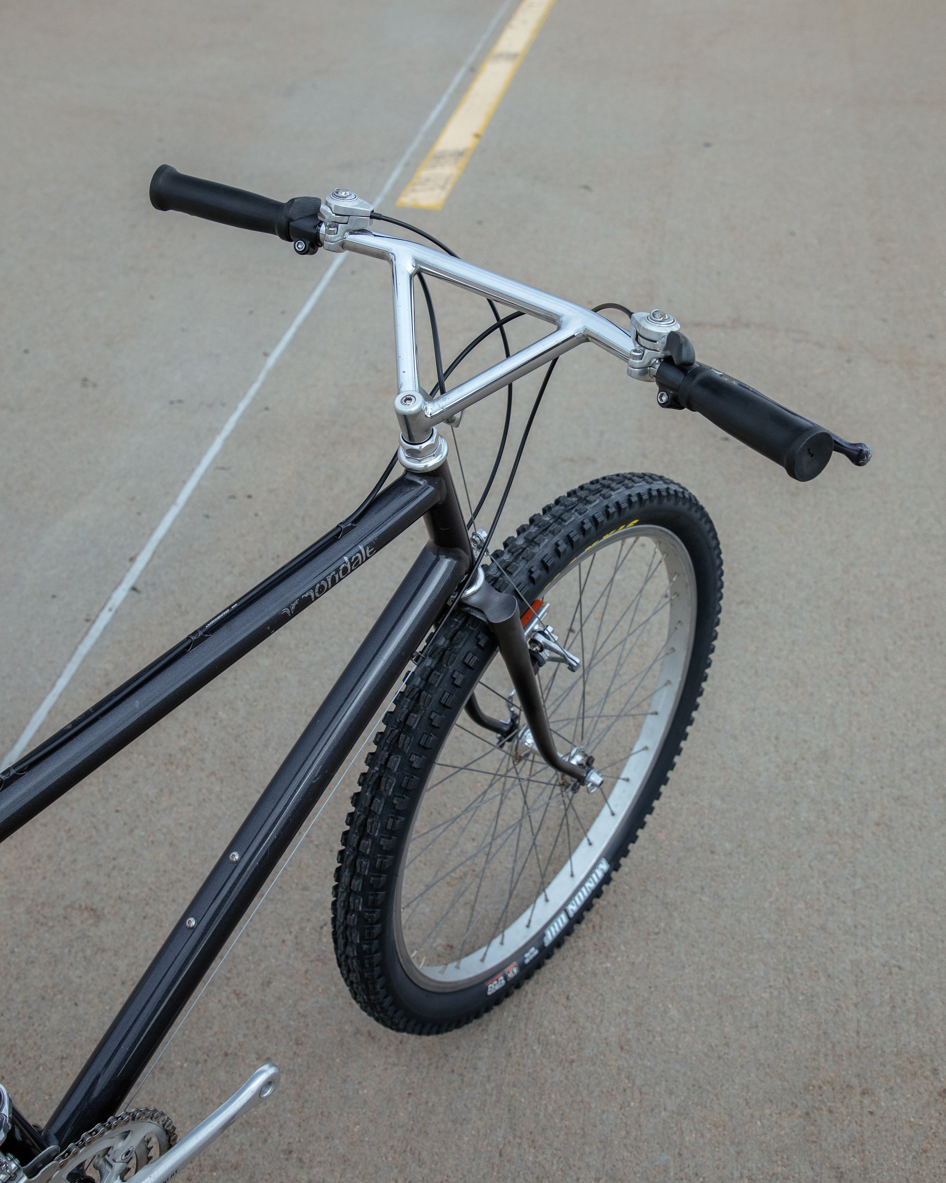 The Beast of the East! The SM500 mullet shredder! This is a very unique, early Cannondale mountain bike. It was made in 1985, right around the dawn of mass produced mountain bikes. It comes equipping with some of the coolest components of the time, some being the Deer Head rear derailleur and Specialized brazed bar/stem. Another feature on this bike that I think is the coolest is the 24" rear wheel and the 26" front wheel. It gives it a very slack ride, and shines at higher downhill speeds.