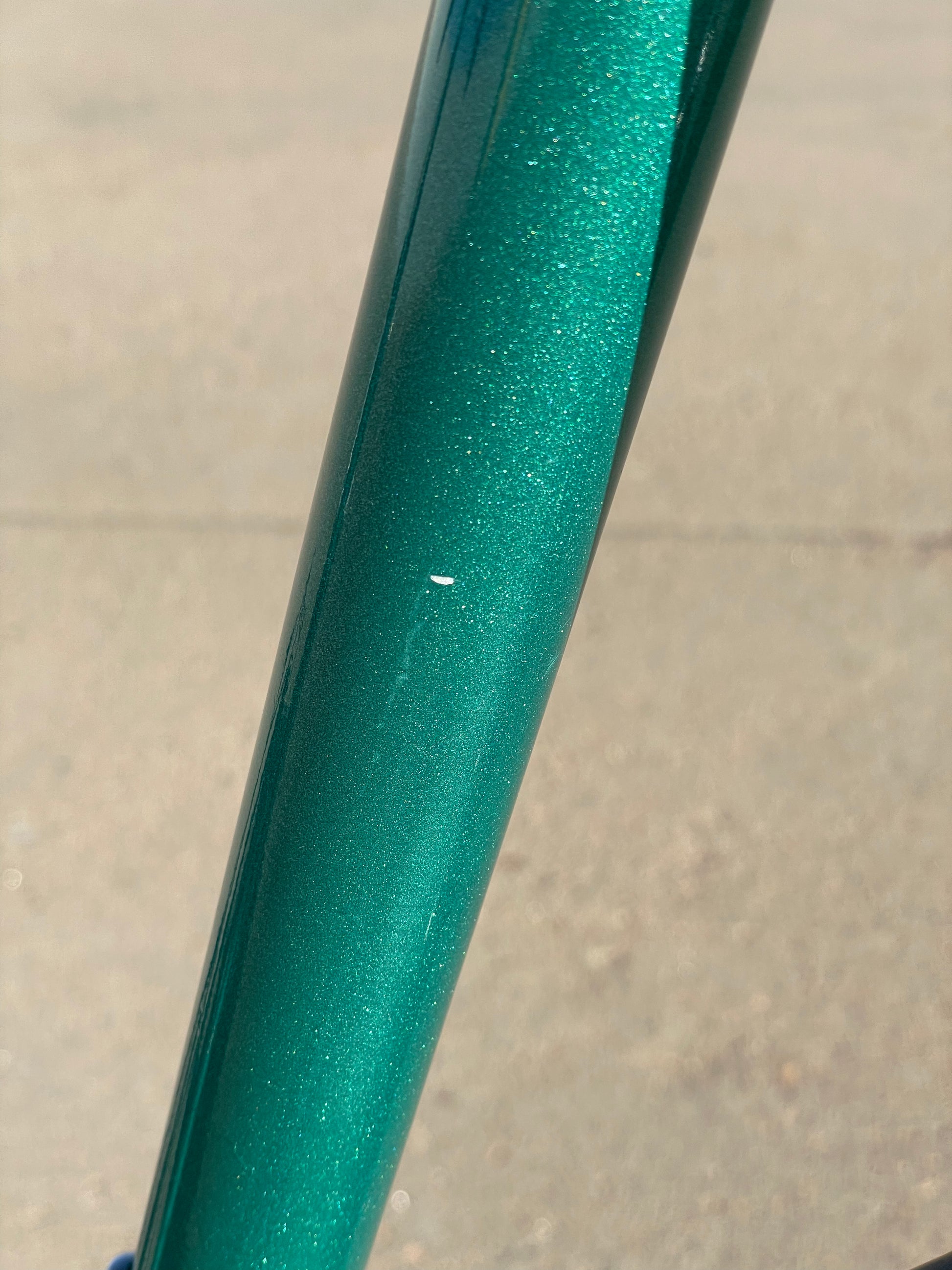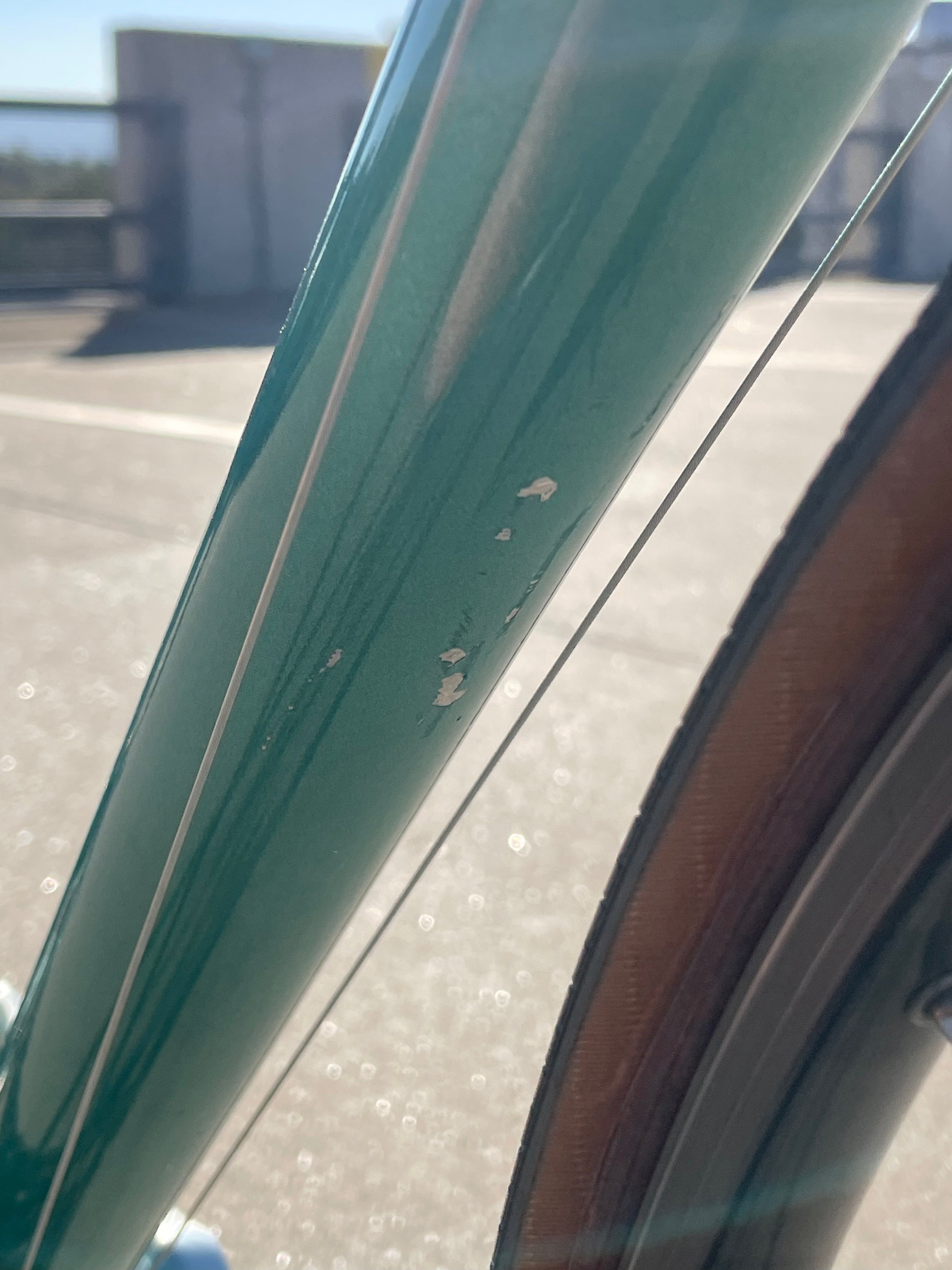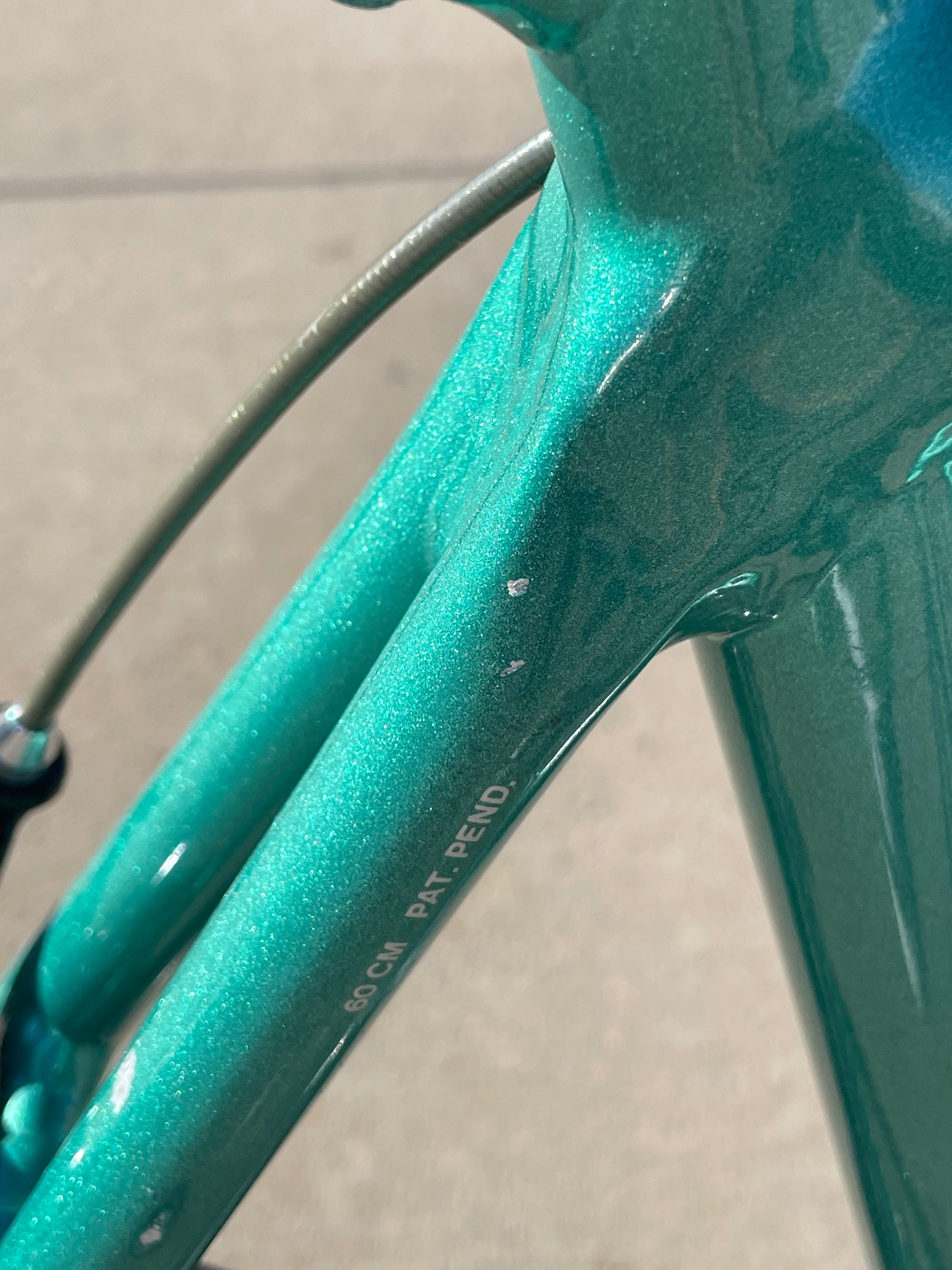 There is some sign of use. There are some paint chips here and there but no dents, cracks, or bends. The tires are older but still have a little life in them. The bartape is also used. New shift cables have been installed. Please view all photos to get a better understanding as to the condition of this bike.