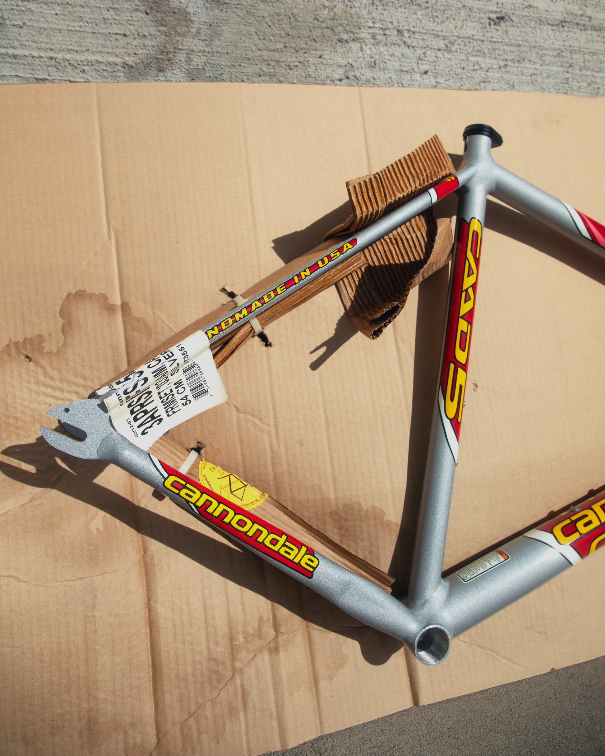 This is a very rare opportunity to purchase a 2003 Cannondale Track frame, still in the original packaging. The original owner purchased the this frame new and never got around to building it up. The steer tube is uncut and comes with a Ritchey headset. It still has the original bar code attached to the seat stay! Incredible! The frame is a 54cm. Please contact me if you'd like any specific info or more photos.