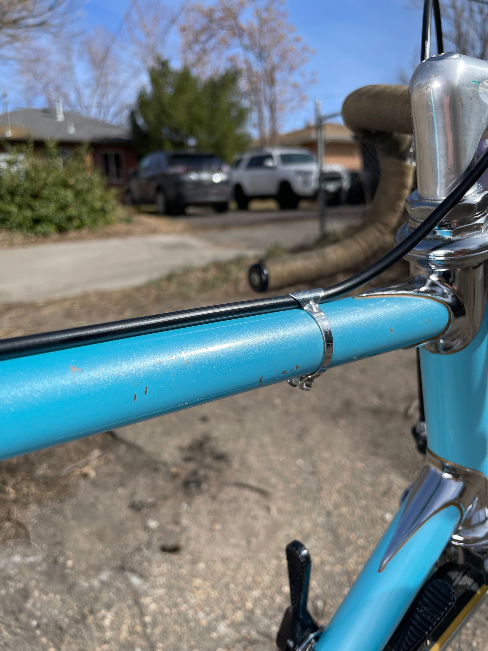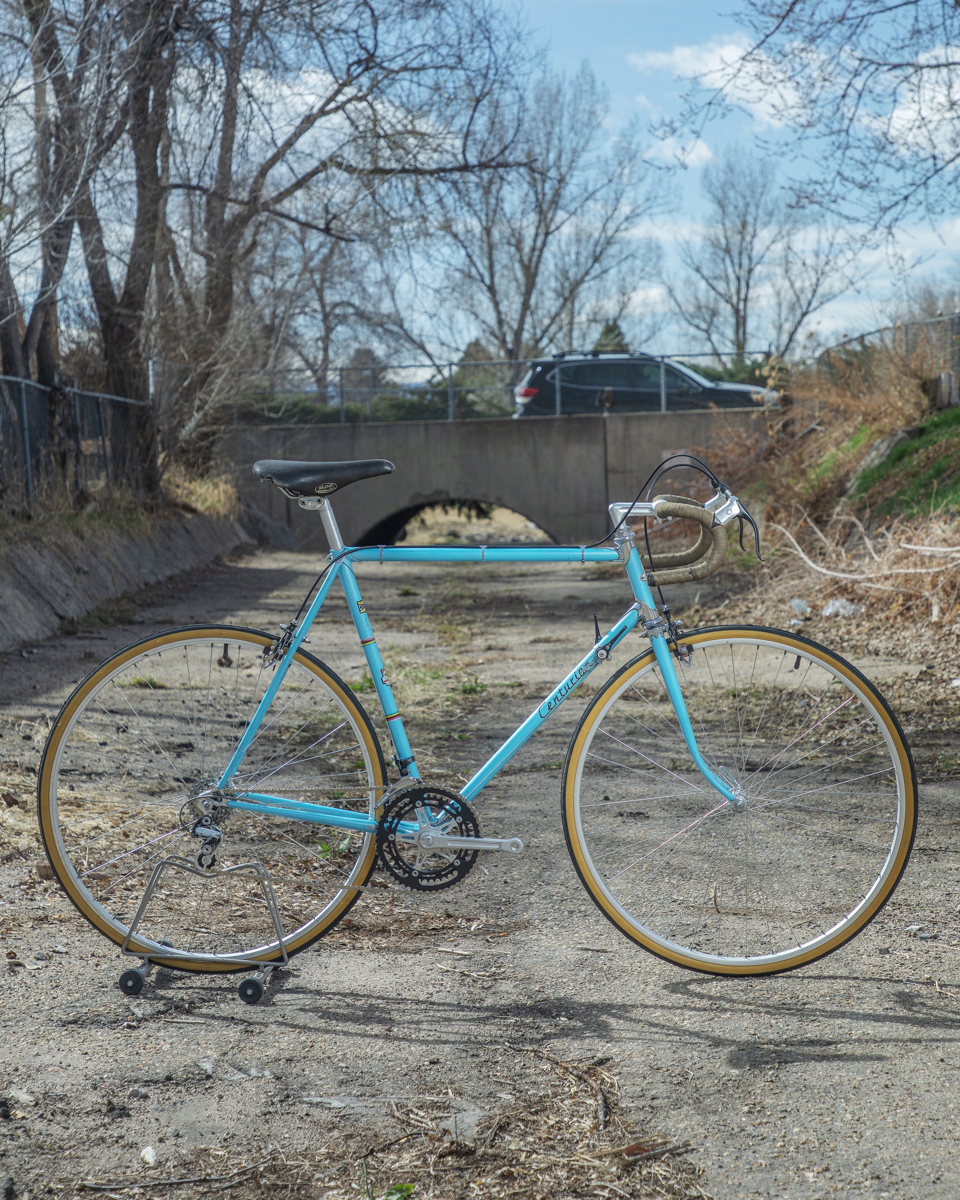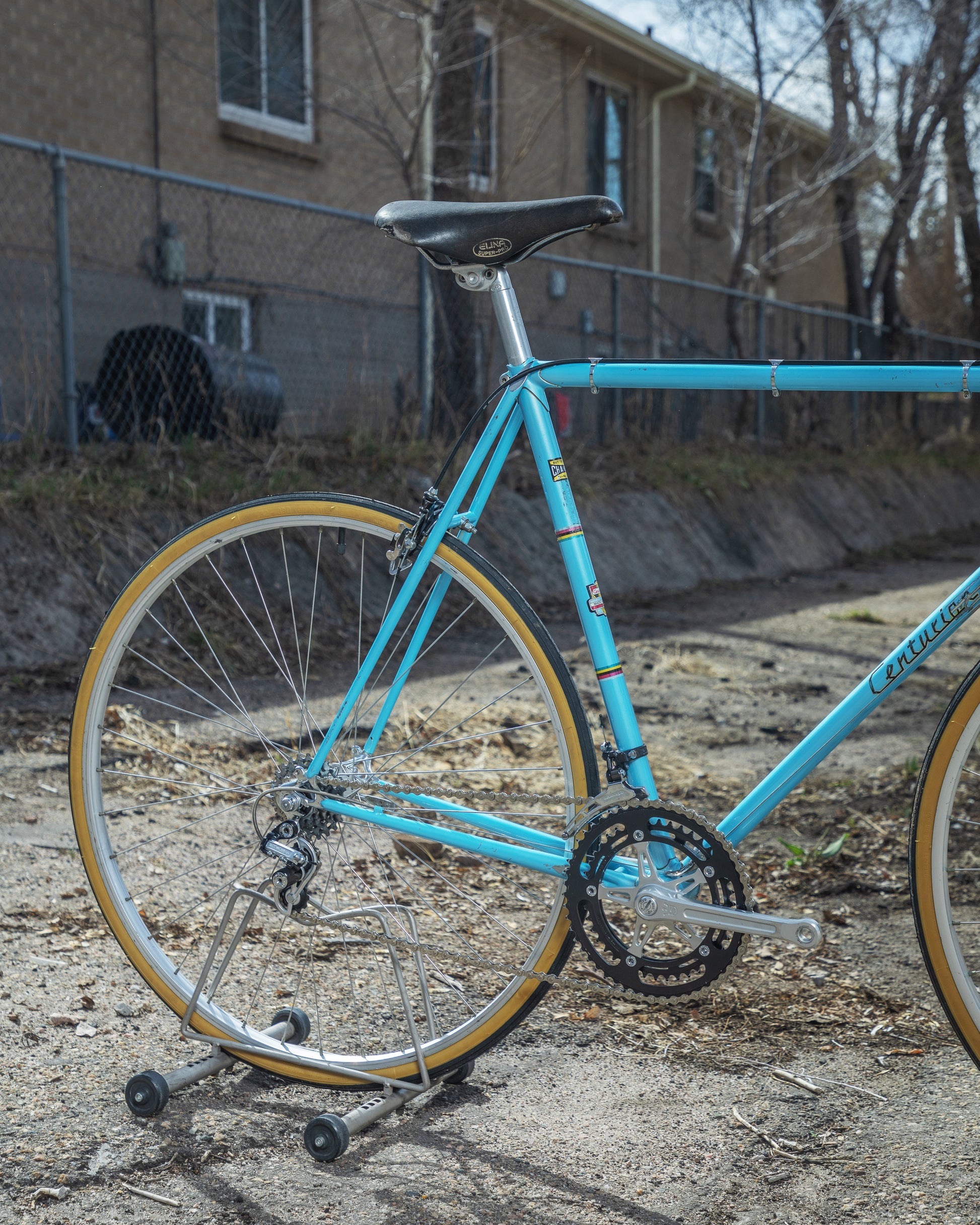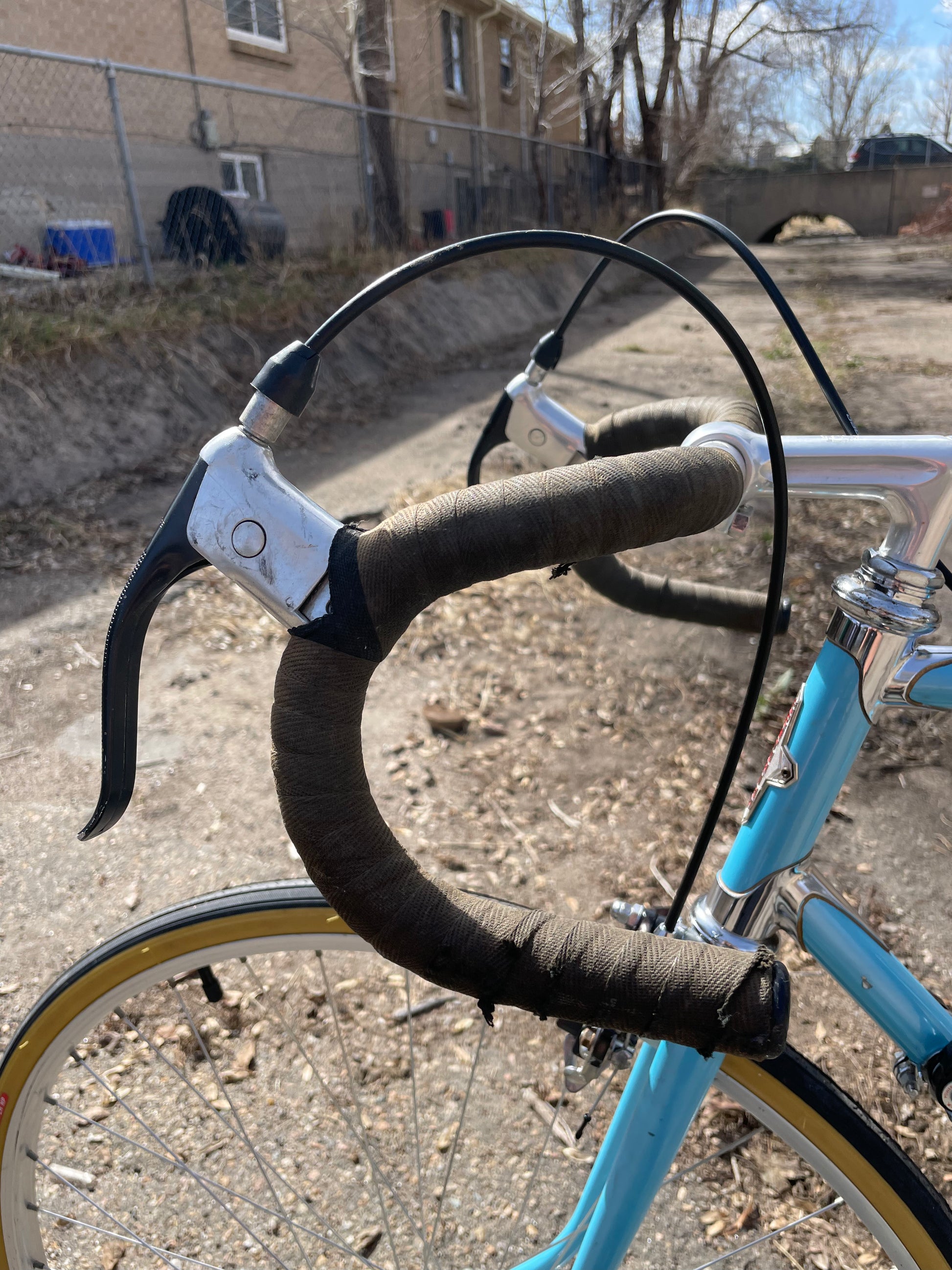 This Centurion Semi Professional is a beautiful bike! The metallic light blue with the chrome work is an elite combination. It takes on a totally different look when the sun catches it. It's in good condition but shows it's age. There are some paint chips here and there but no dents, bends, or cracks. The headset and bottom bracket were serviced and all parts were removed, cleaned, and then carefully reinstalled. I liked the look of the worn cloth bar tape so I decided to leave it alone. New shift and brake cables/housing have been installed. It has some cheaper, used tires on it but I didn't want to throw them away just for the sake of getting new ones. It was a well loved bike and is looking for a new loving home.