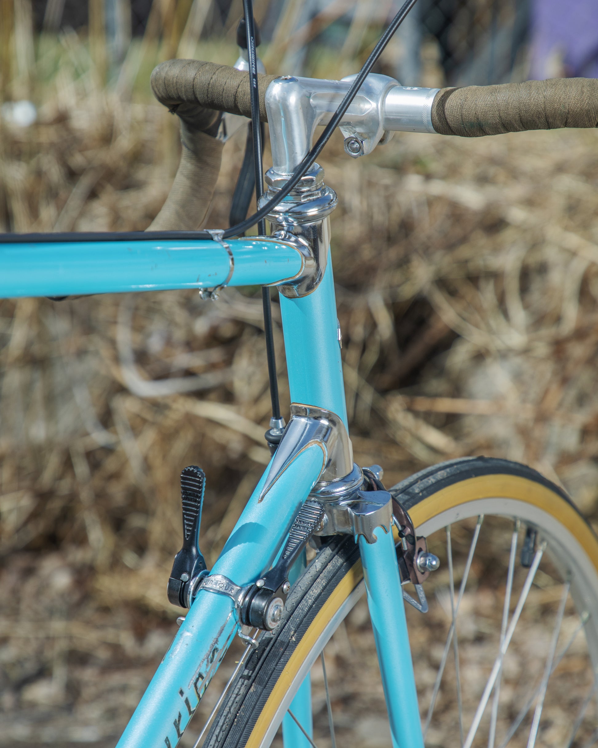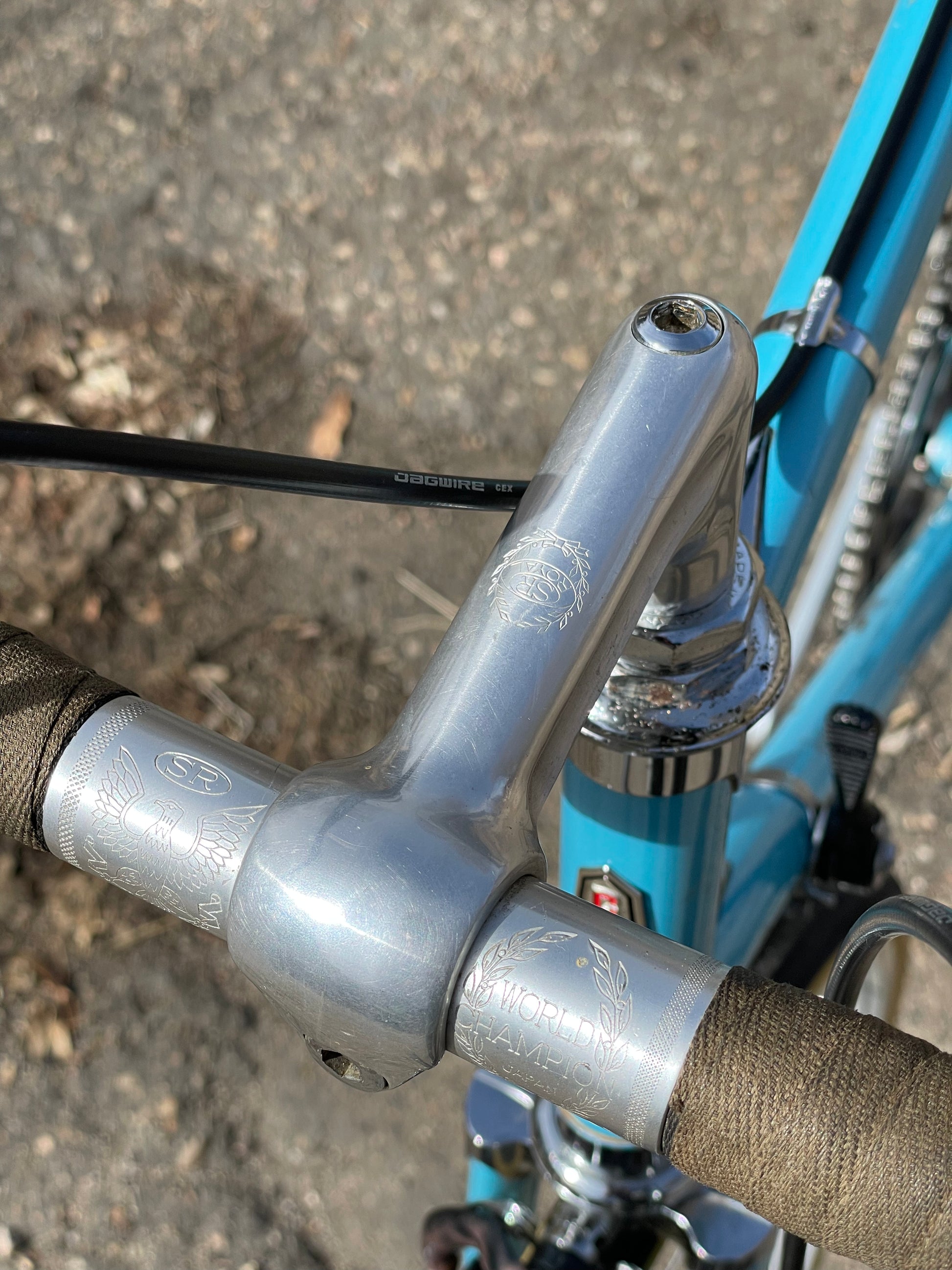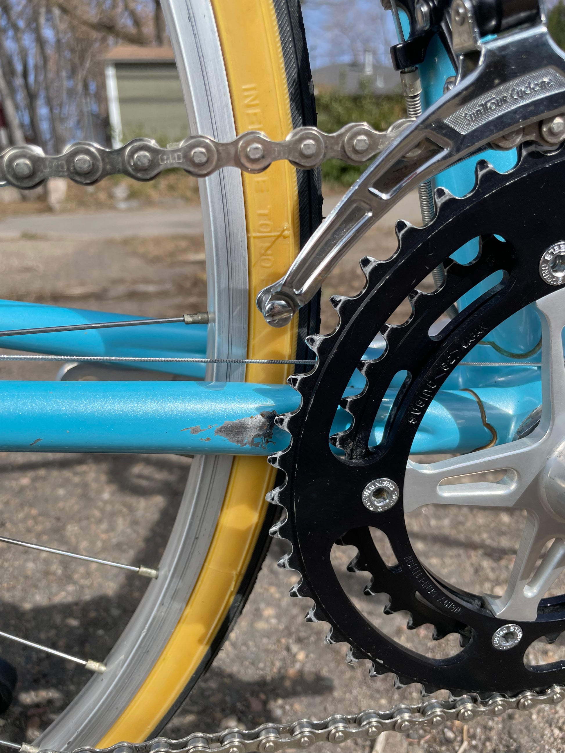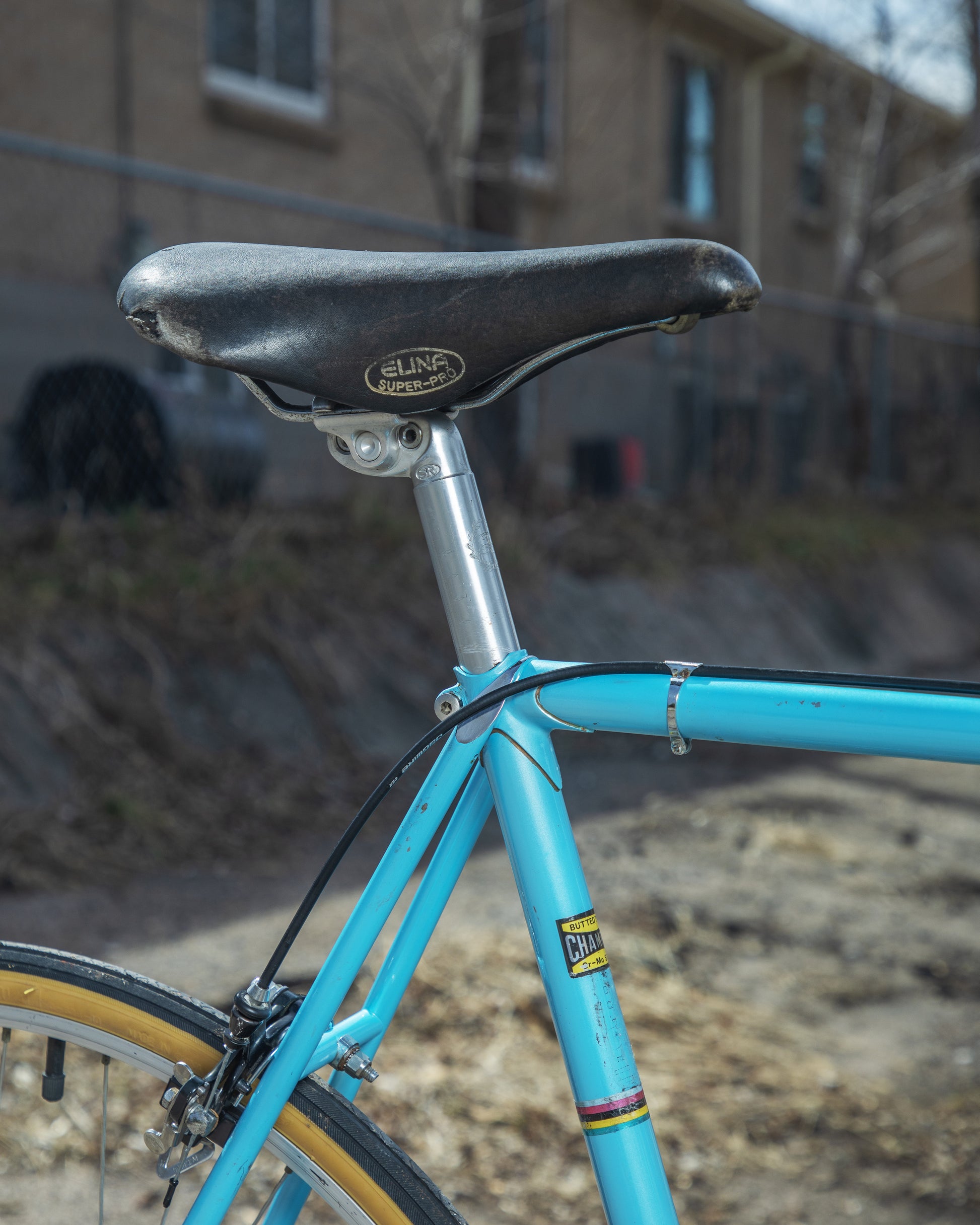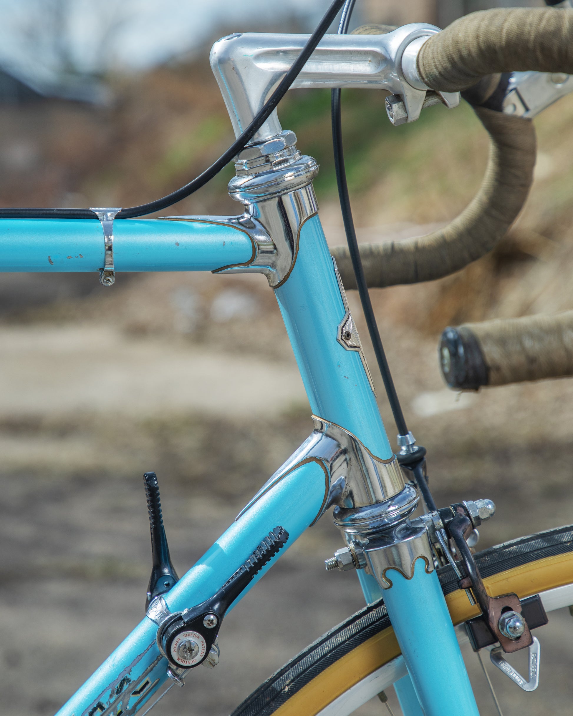 This Centurion Semi Professional is a beautiful bike! The metallic light blue with the chrome work is an elite combination. It takes on a totally different look when the sun catches it. It's in good condition but shows it's age. There are some paint chips here and there but no dents, bends, or cracks. The headset and bottom bracket were serviced and all parts were removed, cleaned, and then carefully reinstalled. I liked the look of the worn cloth bar tape so I decided to leave it alone. New shift and brake cables/housing have been installed. It has some cheaper, used tires on it but I didn't want to throw them away just for the sake of getting new ones. It was a well loved bike and is looking for a new loving home.