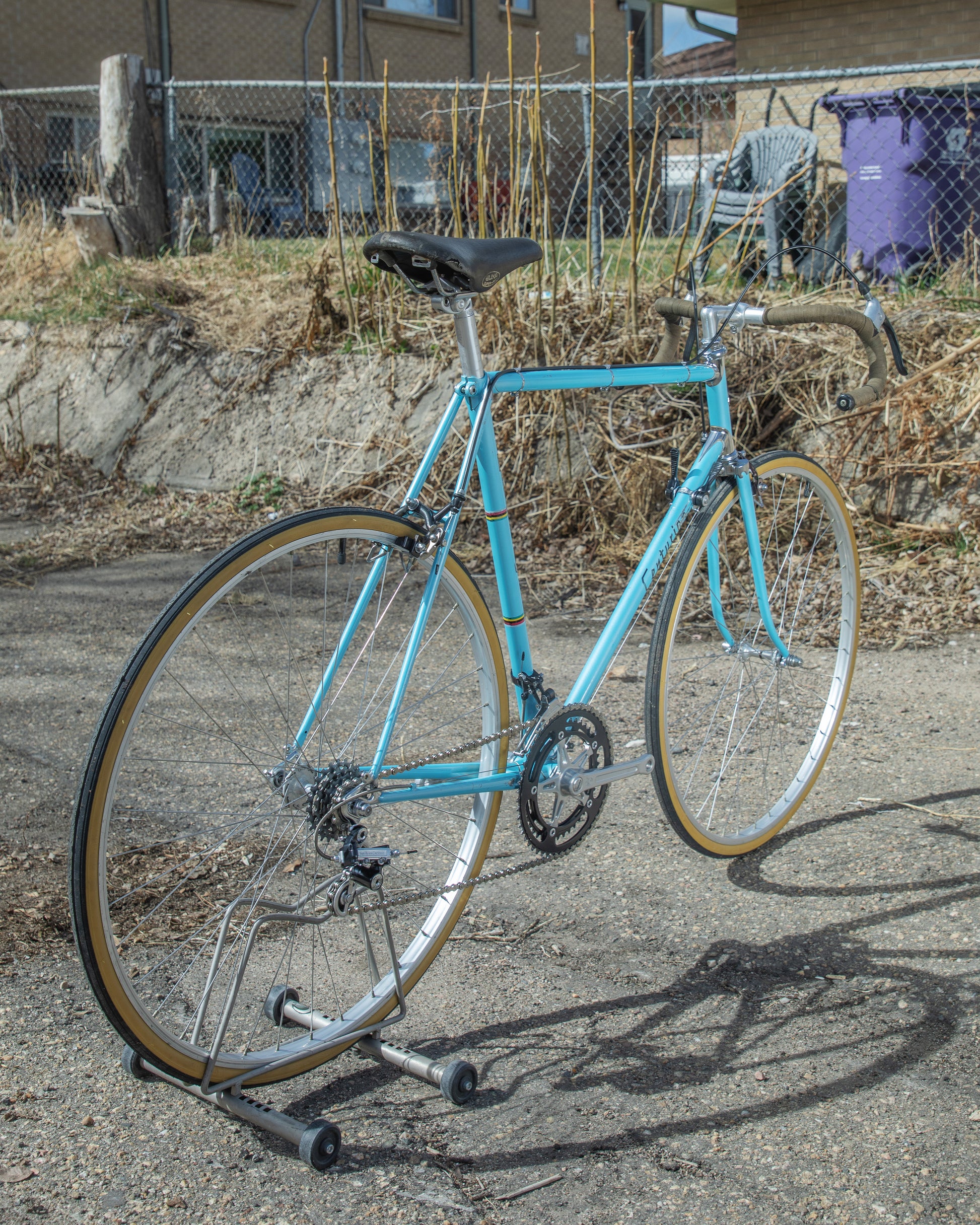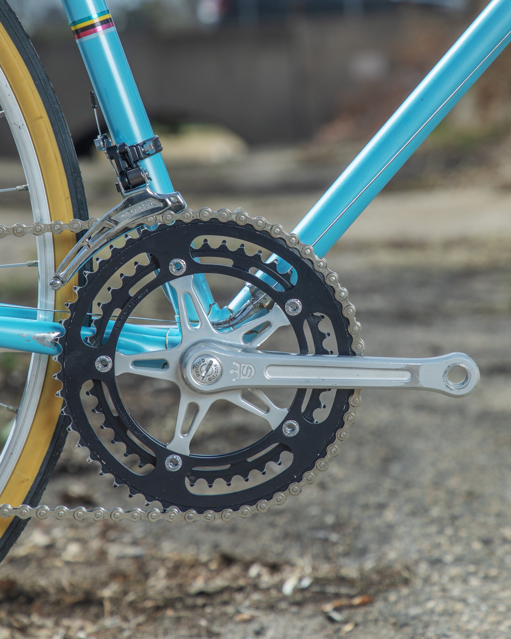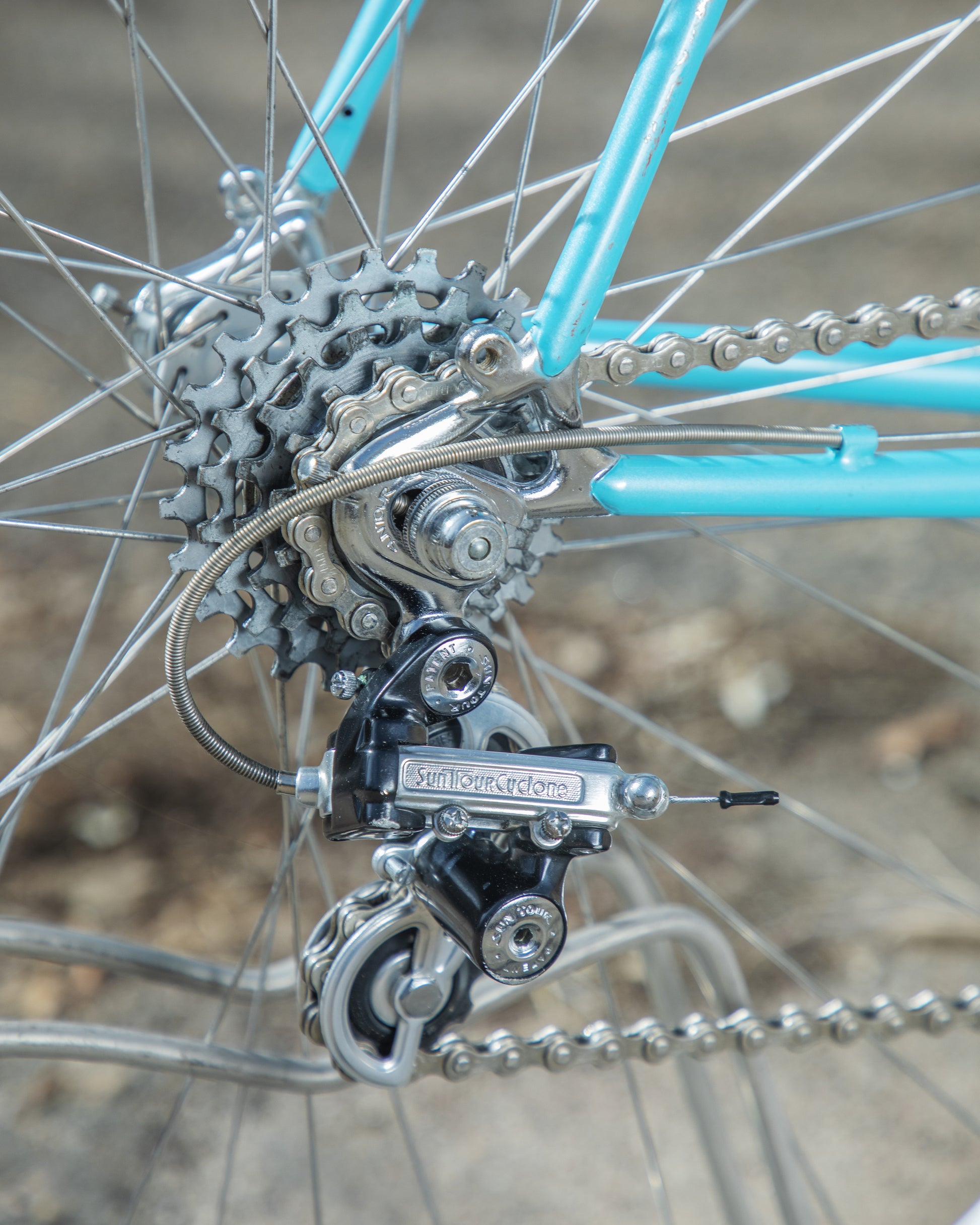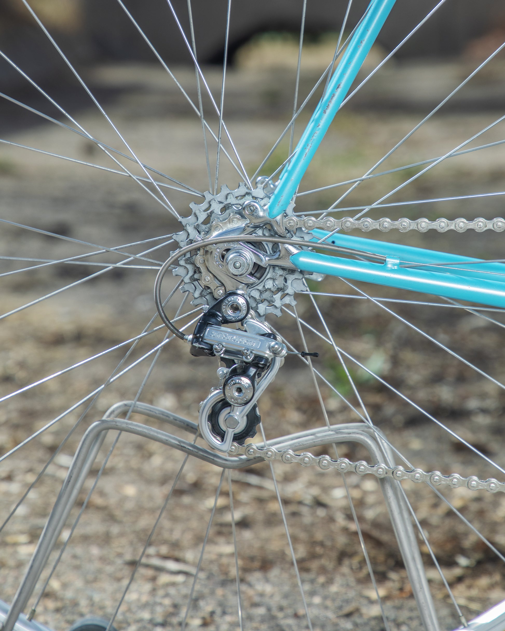 This Centurion Semi Professional is a beautiful bike! The metallic light blue with the chrome work is an elite combination. It takes on a totally different look when the sun catches it. It's in good condition but shows it's age. There are some paint chips here and there but no dents, bends, or cracks. The headset and bottom bracket were serviced and all parts were removed, cleaned, and then carefully reinstalled. I liked the look of the worn cloth bar tape so I decided to leave it alone. New shift and brake cables/housing have been installed. It has some cheaper, used tires on it but I didn't want to throw them away just for the sake of getting new ones. It was a well loved bike and is looking for a new loving home.