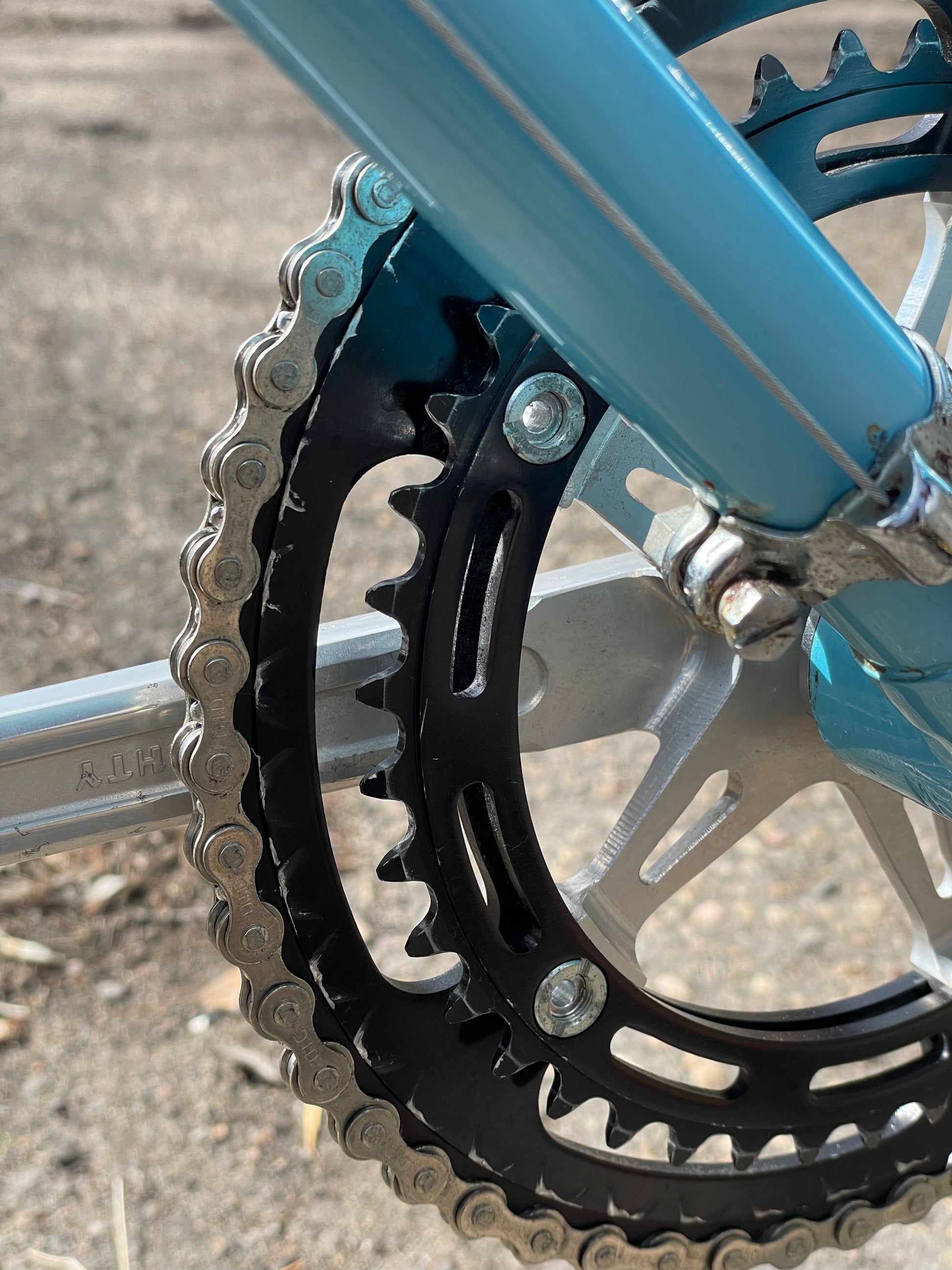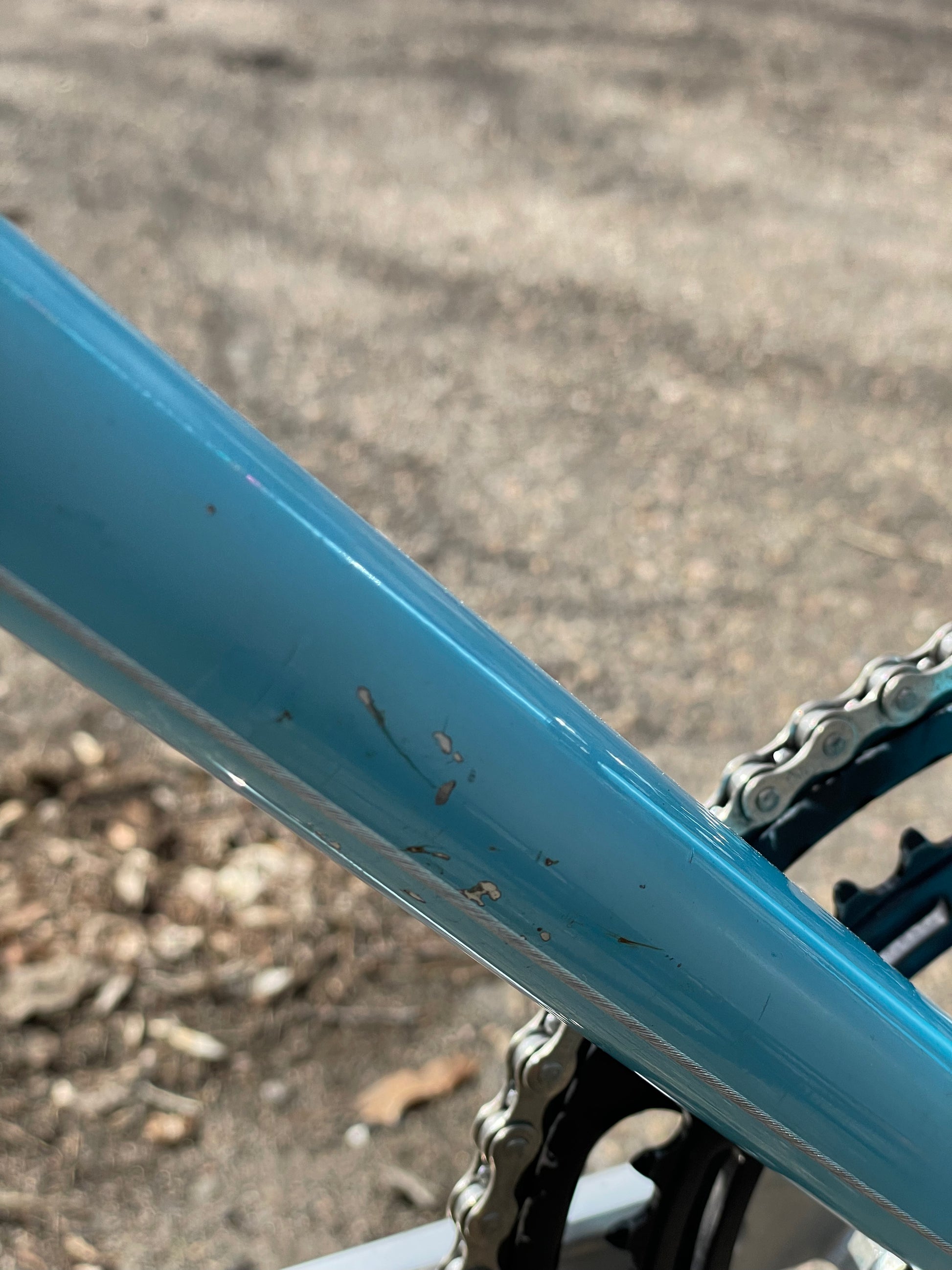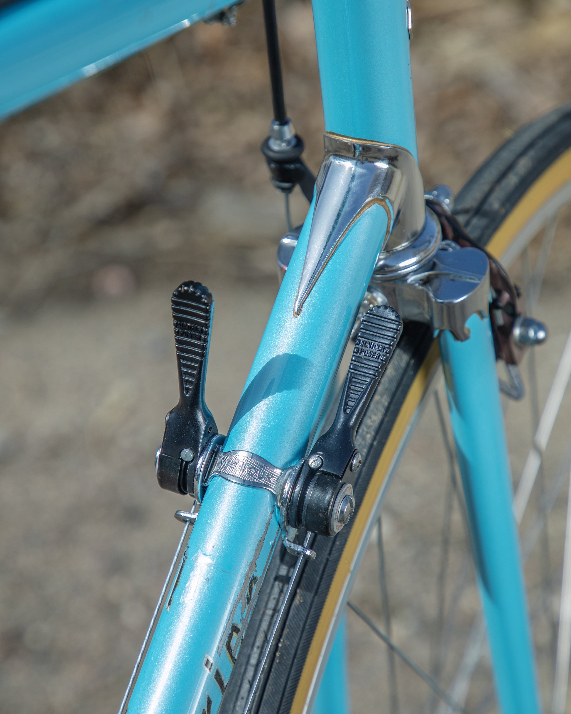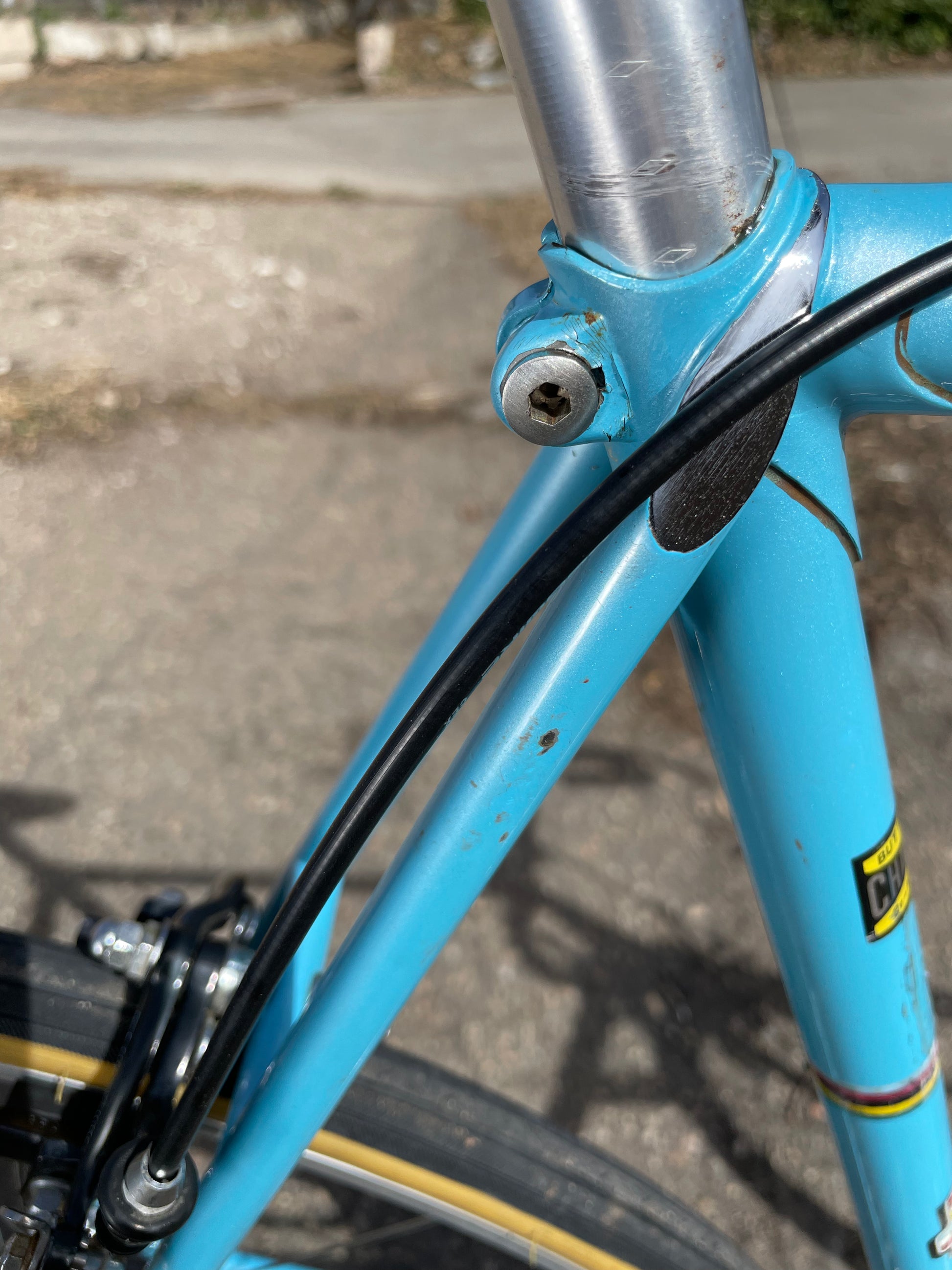 This Centurion Semi Professional is a beautiful bike! The metallic light blue with the chrome work is an elite combination. It takes on a totally different look when the sun catches it. It's in good condition but shows it's age. There are some paint chips here and there but no dents, bends, or cracks. The headset and bottom bracket were serviced and all parts were removed, cleaned, and then carefully reinstalled. I liked the look of the worn cloth bar tape so I decided to leave it alone. New shift and brake cables/housing have been installed. It has some cheaper, used tires on it but I didn't want to throw them away just for the sake of getting new ones. It was a well loved bike and is looking for a new loving home.