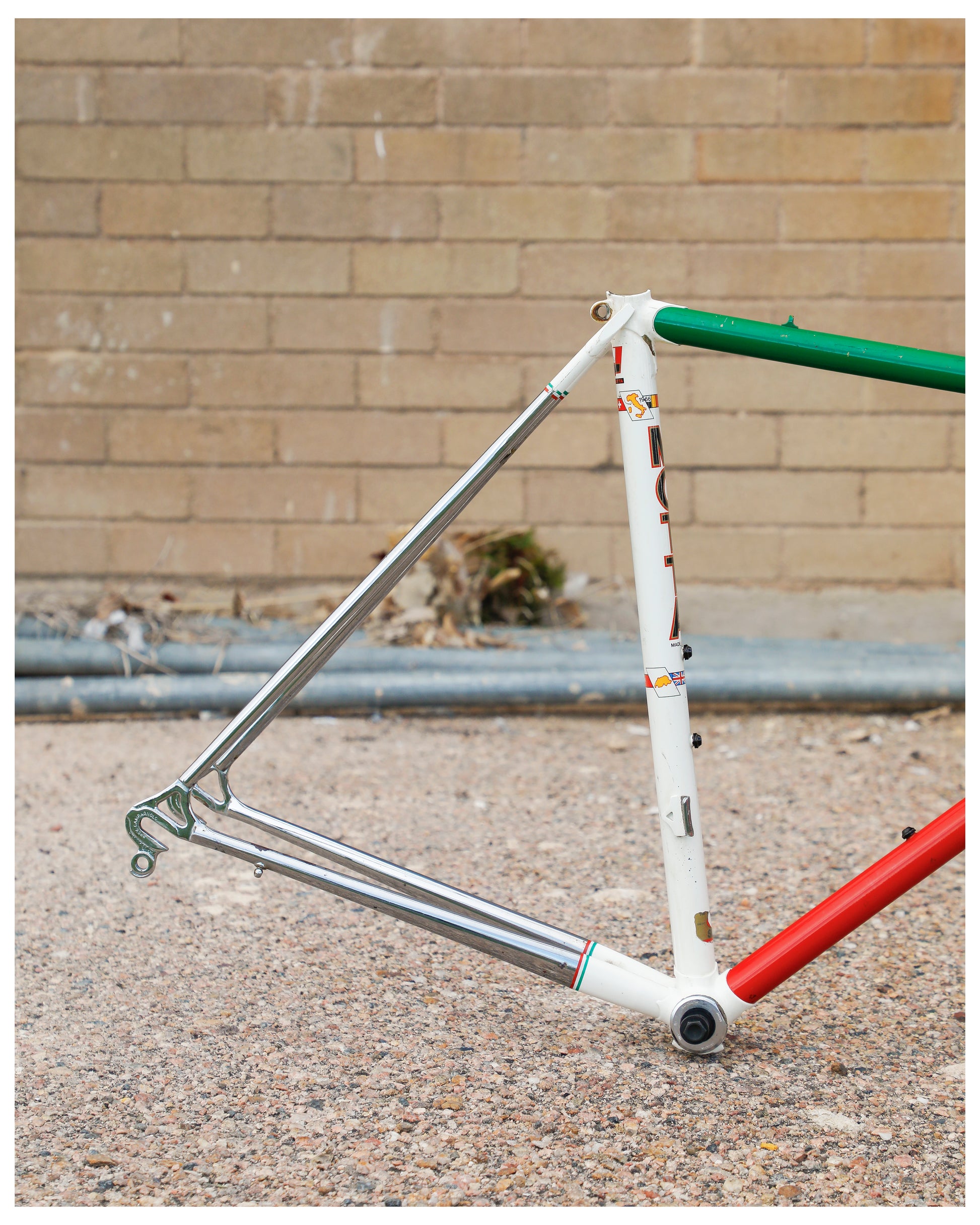 This frame shows sign of use but is in pretty good condition. No dents or cracks! There are some paint chips here and there. Some of the decals are also worn. The Columbus stickers on the frame and fork have seen way better days. It comes with a Shimano bottom bracket and headset - both have not been rebuilt but feel ok. If you have any questions or requests, don't hesitate to ask.
