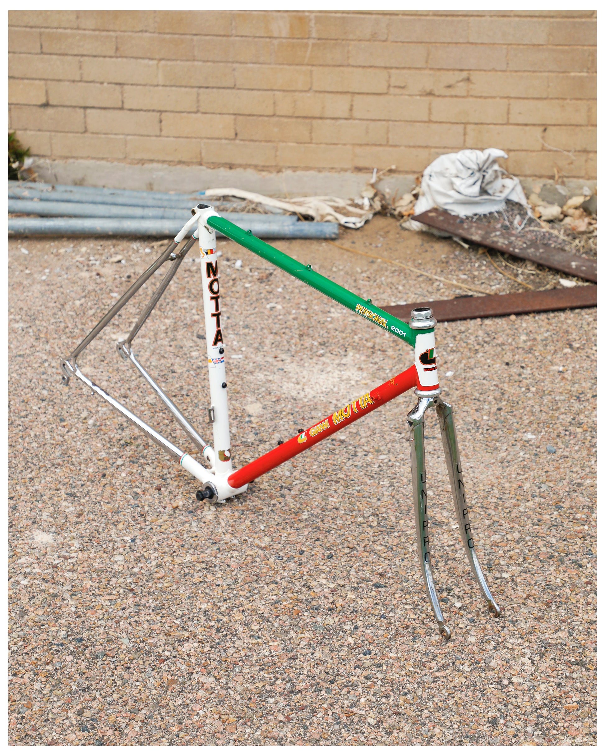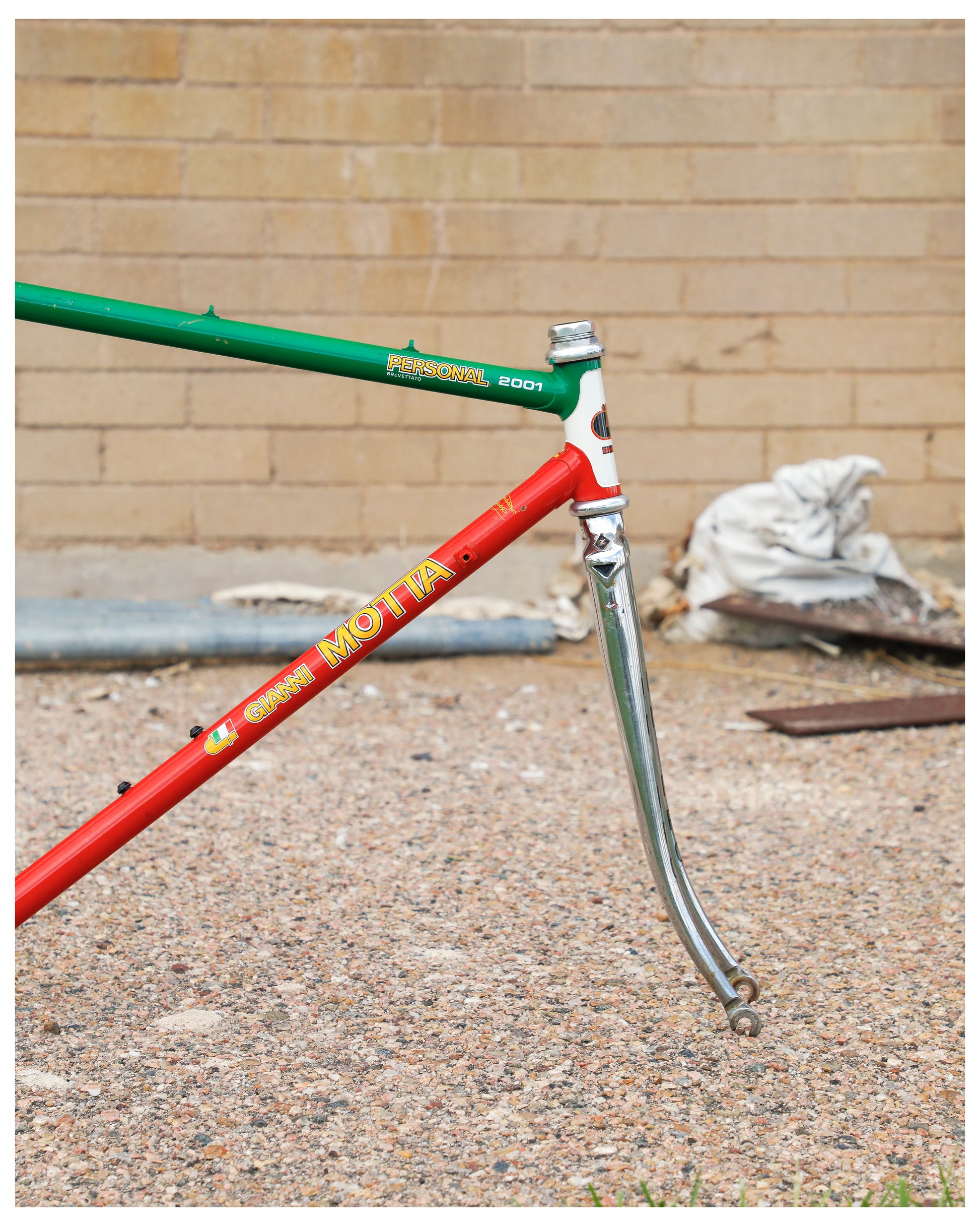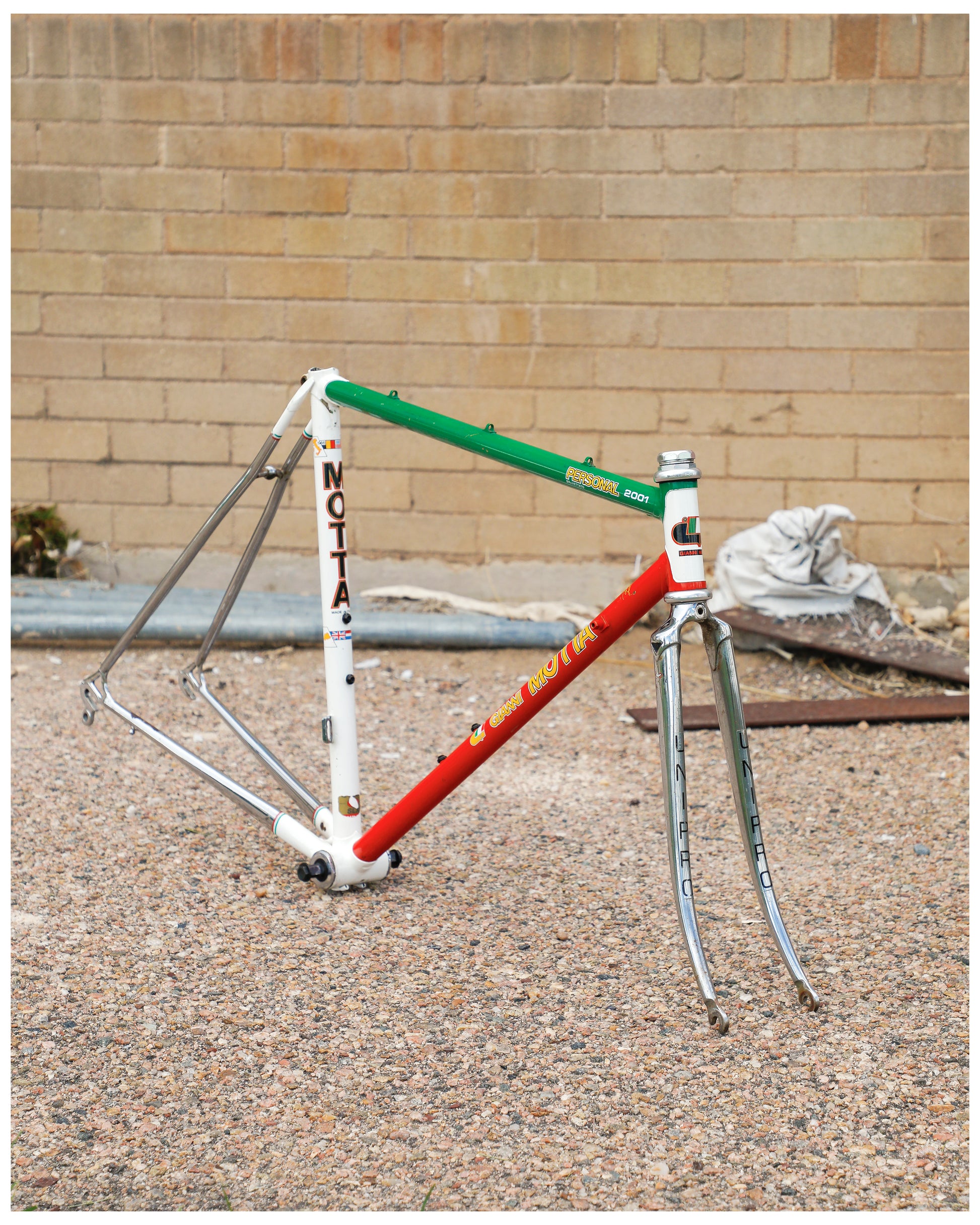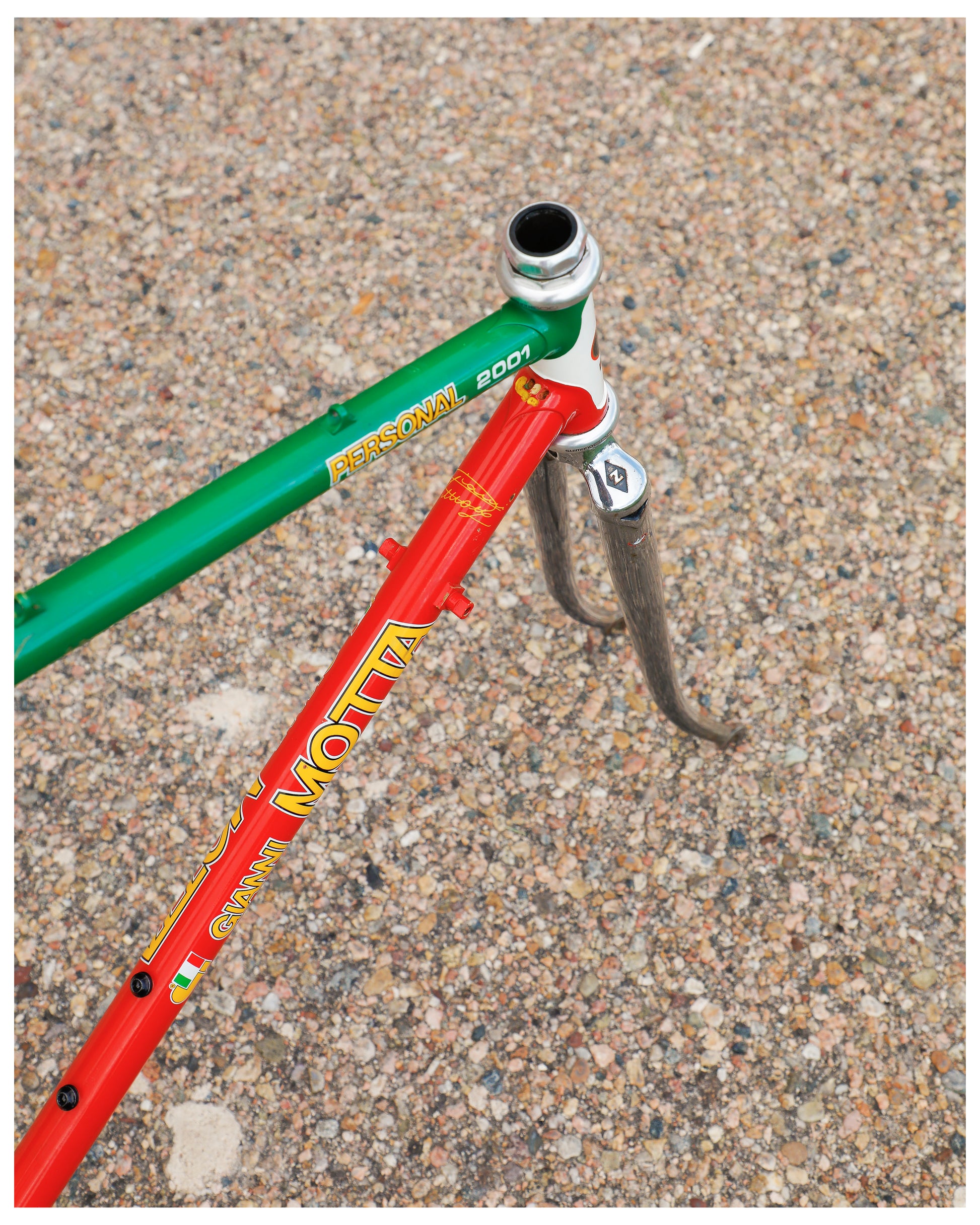 The Personal 2001 is an iconic model from an iconic Italian frame builder. Built from some of the best tubing available the time - Columbus SLX. It's lightweight and gives a both snappy and compliant ride. The seat stays are also incredibly cool - how they sweep to their braze point.