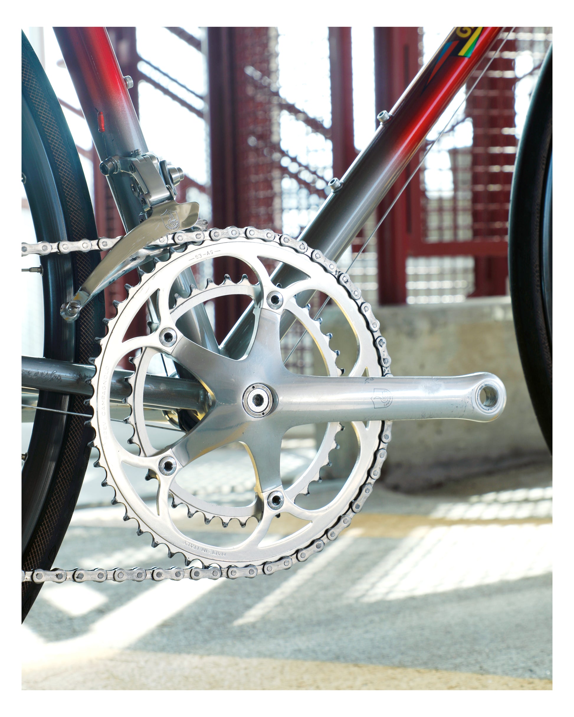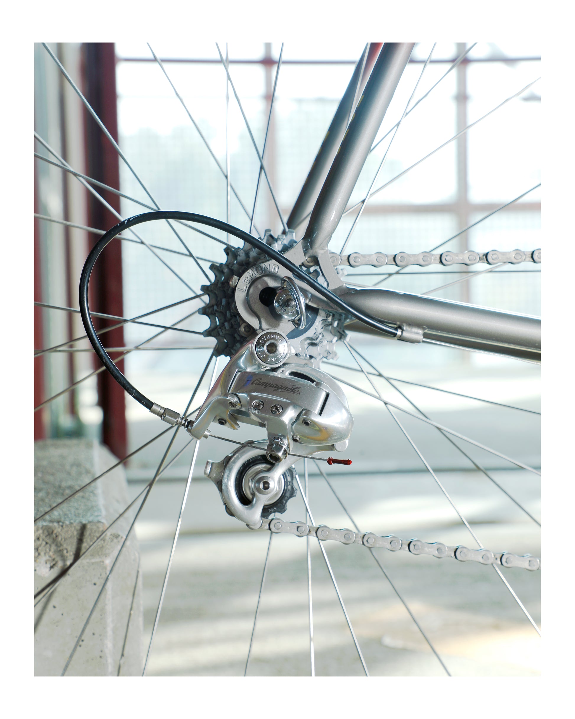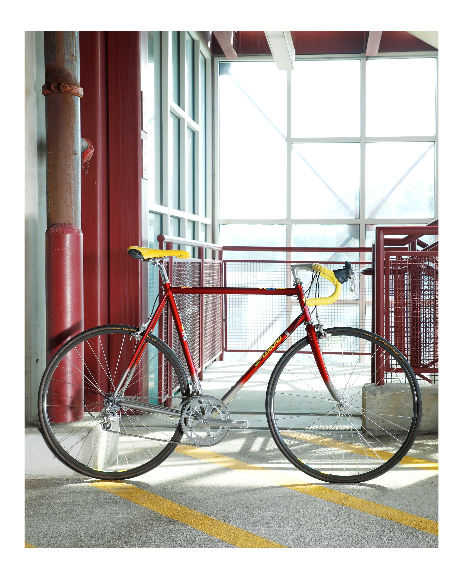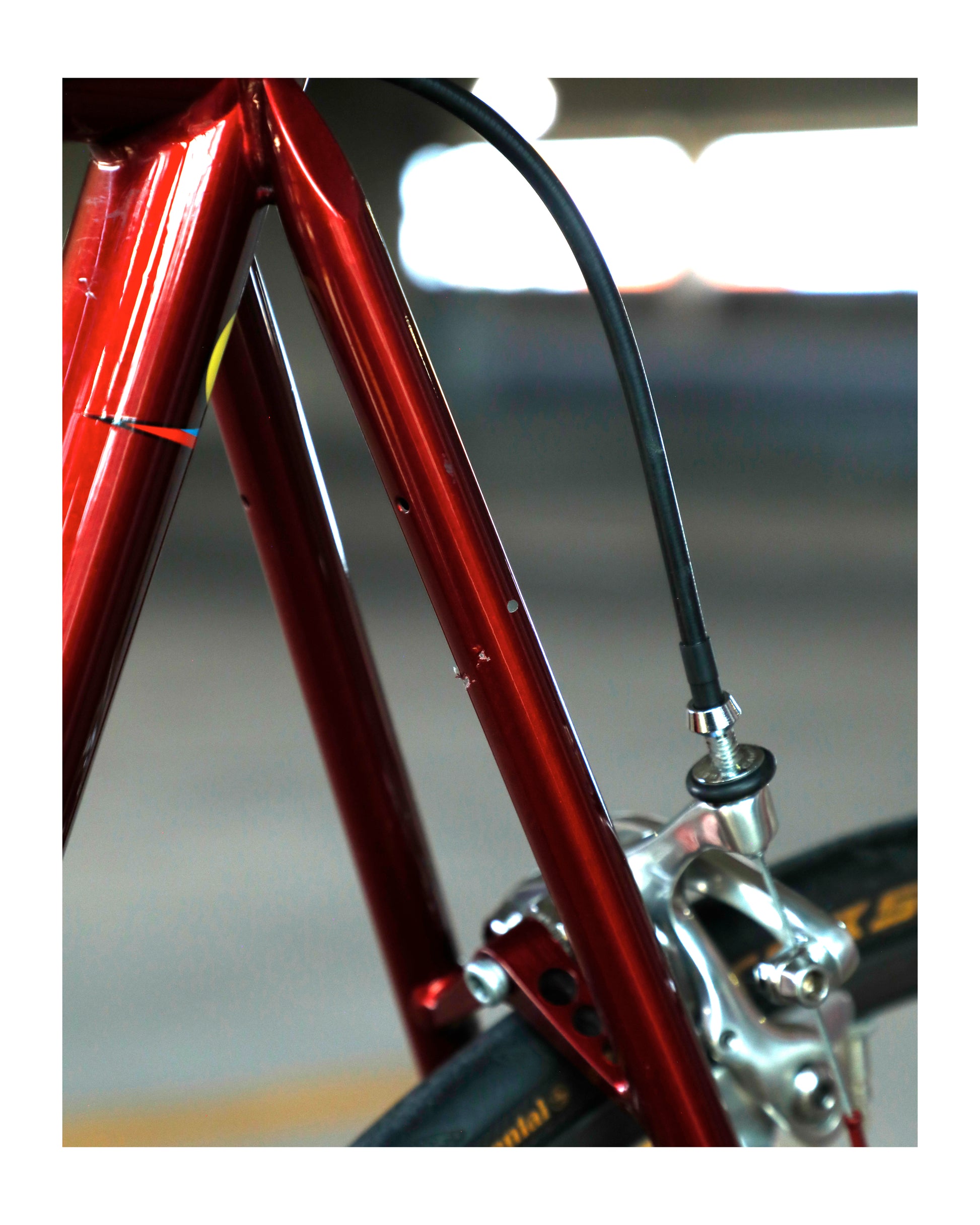 There are only a couple chips in the frame, and some wear on the head tube from the cables. Apart from that, this frame is flawless! The fade metallic paint is gorgeous in any light, and all the decals look excellent! The hoods also sometimes slip forward, as they ave stretched over the years. The front derailleur also has a small ding toward the front and will slightly rub in in the largest gear. One of the Mavic stickers on the hoop has also faded! I also admit, this was one of my ~not so great~ tape jobs, but it's new and will still work :) It was given a good clean and is ready for a new home!