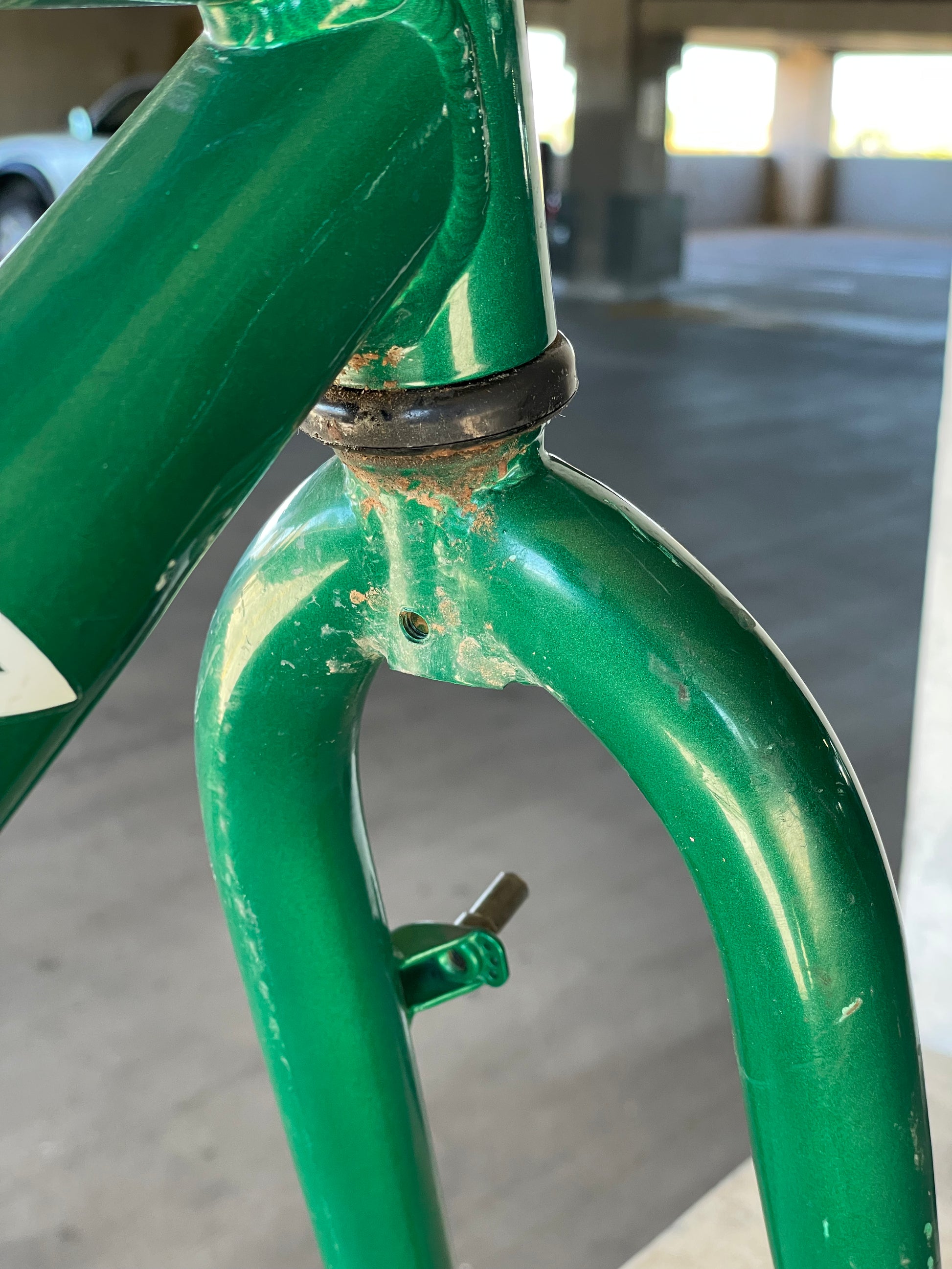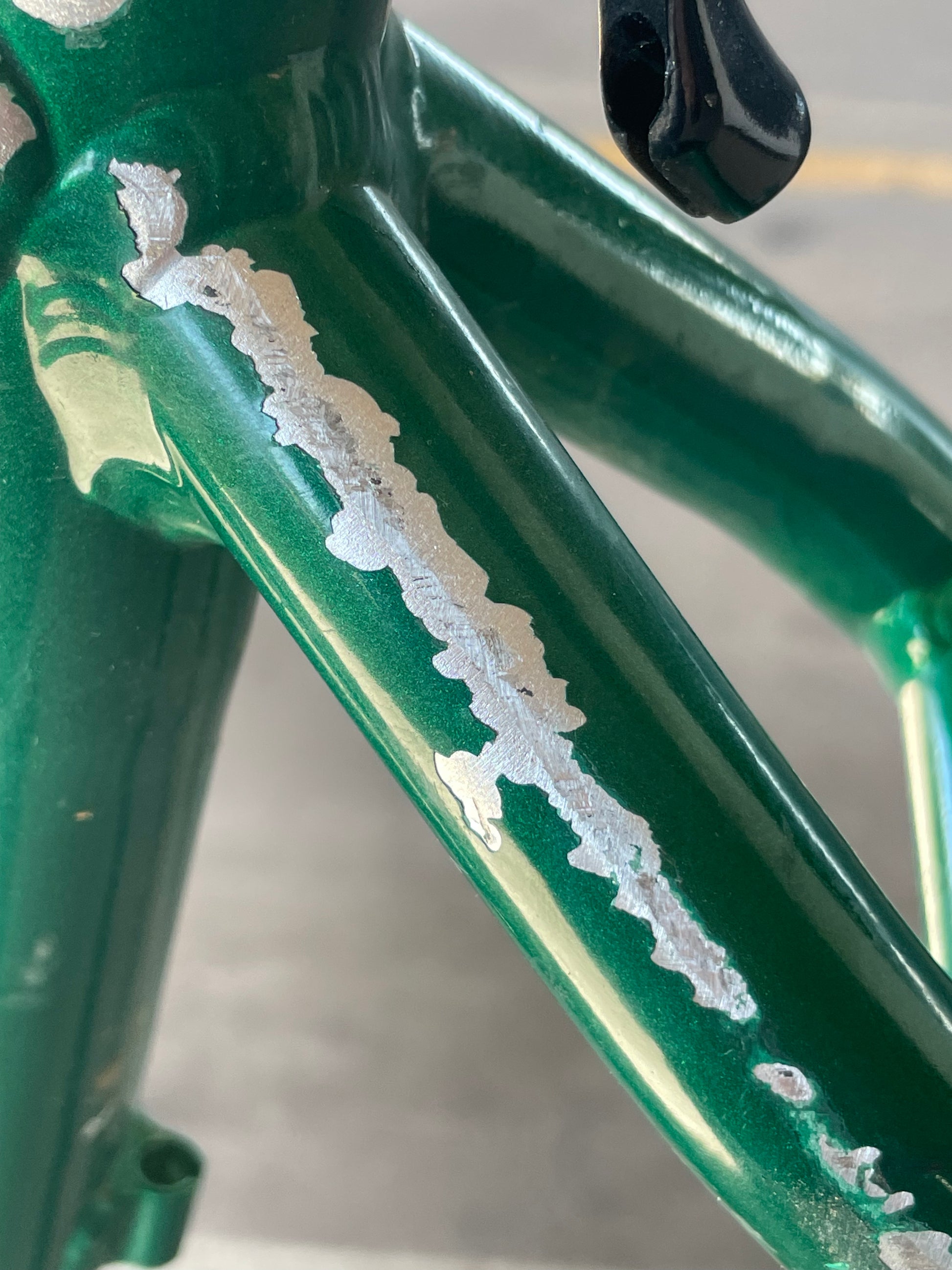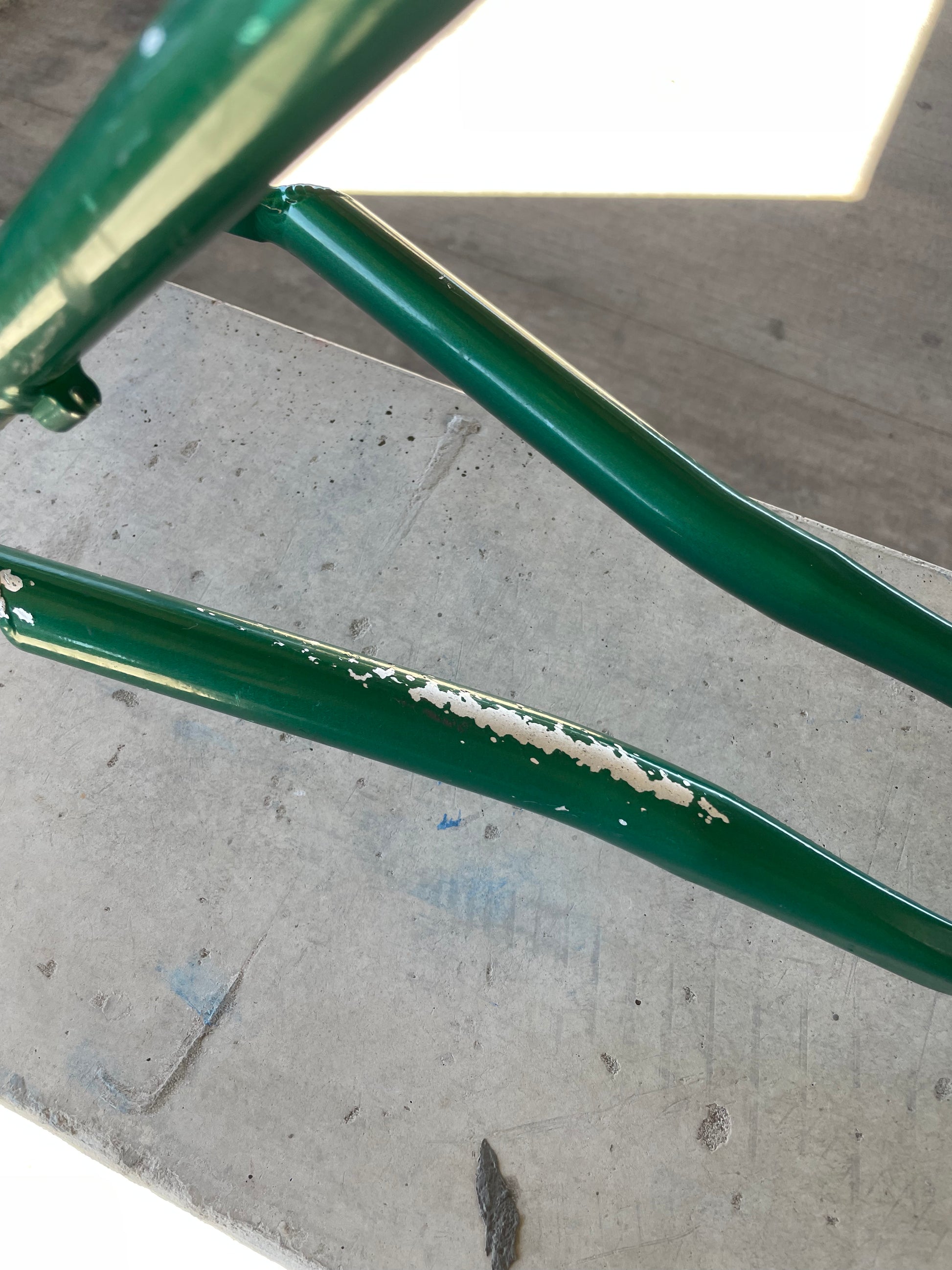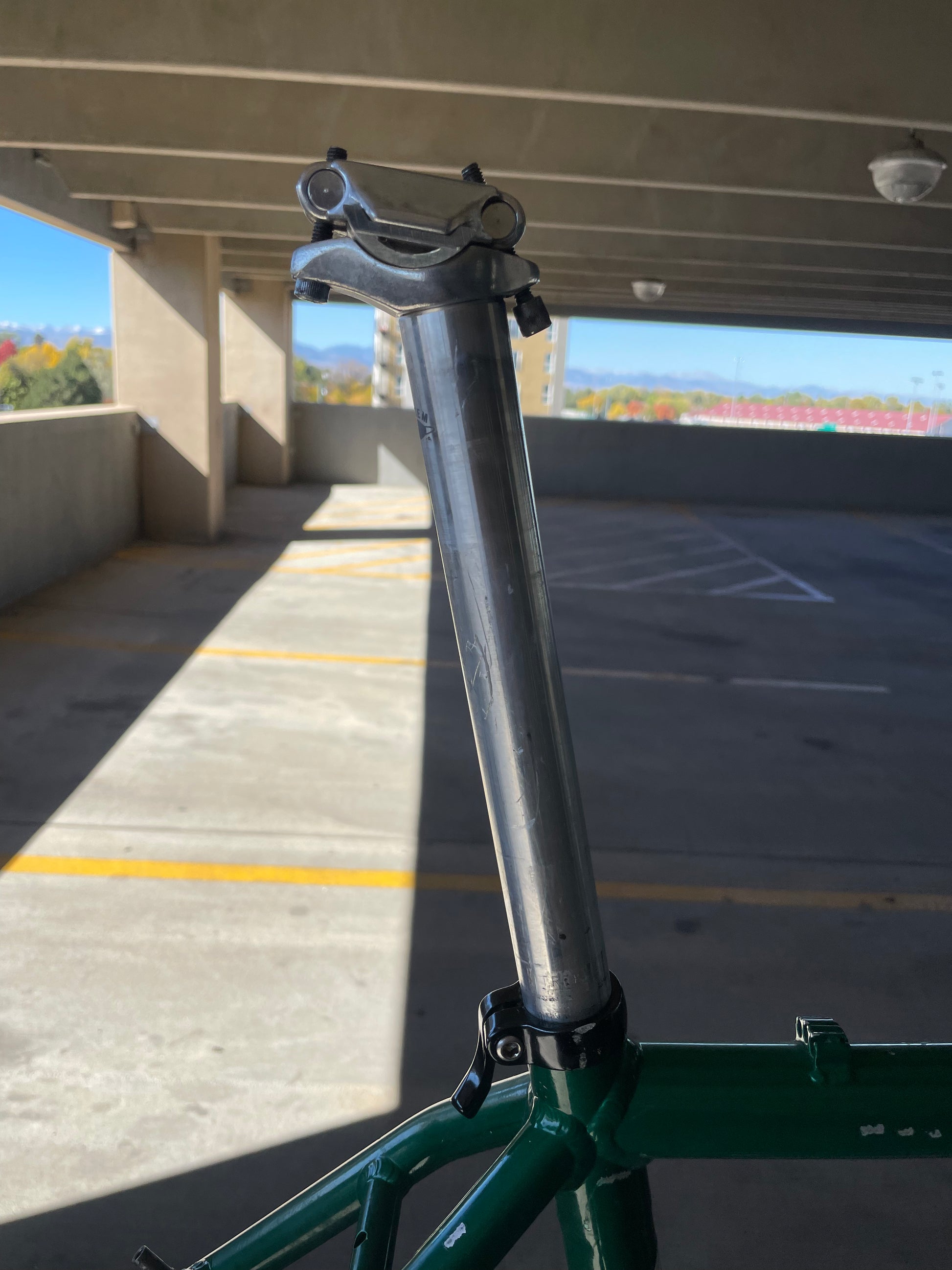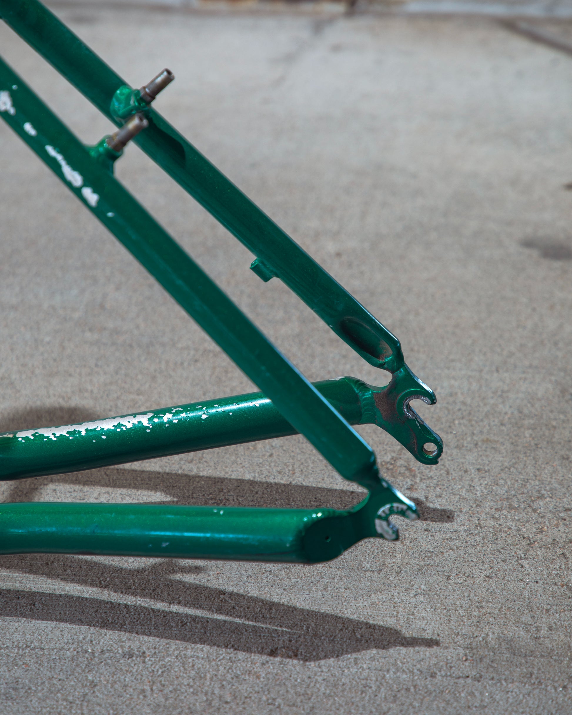 Beat, battered, bruised, but not broken. This Klein Pulse Comp has seen its fair share of trail, but no dents, bends, or cracks. The paint is all chipped up throughout the frame. The bones are good! Keep it as is or repaint it! Comes with seatpost, bottom bracket, headset, stem, and handlebar. Both the headset and bottom bracket could use some fresh grease as they both feel tight. Lots of directions you can go building this up! Just needs some love. The frame is stamped as a 20" or size medium.