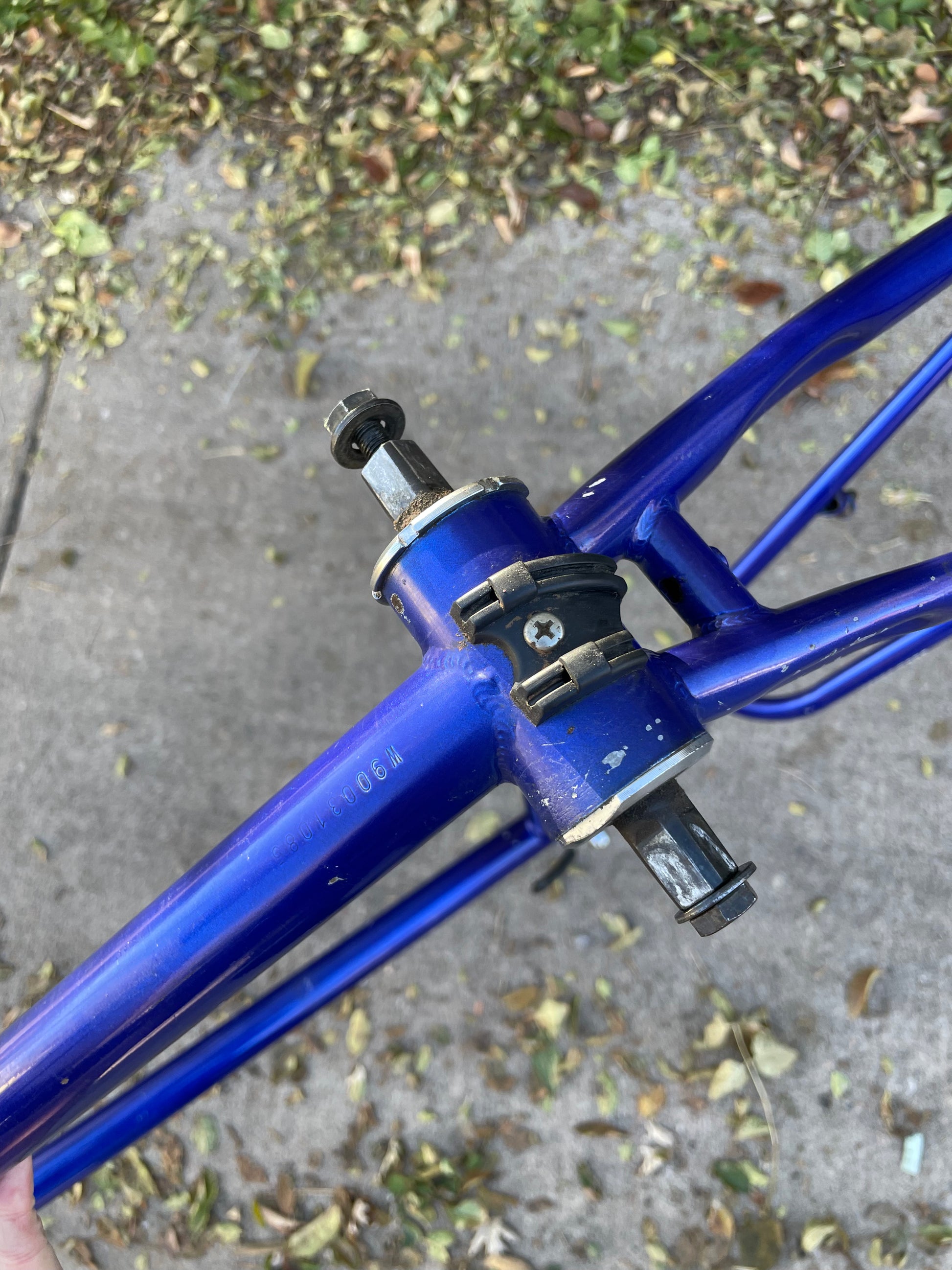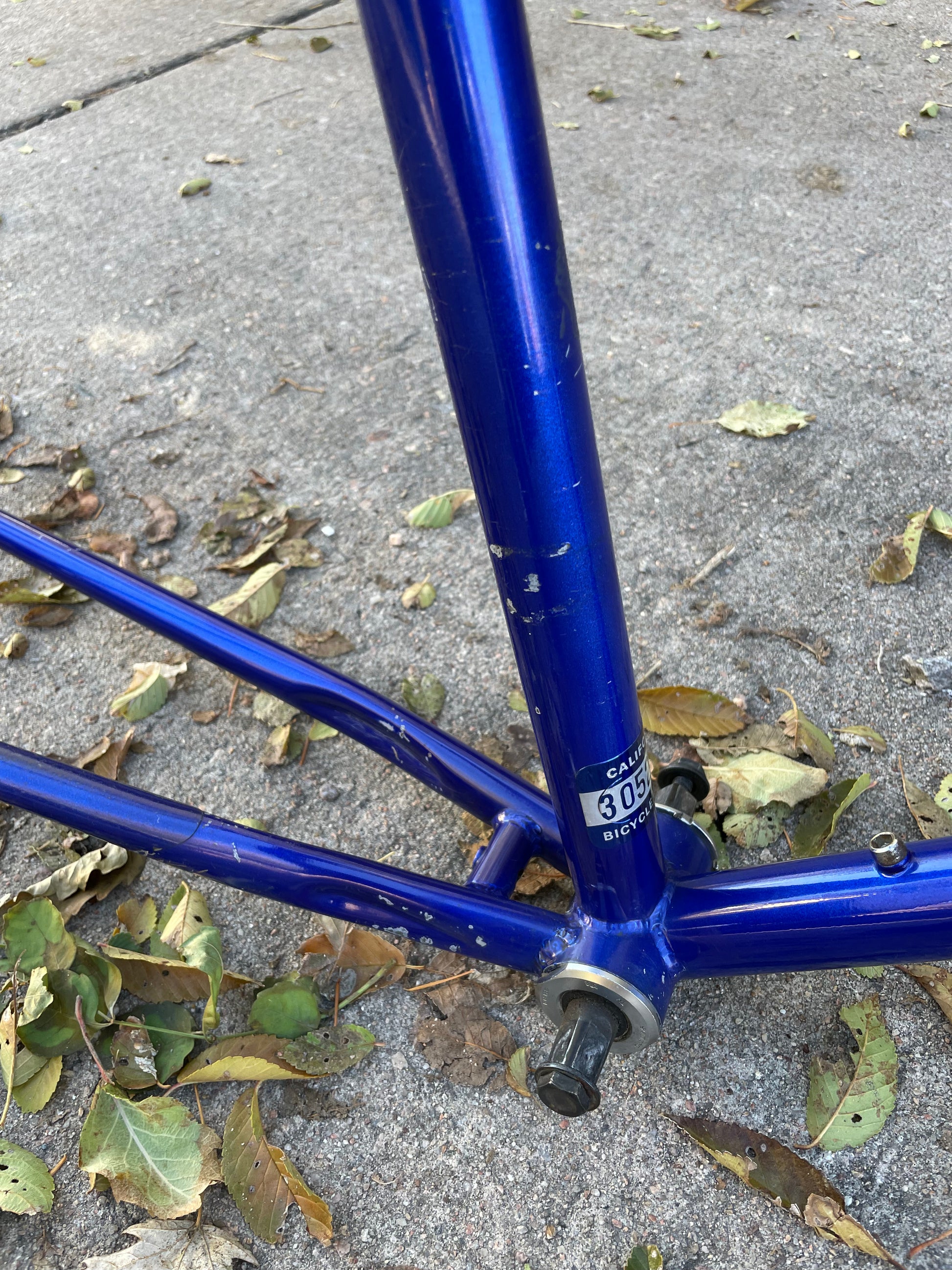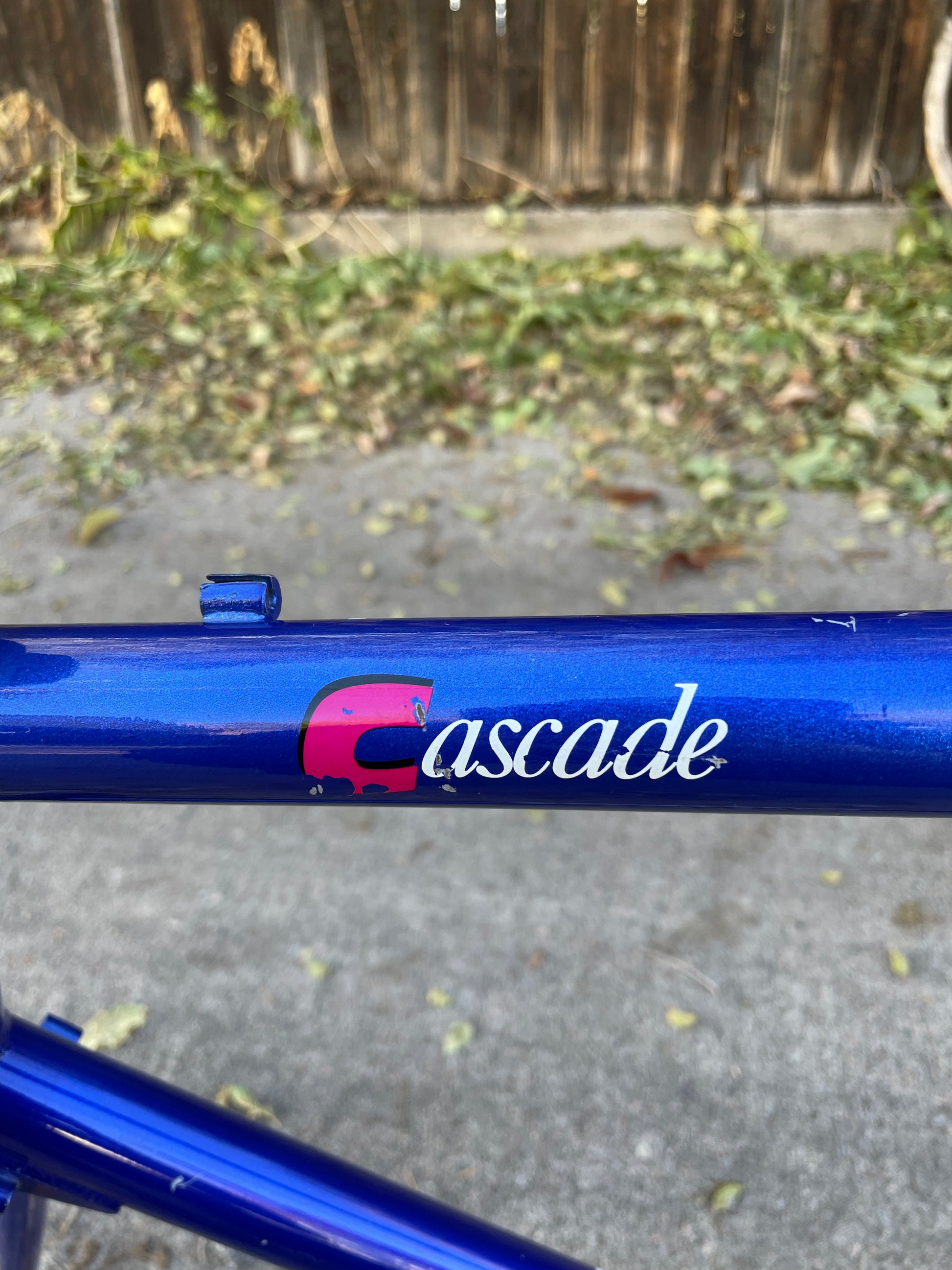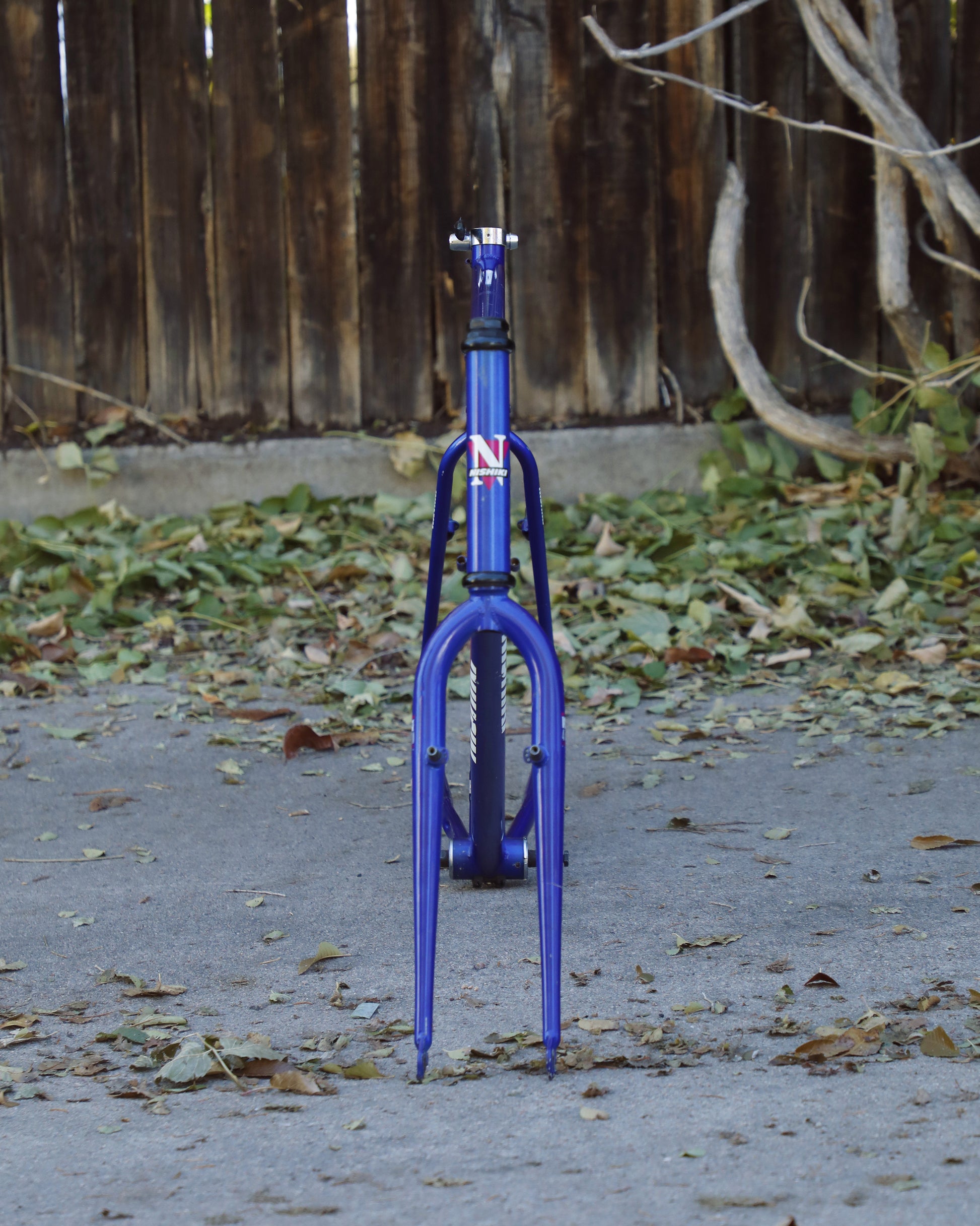 This rather large Nishiki Cascade frame is in good condition but shows sign of use. There are some paint chips here and there, but no dents, bends, or cracks. The rear triangle is an awesome design that looks a lot different compared to other mountain bikes of the time. The headset and bottom bracket have not been rebuilt but feel ok. Lot of different directions one could take on this build.