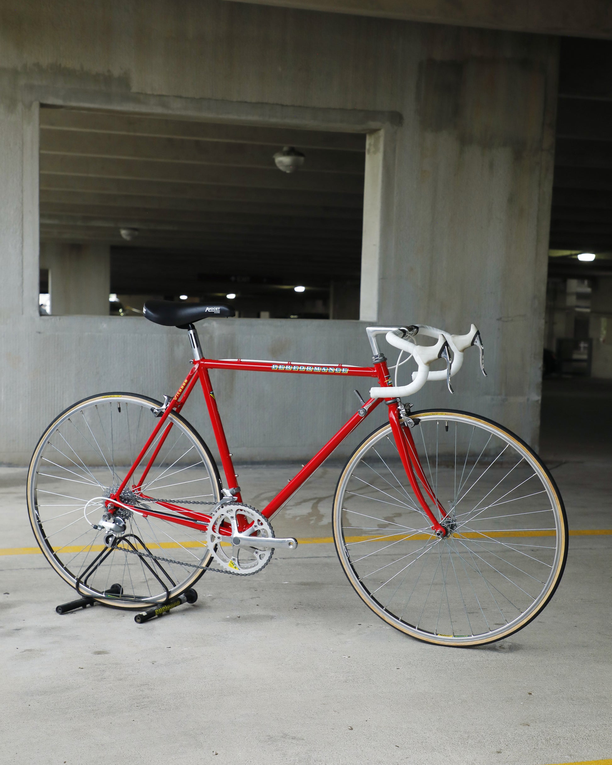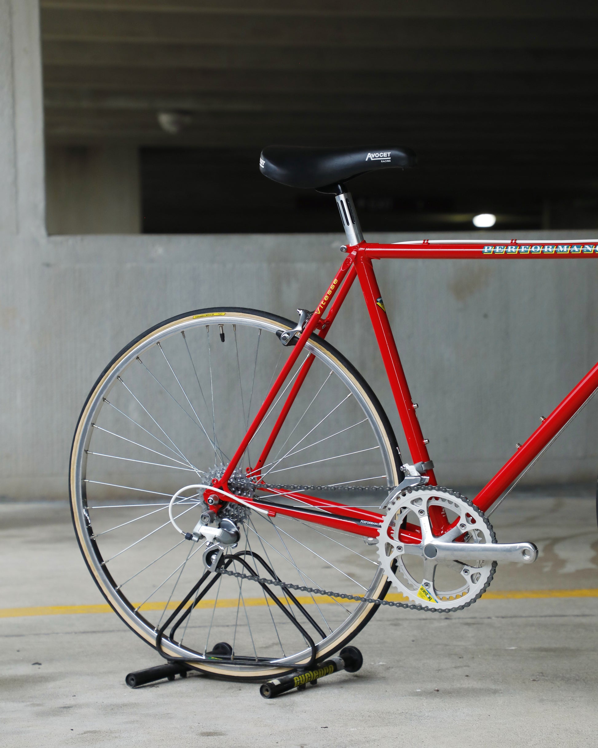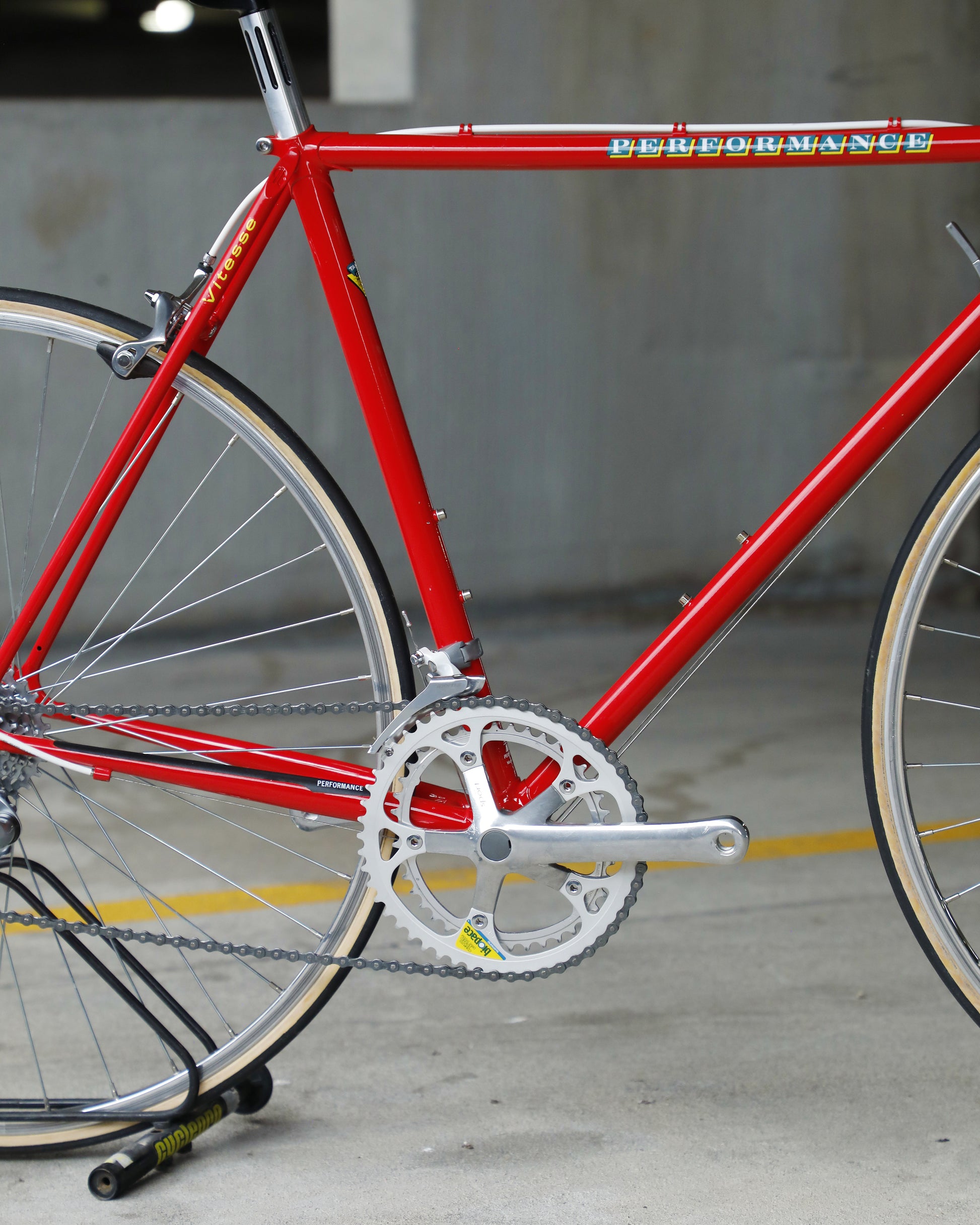 This Performance Vitesse road bike looks like it just rolled off the factory floor. It's in excellent condition! The deep red with the fun font for their logo is so colorful and artsy. This bike has so much presence. It comes equipped with a Shimano Sport groupset that feels really sturdy! This bike is easy to ride, reliable, and fun! There are a few paint chips but nothing crazy - please see all photos to get a better understanding as to the condition this bike is in :)
