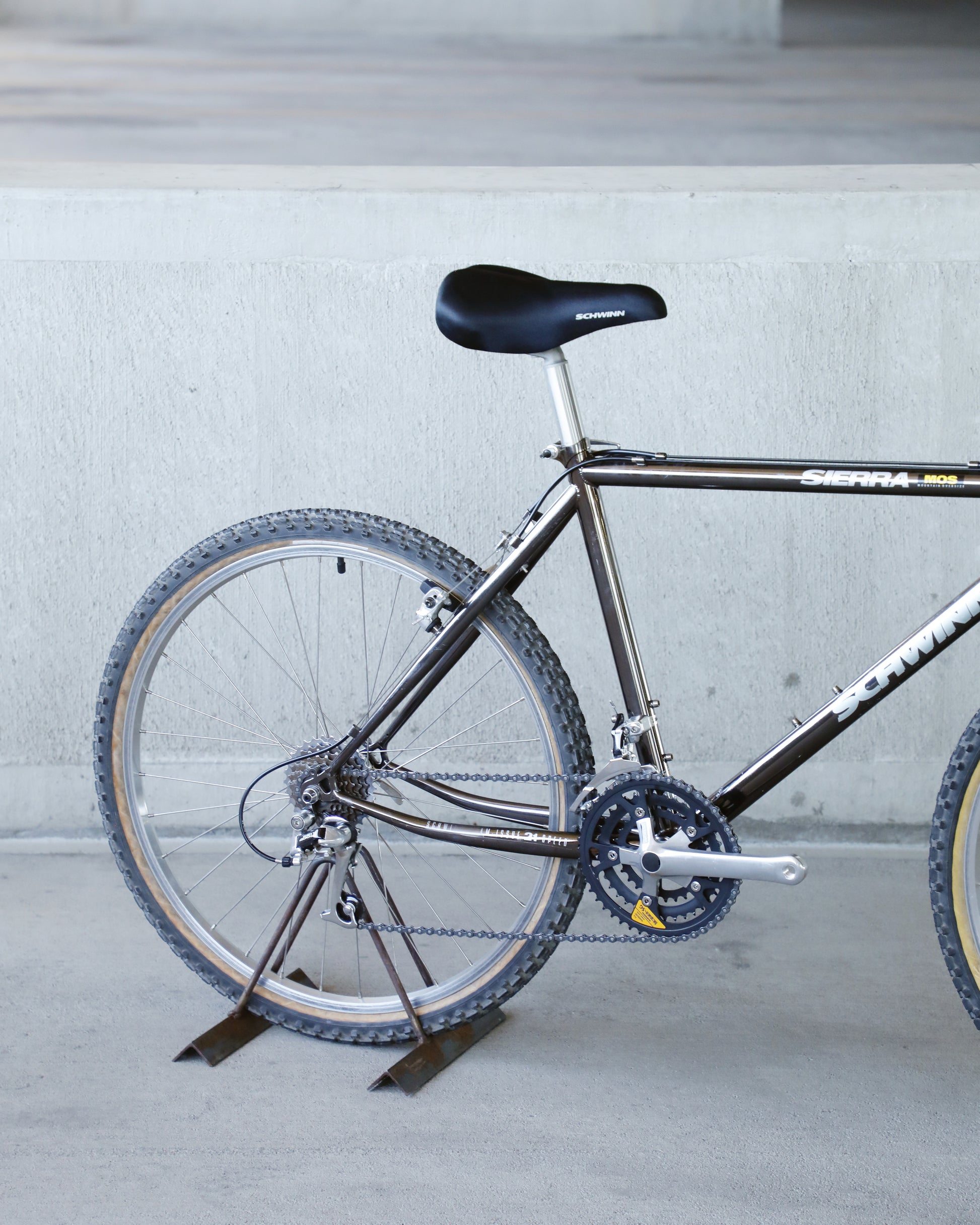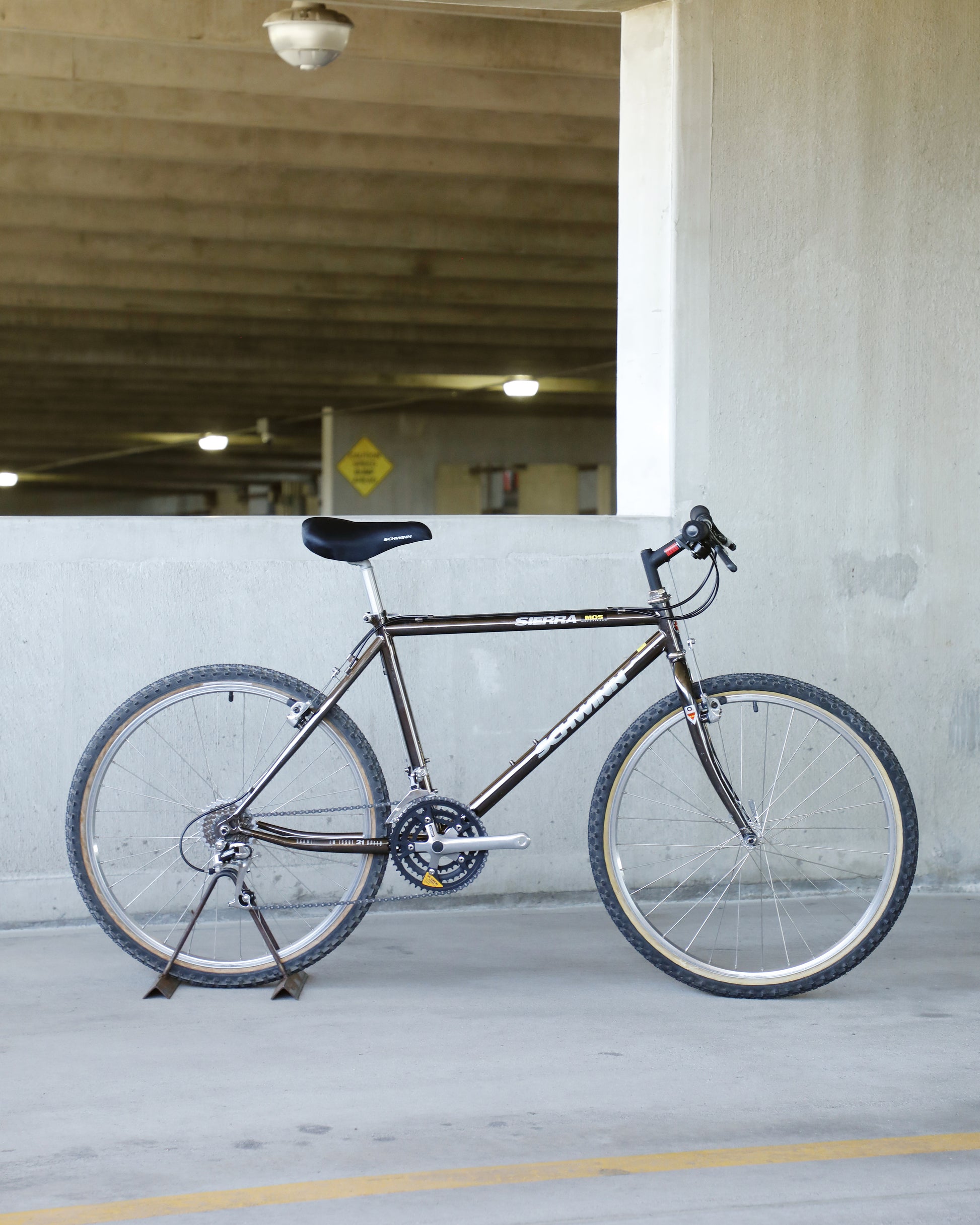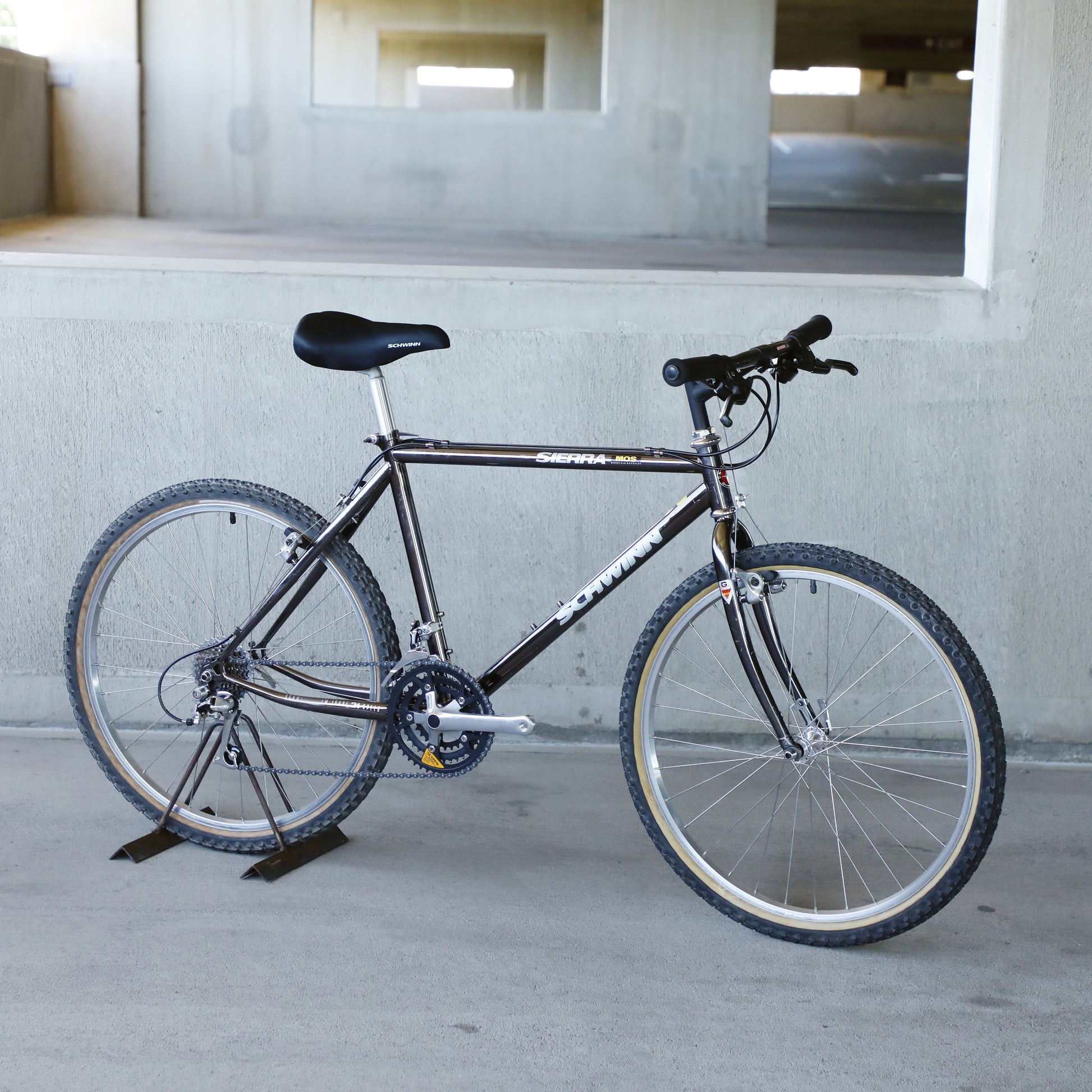 This epic Schwinn Sierra comes finished in a black smoky chrome color that stands out against anything. The swoop in the G-Force chain stays is also something to behold. This is total retro mtb steeze! The bike is in good condition but shows sign of use. The frame and components have been given a good clean and the entire bike has been gone through and tuned in. The frame has some scratches here and there but no dents, bends, or cracks. The tires are original and starting to get dry but they are good to ride on for now! It's a great riding bike that will surely turn heads!