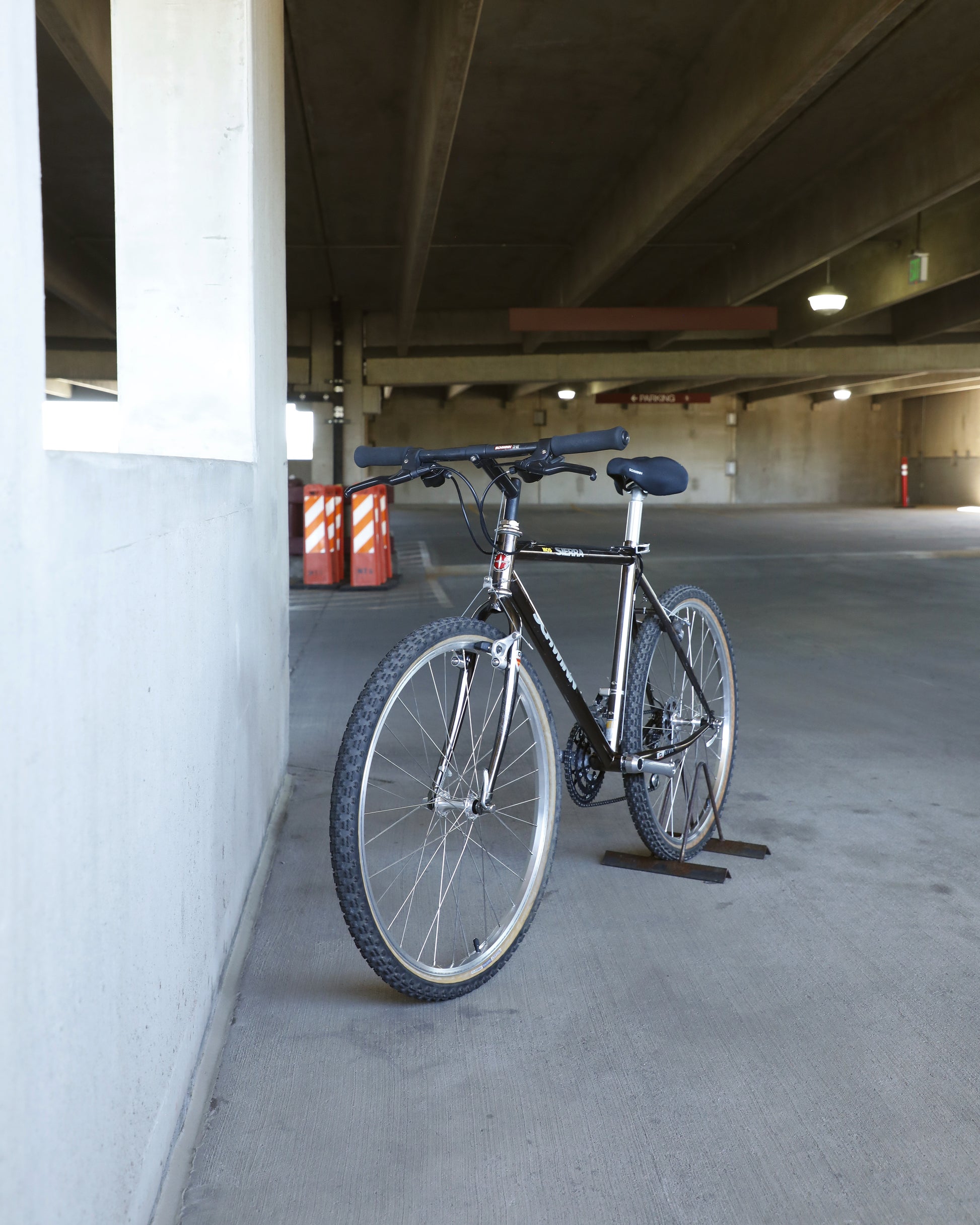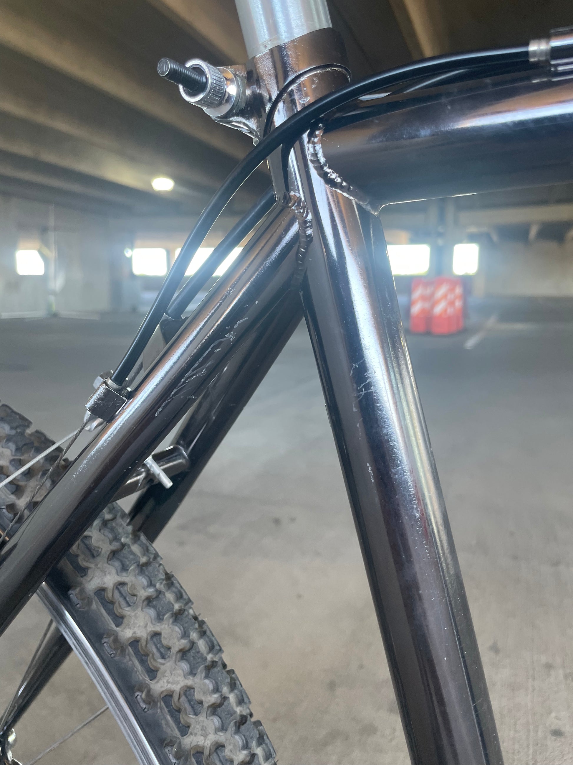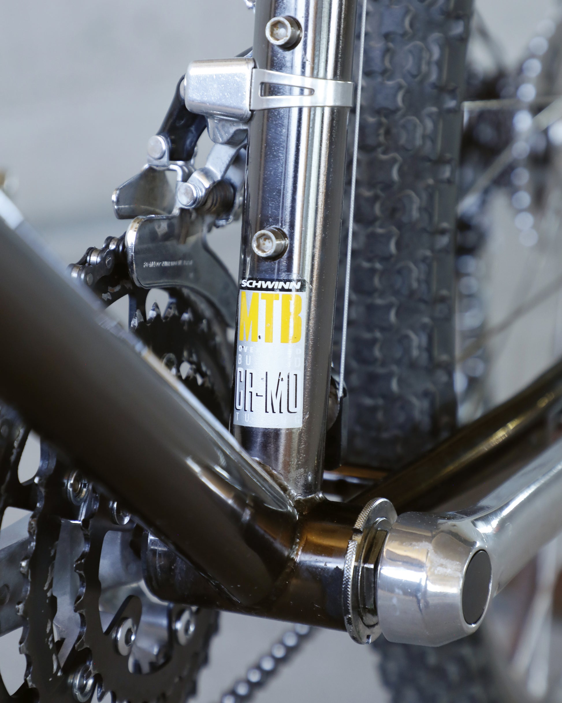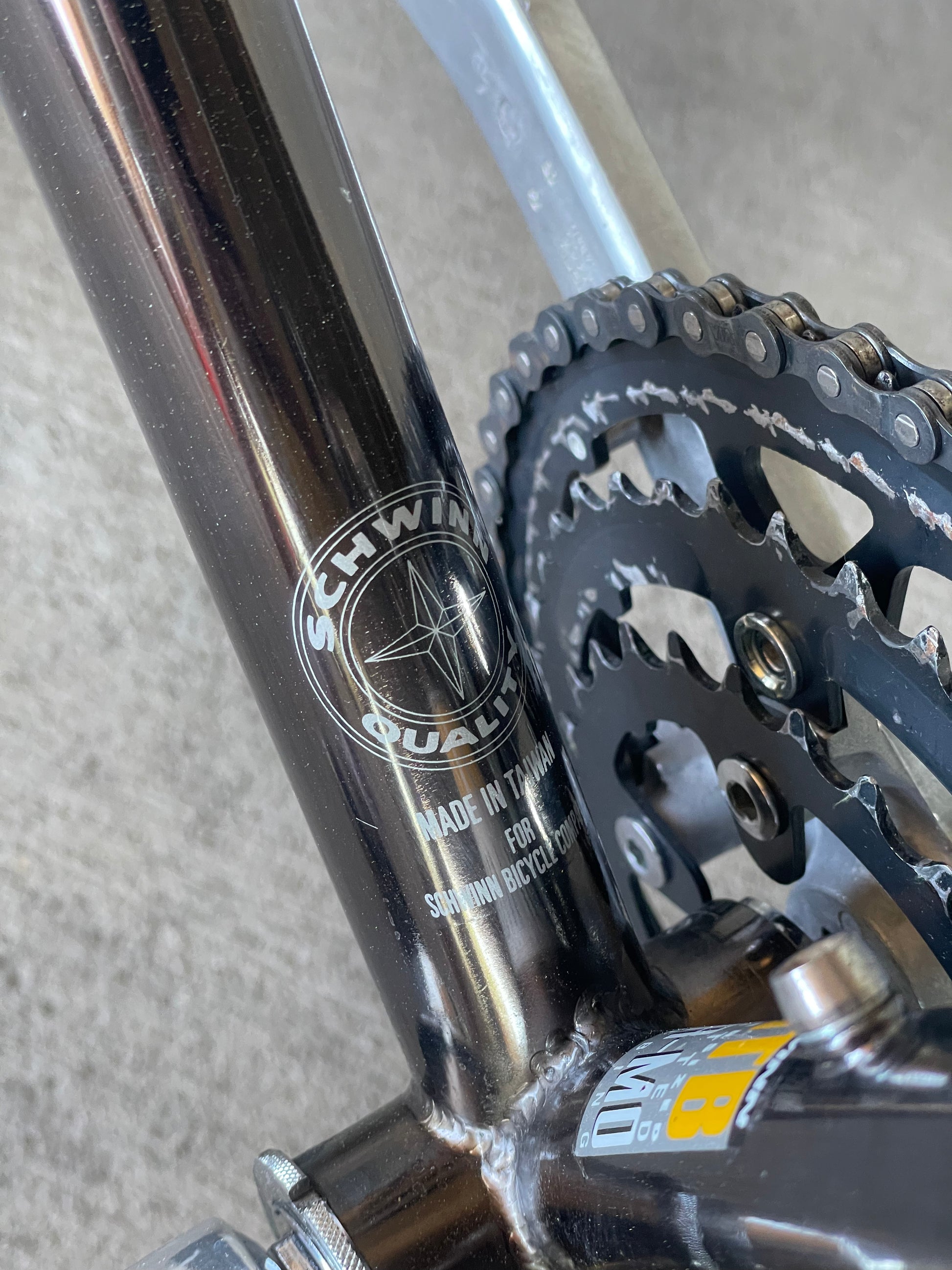 This epic Schwinn Sierra comes finished in a black smoky chrome color that stands out against anything. The swoop in the G-Force chain stays is also something to behold. This is total retro mtb steeze! The bike is in good condition but shows sign of use. The frame and components have been given a good clean and the entire bike has been gone through and tuned in. The frame has some scratches here and there but no dents, bends, or cracks. The tires are original and starting to get dry but they are good to ride on for now! It's a great riding bike that will surely turn heads!