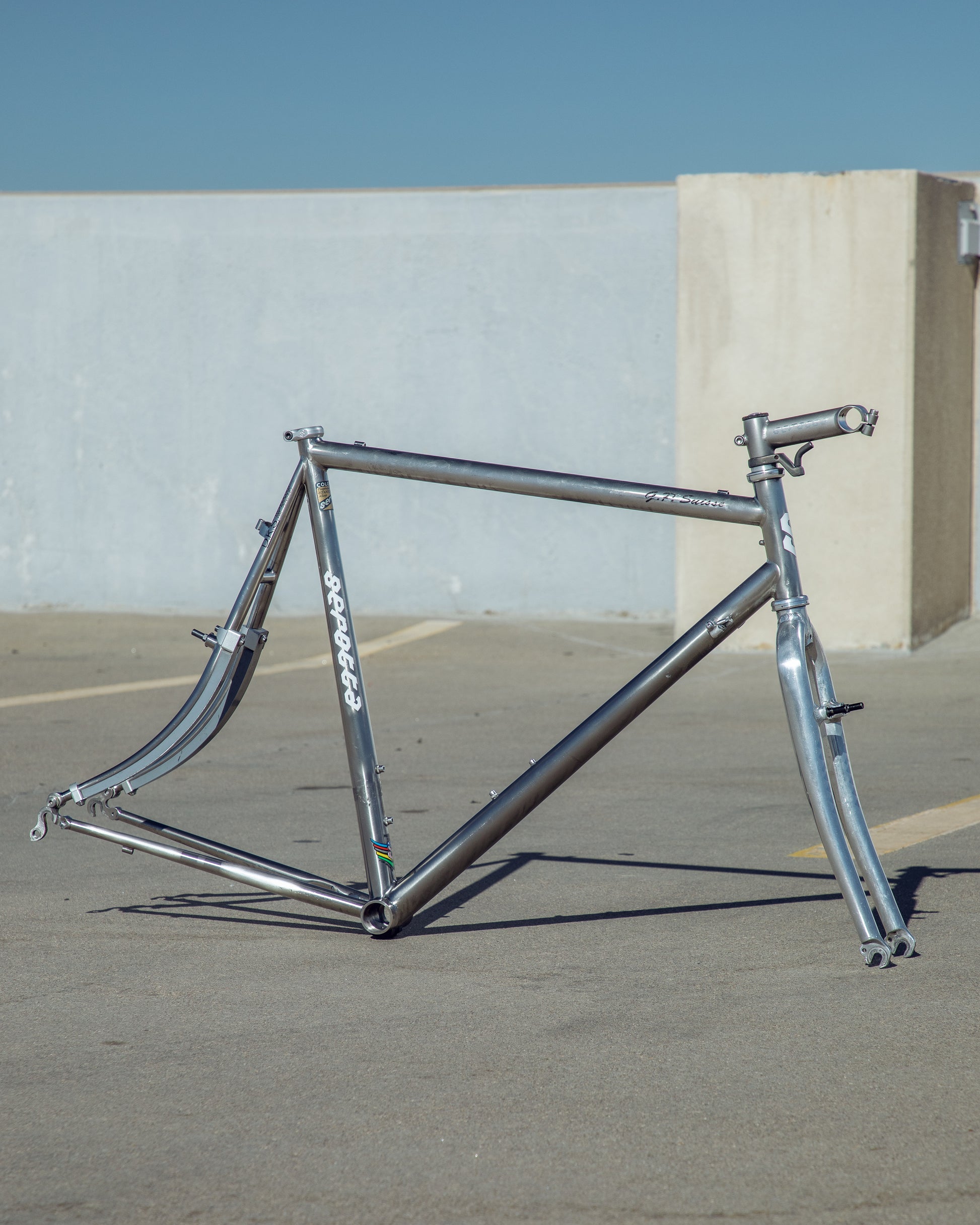 This is an incredible opportunity to own an important piece of cycling history. This Serotta GP Suisse is designed very similarly to the Serotta Hors Categorie road bike, the difference being this frame has more tire clearance, mounts for canti/v-brakes, and a steel fork to take more abuse. In short, this is the cyclocross version of the Hors Categorie. This frame (and stem) was expertly crafted by David Kirk of Kirk Frameworks out of titanium. Not very many GP Suisse's were made. It's hard to even find photos of other ones online. To make this frame even more special, this is serial number 001. The very first from Serotta!!