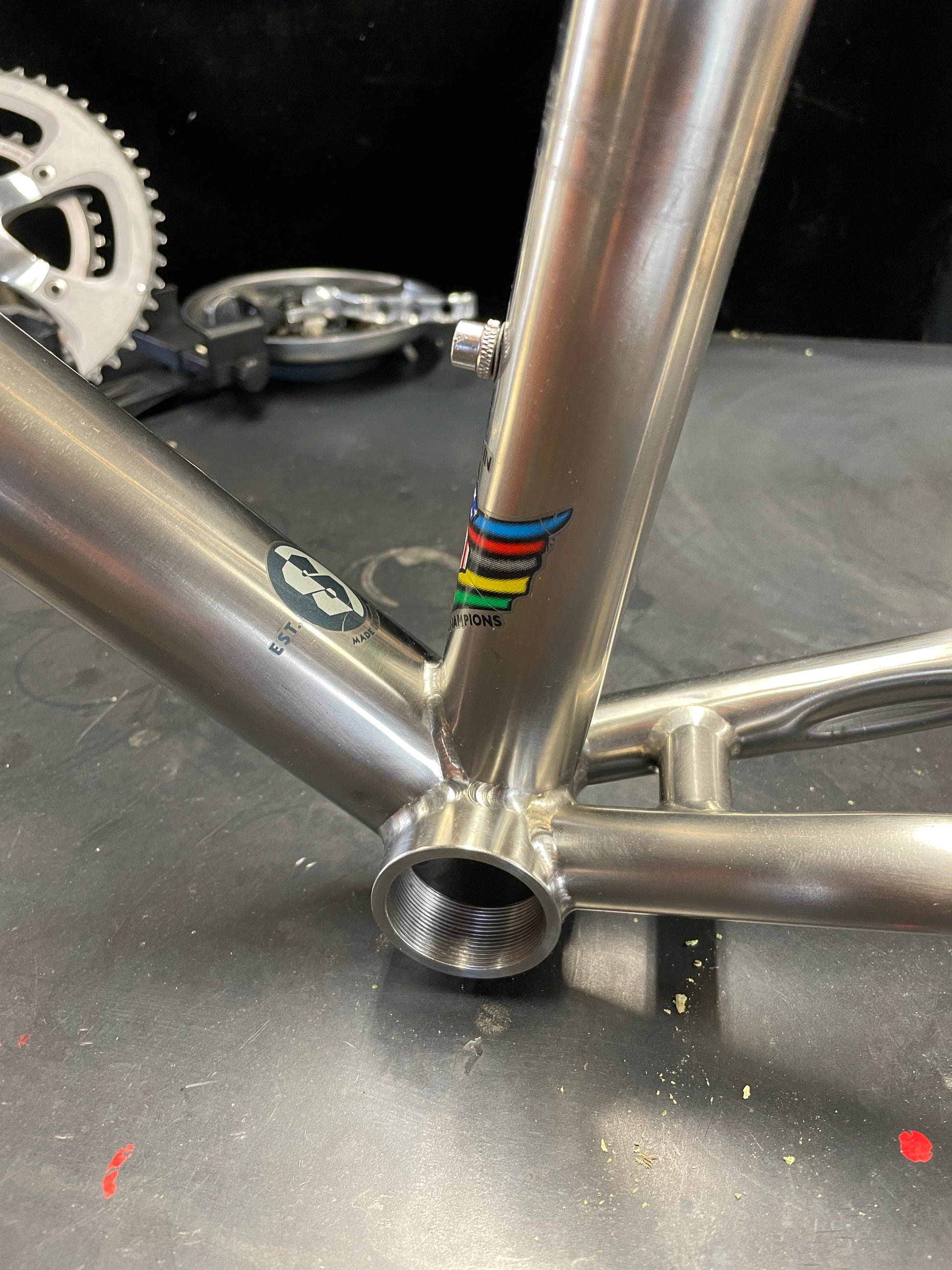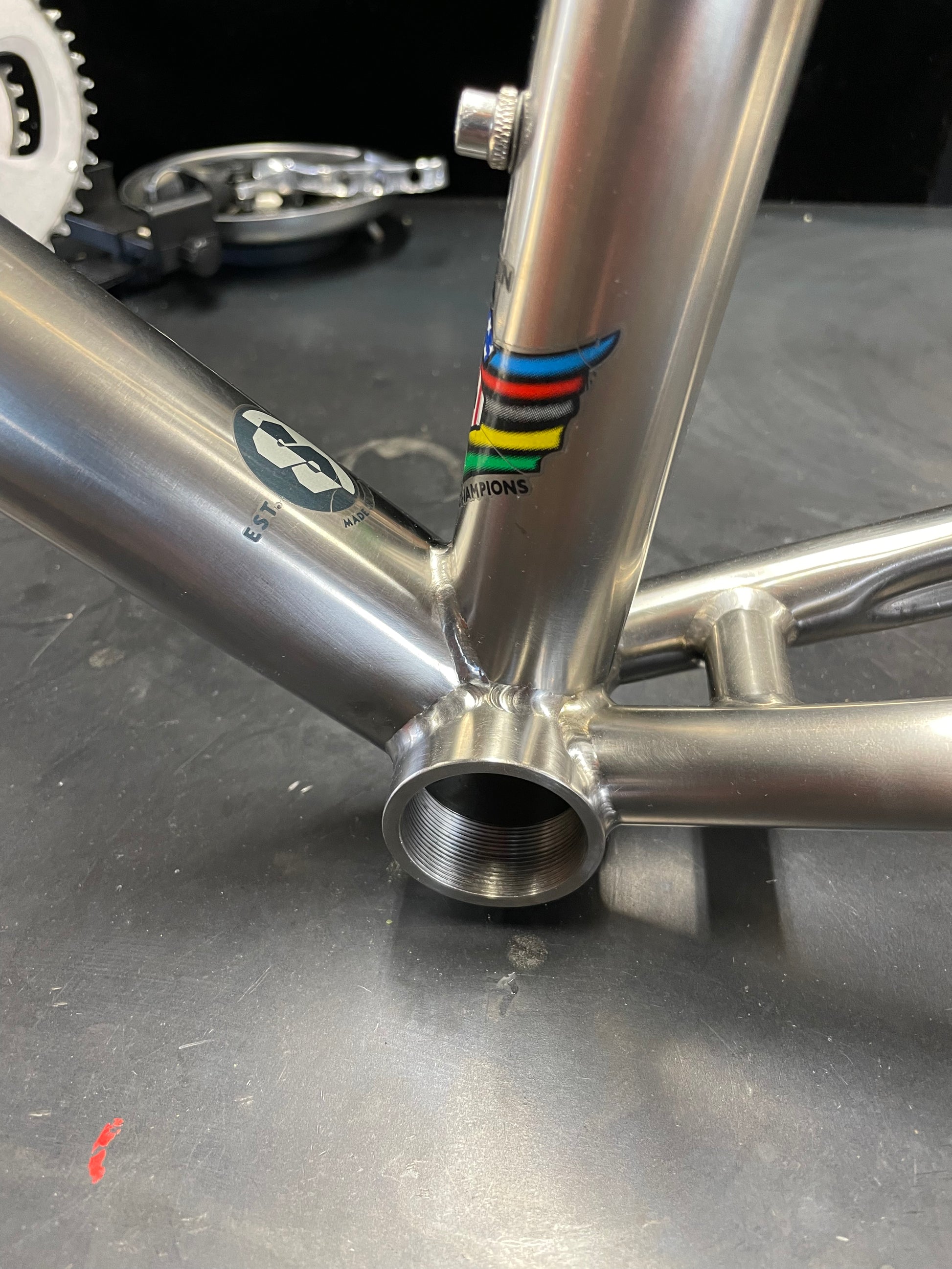 The frame is in excellent condition. All decals look great besides the decals that were once on the fork which have gone with the wind. No dents, bends, or cracks. The top tube has a few marks from the rear brake cable being bounced around on rides. The threading on the bottom bracket is in perfect condition. This is a once in a lifetime opportunity - this frame is being auctioned off via eBay. The link to the auction and be found HERE!