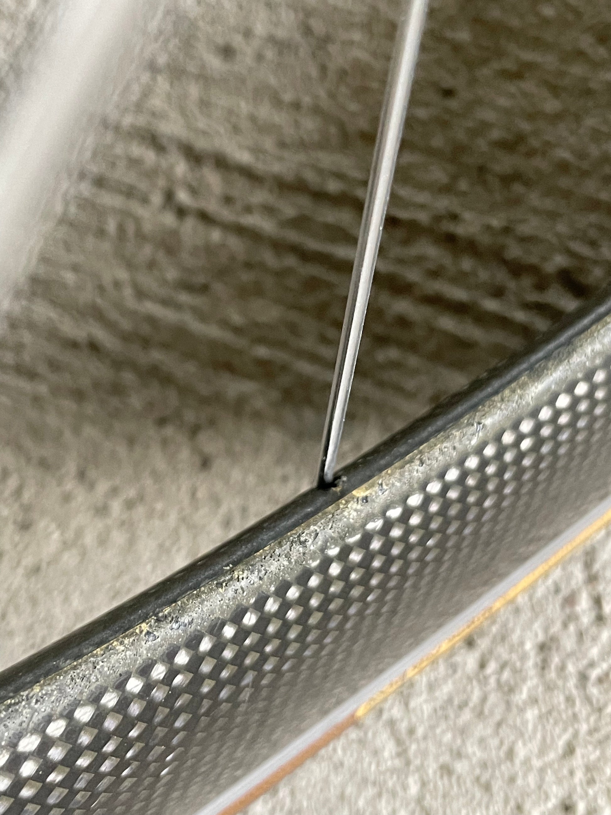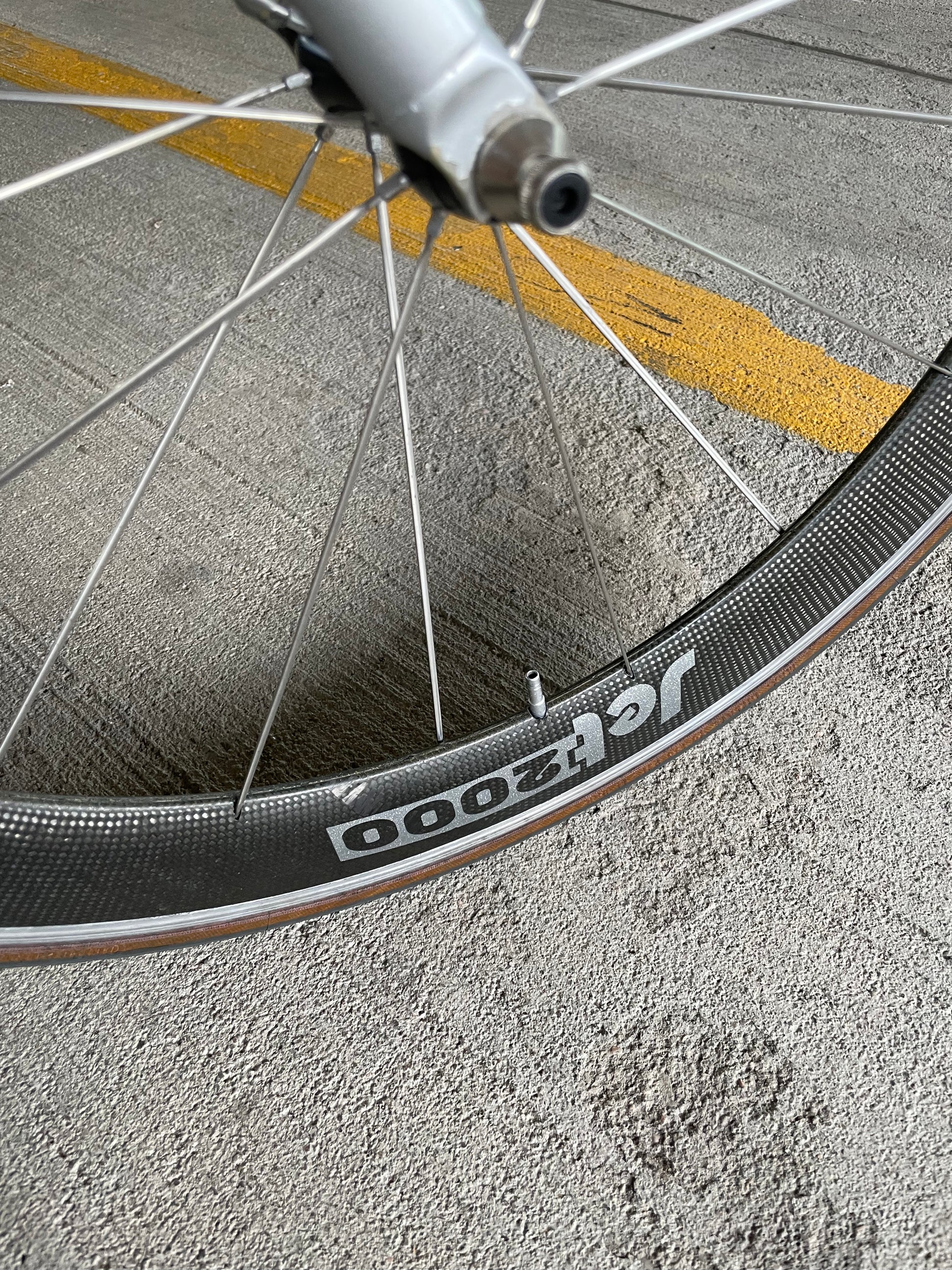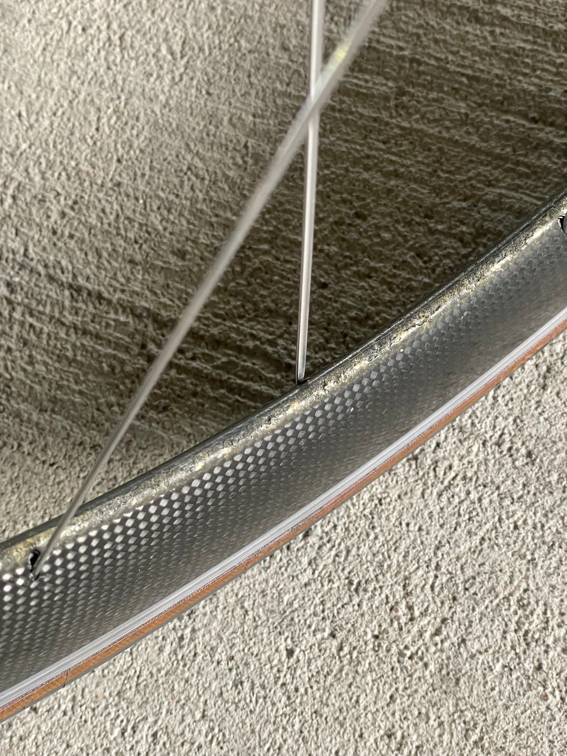 Although this bike is in good condition, it does show sign of use. There is small bubbling on the wheels where tho spokes come out but they are not cracked or damaged. There were also some chips on the frame but those were filled in with touch up paint. No dents, bends, or cracks! Please see all photos to get a better understanding as to the condition of this bike.
