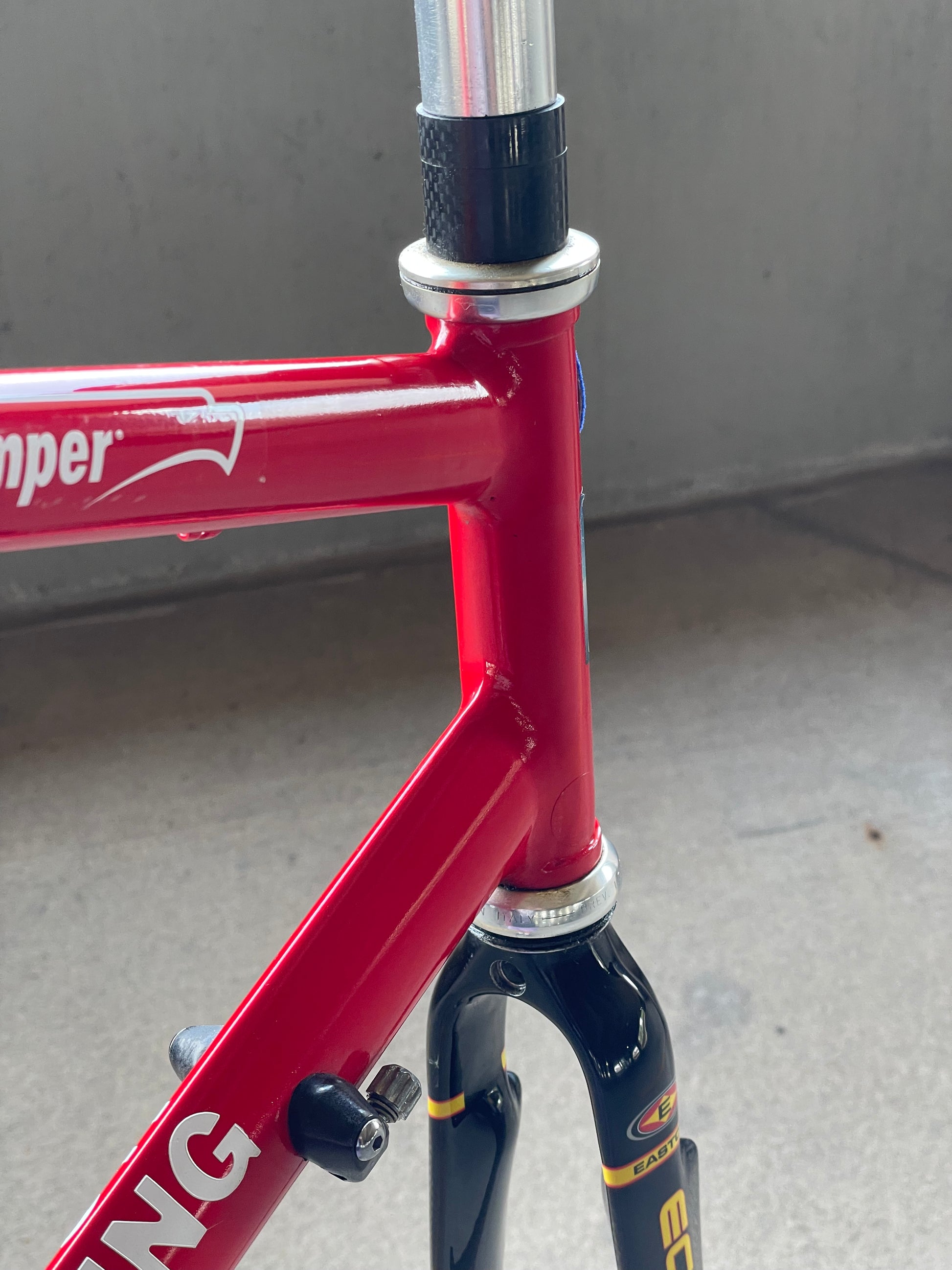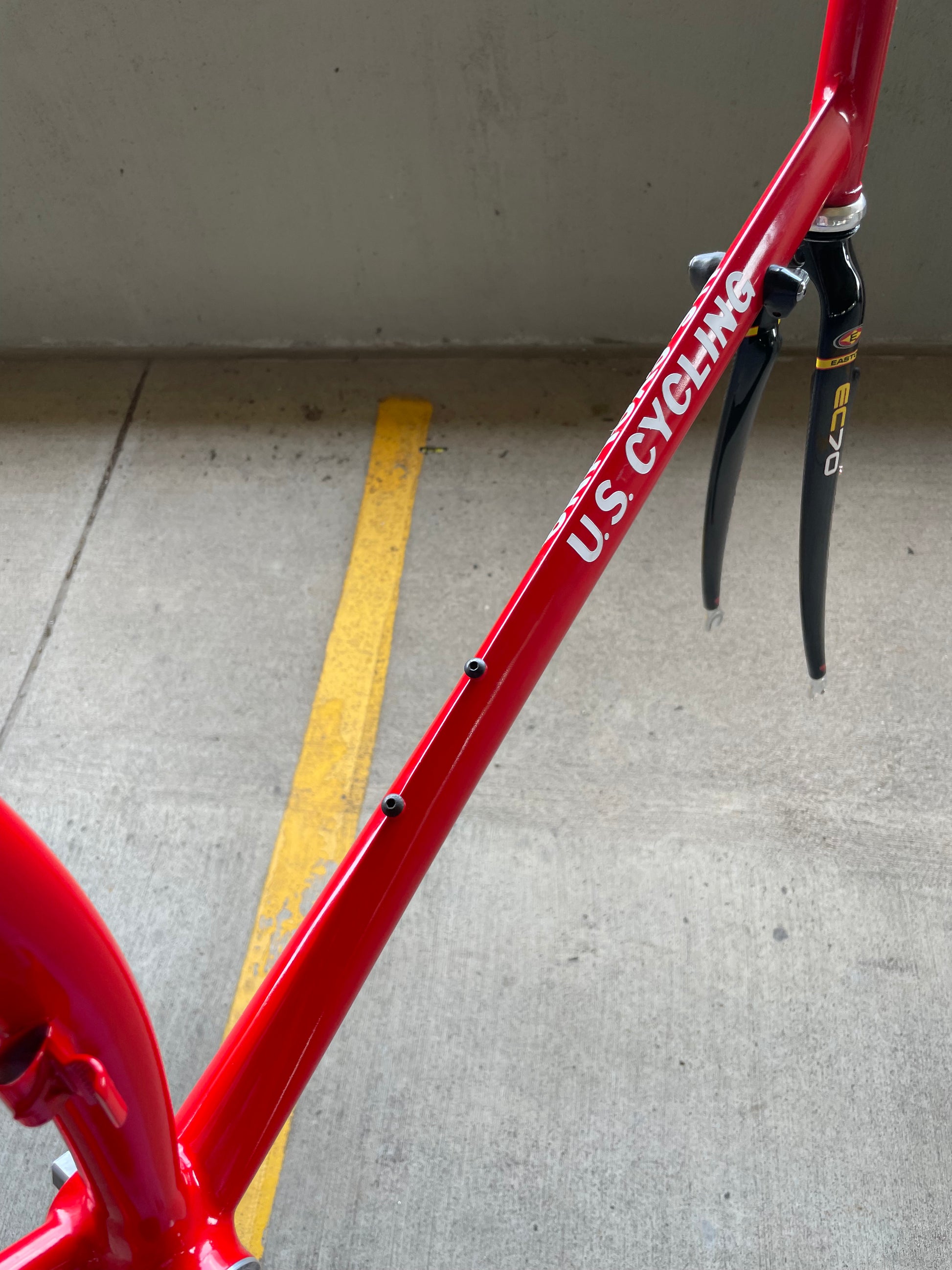 This is a very rare opportunity to own an important piece of cycling history from one of the best frame builders to ever braze steel. This is a 1992 Team USA time trial frame built by the one and only Koichi Yamaguchi. I emailed Mr. Yamaguchi to first see if he was the builder and secondly, to see when it was made and get more history. I attached a screenshot of the conversation. To summarize, Yamaguchi built this frame for David Nicolson to compete in Barcelona for the 1992 Olympic games. Nicolson unfortunately crashed while on a training ride, damaging the fork (hence the non original Easton carbon fork) and breaking his leg. This would lead to John Stenner taking his place. Mr. Yamaguchi also stated the bike would have originally been white with different decals. I'm not sure on the history after this point. It was painted at some point and I assume it stayed around the Olympic training facility in Colorado Springs, as it has a badge for the facility on the head tube. The craftsmanship is quite literally as good as it gets. The fillet brazing, jointing, and tube work is absolutely insane. One could look at this frame for hours and find new details every time.