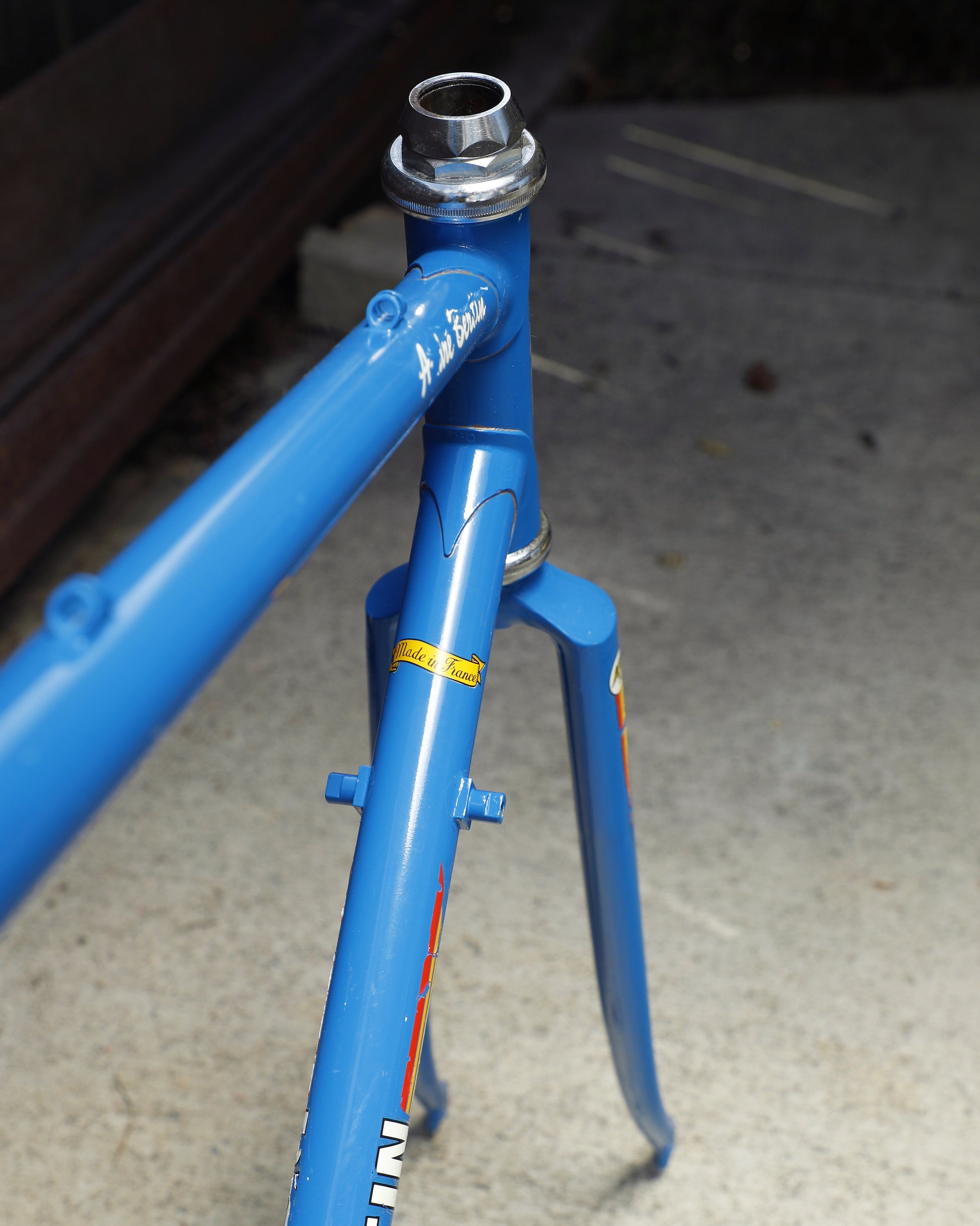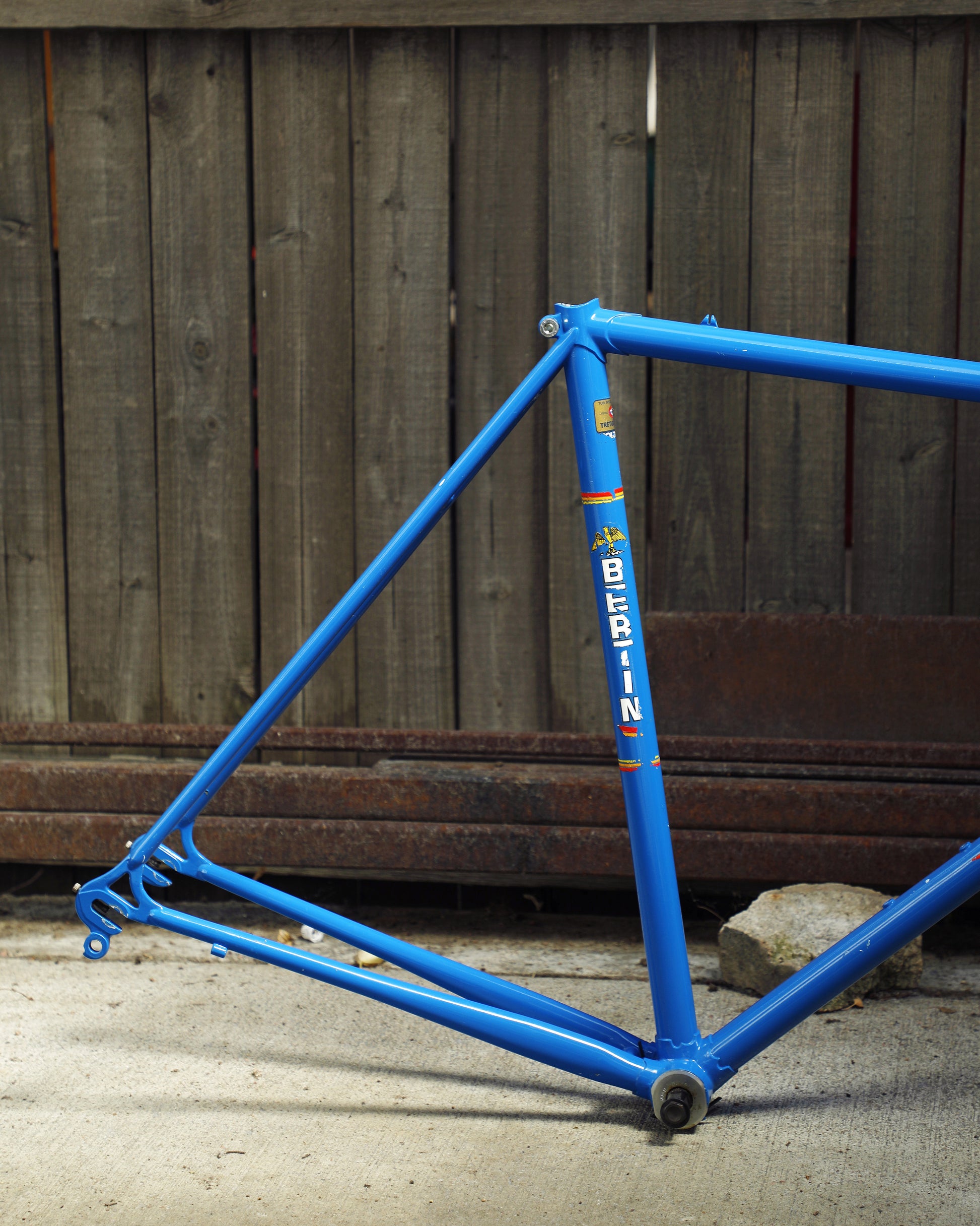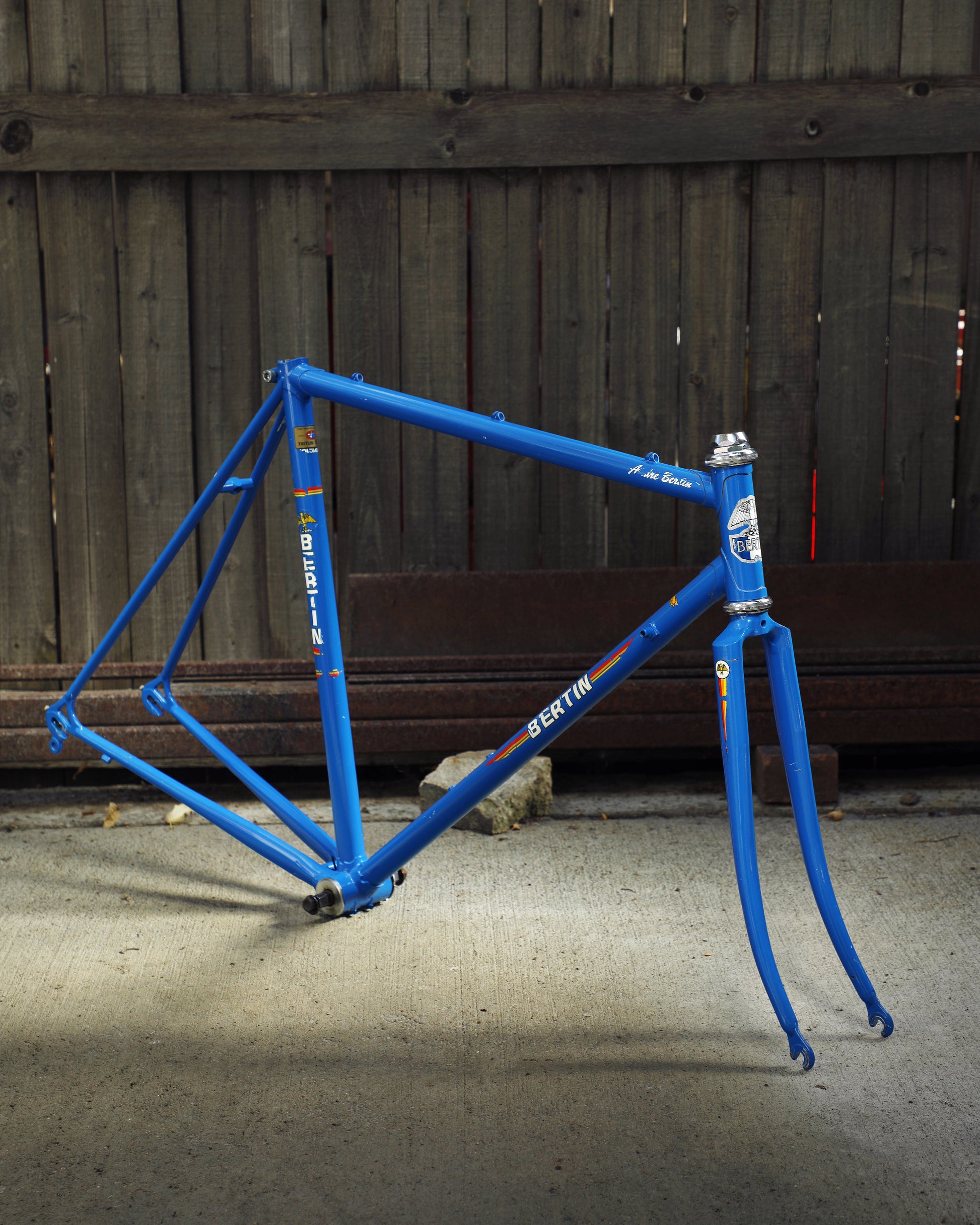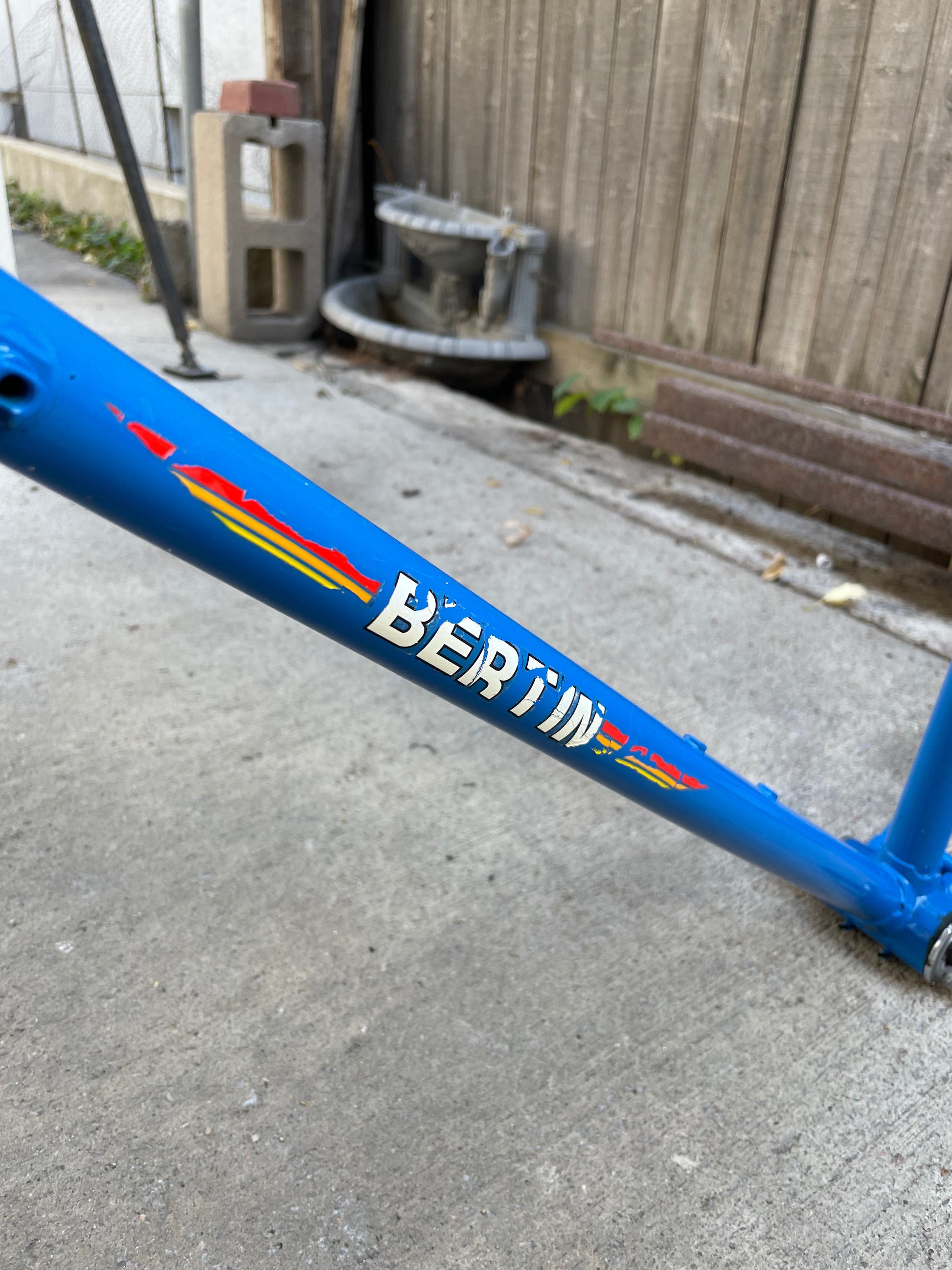 This Andre Bertin road frameset is in very good condition! There are a few paint chips here and there, but nothing worth writing home about. No dents, bends, or cracks anywhere on the frame. The headset and bottom bracket have not been removed and inspected. The frame is made from Columbus Aelle tubing, which was a very solid tubeset at the time! This is a great high quality, entry level steel frame.