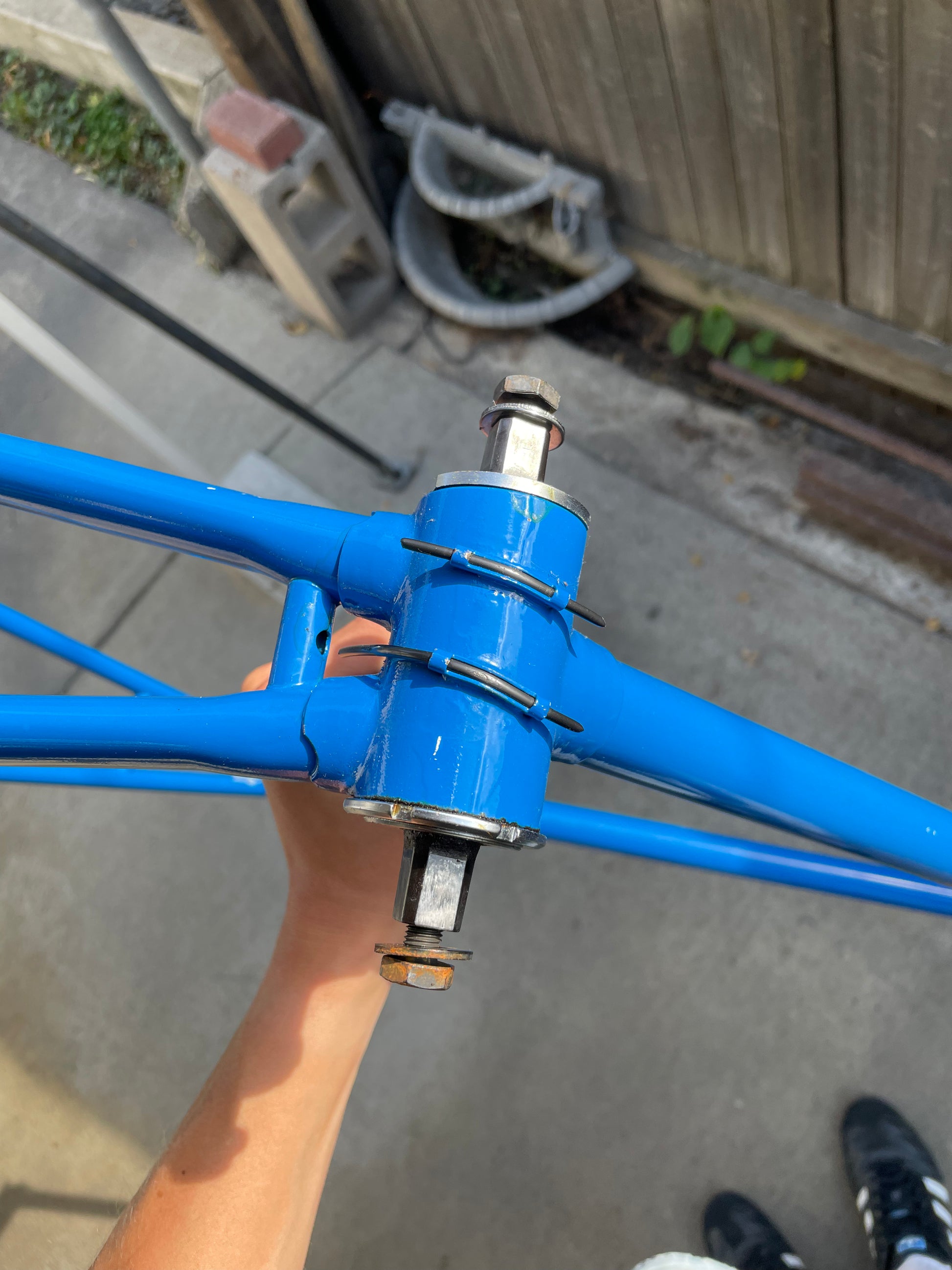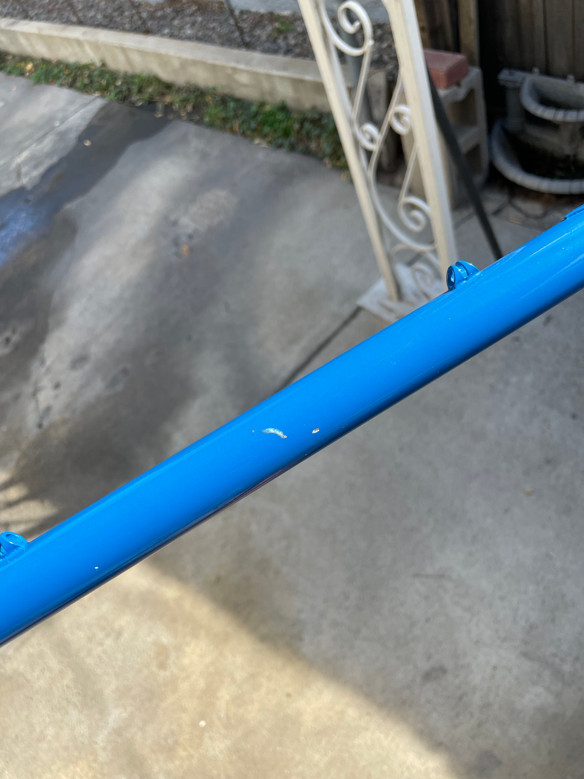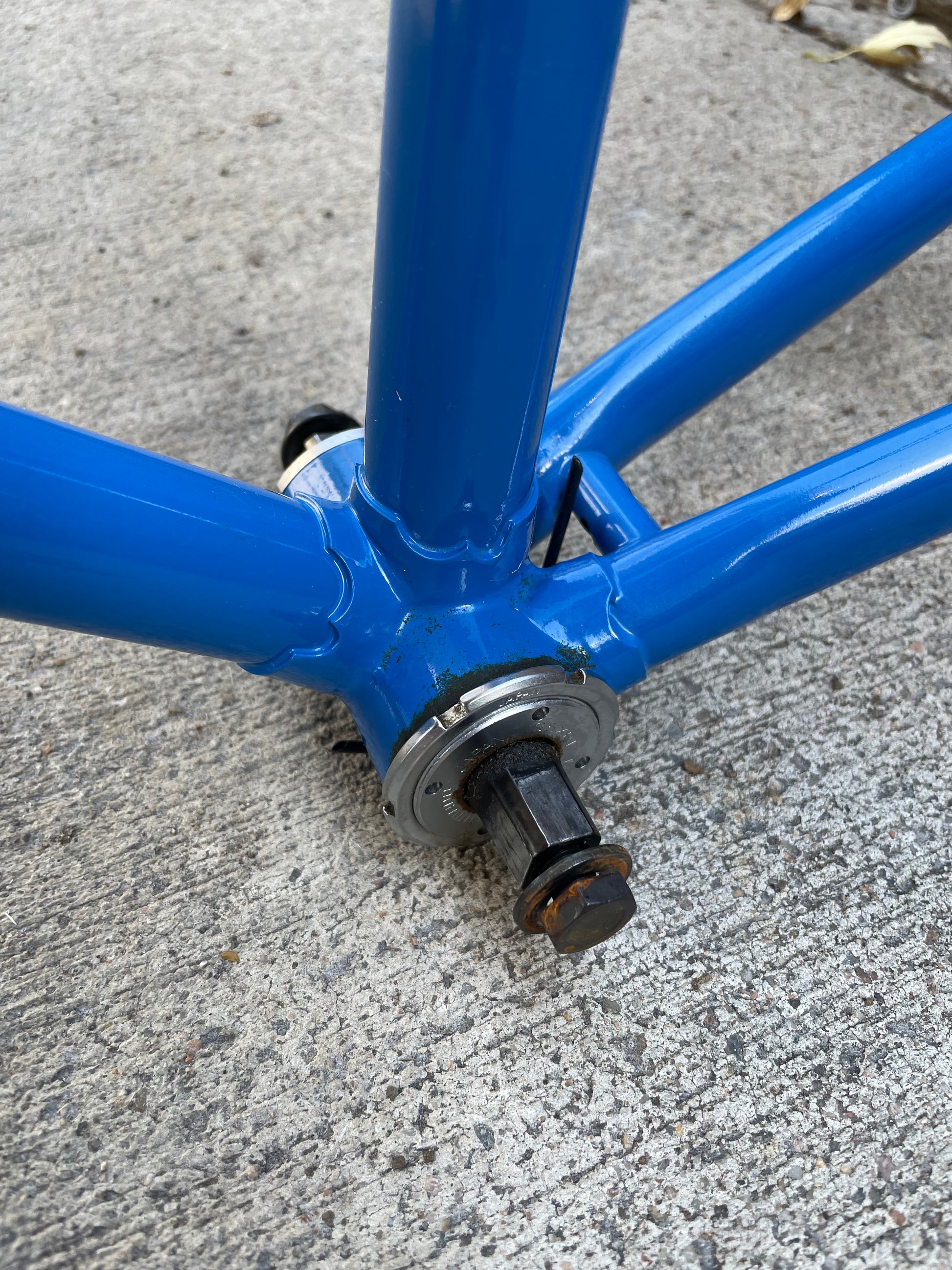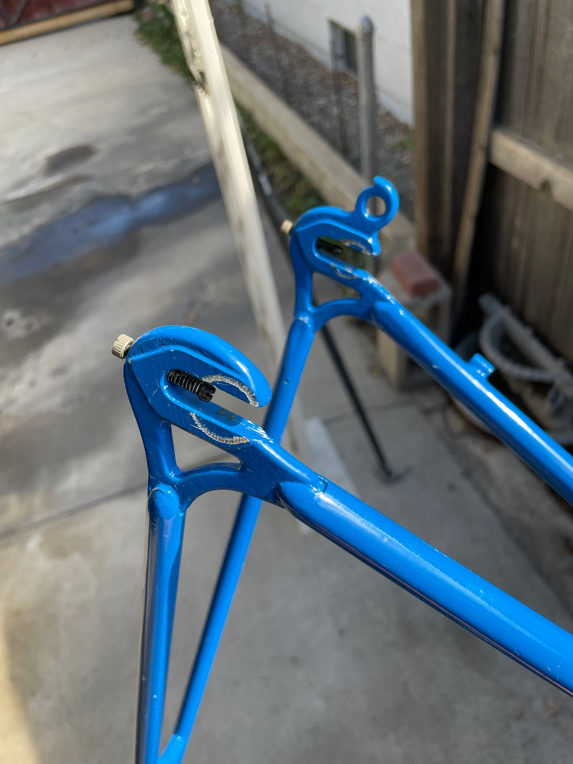 This Andre Bertin road frameset is in very good condition! There are a few paint chips here and there, but nothing worth writing home about. No dents, bends, or cracks anywhere on the frame. The headset and bottom bracket have not been removed and inspected. The frame is made from Columbus Aelle tubing, which was a very solid tubeset at the time! This is a great high quality, entry level steel frame.