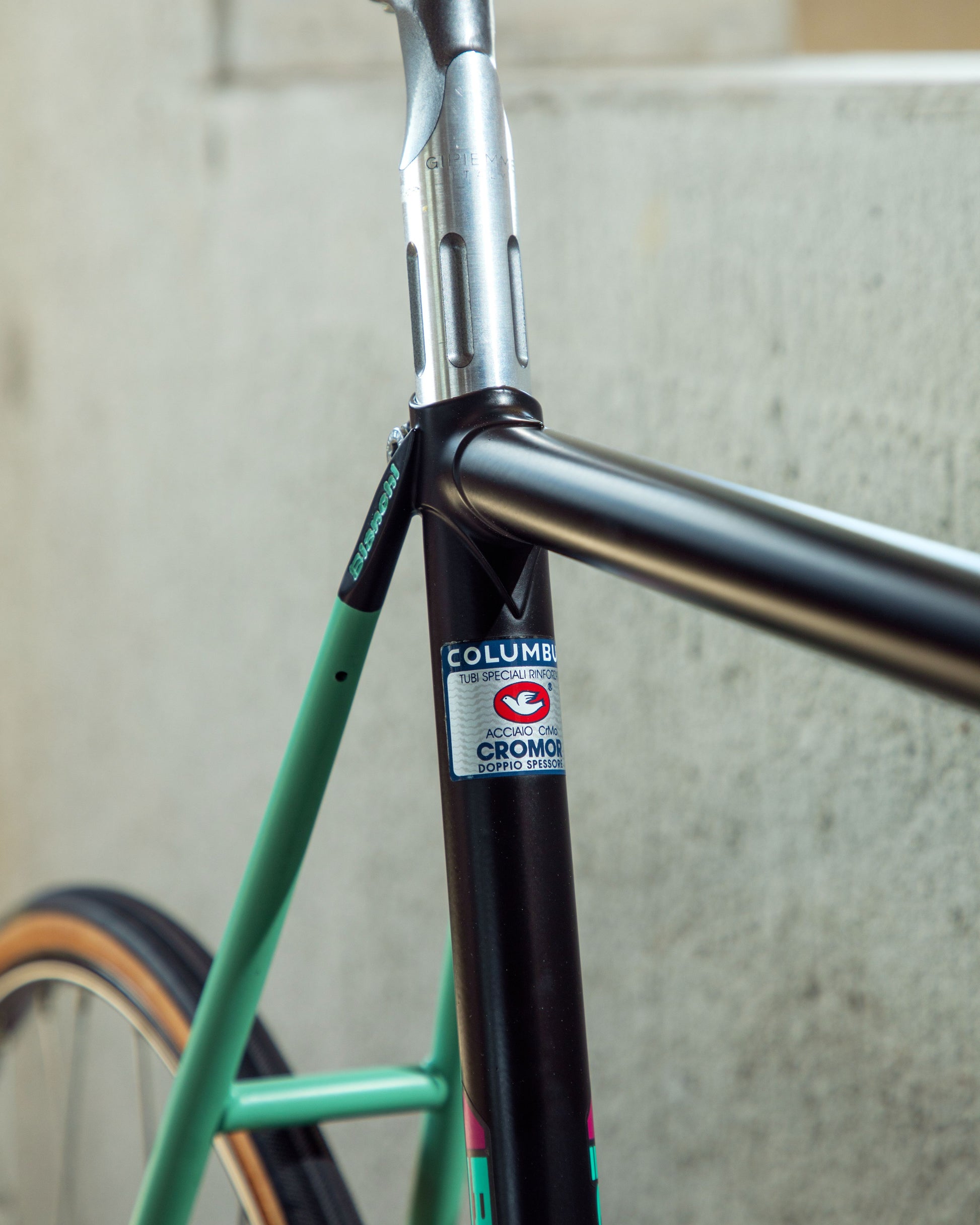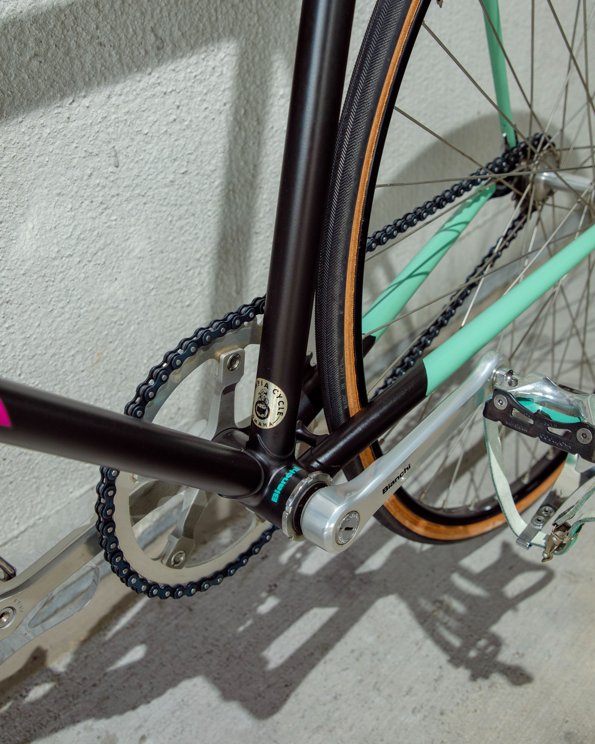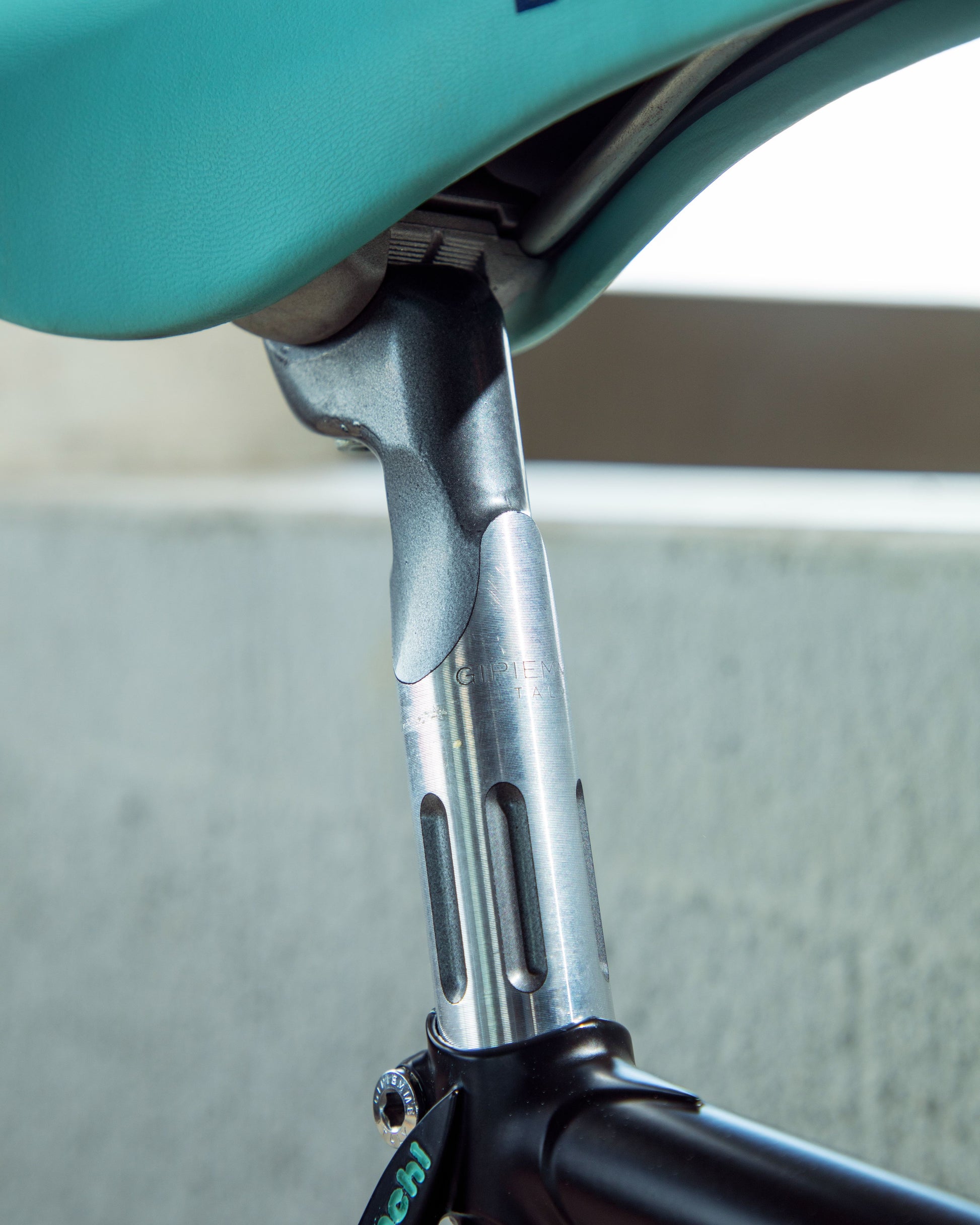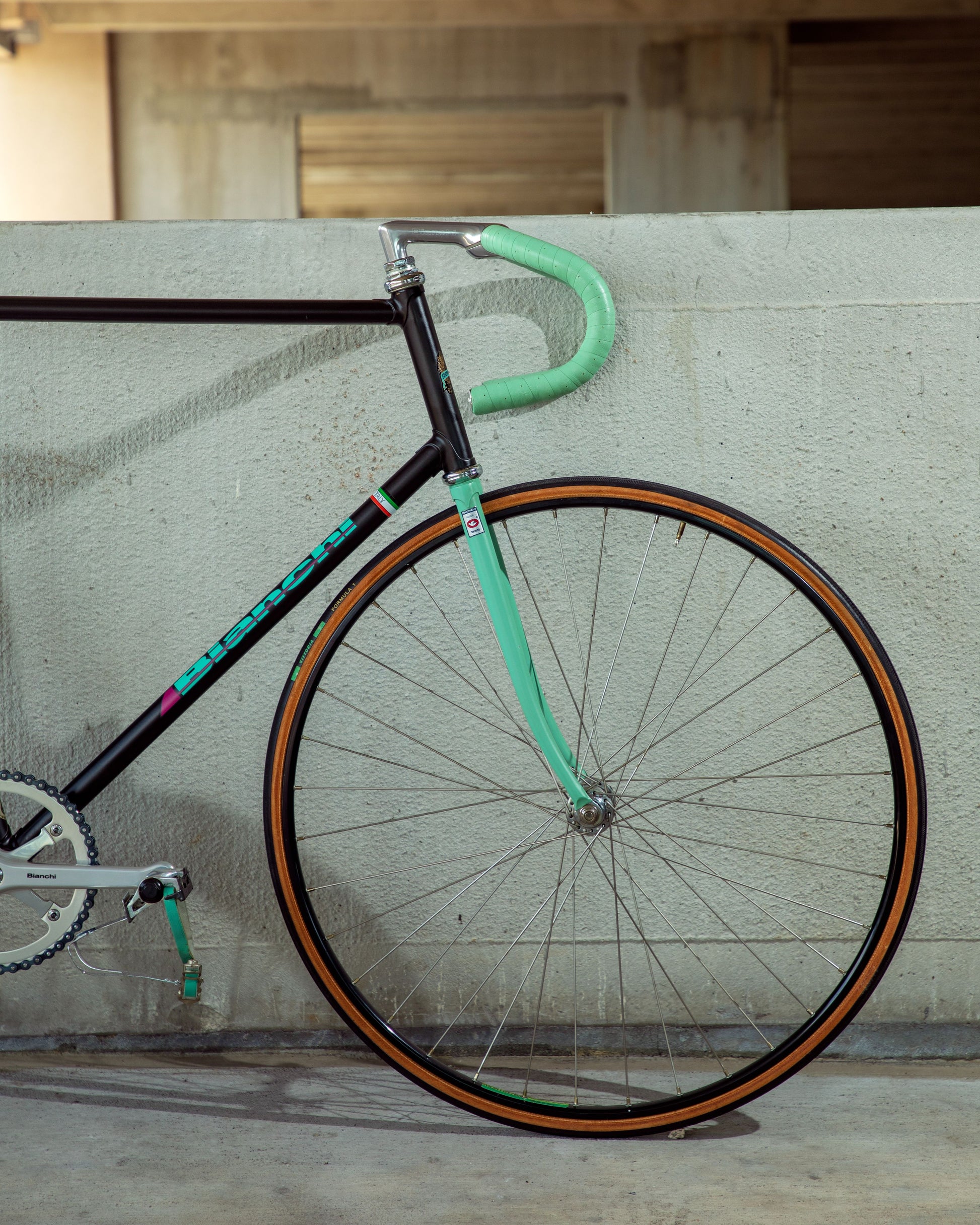 This 1991 Bianchi Pista has been a wall hanger its entire life. The bike is originally from Omaha, Nebraska, where it hung on a bike shop wall. Everything on the bike is catalog spec and in incredible condition, even down to the original tubular tires. Although this bike is in museum condition, it still has a few blemishes from being moved around. There is a paint chip on the inside of both fork blades and a very small paint blemish on the downtube. It looks like whatever chipped the paint, also left the smallest impression in the tube. I would also advise gluing on new tires if you intend to ride this bike, as the glue has lived its life and would likely not hold up while riding. The logo on the back of the saddle is also starting to lift on the right side. The back of the seatpost has some scratches from being removed/installed. I highlighted all of these areas with photos, so please take a look at those to get a better understanding as to the true condition.