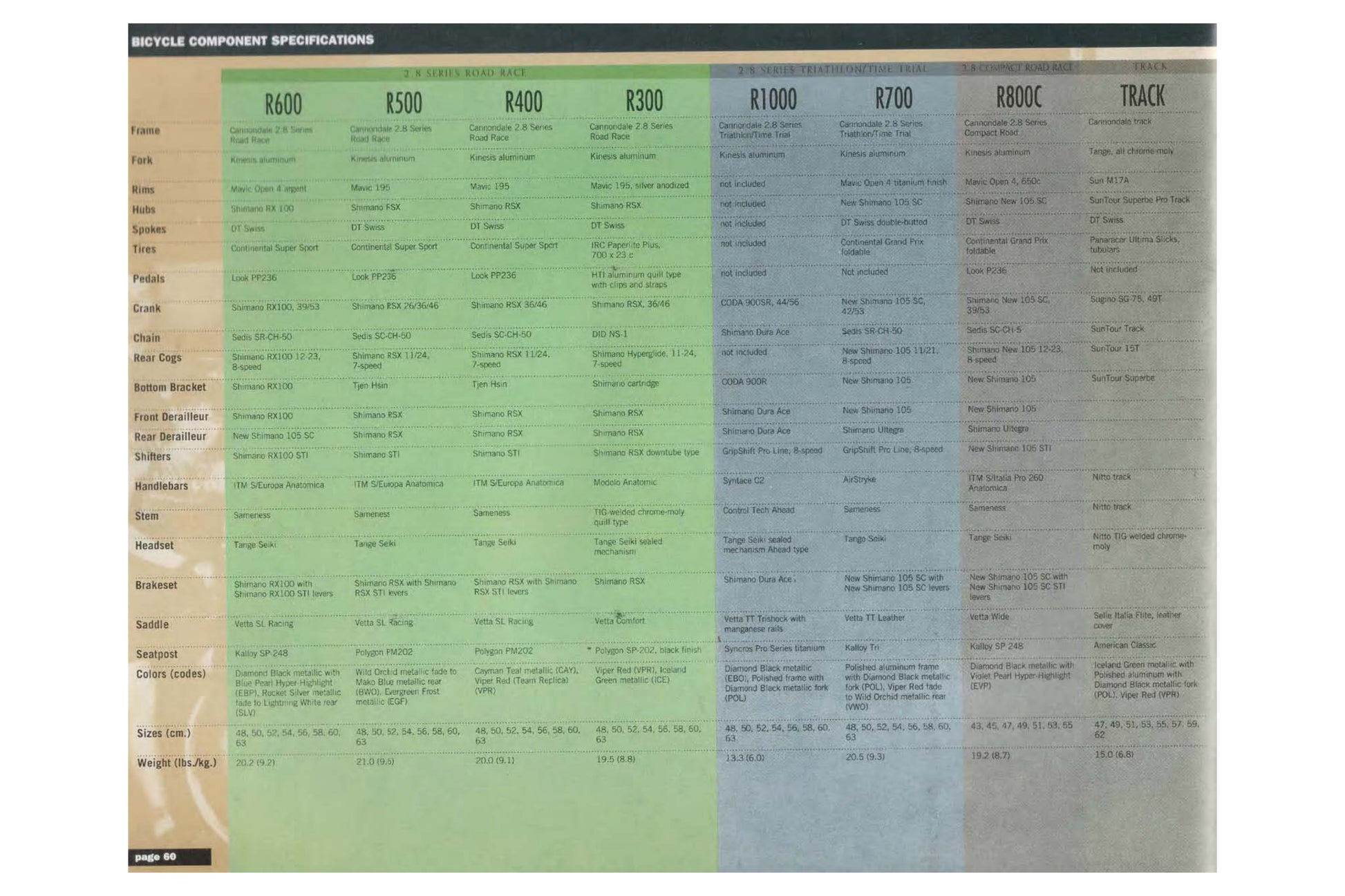 Check out the photos from the original 1995 Cannondale catalog. You can also find the original spec sheet and cover.