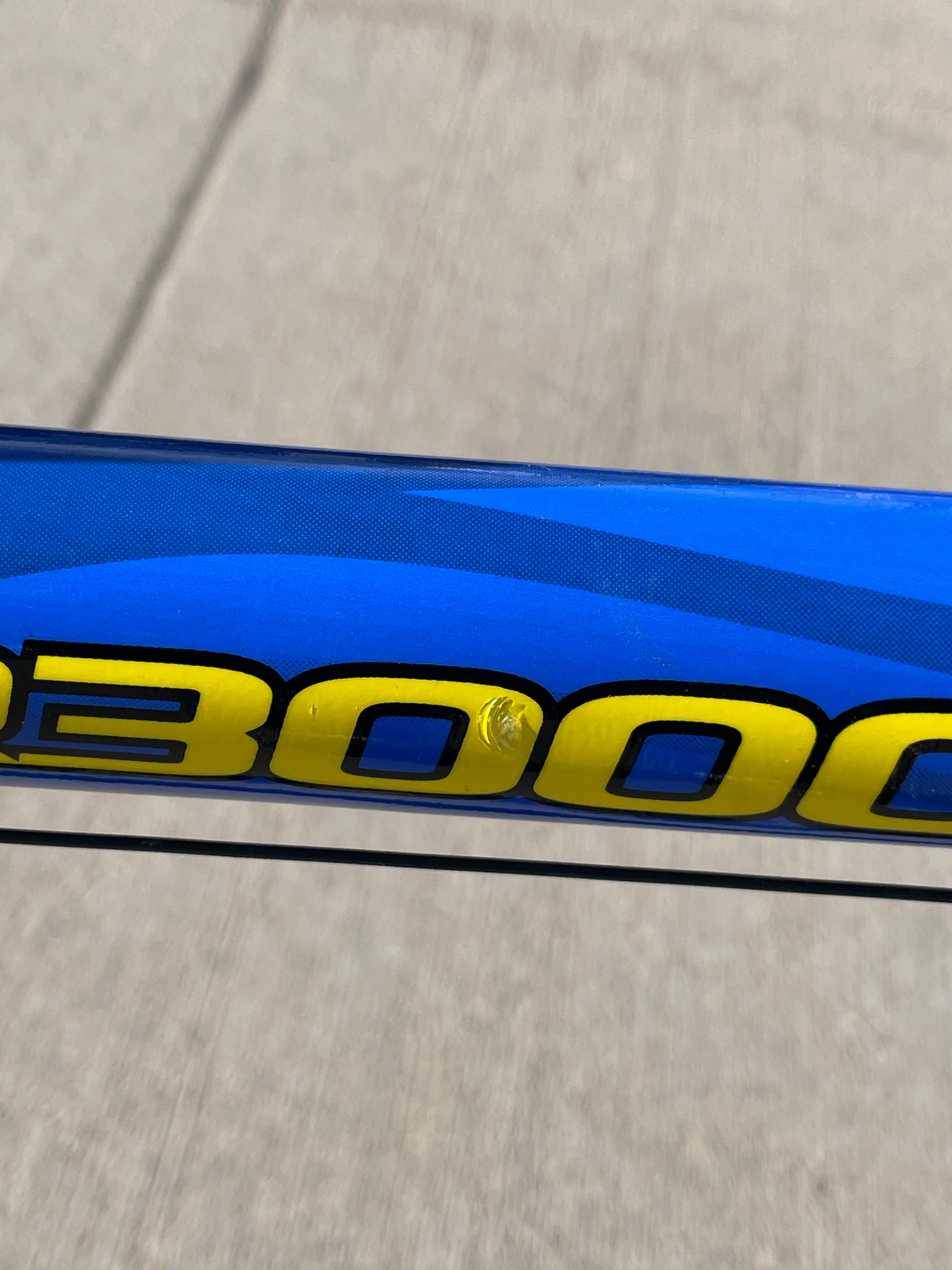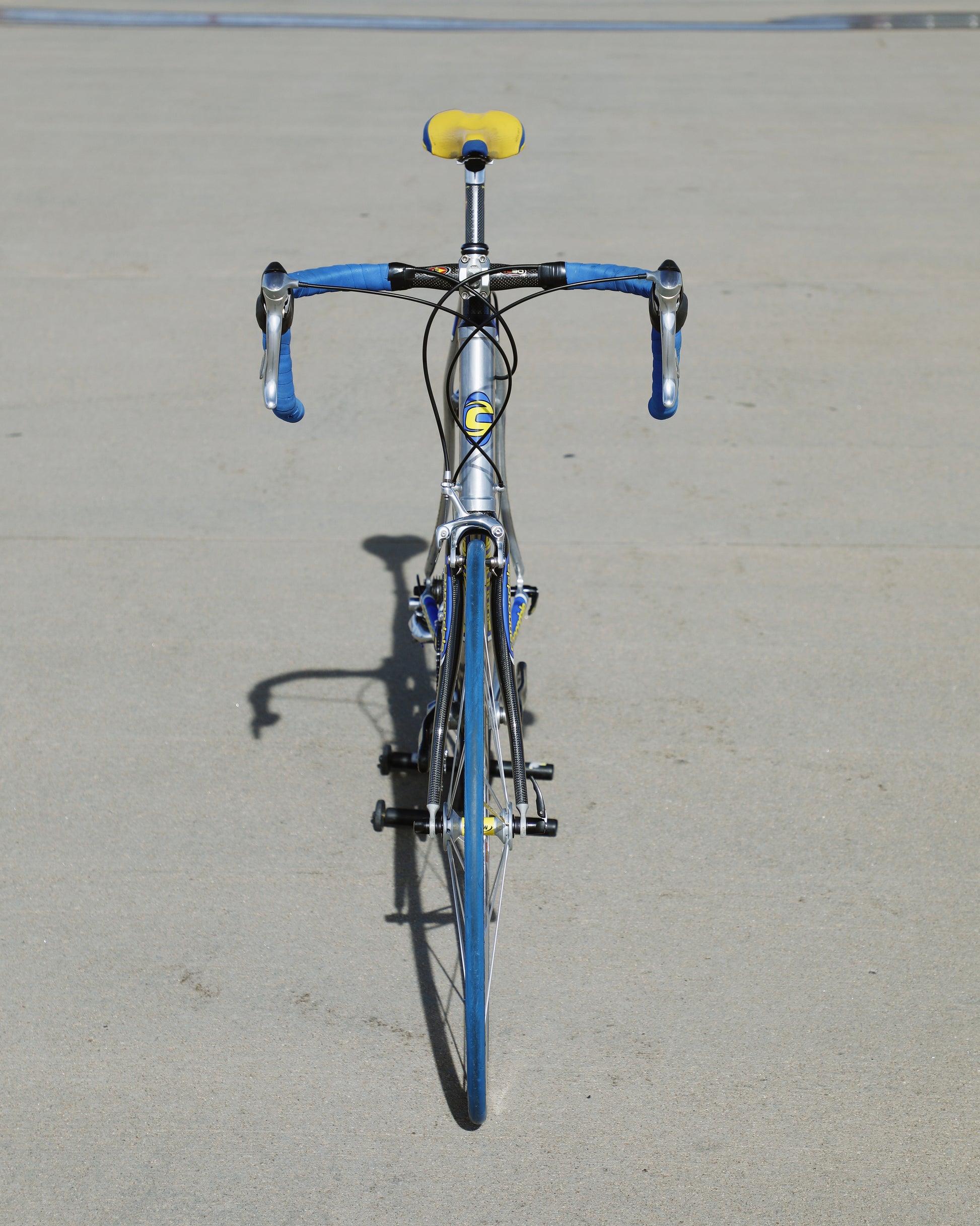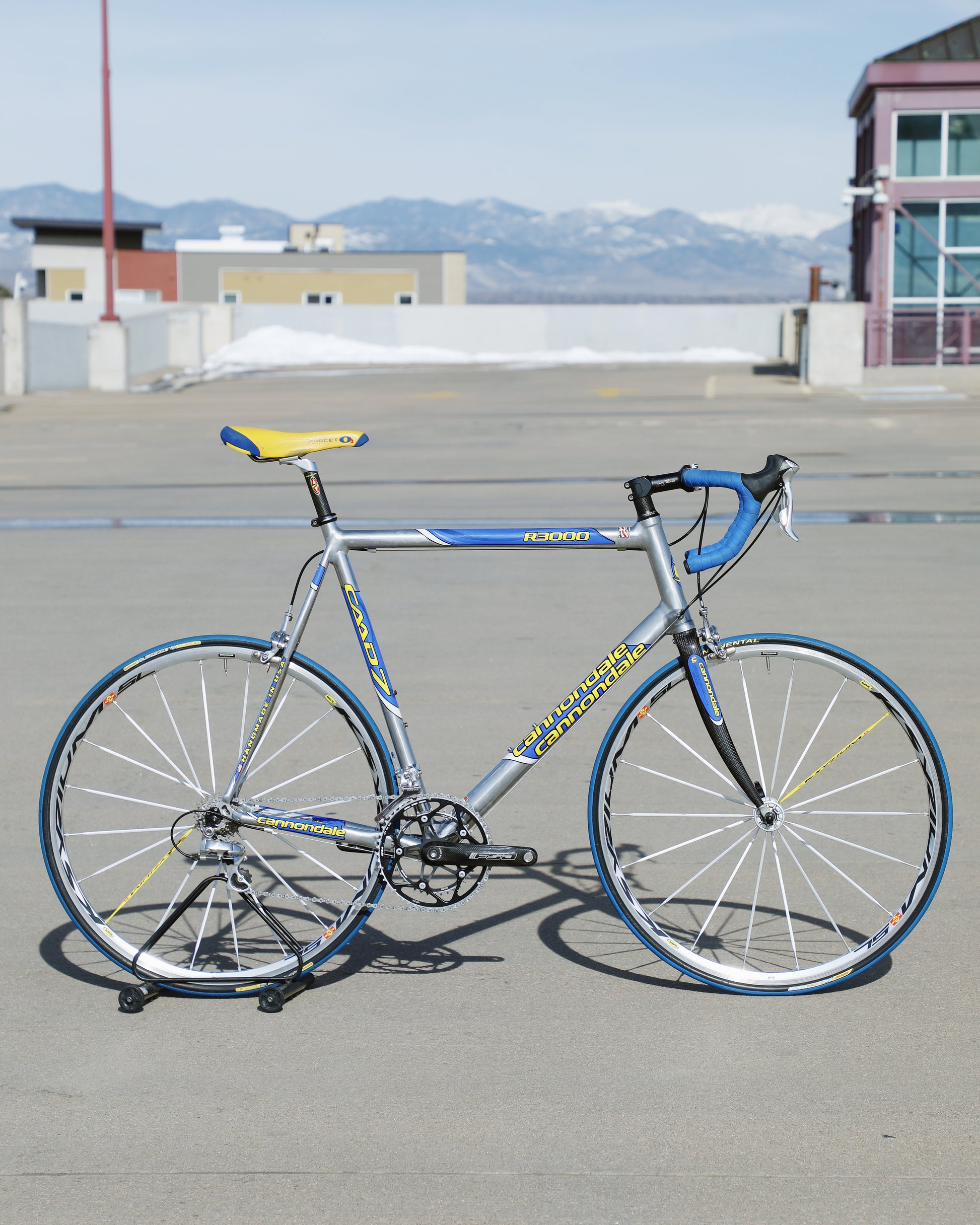 This Cannondale R3000 is light, snappy, and fast. It has everything you would want in a road bike! It comes equipped with a Dura-Ace 7700 groupset and an Easton carbon handlebar and seat post. The carbon FSA crankset is 175mm with 53/39 rings. The Dura-Ace 9spd cassette is a 12/23. It is currently running a 23 but there is plenty of clearance in both the front and the rear for a 28. Mavic Ksyrium SL Tour de France Edition wheels that really tie the look of the whole bike together! This bike weighs in at 16.25 lbs!!