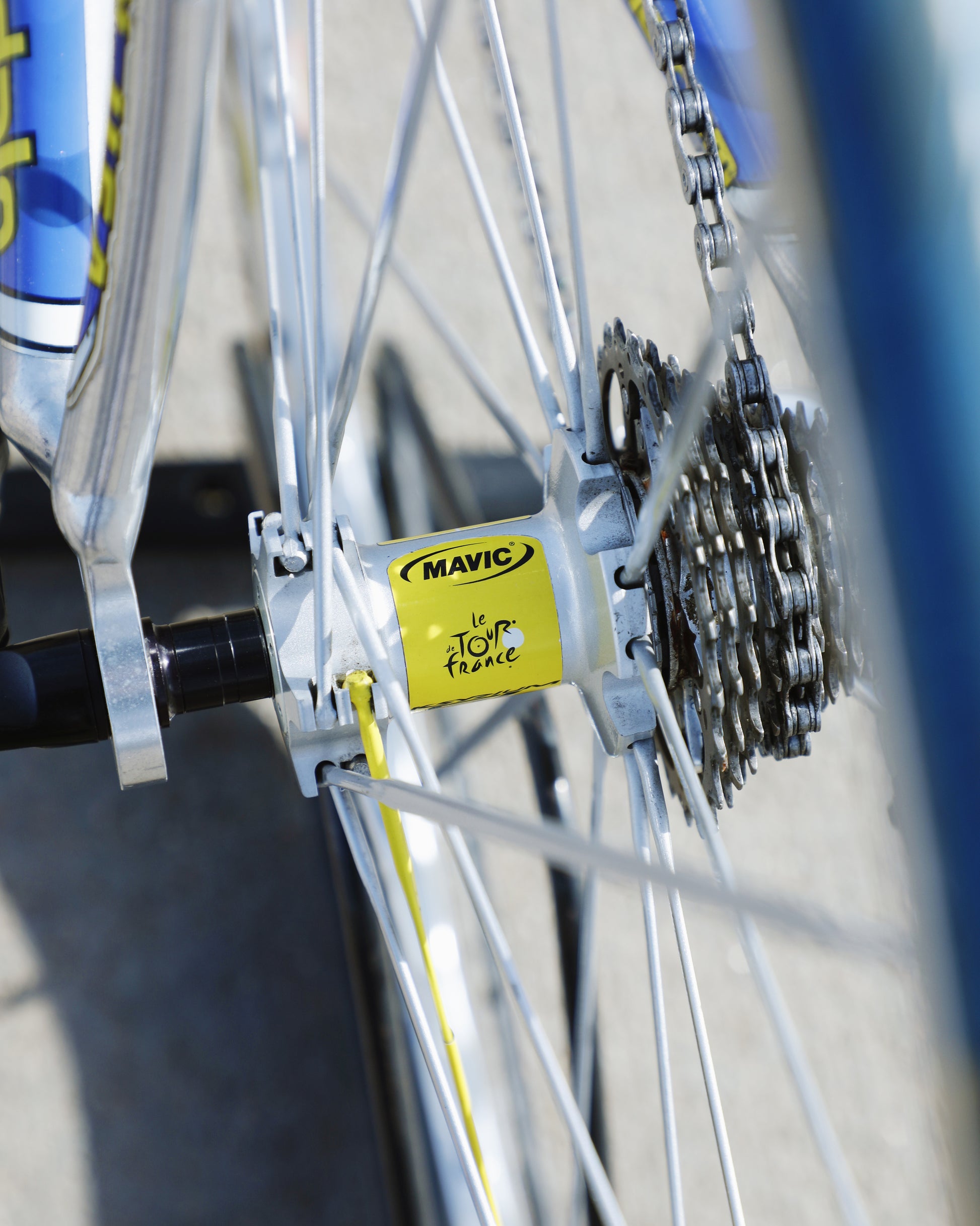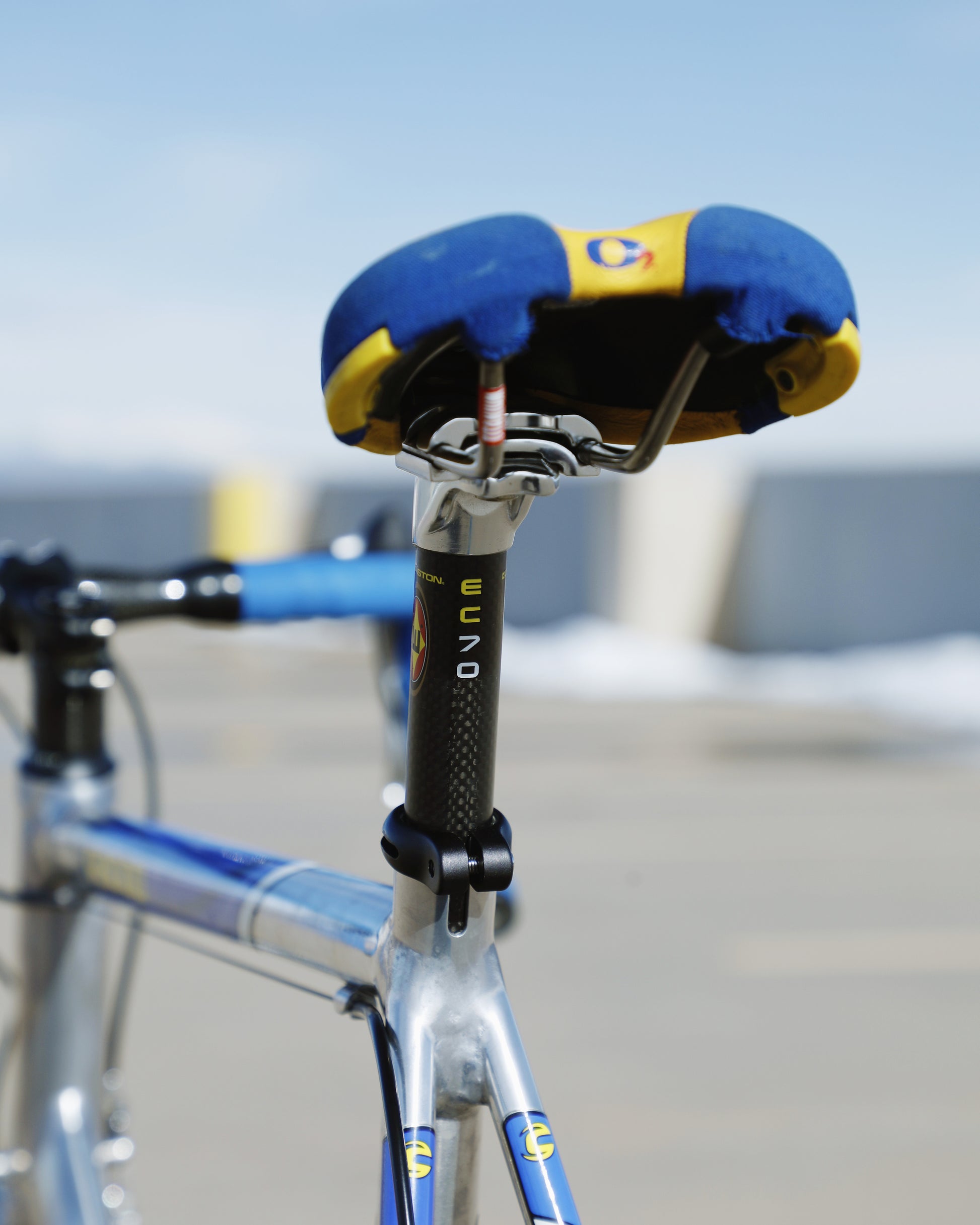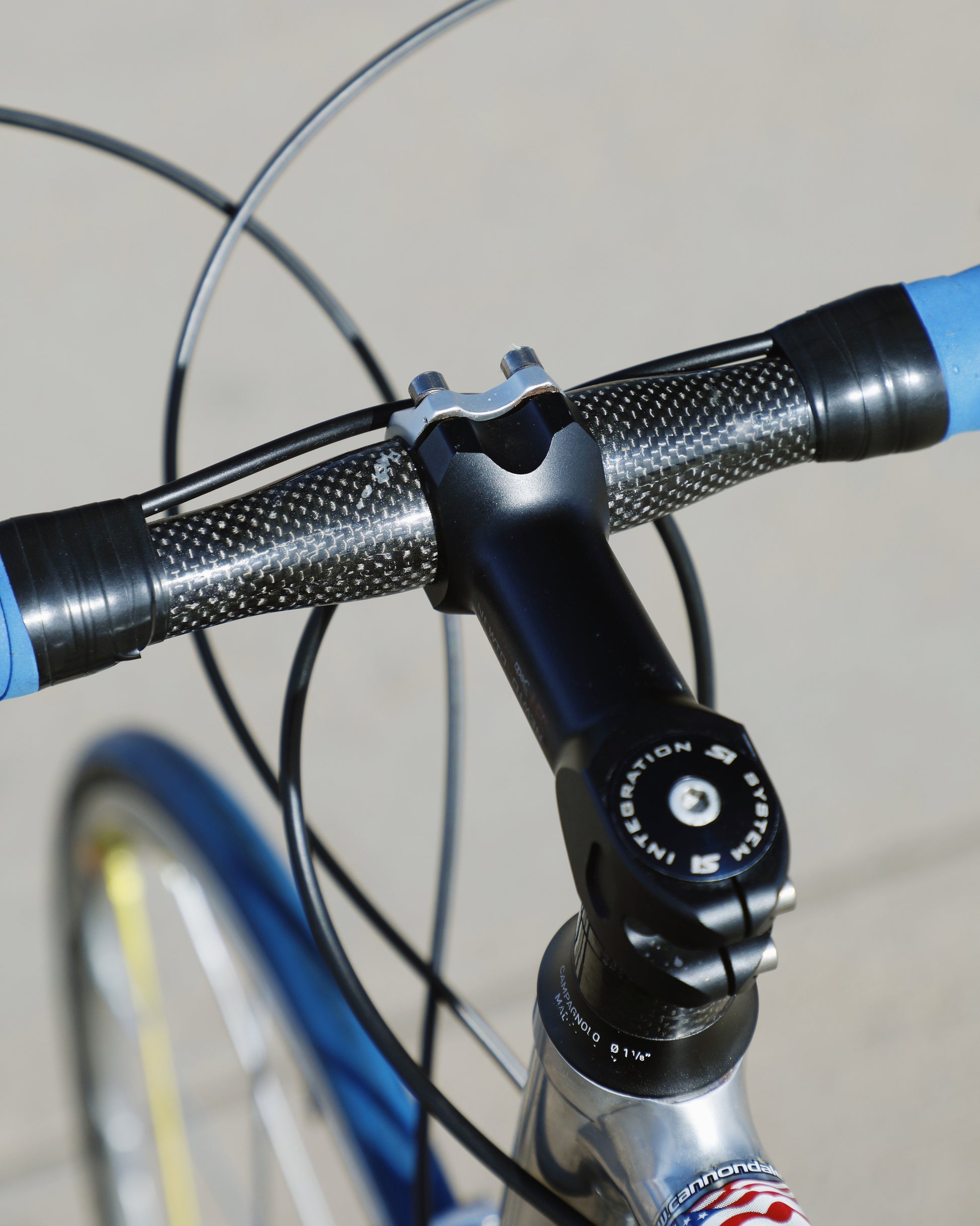 This Cannondale R3000 is light, snappy, and fast. It has everything you would want in a road bike! It comes equipped with a Dura-Ace 7700 groupset and an Easton carbon handlebar and seat post. The carbon FSA crankset is 175mm with 53/39 rings. The Dura-Ace 9spd cassette is a 12/23. It is currently running a 23 but there is plenty of clearance in both the front and the rear for a 28. Mavic Ksyrium SL Tour de France Edition wheels that really tie the look of the whole bike together! This bike weighs in at 16.25 lbs!!
