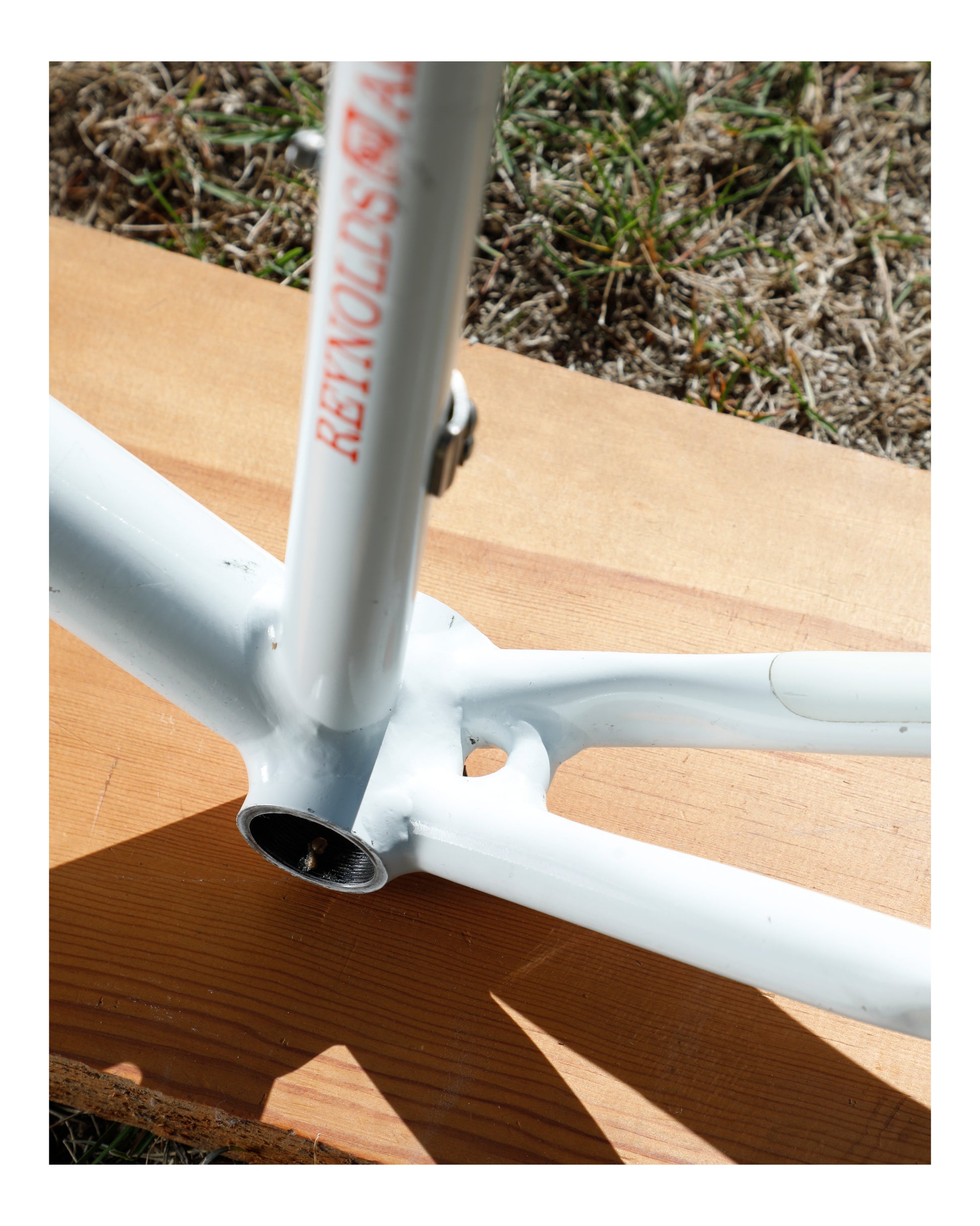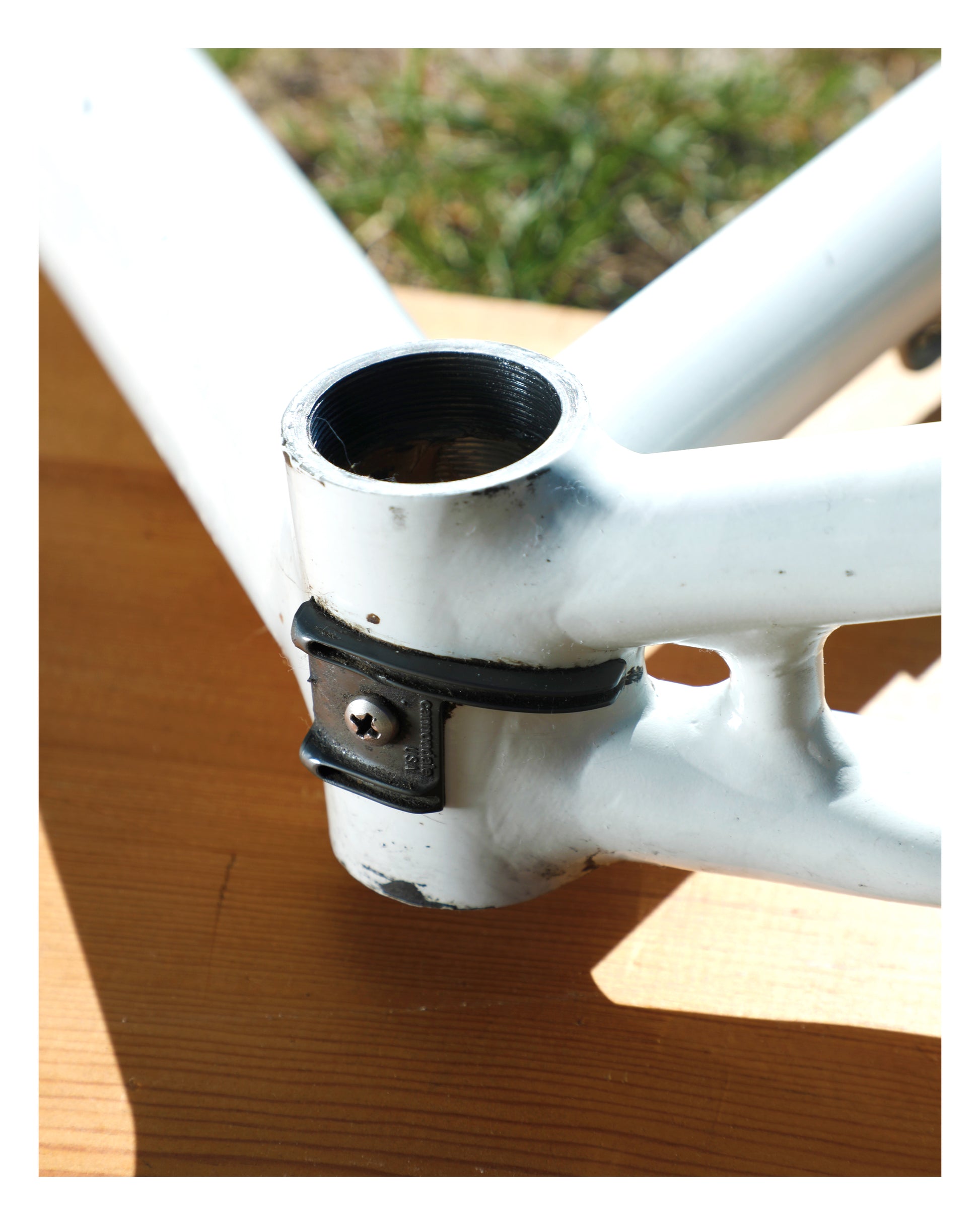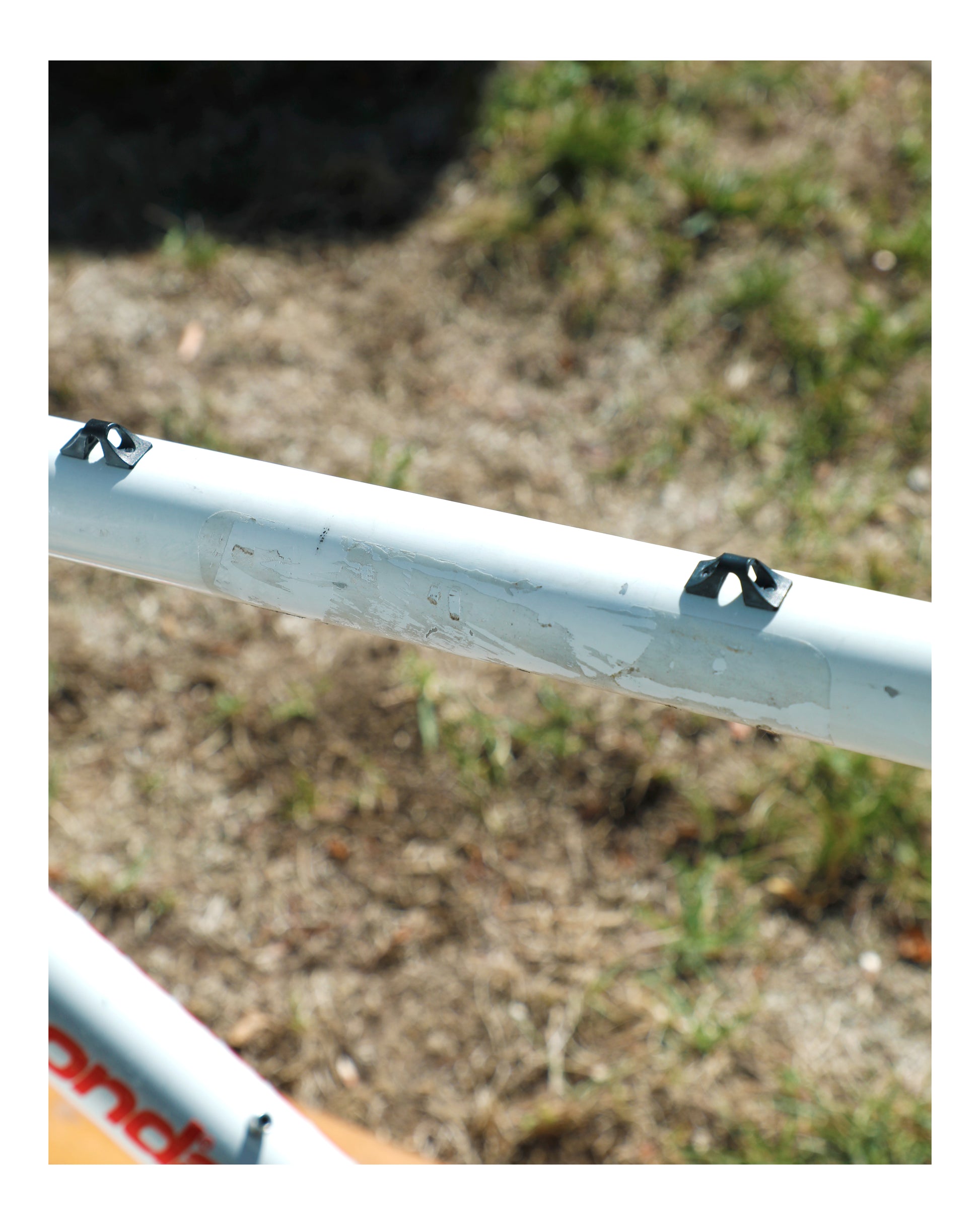 Unfortunately, the precious owner removed all of the color speckle decals. I'd love for this frame to go to someone who is willing to put the time and effort into re-decaling it. It deserves it and looks SO COOL! The cable guide closest to the seat post has a crack in it. The frame looks great and only has a couple scuffs and the outline of previous stickers. I did my best to clean it up and make it more presentable.
