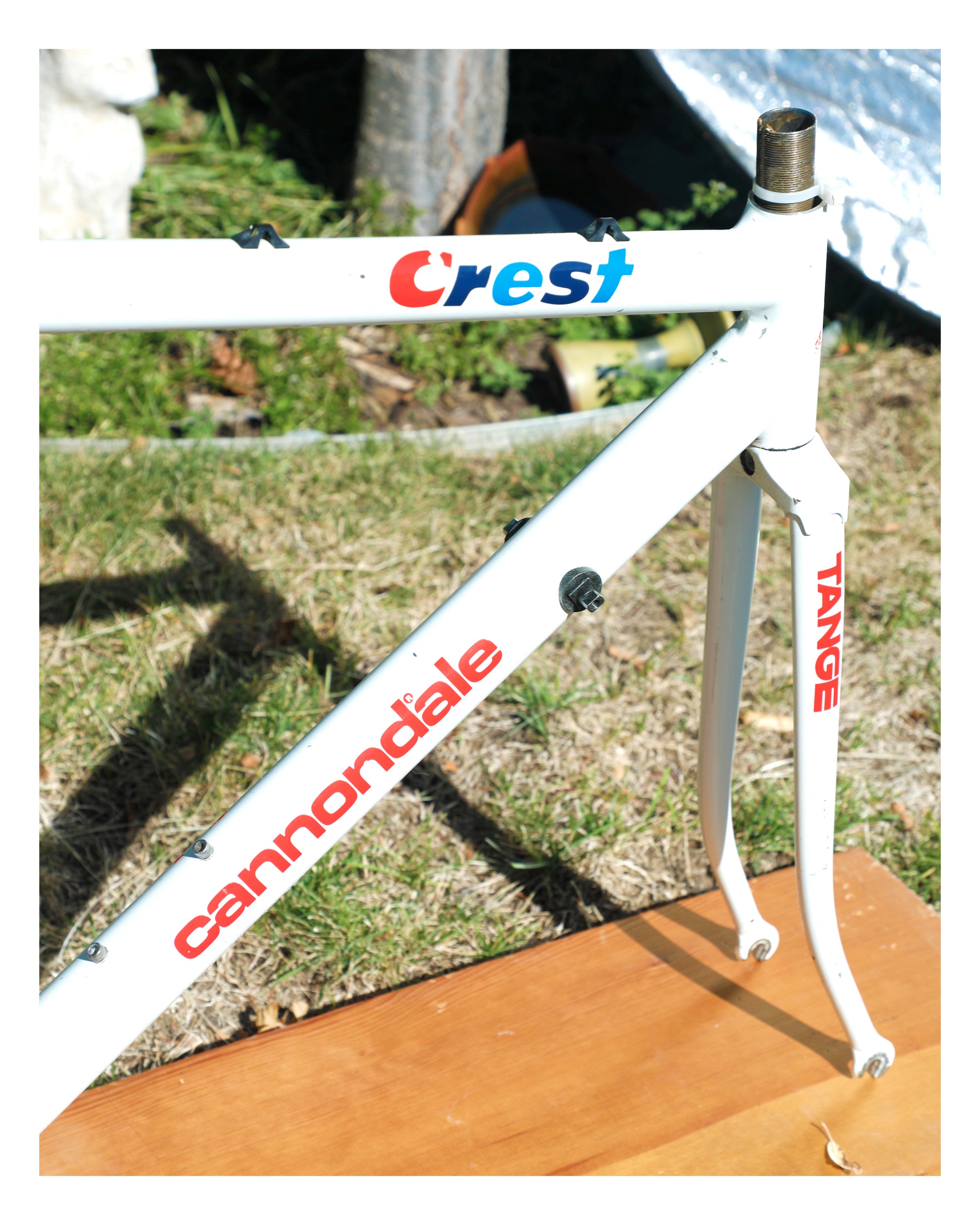 Wow! What a cool piece of history right here! This frame was built in 1988 and is a replica of the Team Crest USA Cycling bike. It's bones are an SR500 - a sturdy, quick frame. It's rumored that only 300 Crest replicas were ever produced.