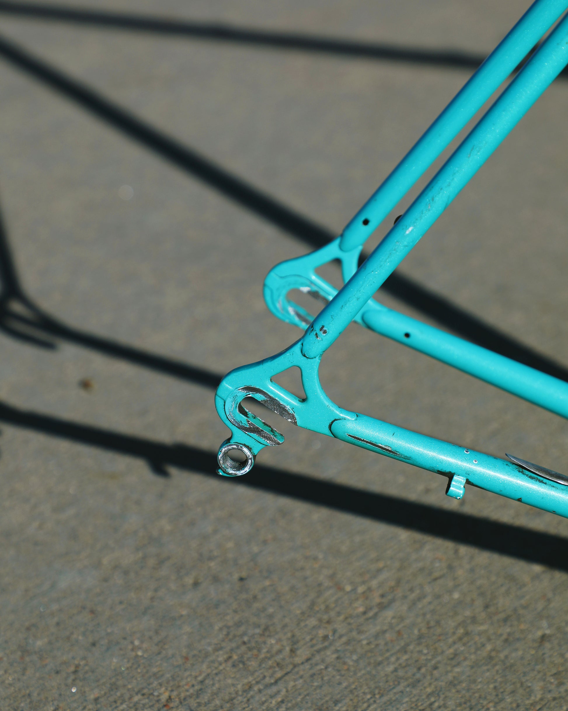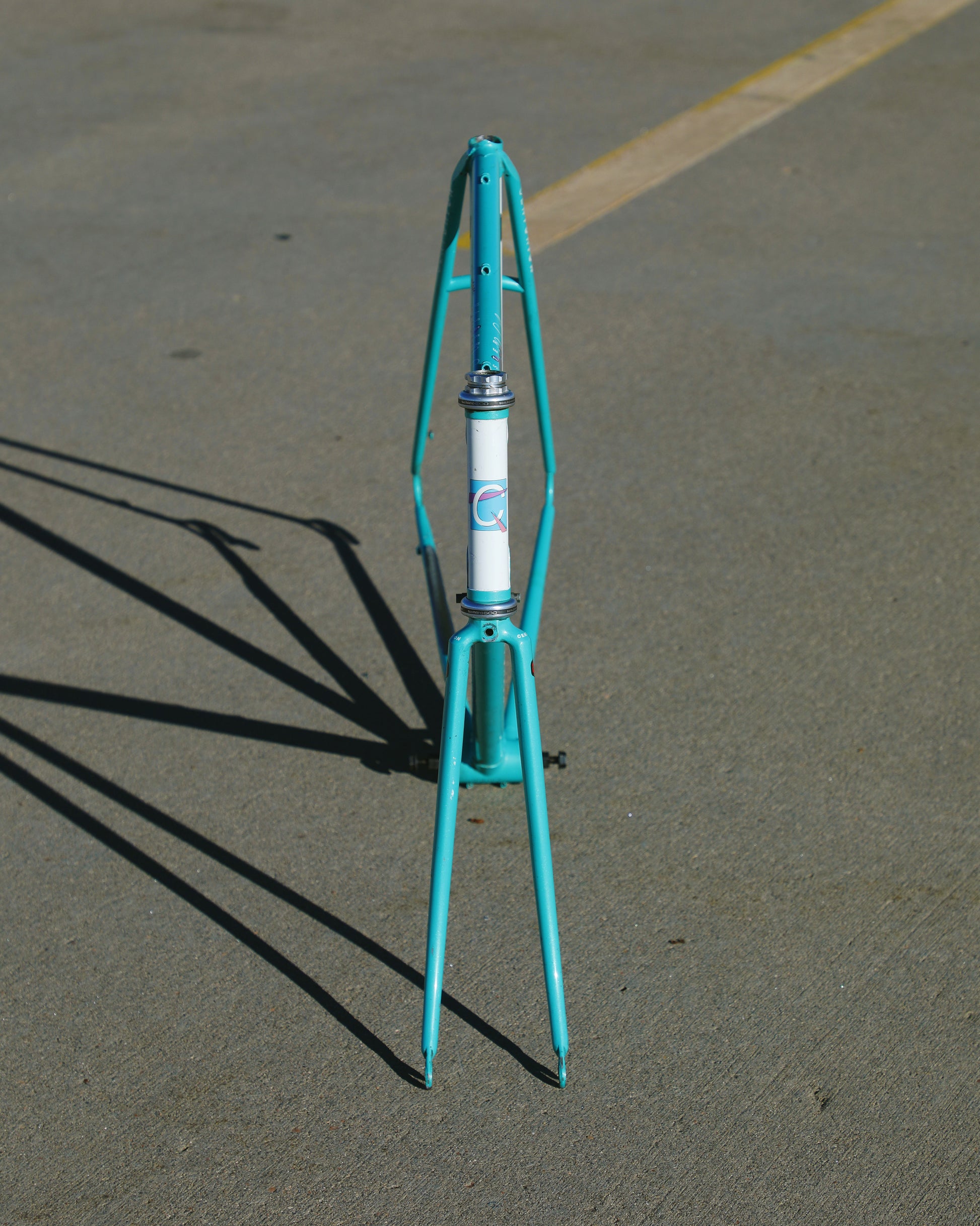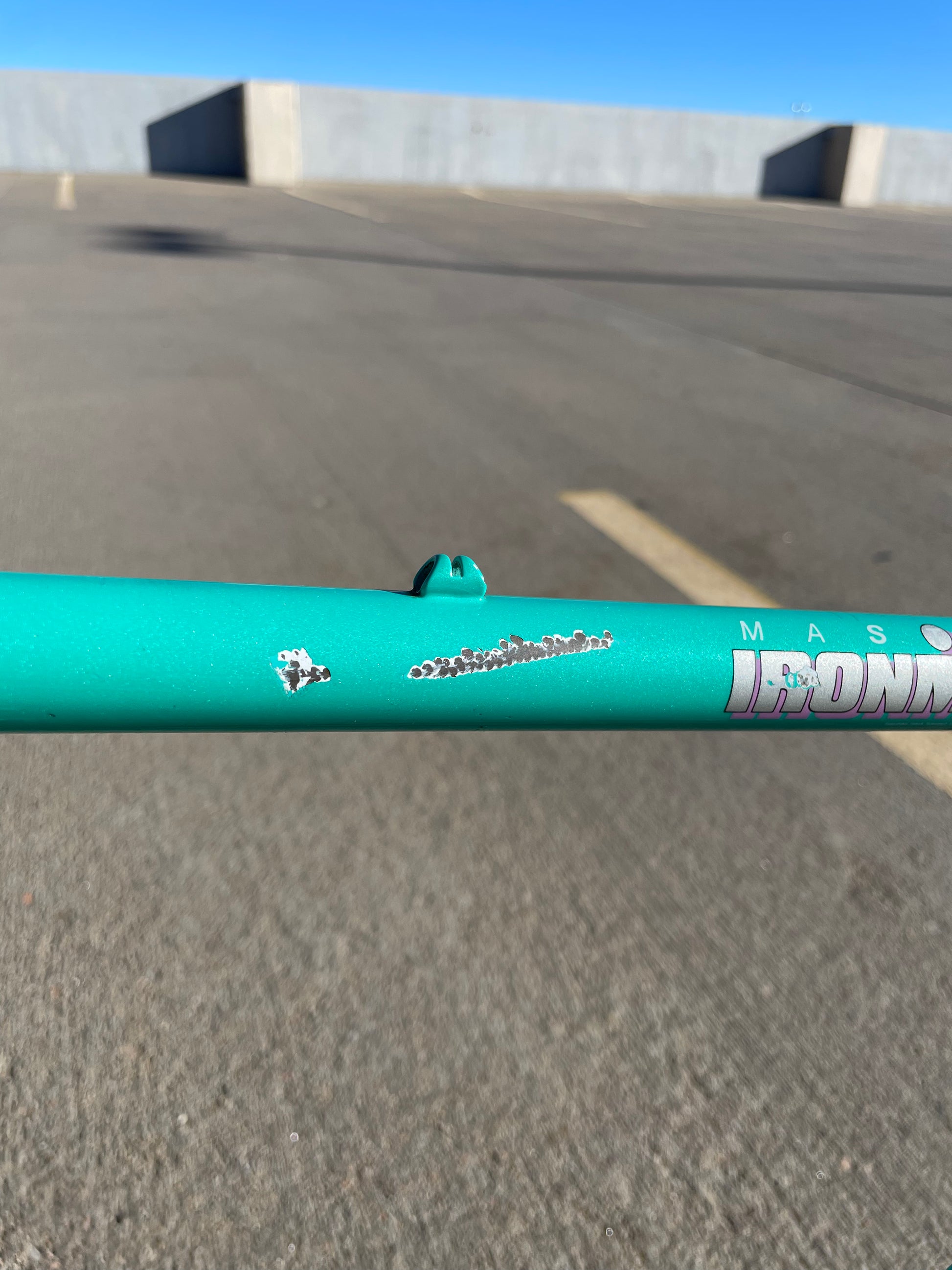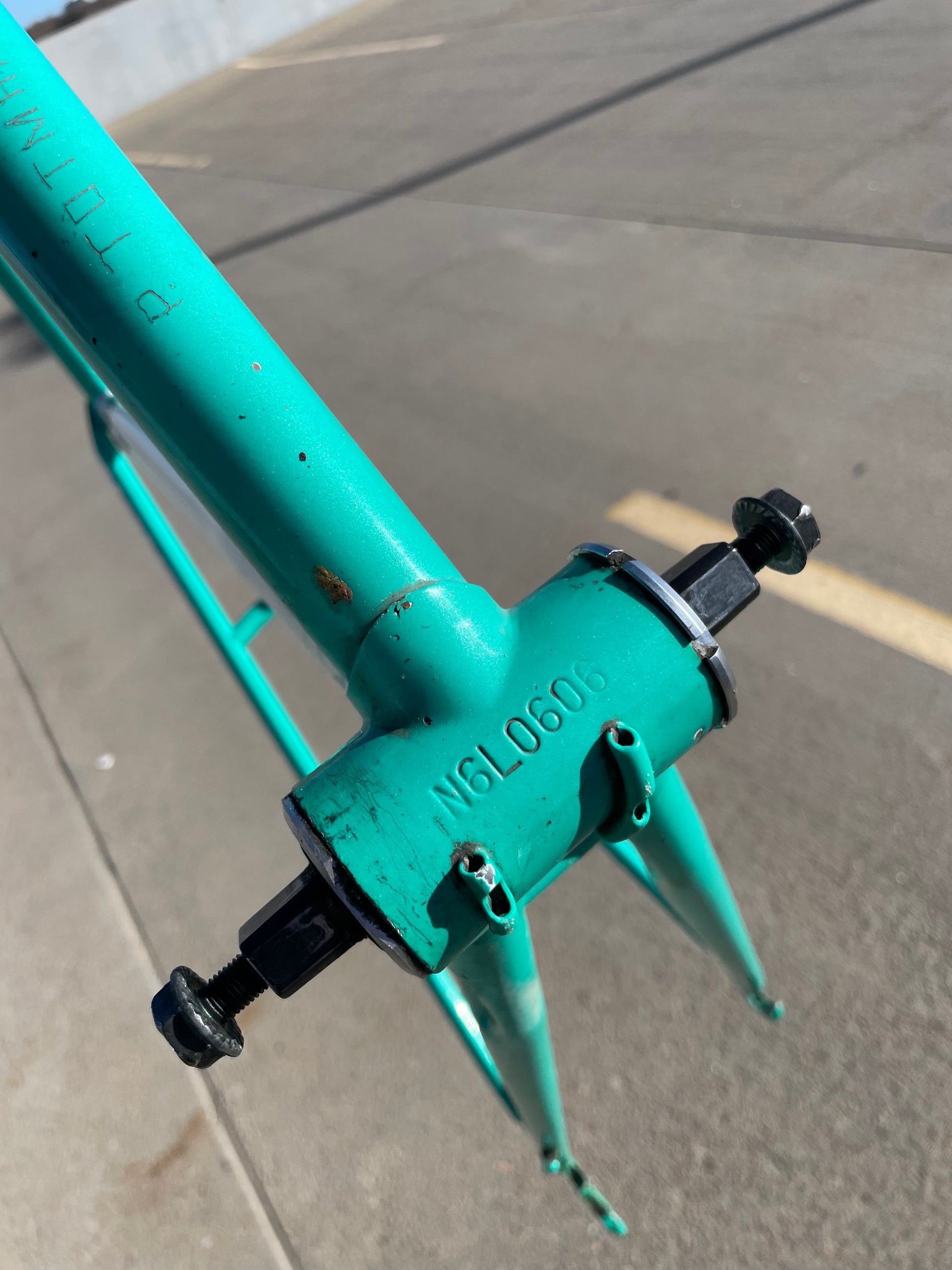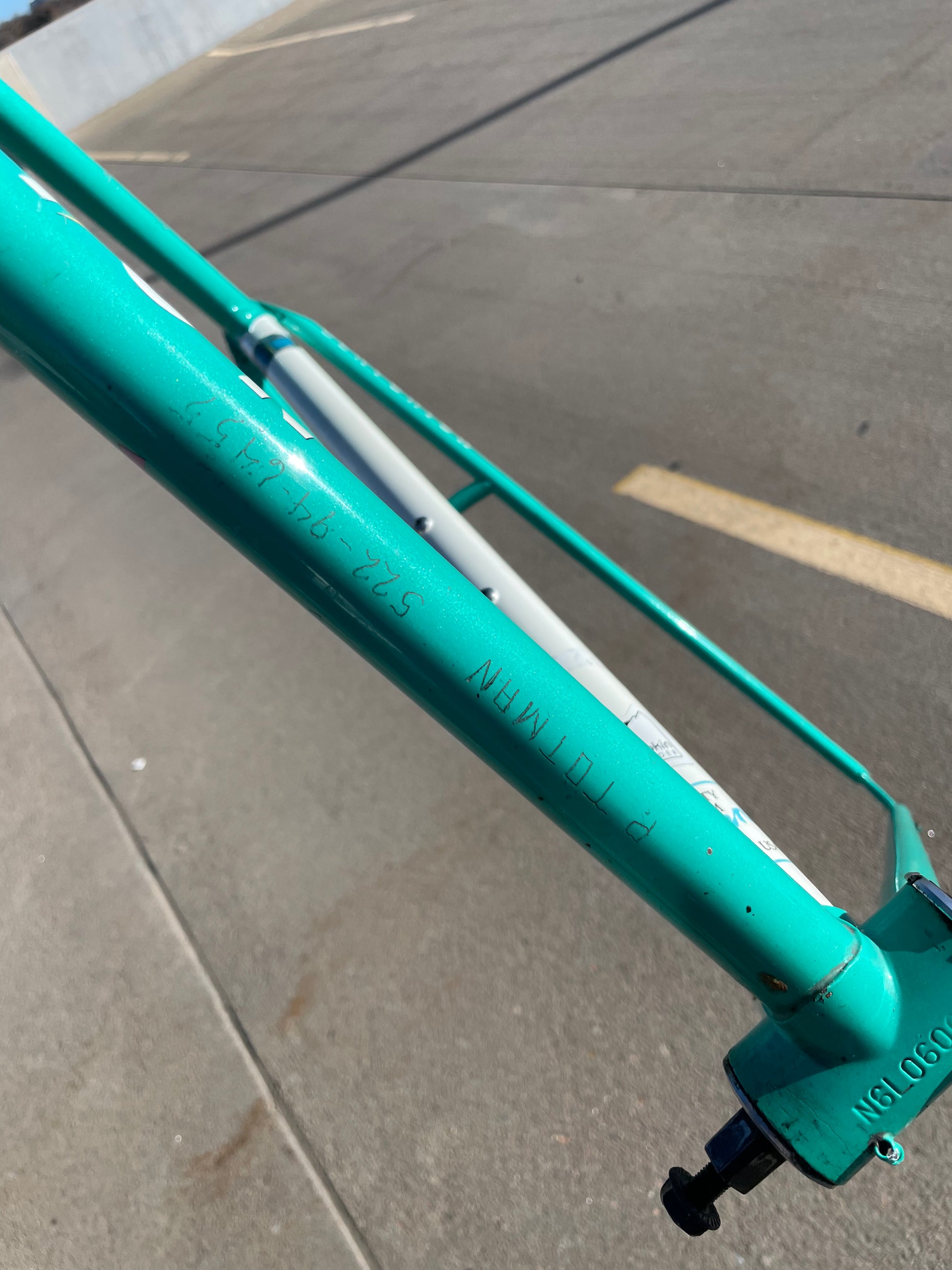 This centurion frame is in good condition but shows sign of use. There is a large scrape on the top tube (drive side). Someone also ingraved there name into the paint on the bottom of he down tube. Some other paint chips here and there but no dents, bends, or cracks. Bottom bracket and headset included (have not been serviced). It's a great looking frame made with renowned Tange 1 tubing.