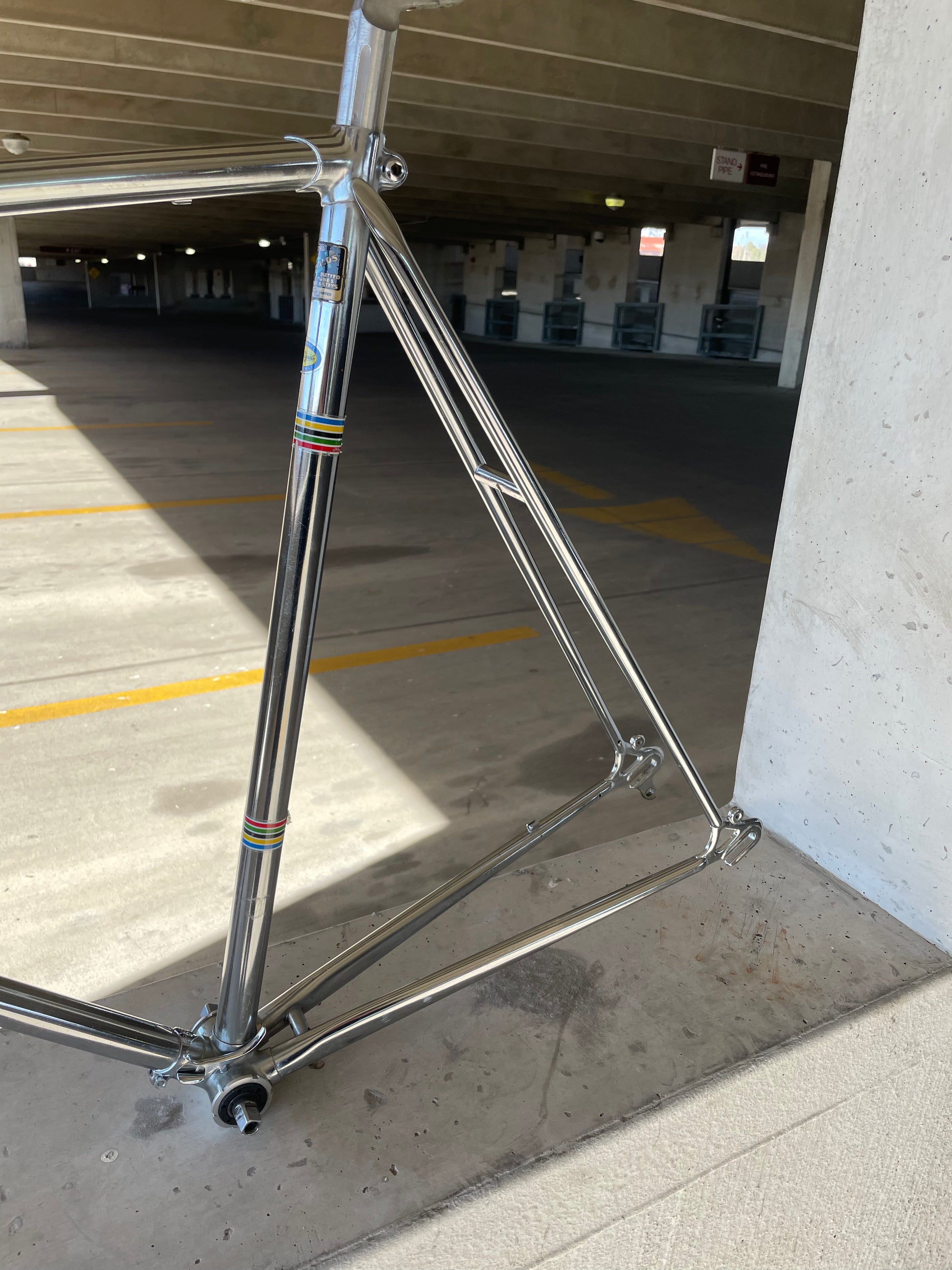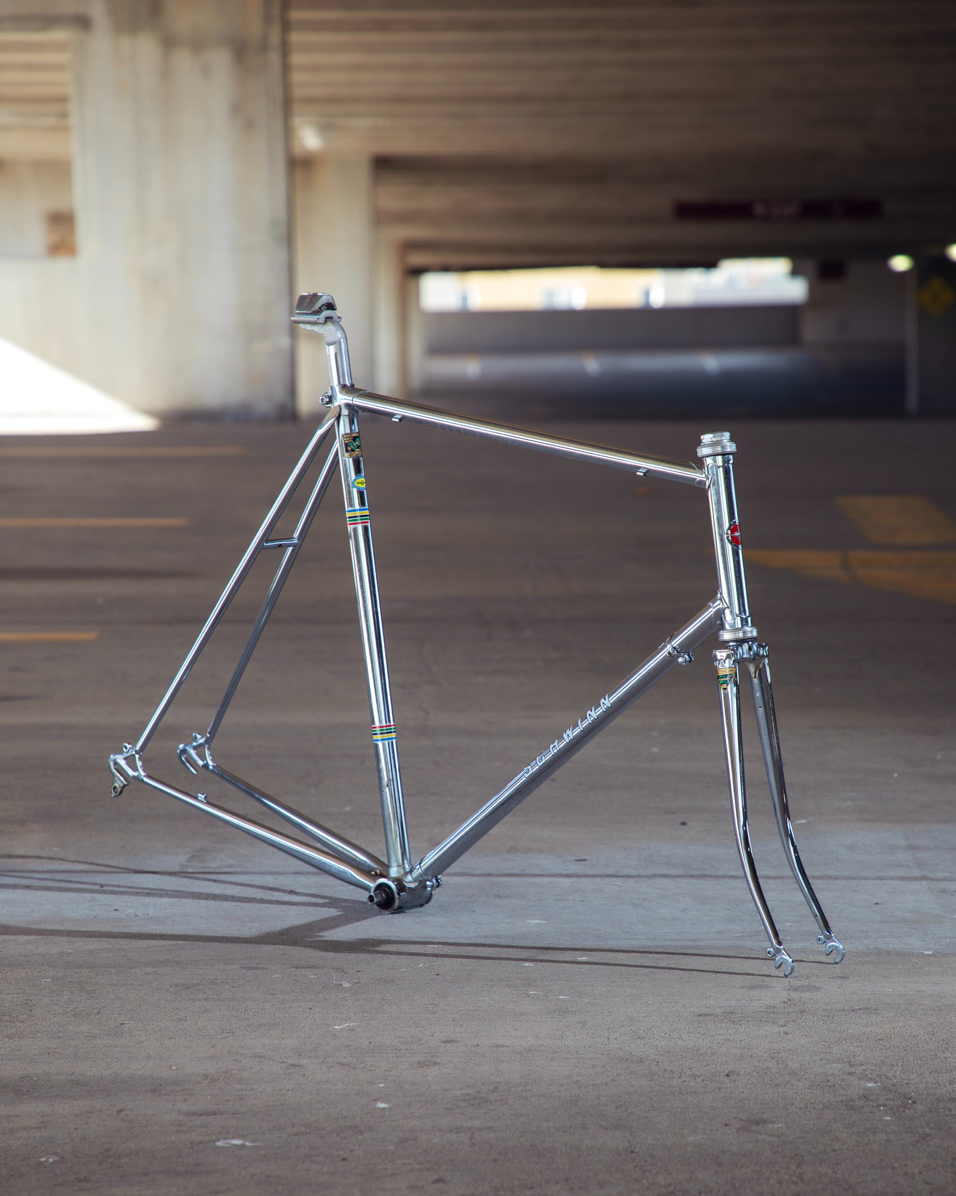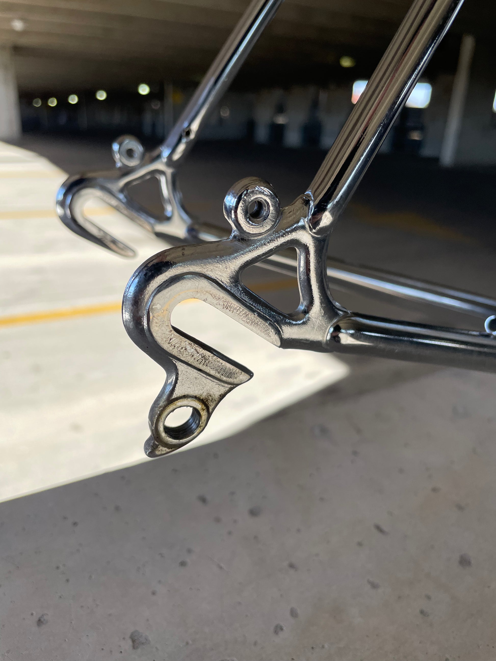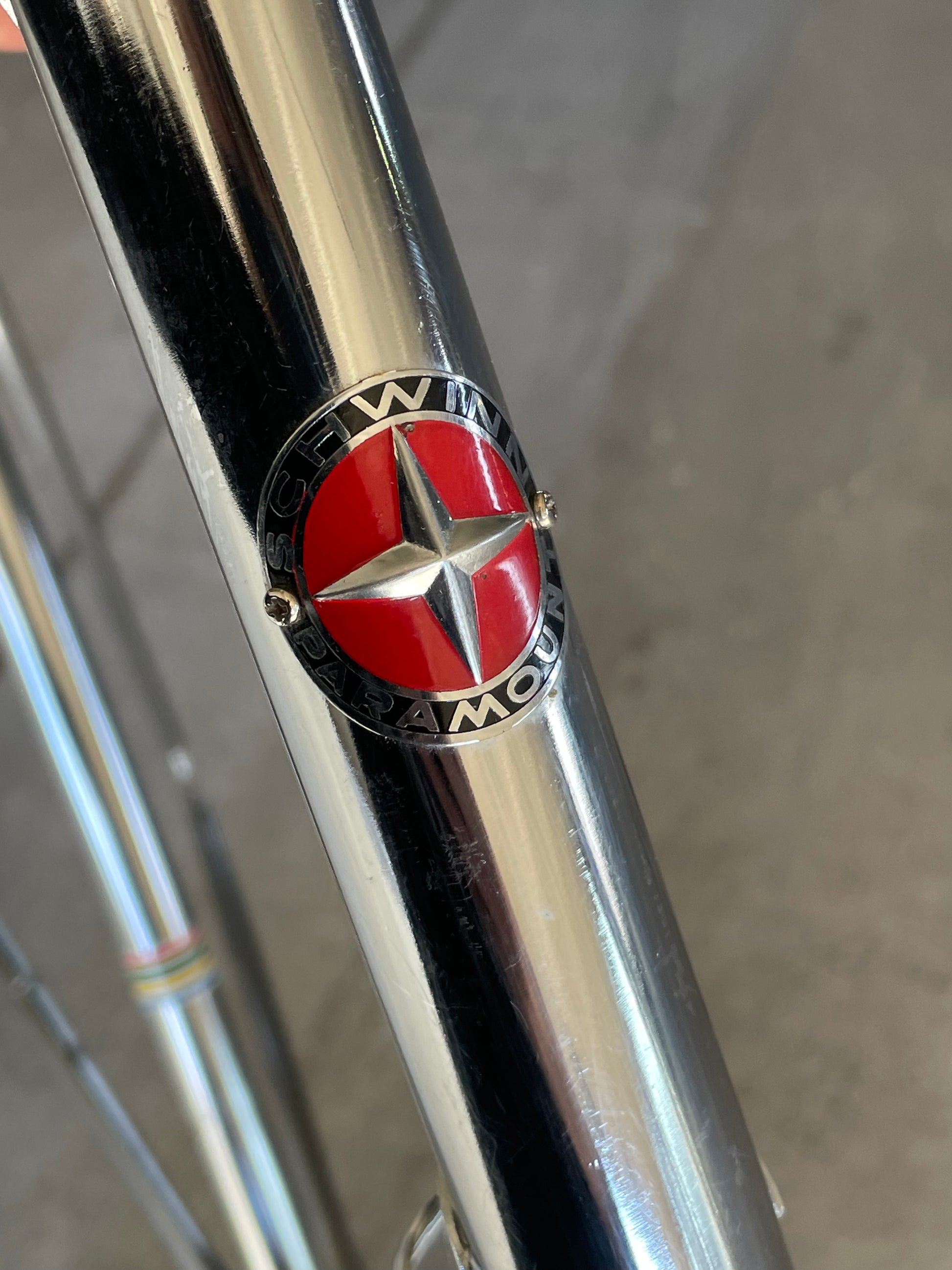 I hold chrome Schwinns very near and dear to me! I think they're so cool! This particular frame is unique. The frame itself is a Super Le Tour (not Reynolds tubing, like the sticker says). I bought this thinking it was a Paramount but it didn't take me long to figure out what I had bought was in fact NOT a Paramount. The non Campagnolo rear dropouts was the giveaway. The fork however, is Reynolds and is from a Paramount. You can tell due to the style of crown, the overall chrome has a much better finish compared to the rest of the frame, and it has Campagnolo drops. It also has a Paramount head badge that I'm sure the previous owner put on. My loss your gain!