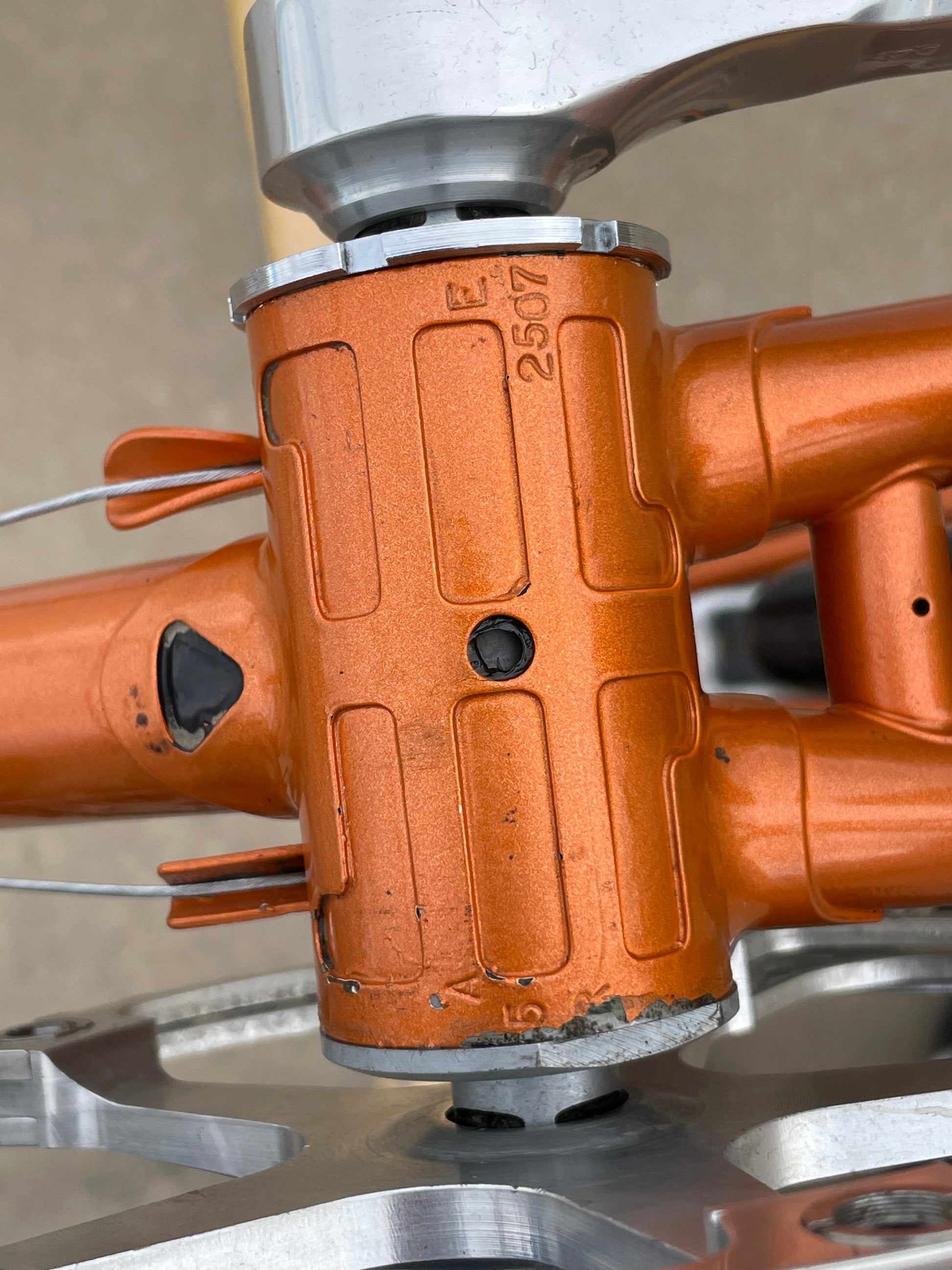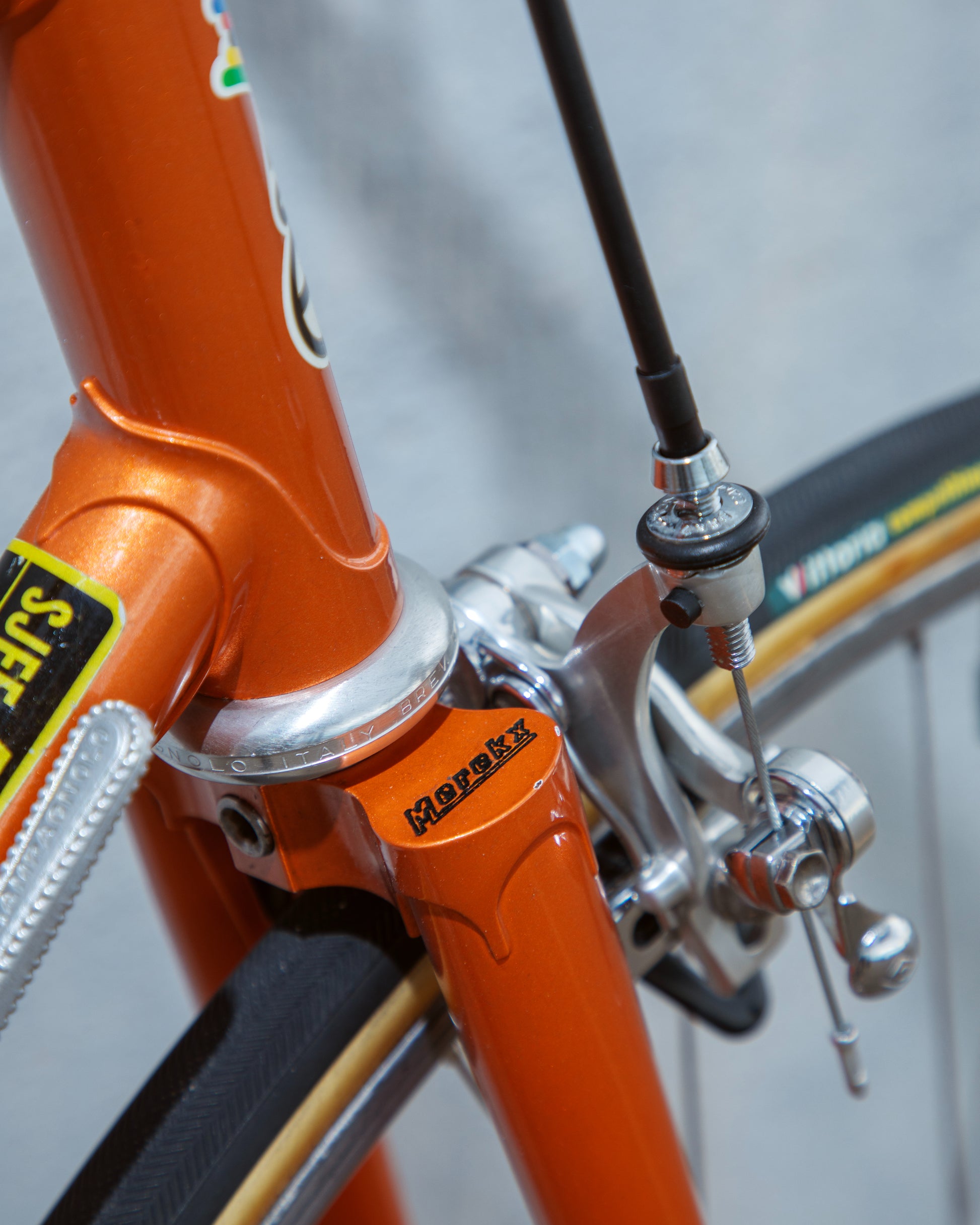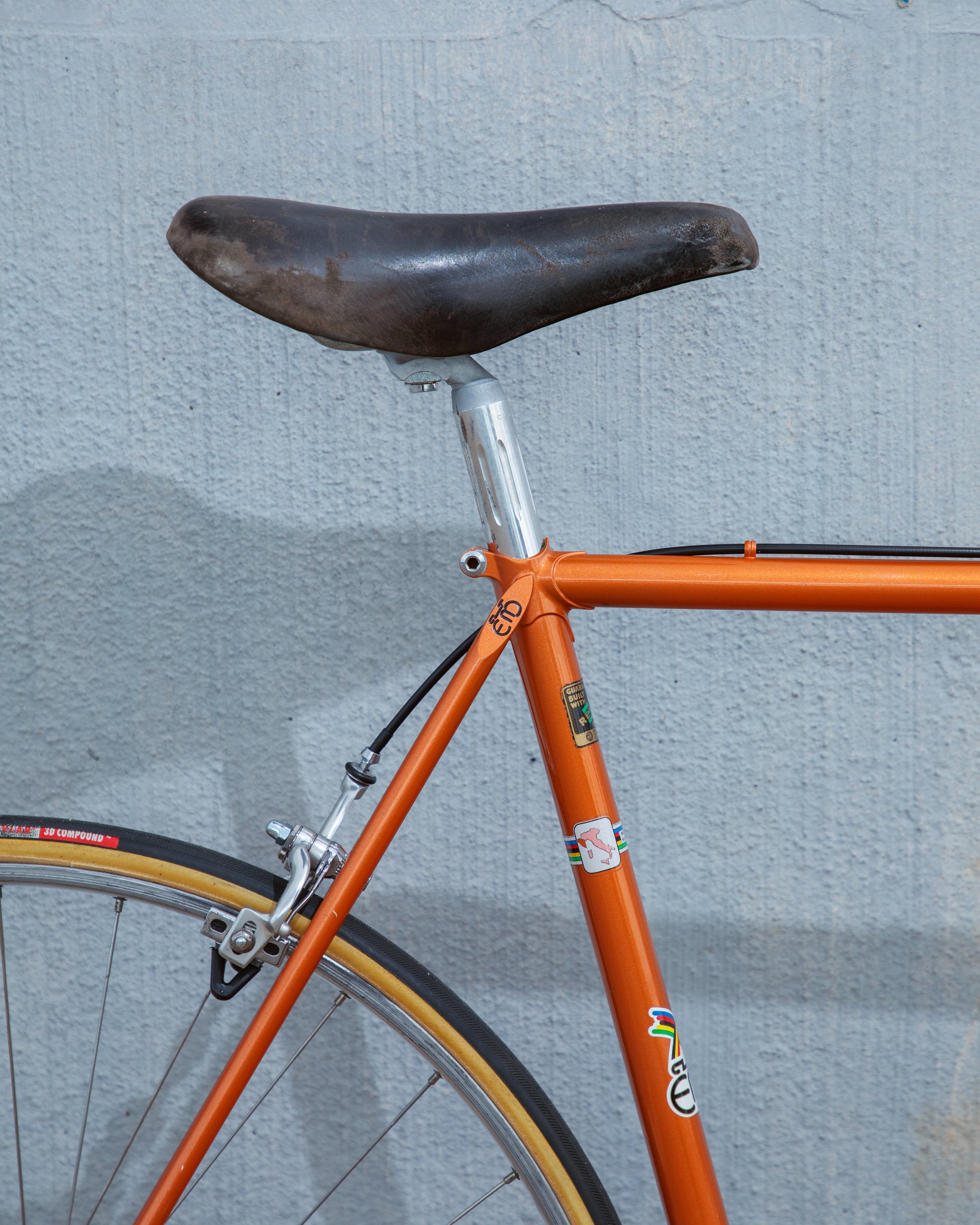 This Merckx is an absolute gem. It's the pinnacle of early 80's cycling. The frame is made from Reynolds 531 and is fitted with a complete Campagnolo Super Record Groupset. Most of the parts have also been pantographed, which adds a lot of flare! The serial number (A5R E2507) indicates the bike is a 55cm and made with Reynolds tubing. It also indicates the bike was made between 1981 and 1984. The groupset is dated 1980.