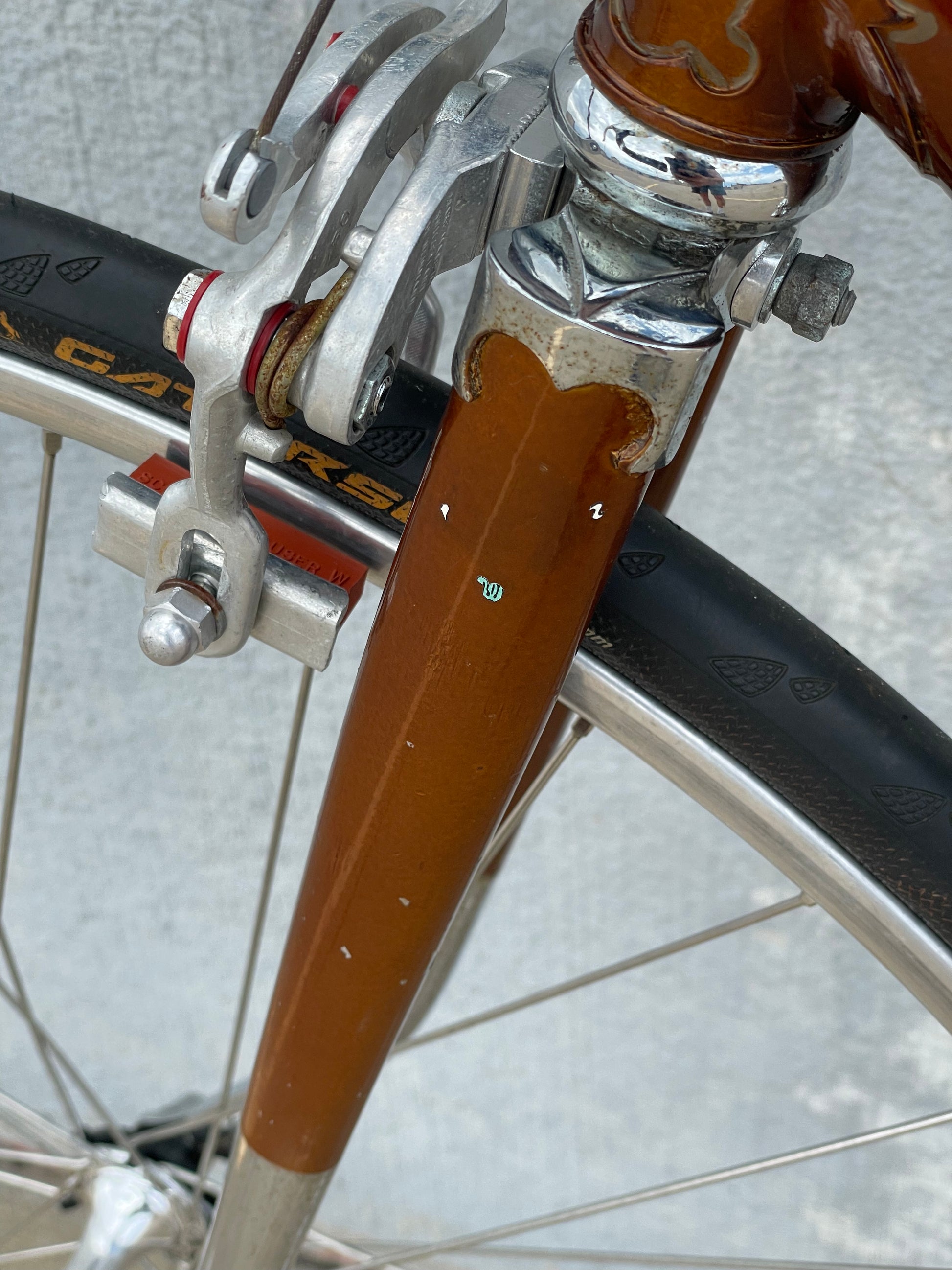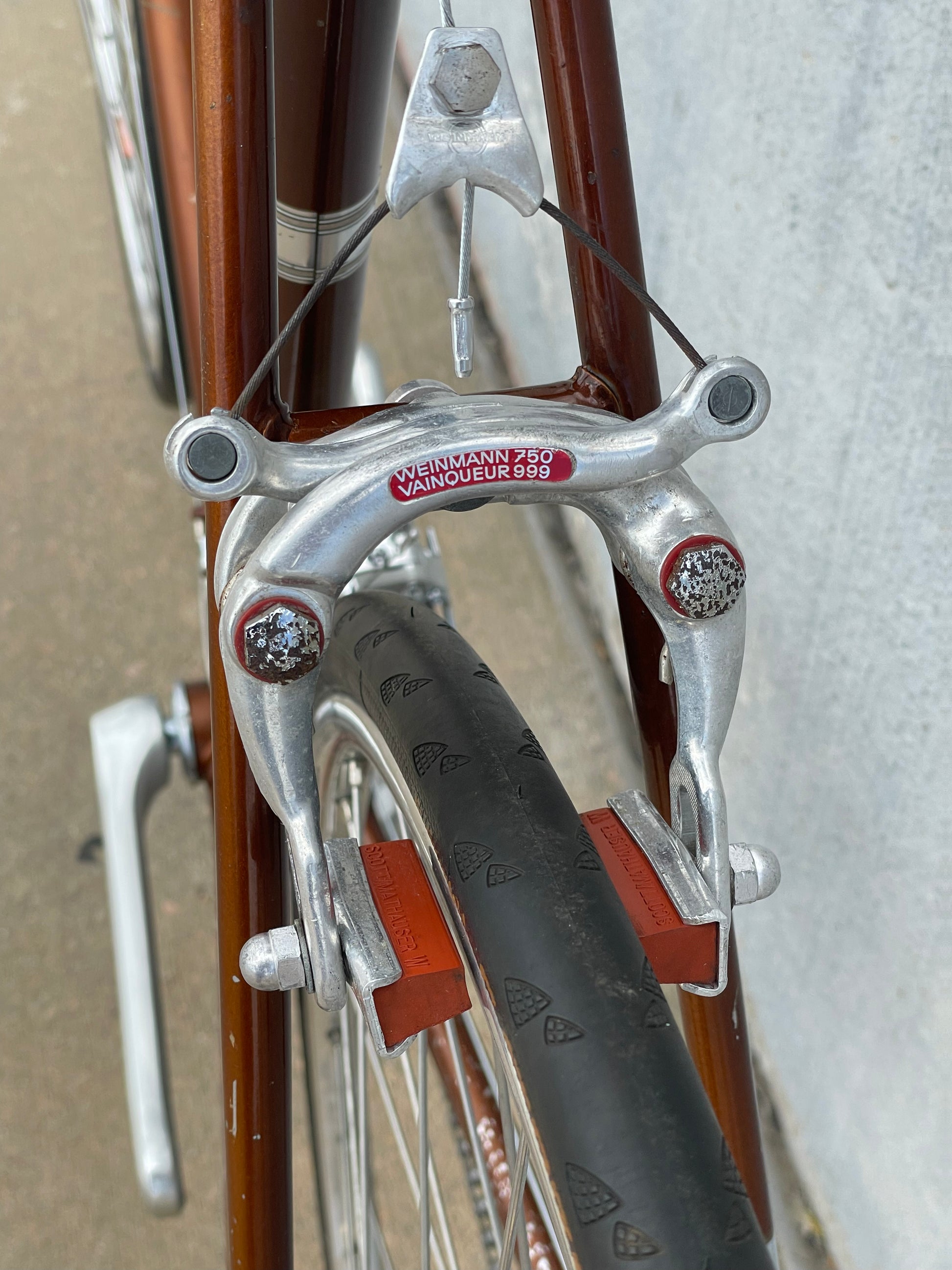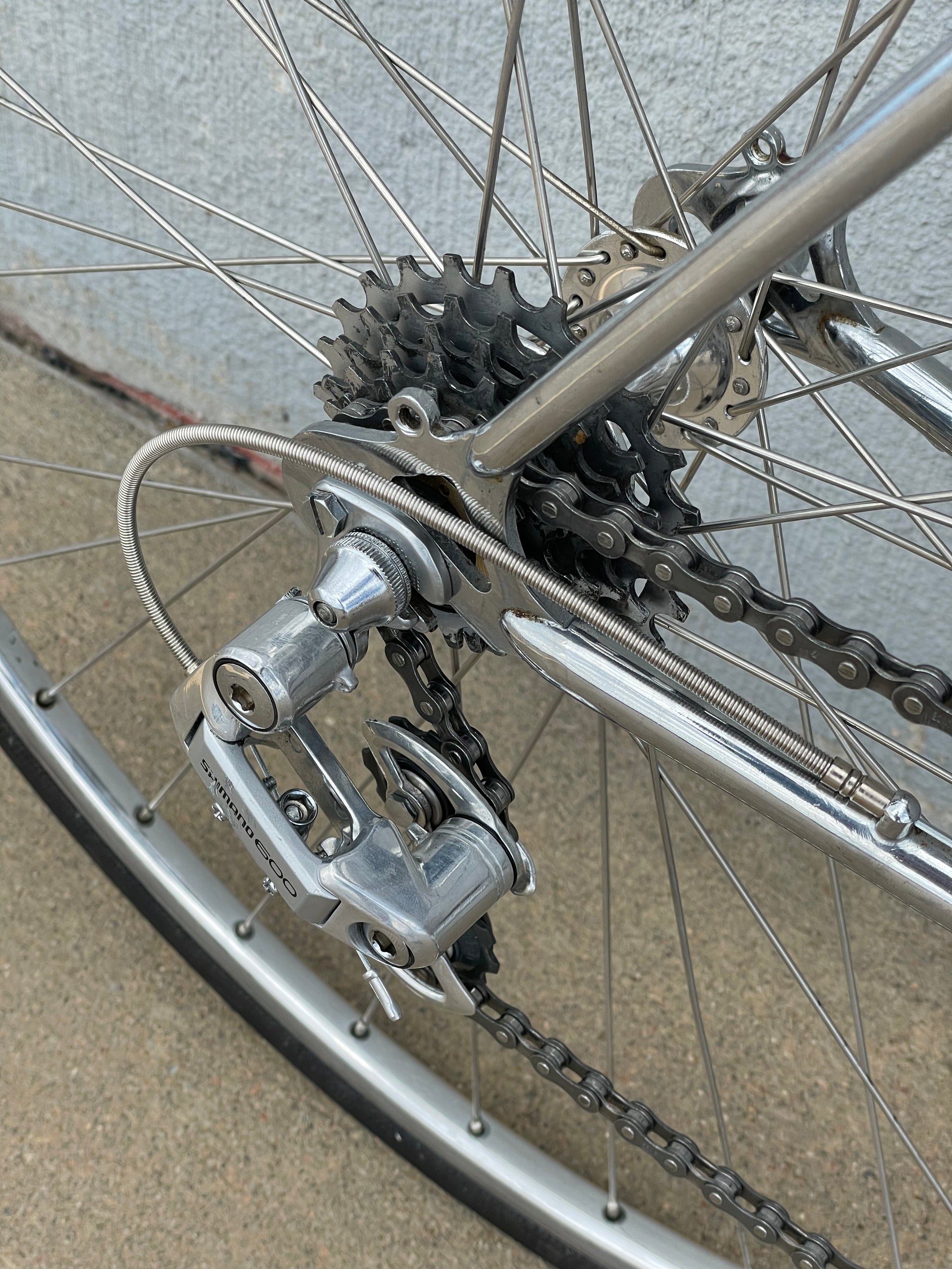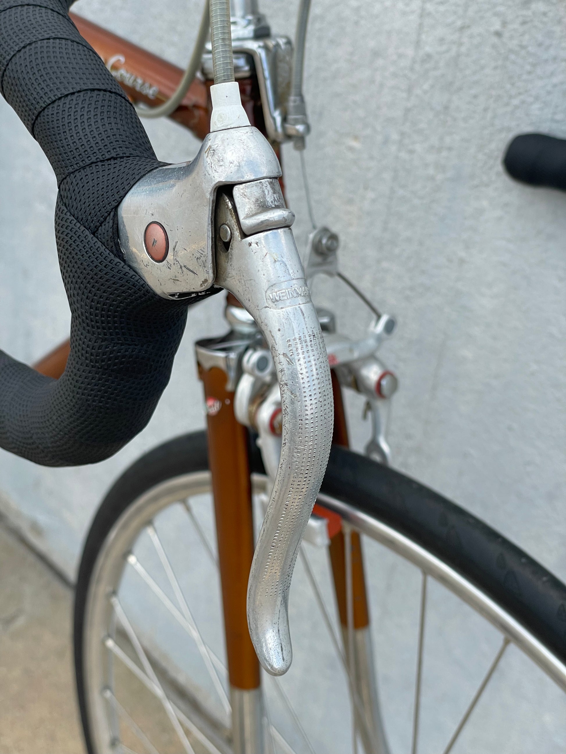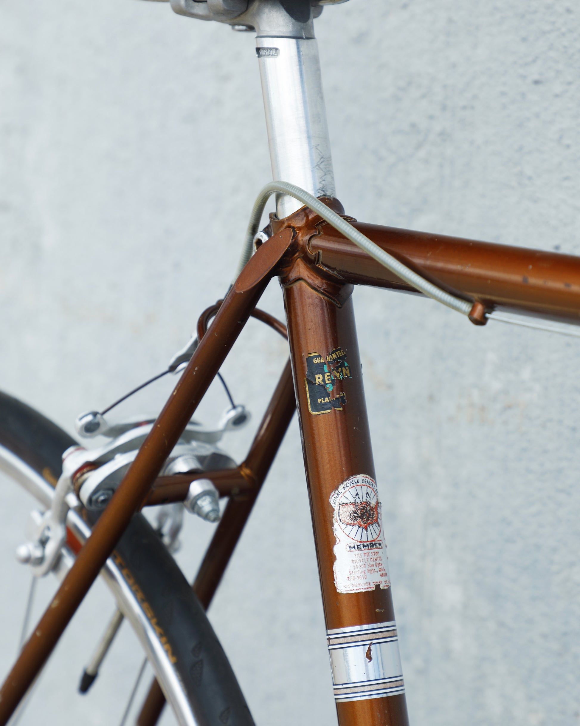 The Raleigh Super Course was one of the first mass produced "high end" bike. The main triangle is made with straight gauge Reynolds 531 tubing, which was mostly used on more high end bikes at the time. This early 1970's model is finished in a beautiful bronze. It also features some newer upgrades with the Shimano 600 front and rear derailleurs, crankset, and bottom bracket. This bike is in pretty good condition but it shows sign of use. There are some paint chips and scrapes here and there but no dents, bends, or cracks. It's a great rider!