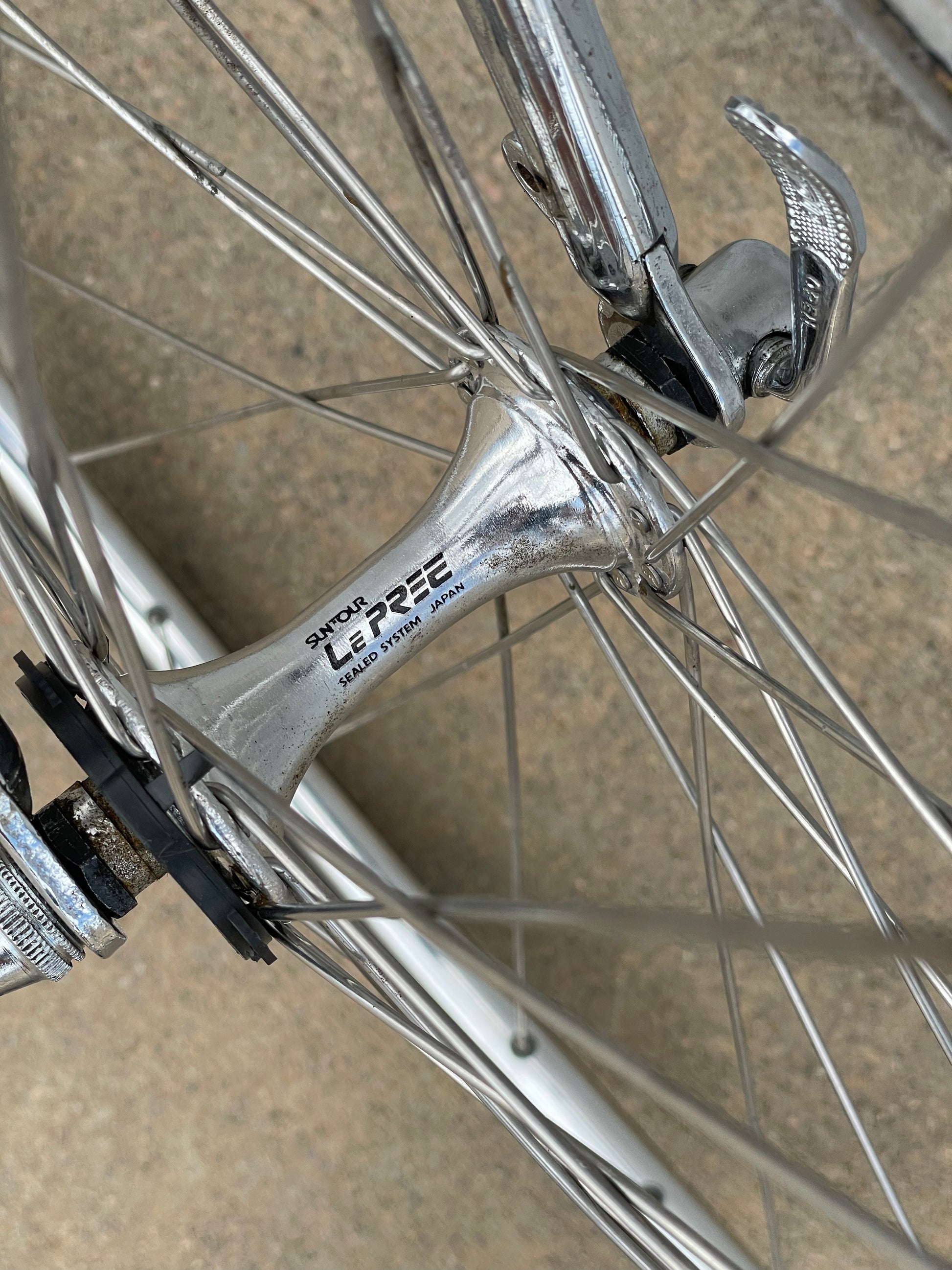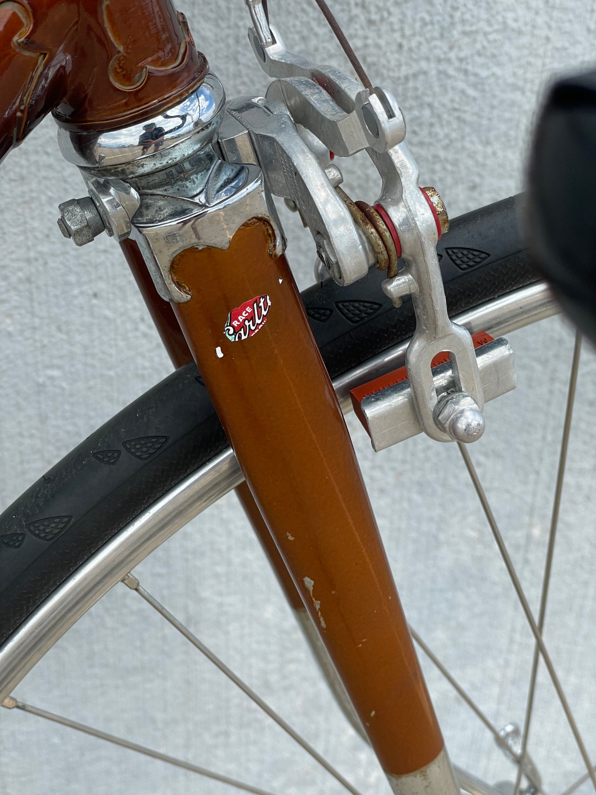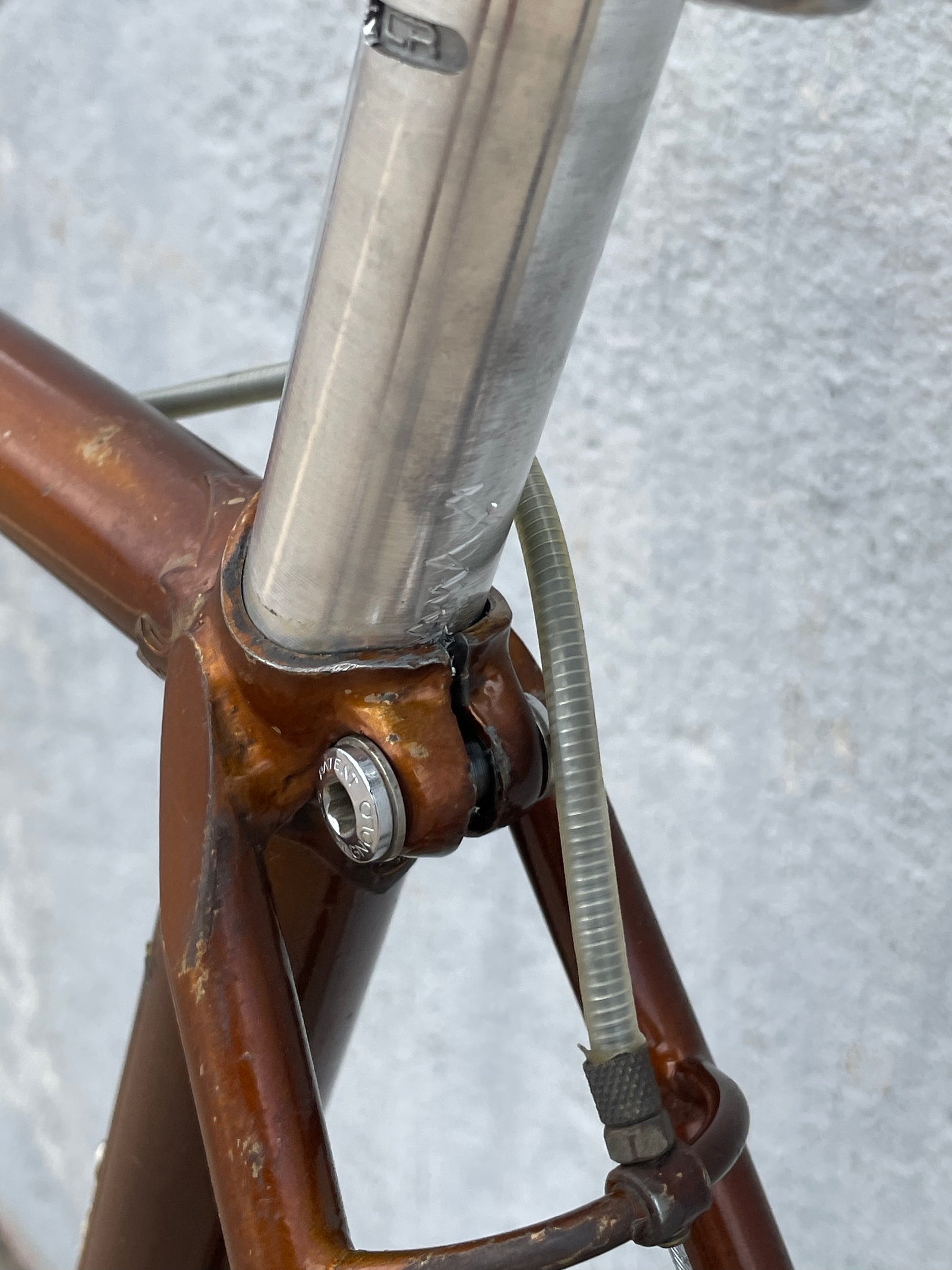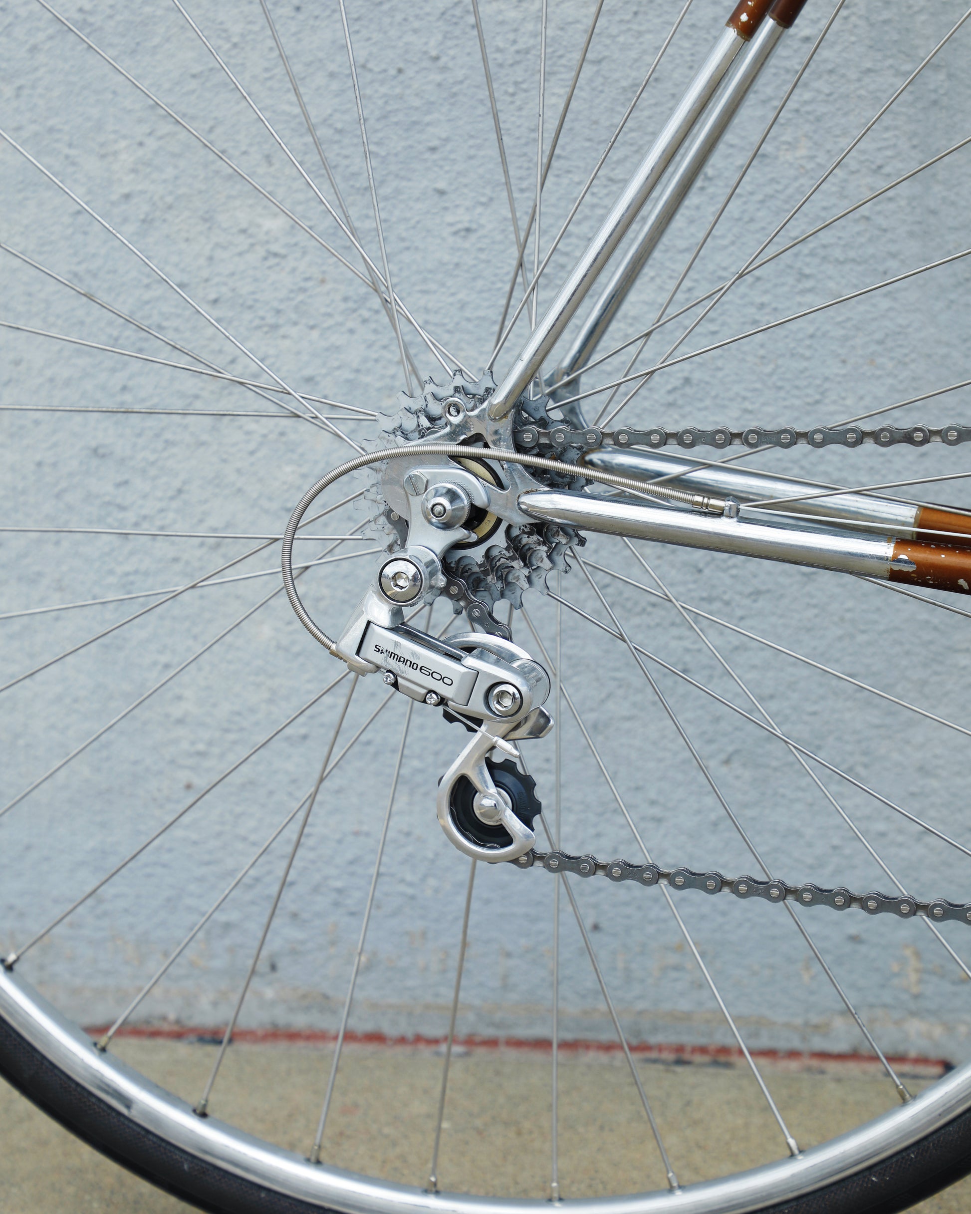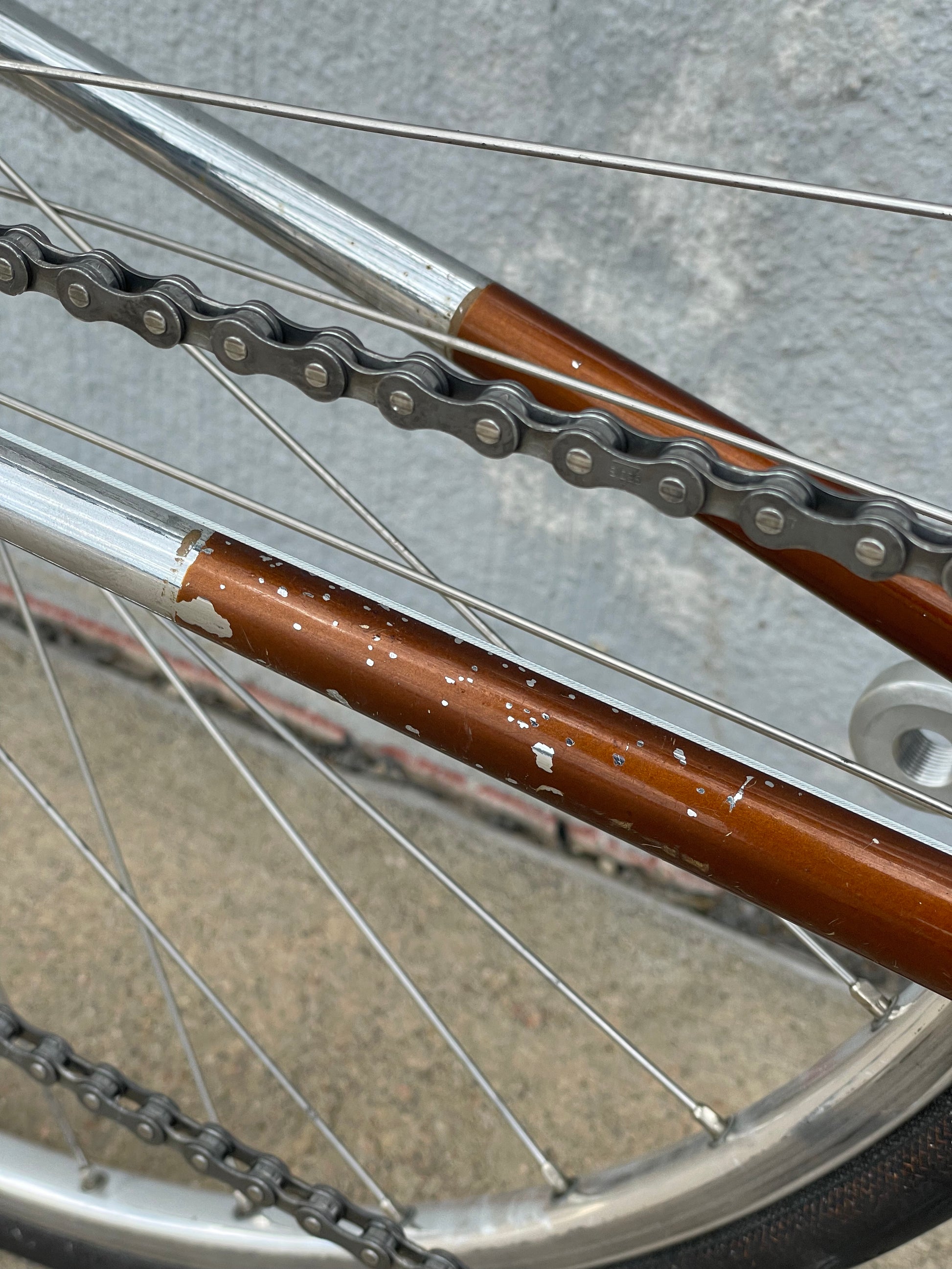 The Raleigh Super Course was one of the first mass produced "high end" bike. The main triangle is made with straight gauge Reynolds 531 tubing, which was mostly used on more high end bikes at the time. This early 1970's model is finished in a beautiful bronze. It also features some newer upgrades with the Shimano 600 front and rear derailleurs, crankset, and bottom bracket. This bike is in pretty good condition but it shows sign of use. There are some paint chips and scrapes here and there but no dents, bends, or cracks. It's a great rider!