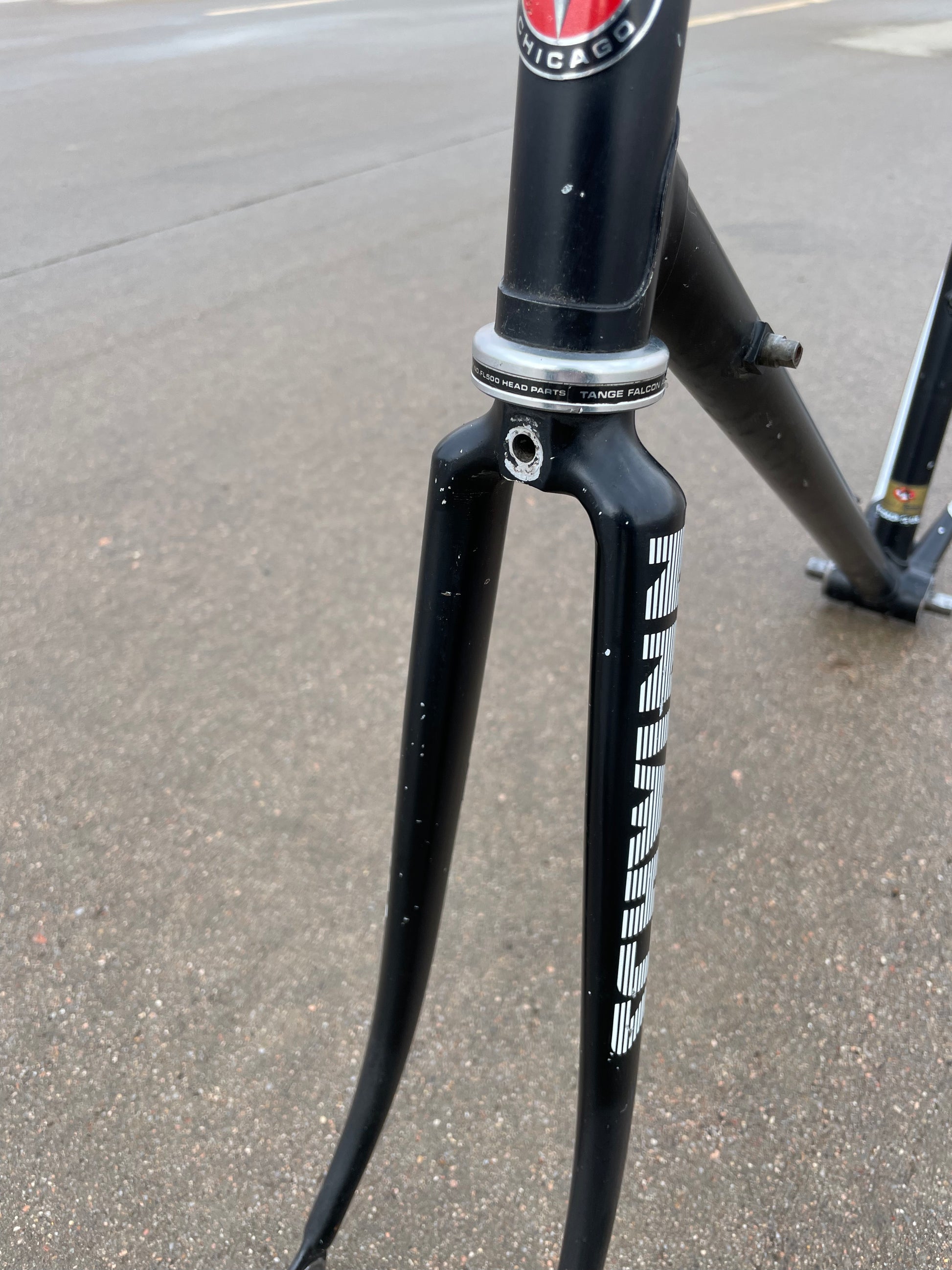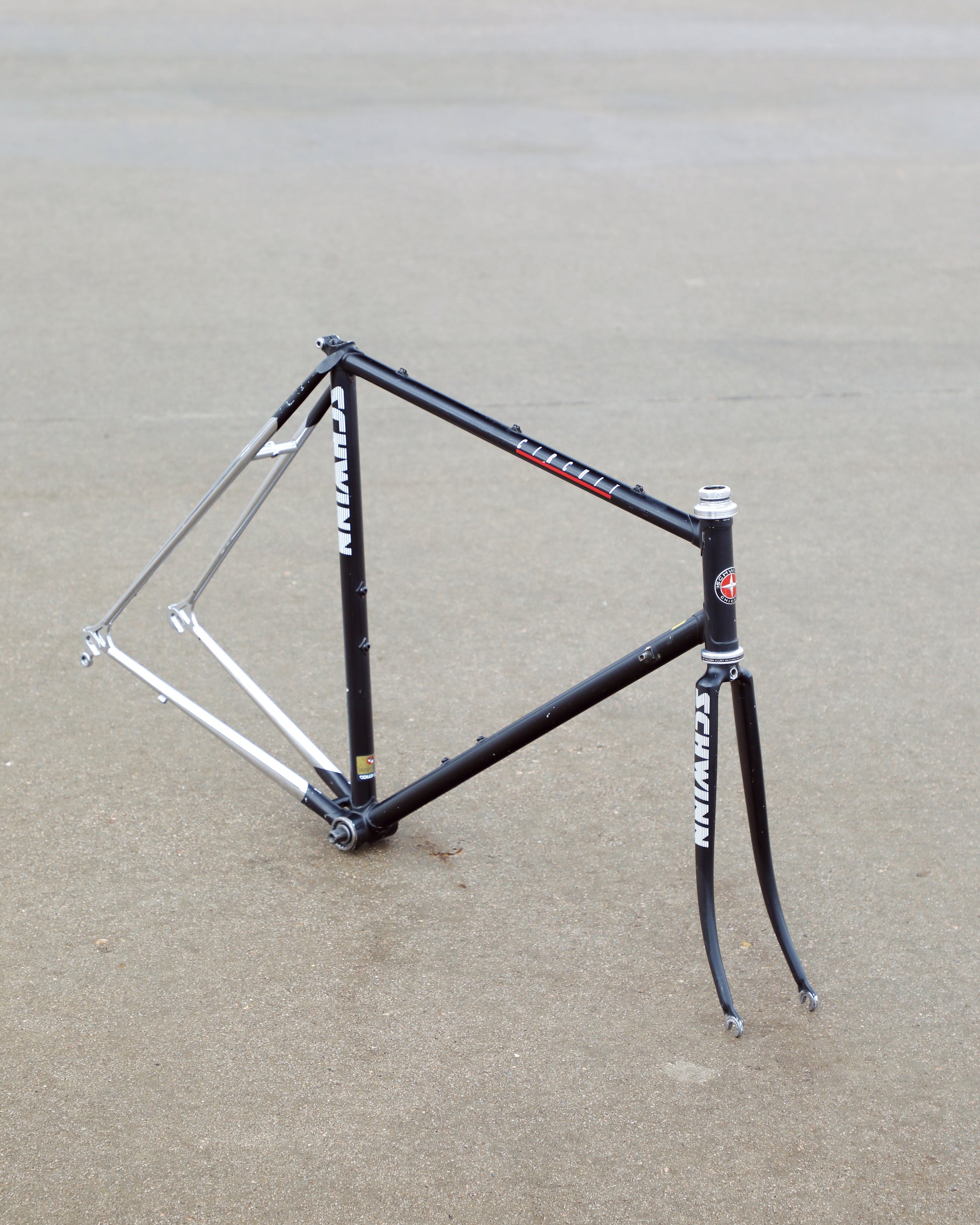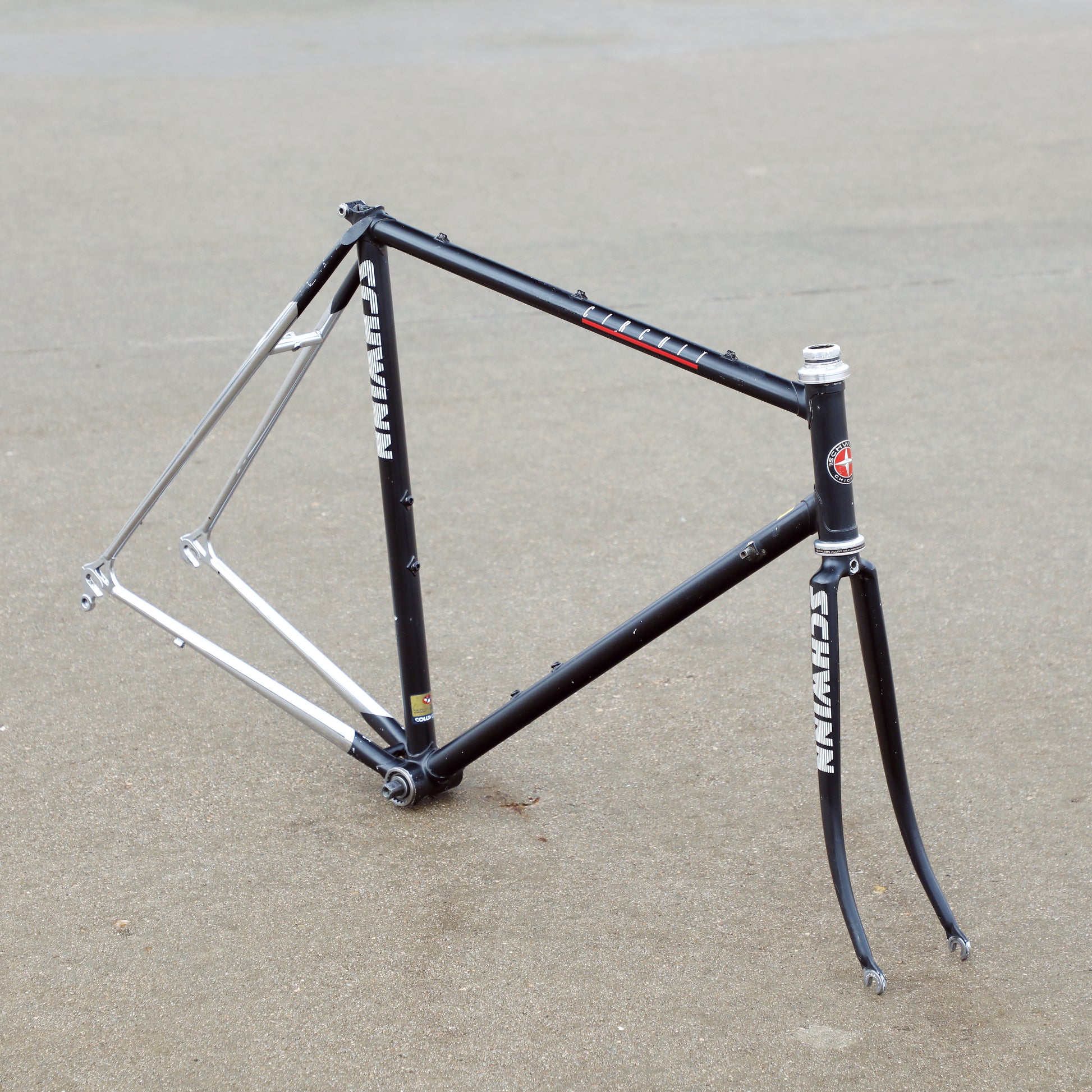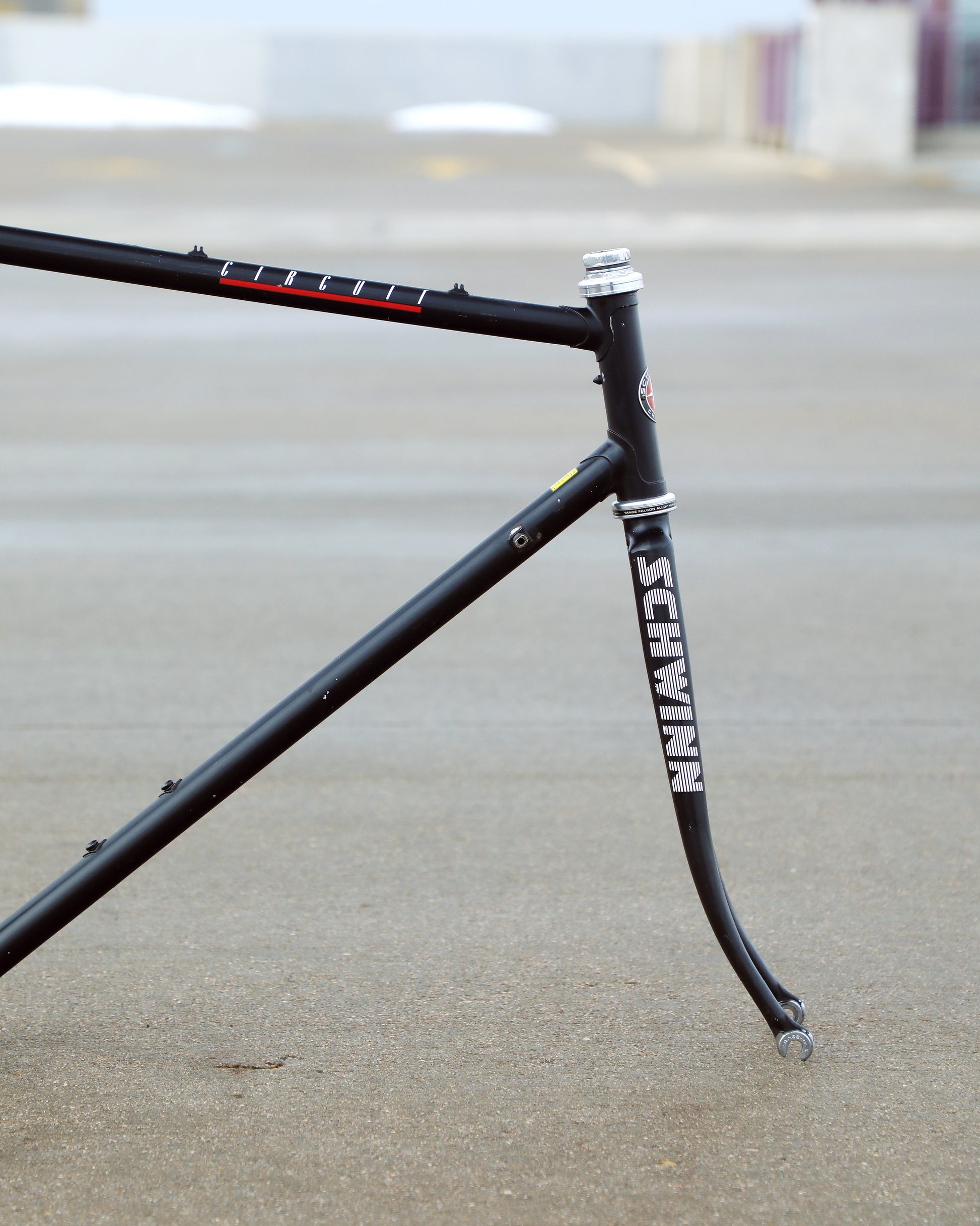 This Schwinn Circuit frame is a hot rod! The patina looks great and would be top notch with a more modern groupset. No dents, cracks, or bends in the frame but there are some paint chips and scratches. Bottom bracket and headset included (have not been serviced).