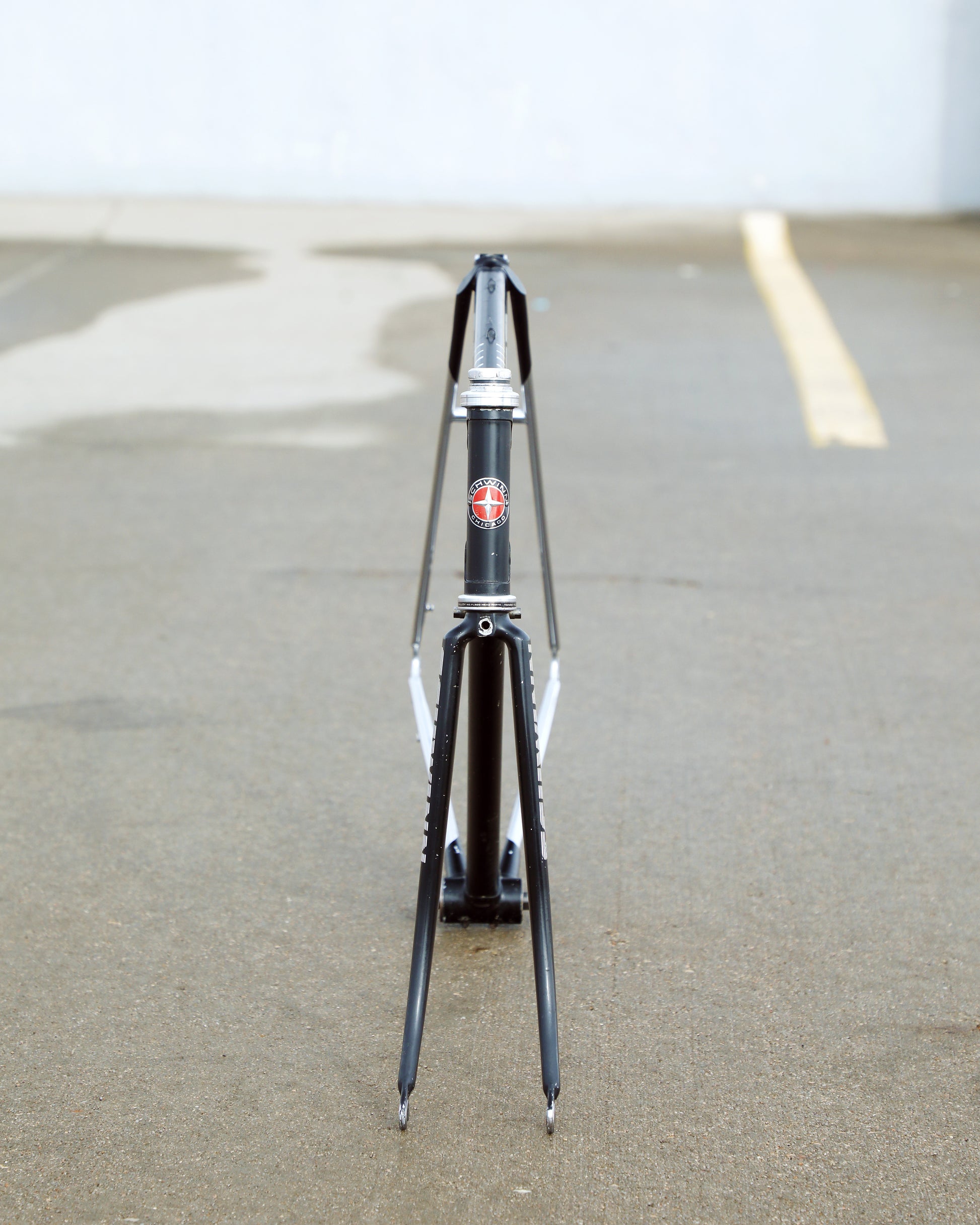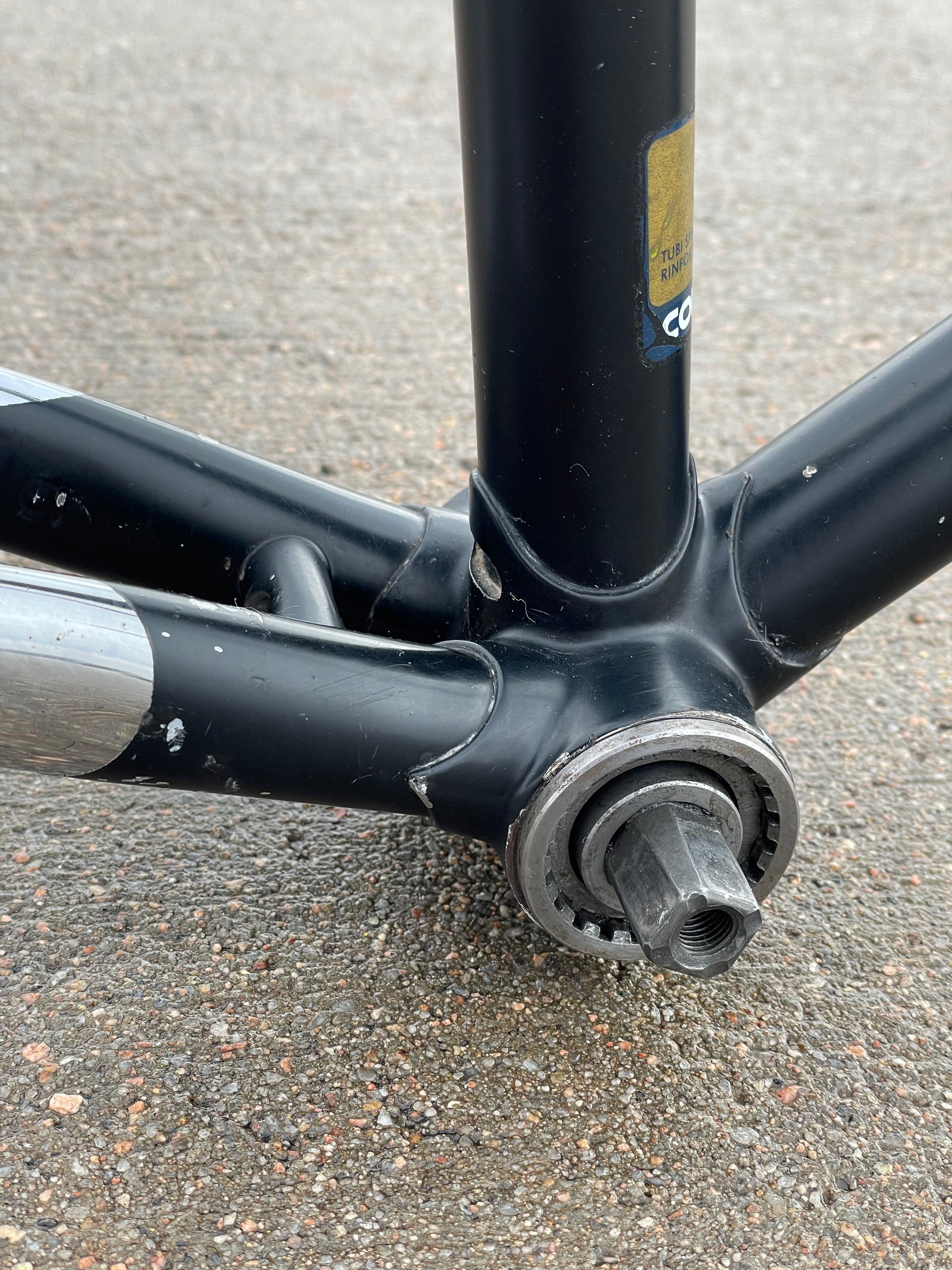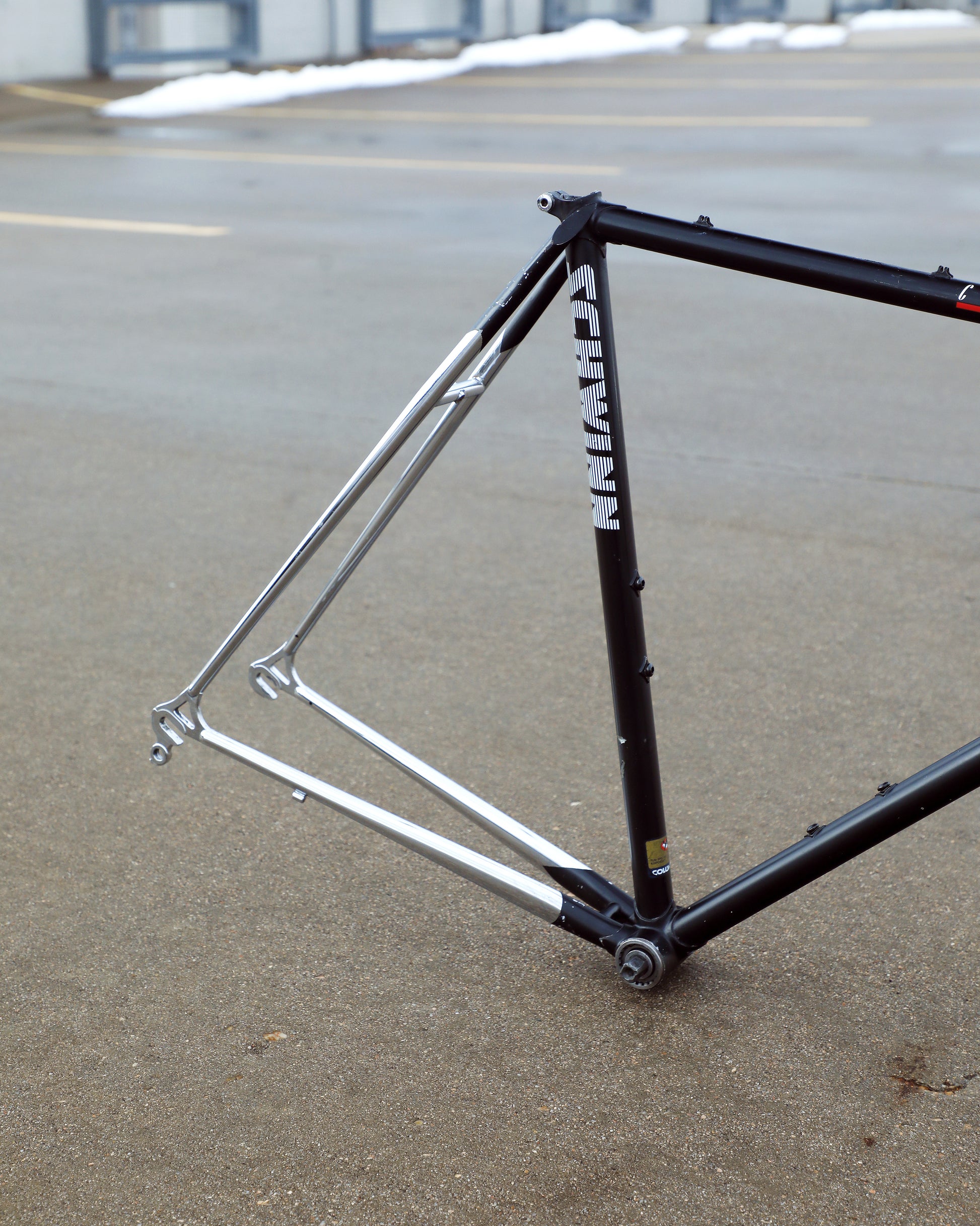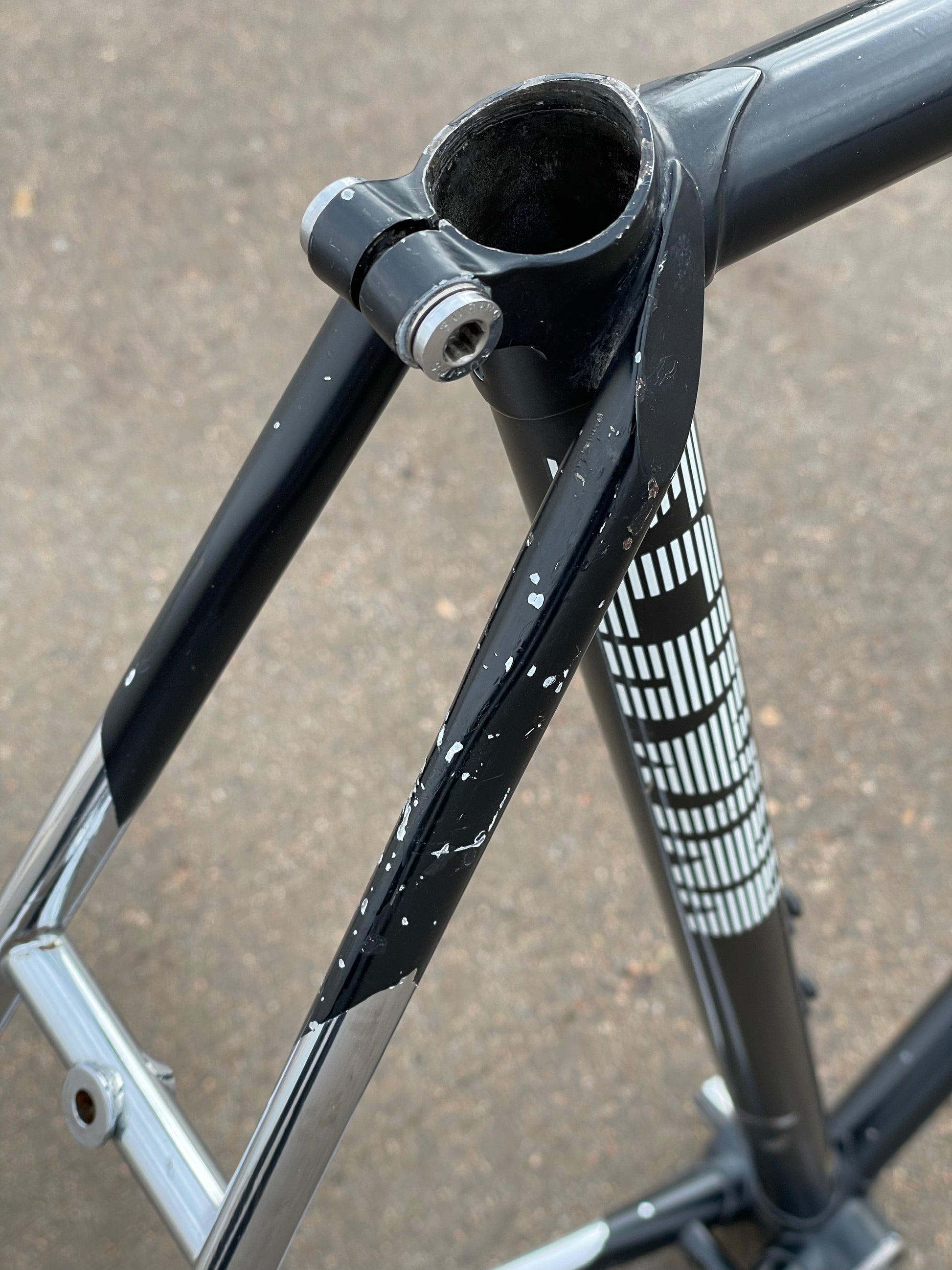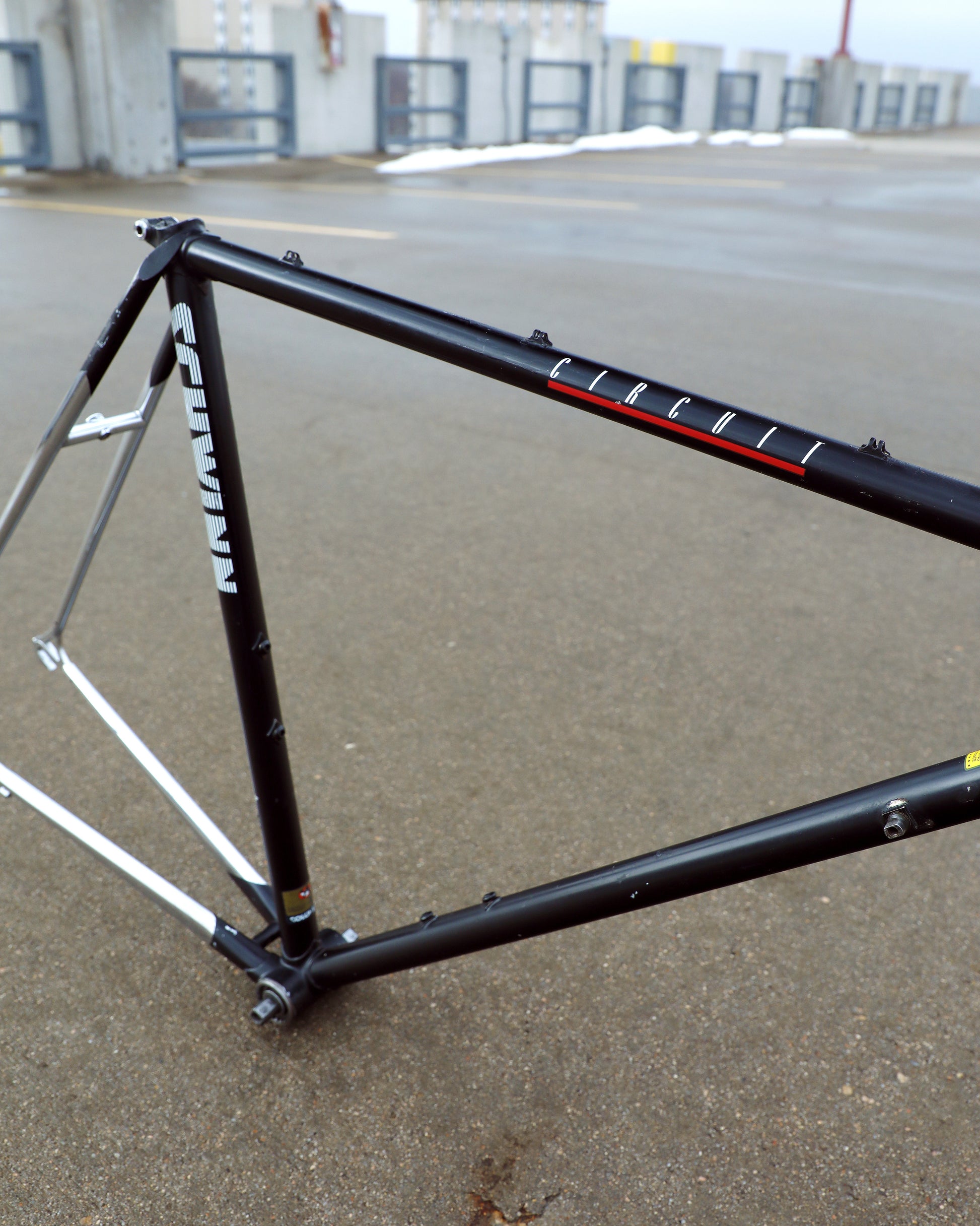 This Schwinn Circuit frame is a hot rod! The patina looks great and would be top notch with a more modern groupset. No dents, cracks, or bends in the frame but there are some paint chips and scratches. Bottom bracket and headset included (have not been serviced).