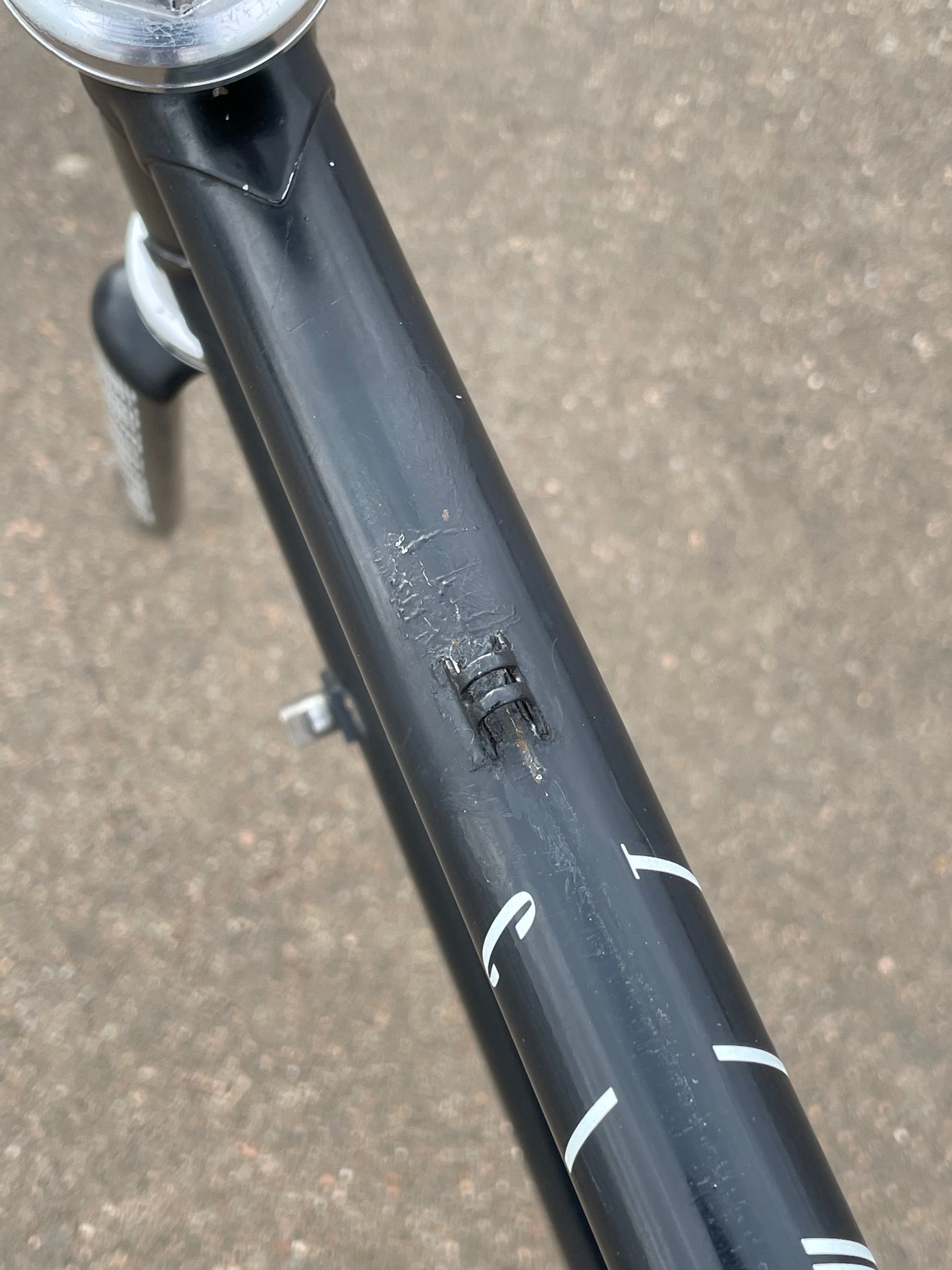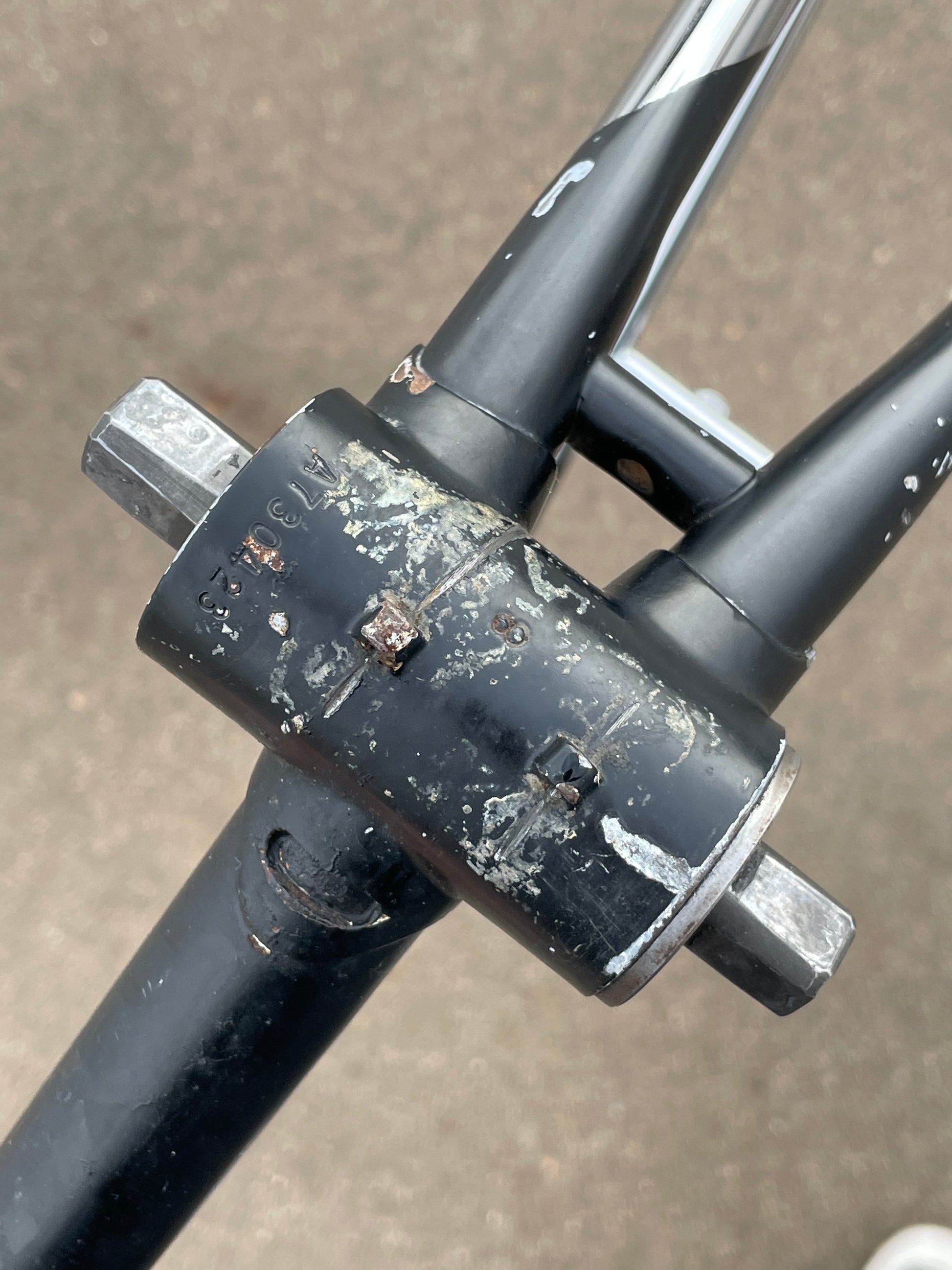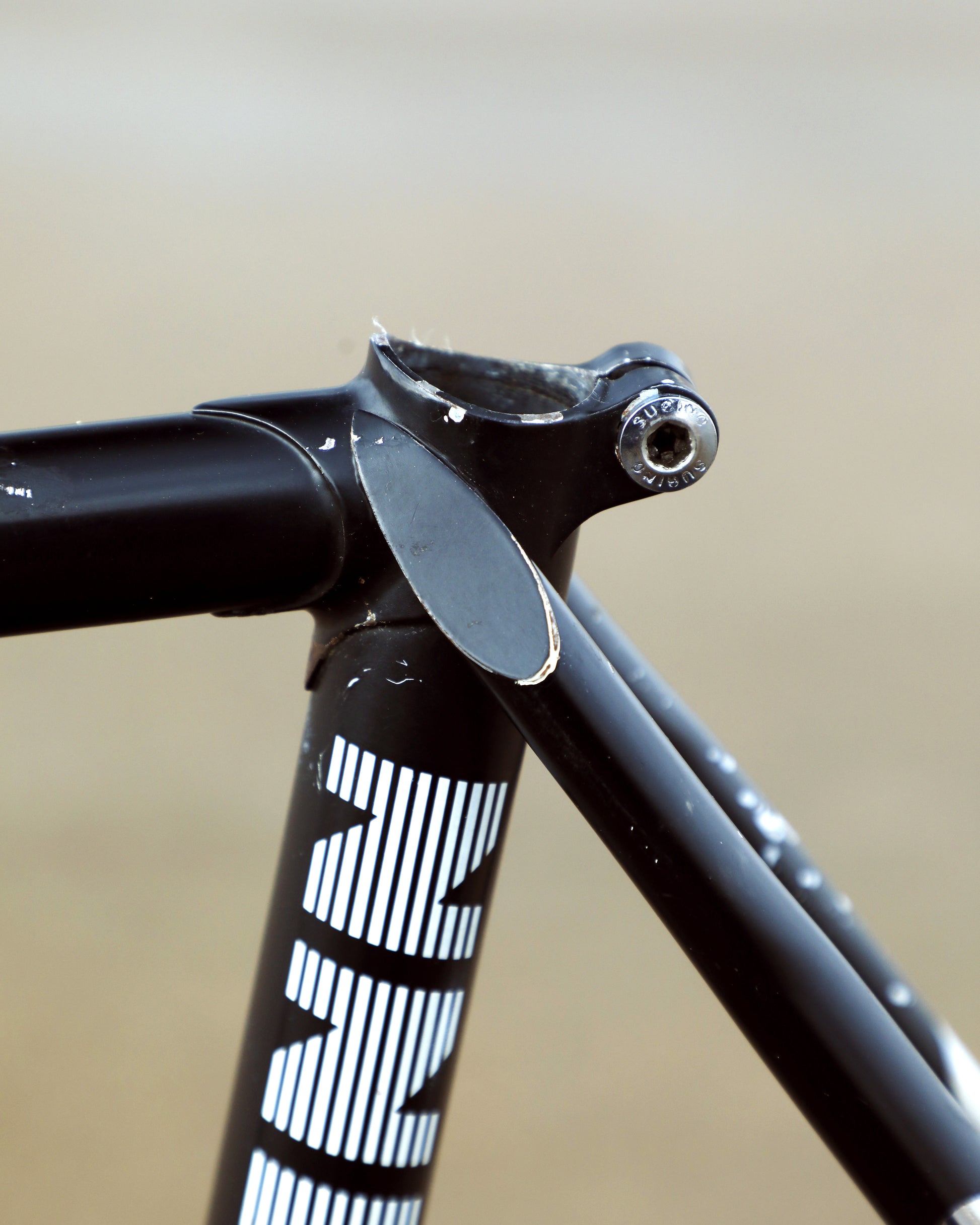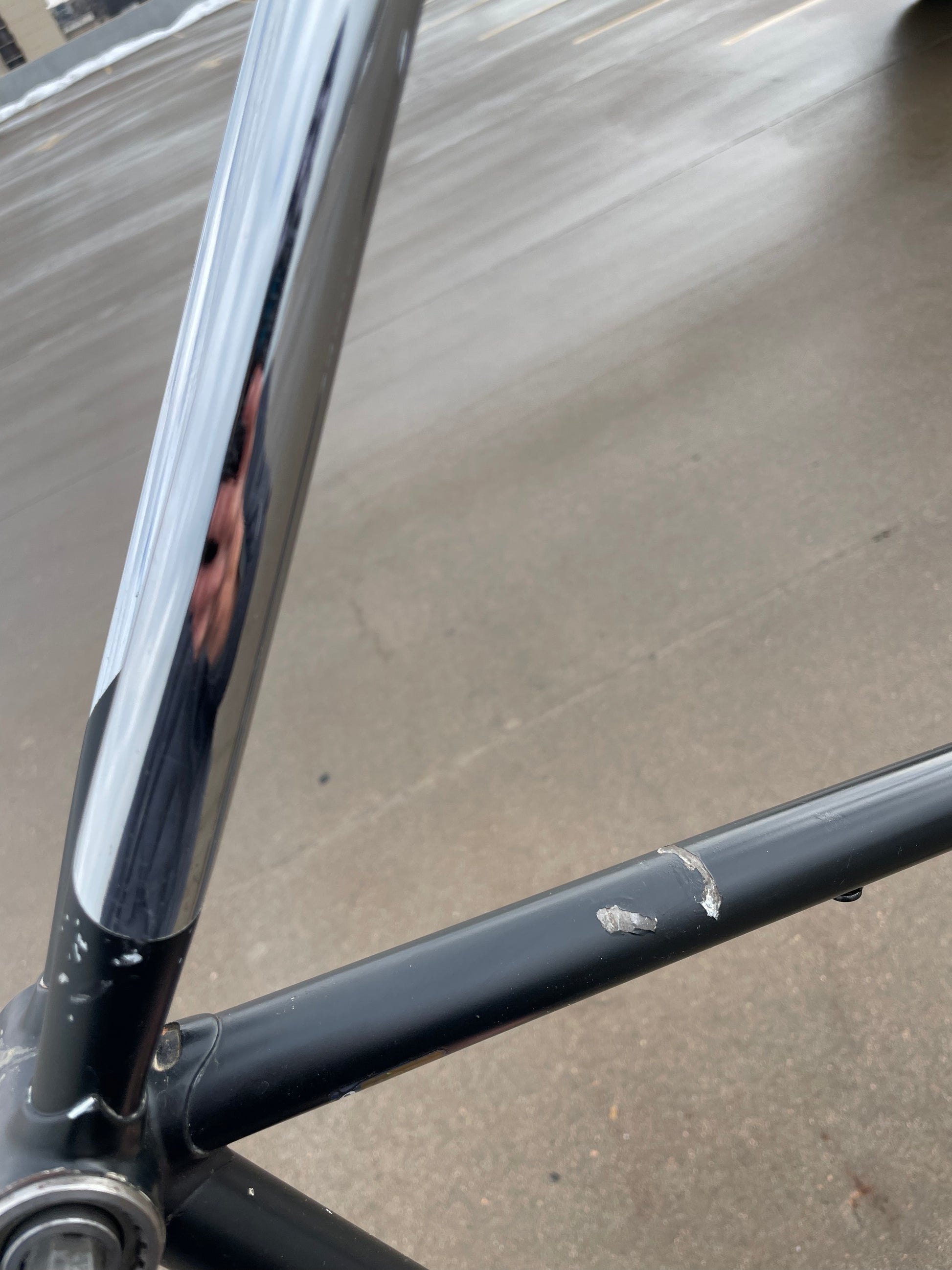 This Schwinn Circuit frame is a hot rod! The patina looks great and would be top notch with a more modern groupset. No dents, cracks, or bends in the frame but there are some paint chips and scratches. Bottom bracket and headset included (have not been serviced).