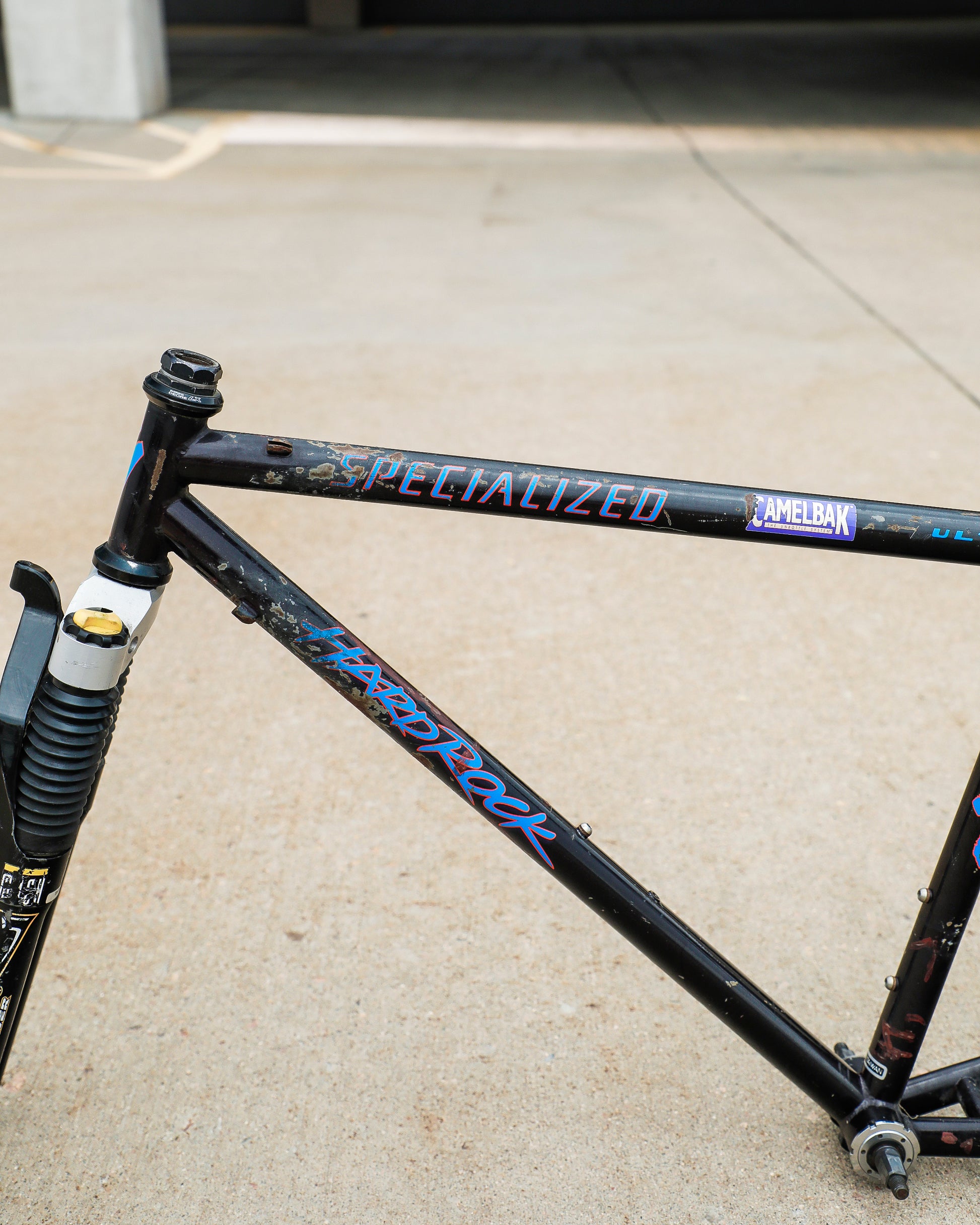 You see Hardrocks quite frequently, but it's not too often you see a Hardrock Ultra. These frames are incredibly tough and durable. This frame shows extensive sign of use. There are scratches throughout - the pain't isn't in great condition. The bottom bracket and LX headset could also use a clean and some fresh grease along with the fork (it's not seized, but I doubt it has ever been serviced).