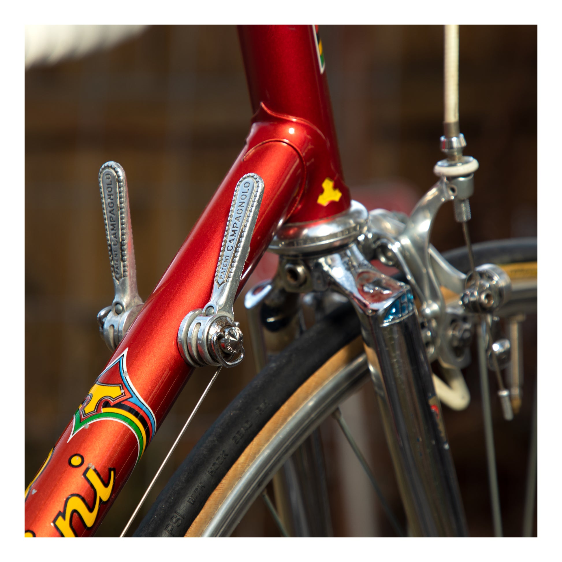 The Tommasini Prestige was the second highest tier bike offered from Tommasini. The Super Prestige was top of the line model but this wasn't too far behind. Fully equipped with Campagnolo Super Record parts, it performs flawlessly. The Columbus tubing offers a stiff, fast ride. It's an incredibly responsive bike. The drive side seat stay paint has seen better days. It looks like someone continuously laid the bike up against something there. There is no other damage to the frame. All parts on this bike have been cleaned and serviced. New cables and a rear brake cable housing have been fitted. This bike is ready for hundreds of more miles and deserves a caring, passionate rider such as yourself. Measurements