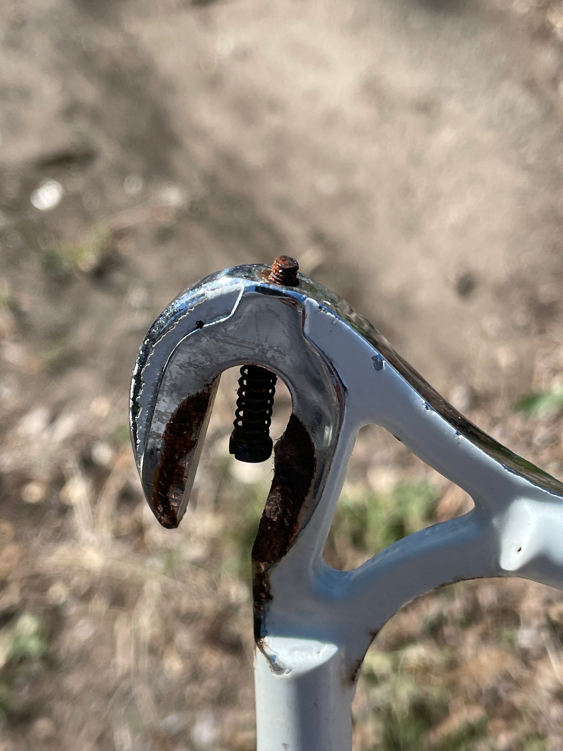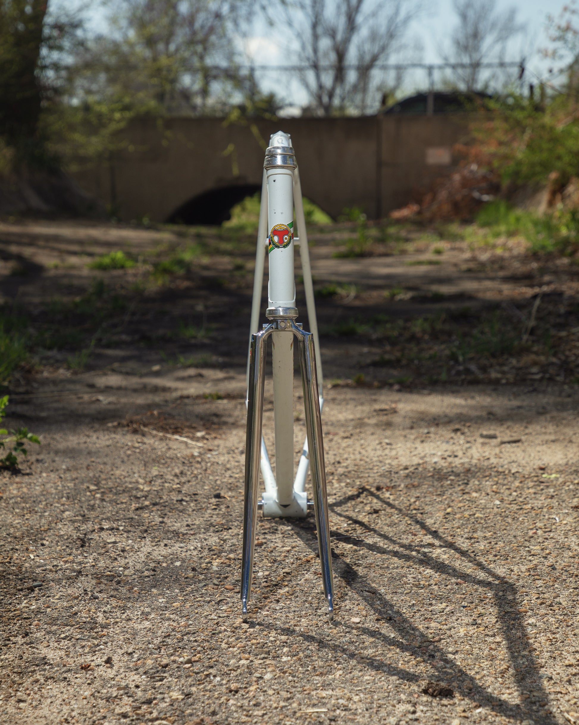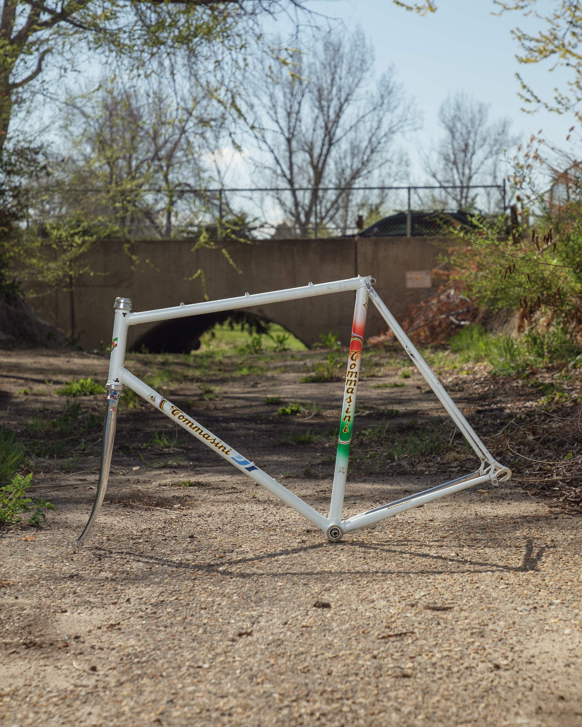 This Tommasini Prestige has been well loved and is looking for a new rider! The paint isn't in great condition. It has a lot of chips, most of which have been touched up by the previous owner. Apart from the condition of the paint, the frame looks great. No dents, bends, or cracks. Comes with a Camapgnolo headset and bottom bracket, both of which have good feel. Be the one to give this frame a second chance!